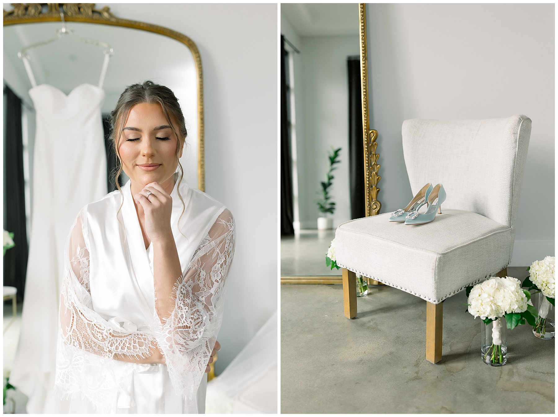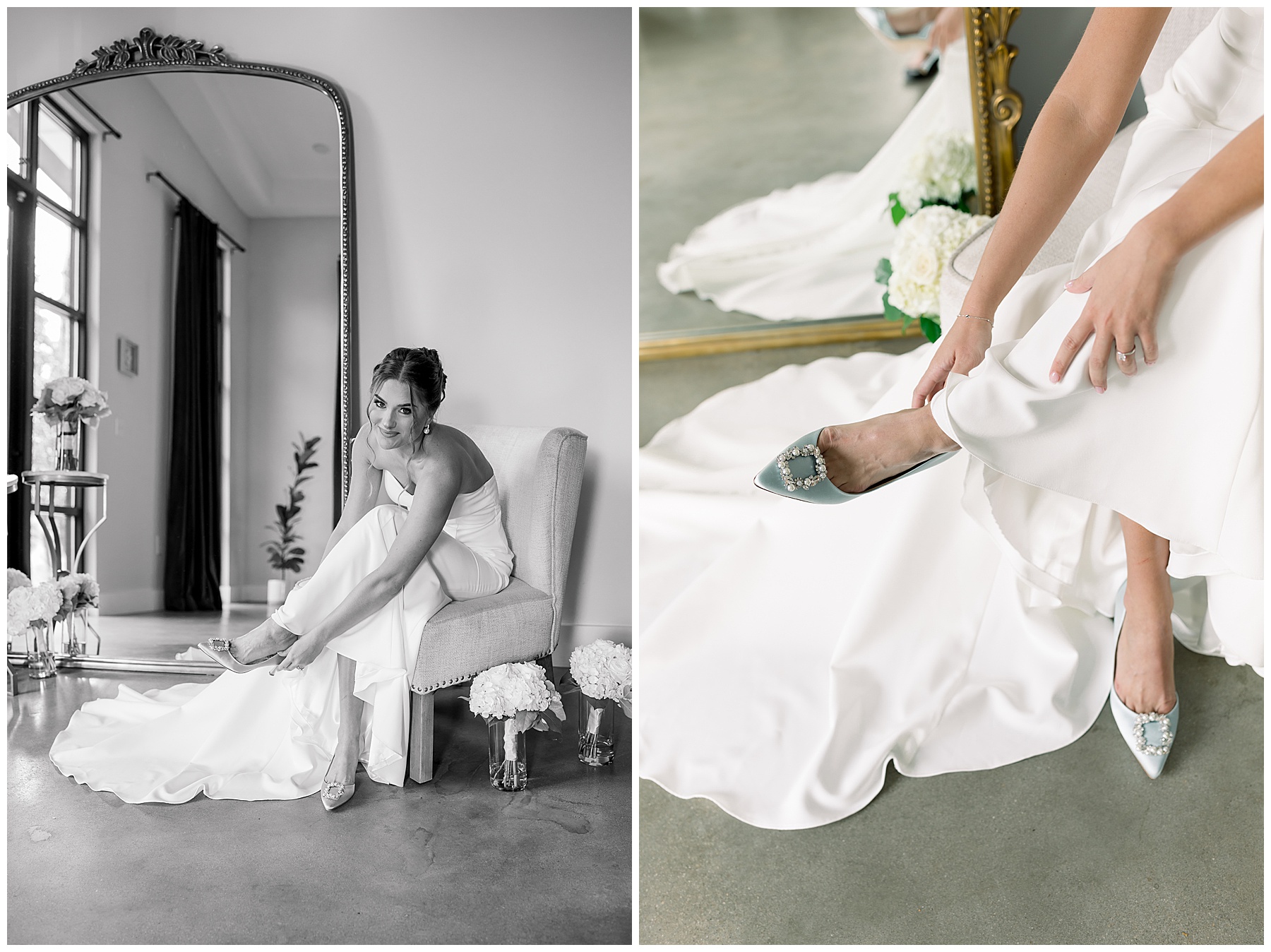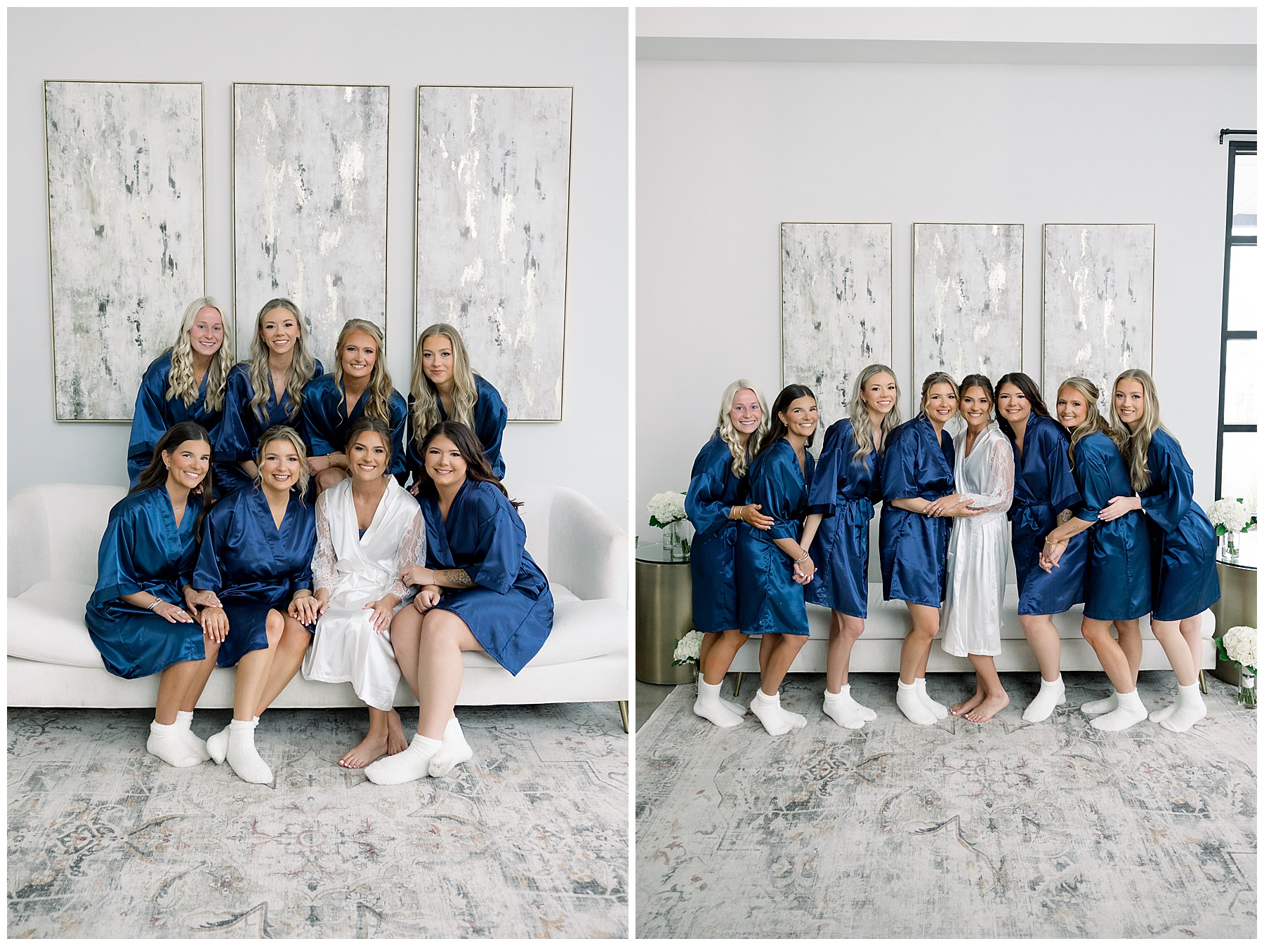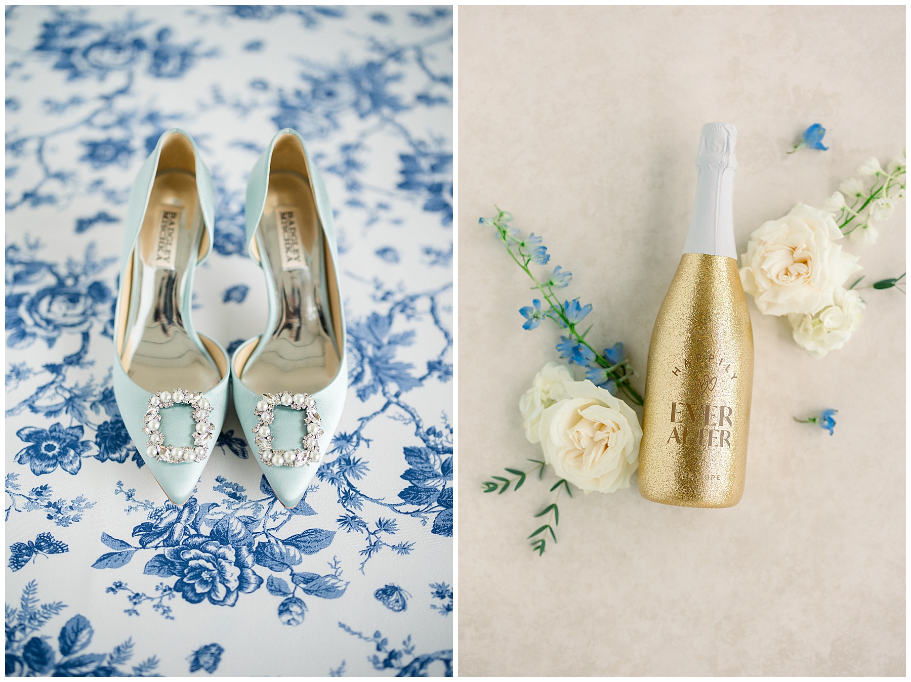 We started off their day photographing beautiful details! I absolutely loved all the different blues used during the day! We were spoiled with lots of pretty florals & items to photograph – especially those blue bridal heels! I loved those!!! The girls were all getting glammed and wearing cute robes & fuzzy socks. They had coffees from back home in Burlington & lots of snacks to enjoy. I really loved Alexsis’ bridesmaids – and they were ALL so helpful & kind!