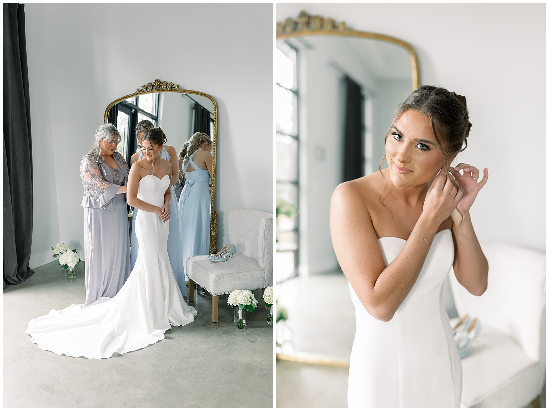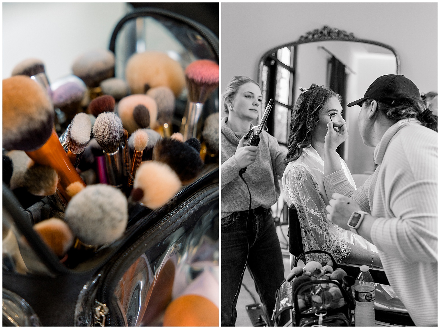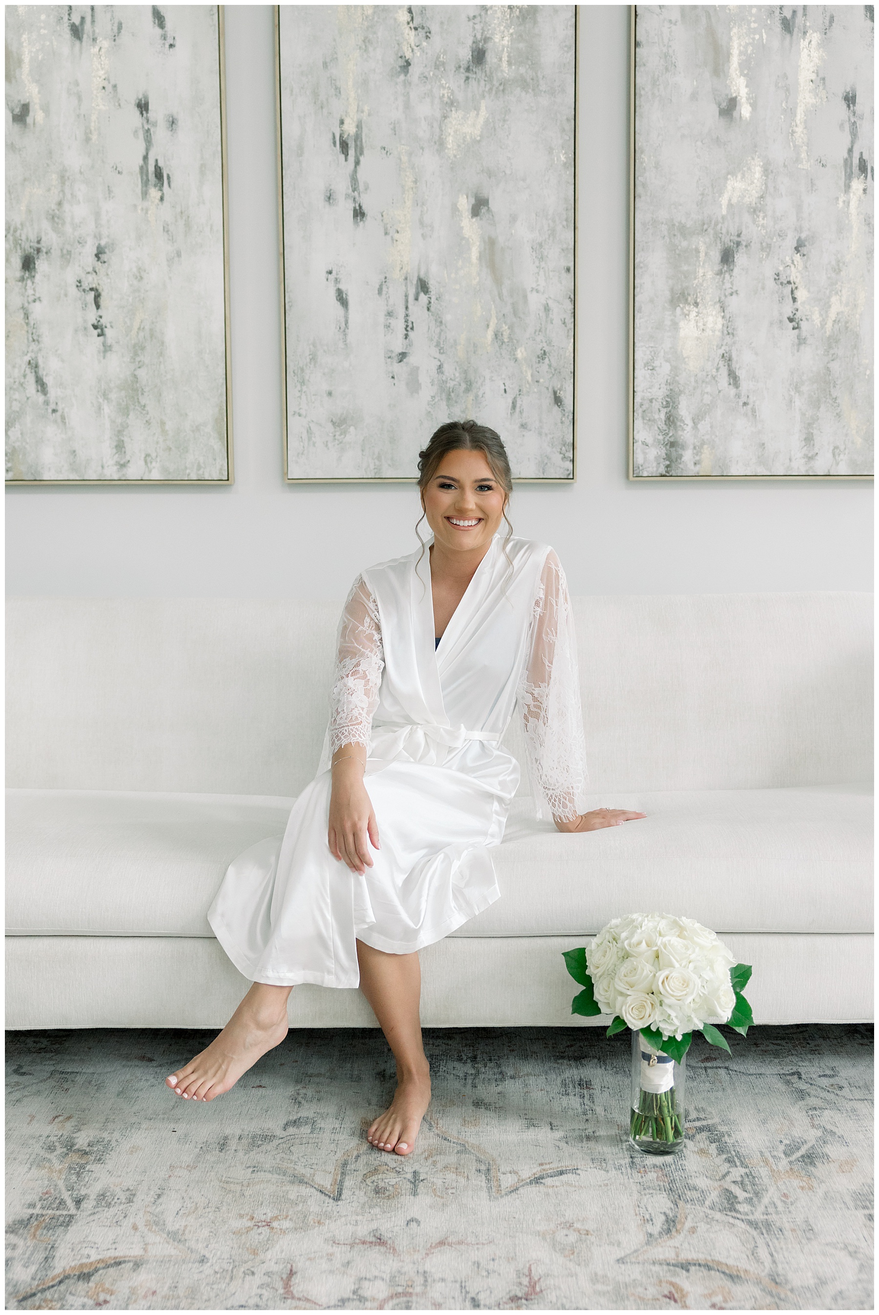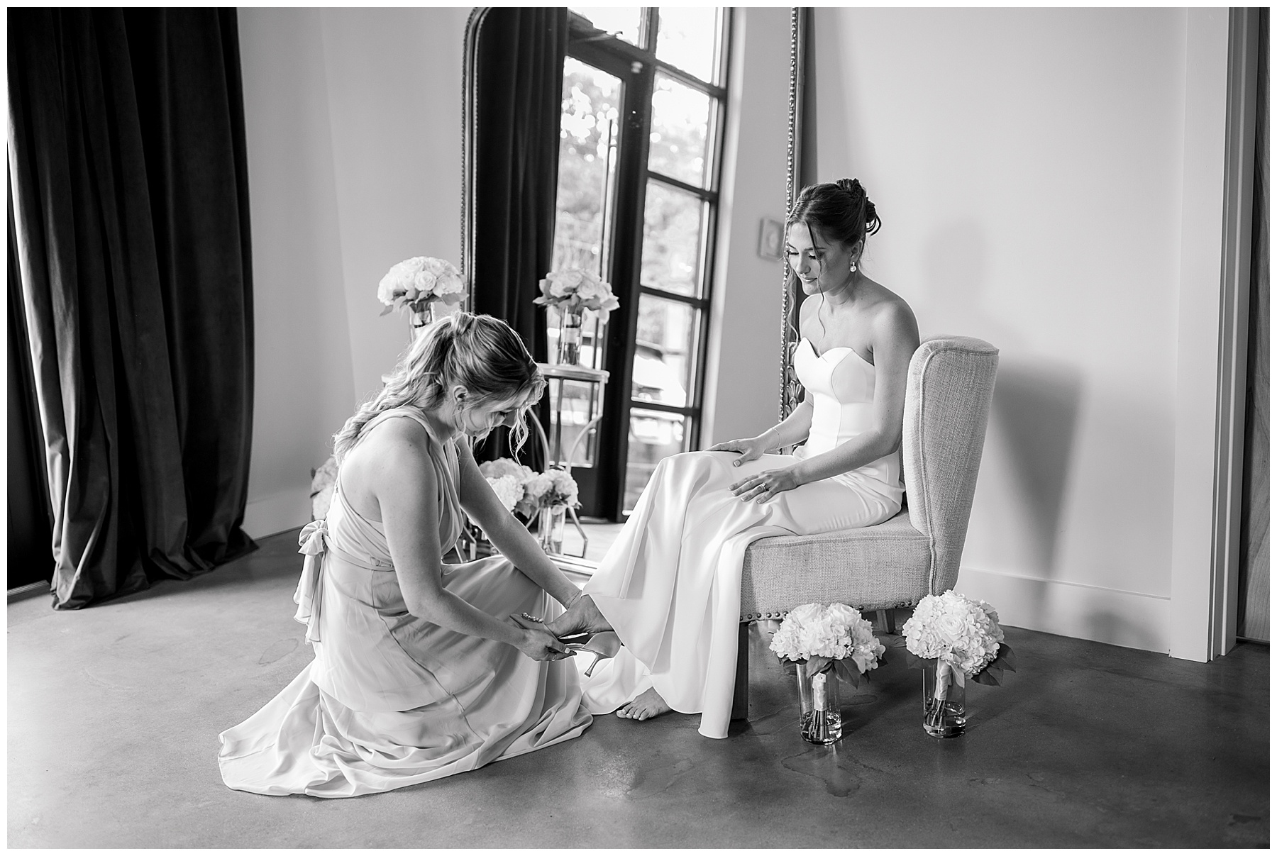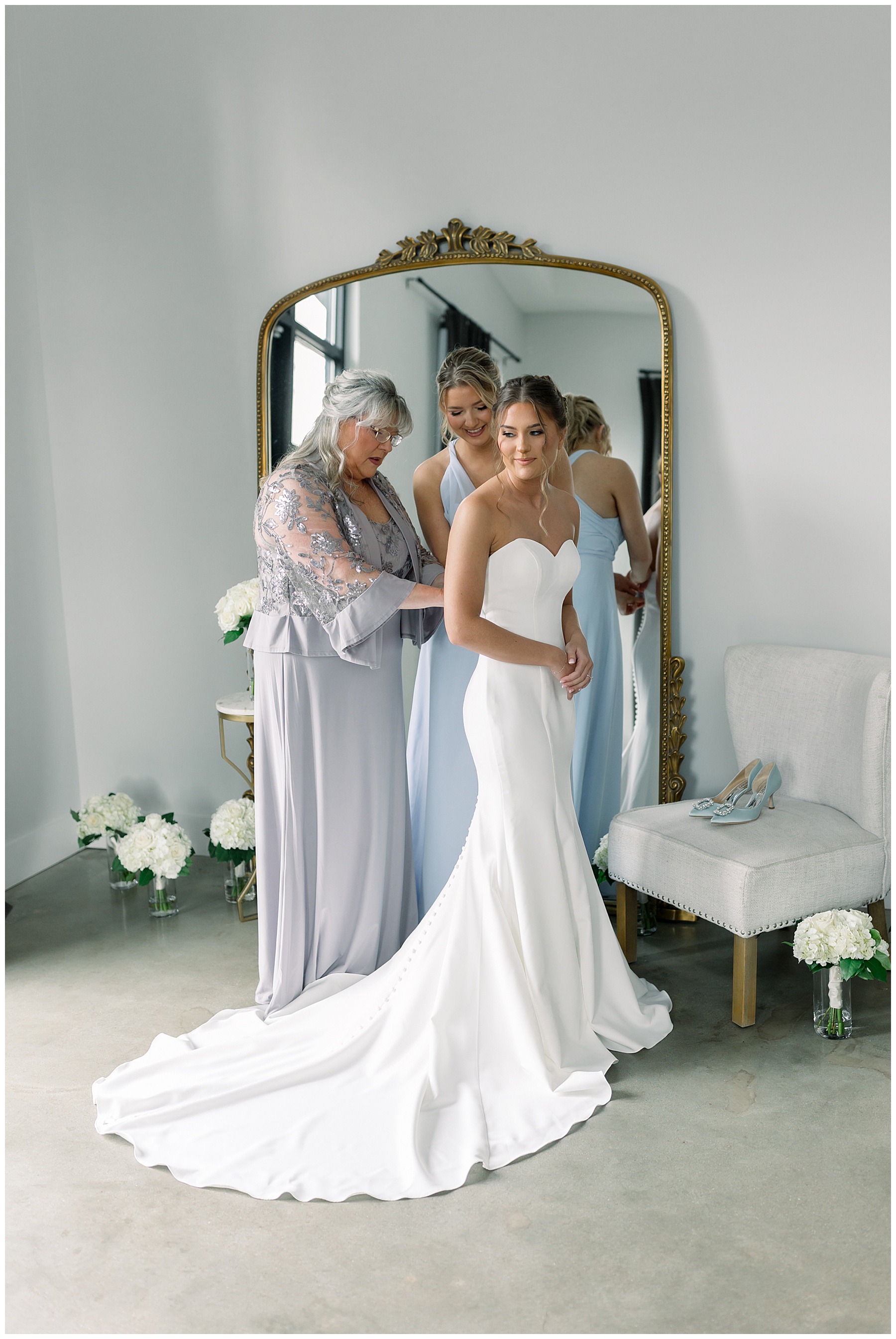 We started off their day photographing beautiful details! I absolutely loved all the different blues used during the day! We were spoiled with lots of pretty florals & items to photograph – especially those blue bridal heels! I loved those!!! The girls were all getting glammed and wearing cute robes & fuzzy socks. They had coffees from back home in Burlington & lots of snacks to enjoy. I really loved Alexsis’ bridesmaids – and they were ALL so helpful & kind!