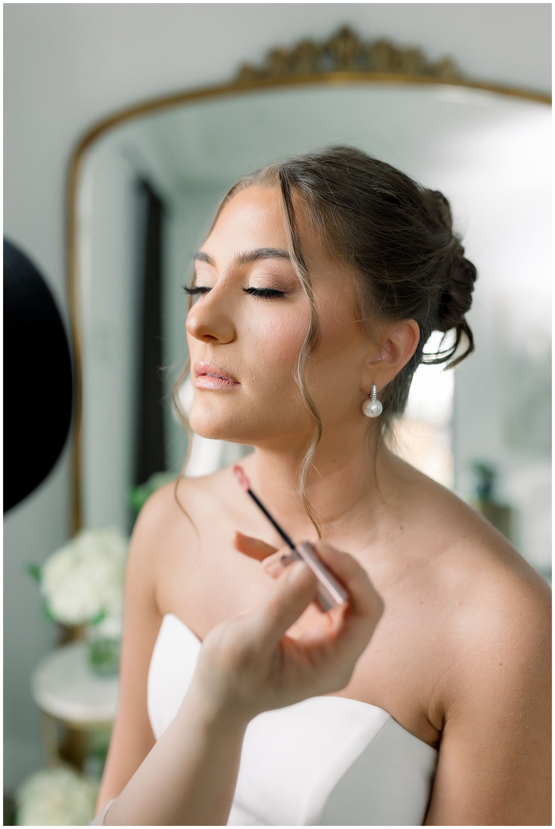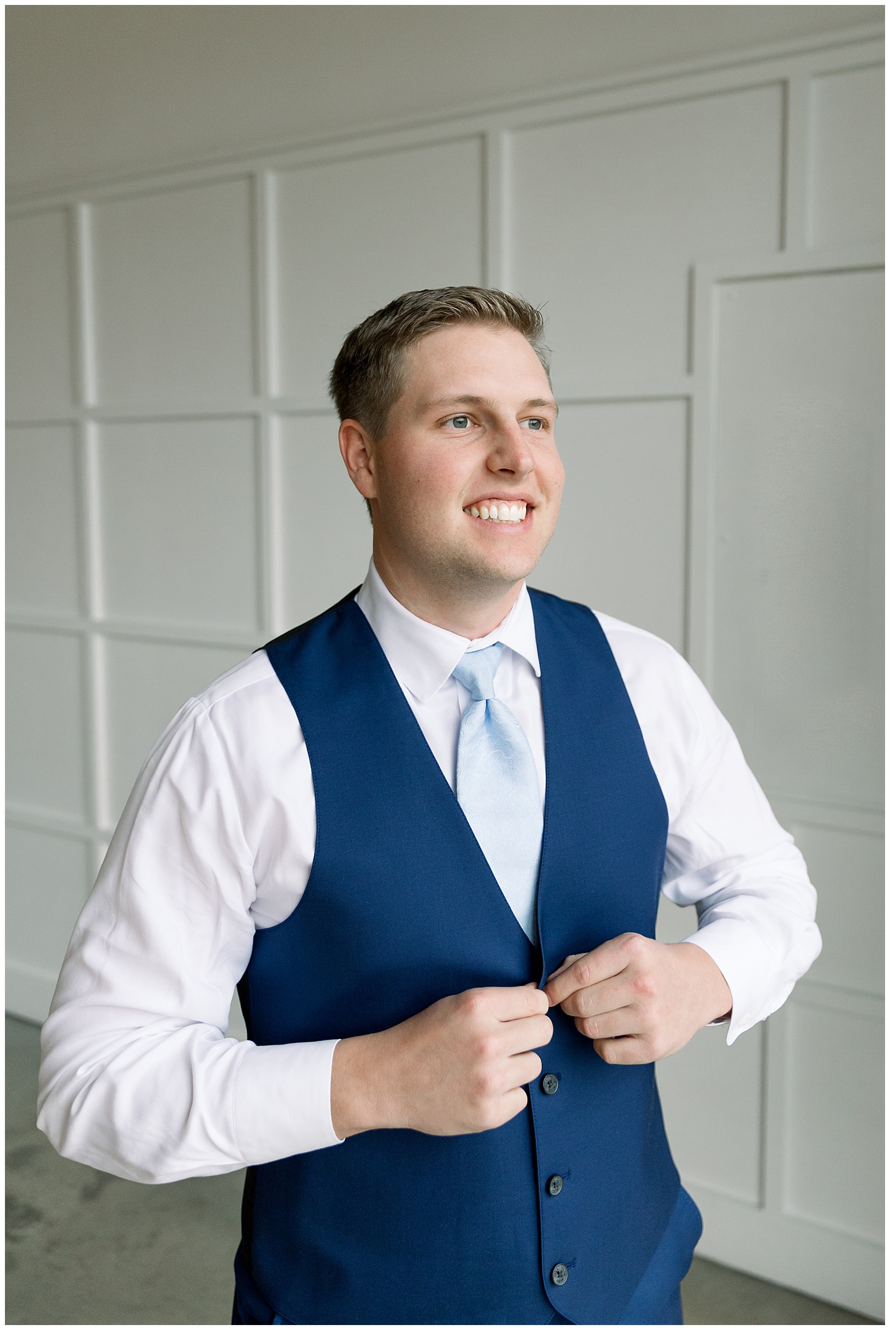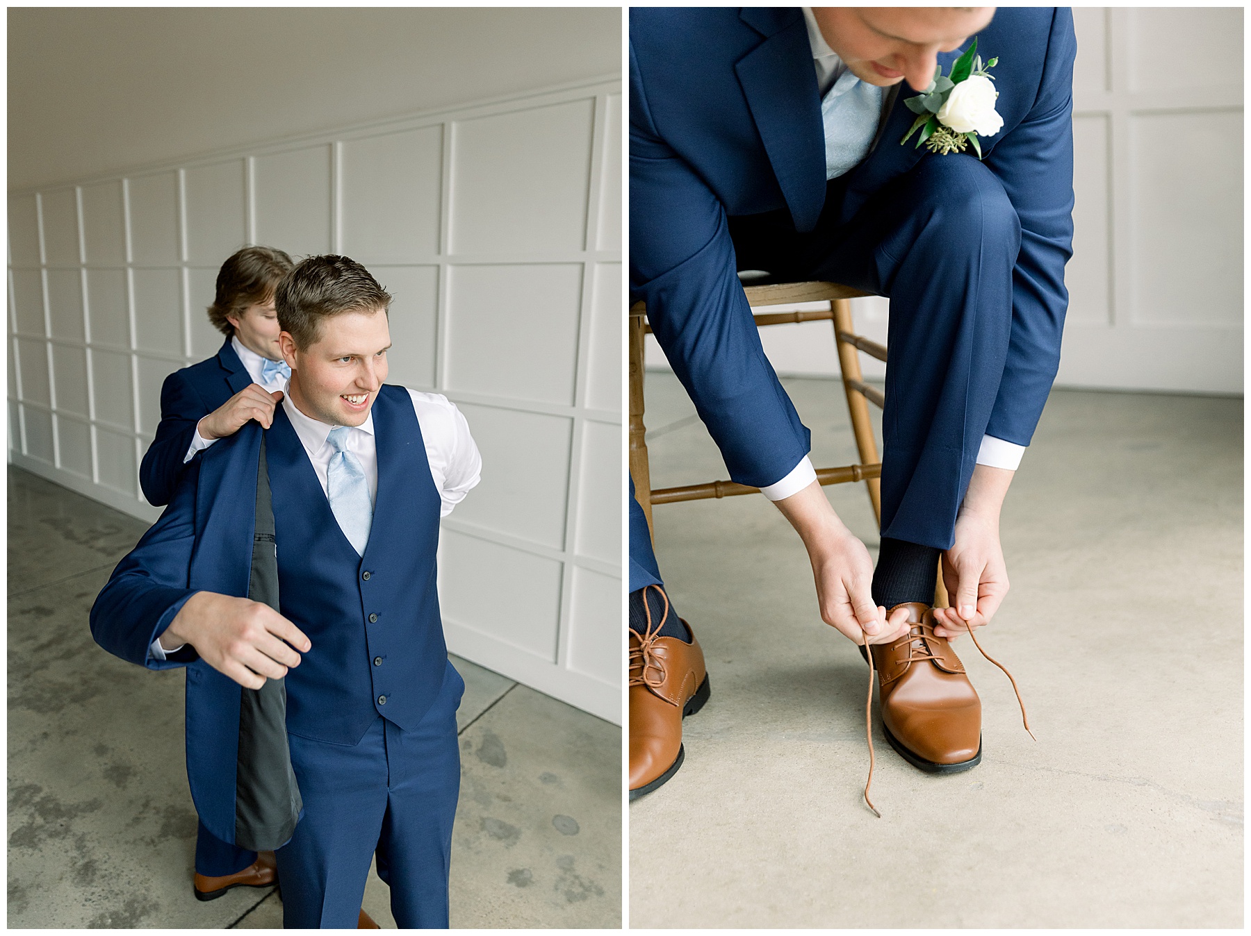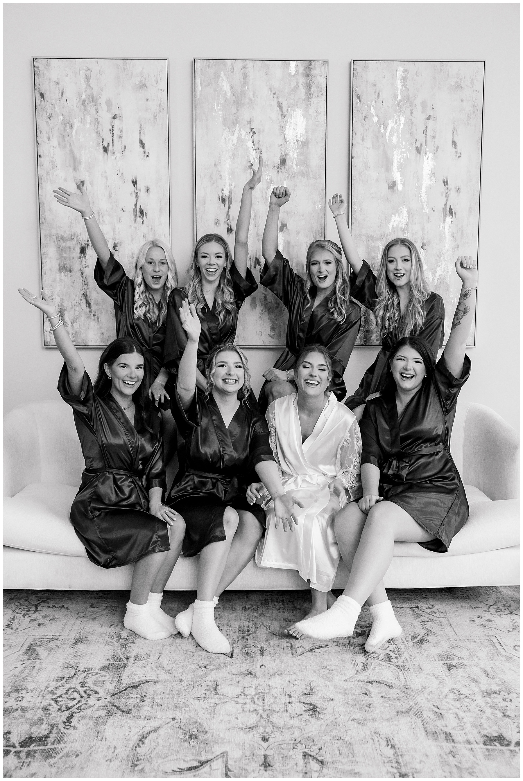 We started off their day photographing beautiful details! I absolutely loved all the different blues used during the day! We were spoiled with lots of pretty florals & items to photograph – especially those blue bridal heels! I loved those!!! The girls were all getting glammed and wearing cute robes & fuzzy socks. They had coffees from back home in Burlington & lots of snacks to enjoy. I really loved Alexsis’ bridesmaids – and they were ALL so helpful & kind!