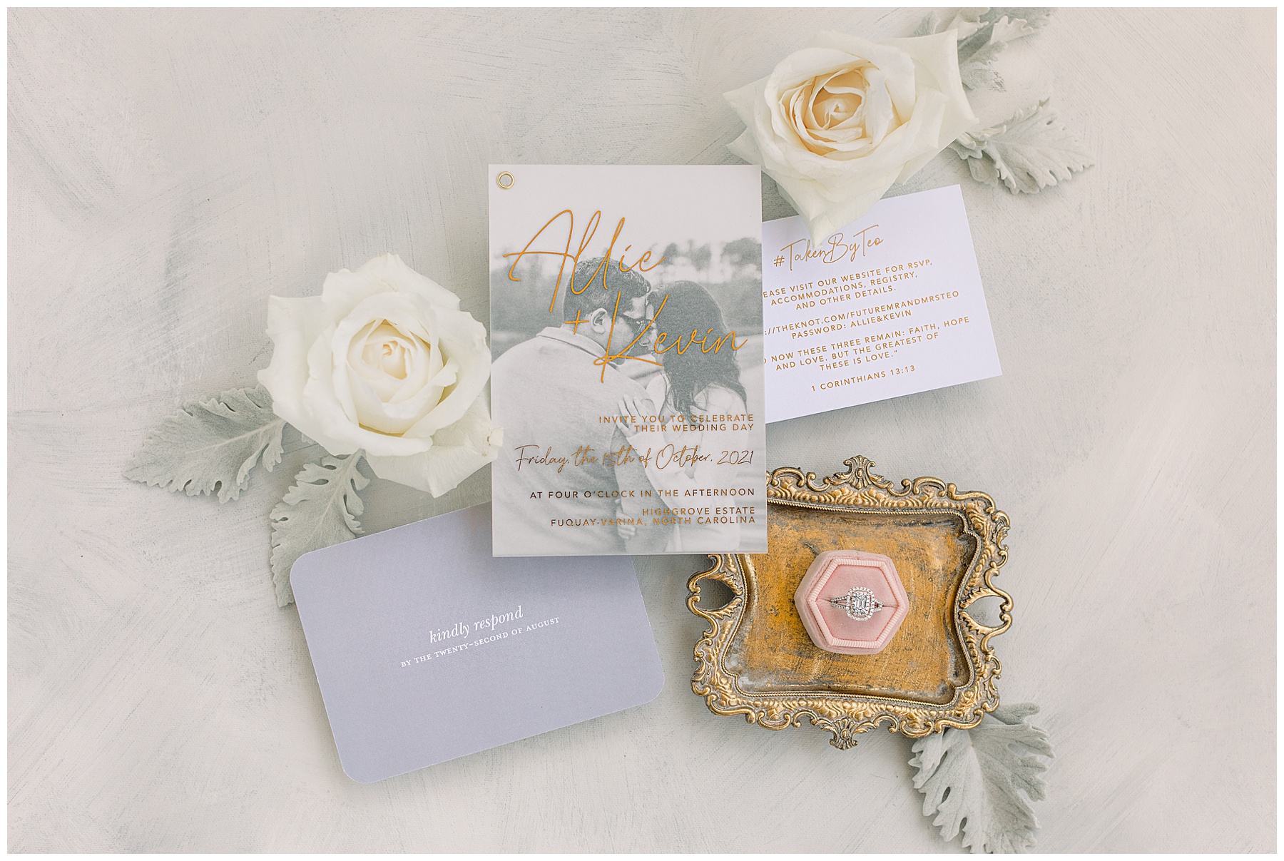 Well…. COVID hit and not only is Allie a nurse but a lot of their family is from out of state. They made the selfless, difficult decision to put safety of everyone as top priority and reschedule their wedding for almost a whole YEAR away, for October 15th 2021 at The Highgrove Estate instead. I can’t imagine how hard of a decision that was to wait an extra year!!!