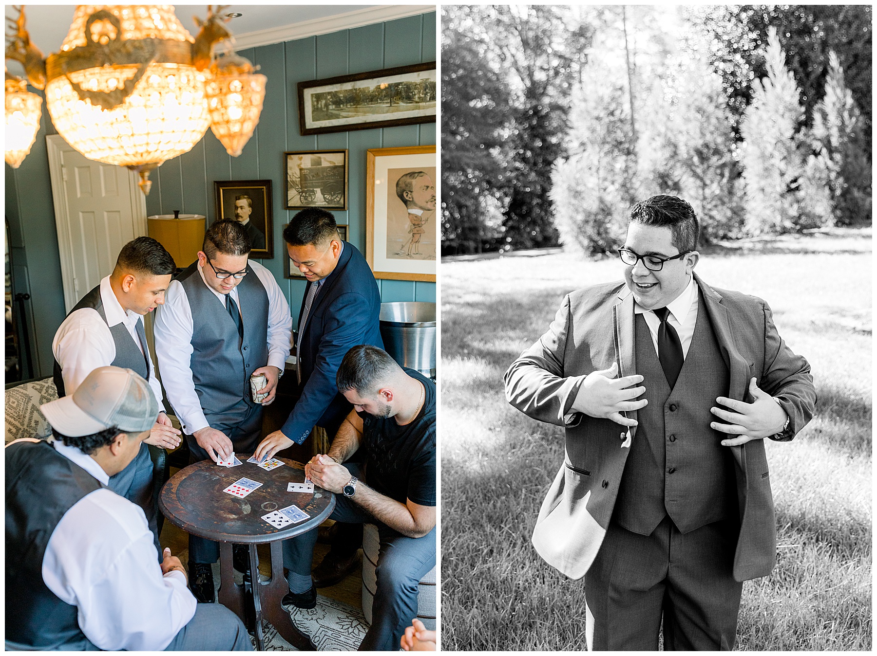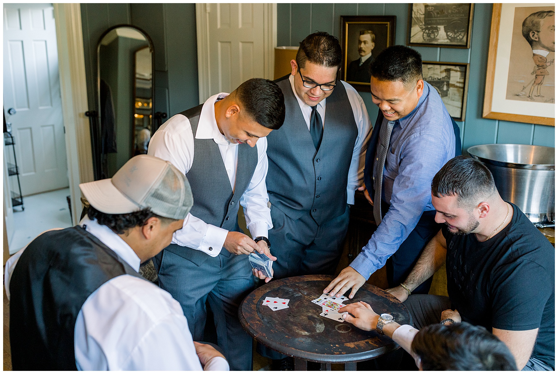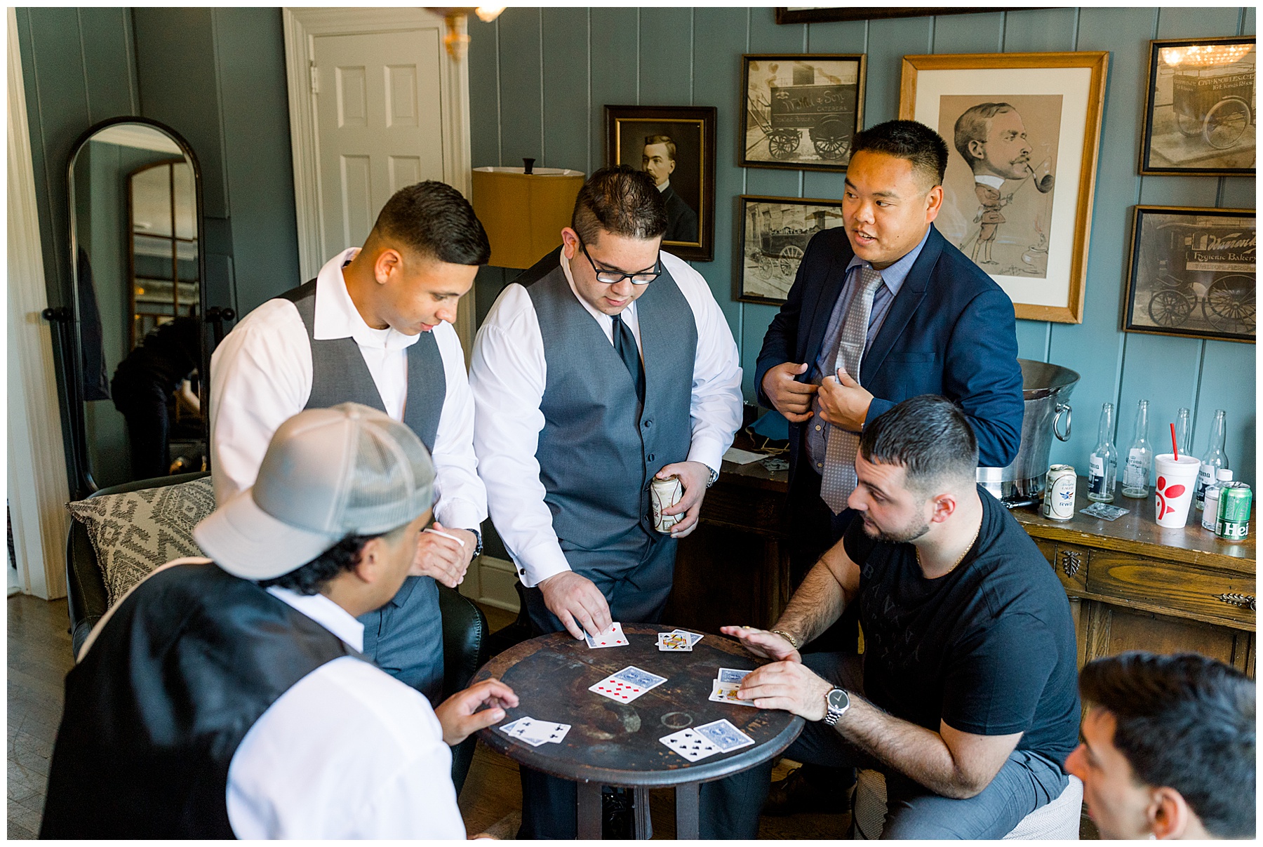 The girls arrived with their glam done, and looked beautiful! They enjoyed snacks & hanging out in the pretty bridal suite, while the guys hung out playing cards and betting haha! :)