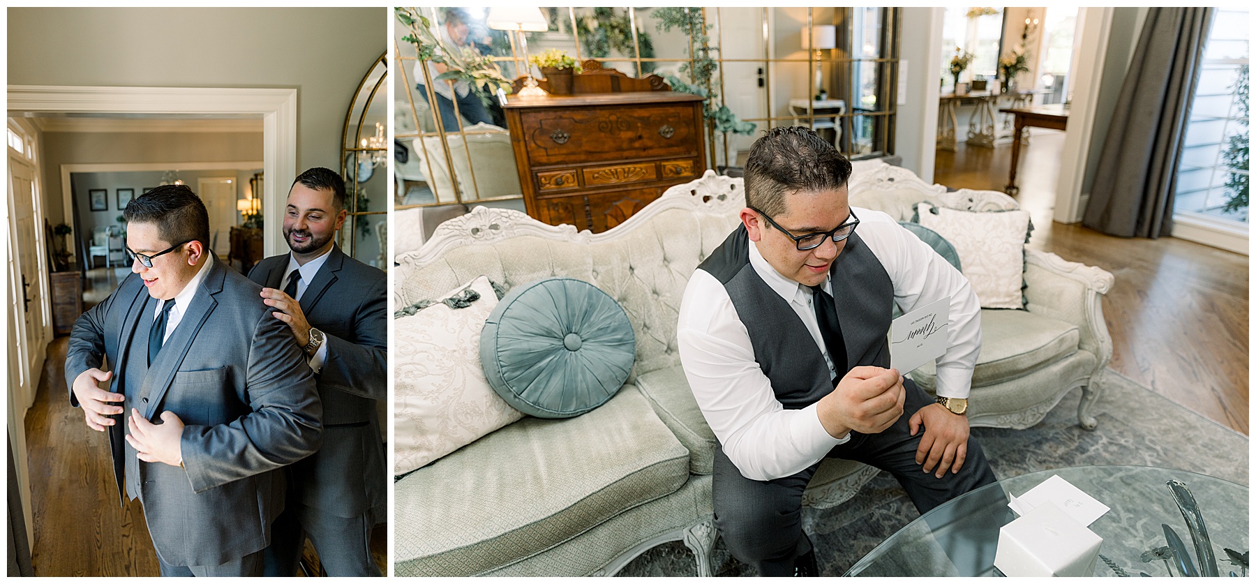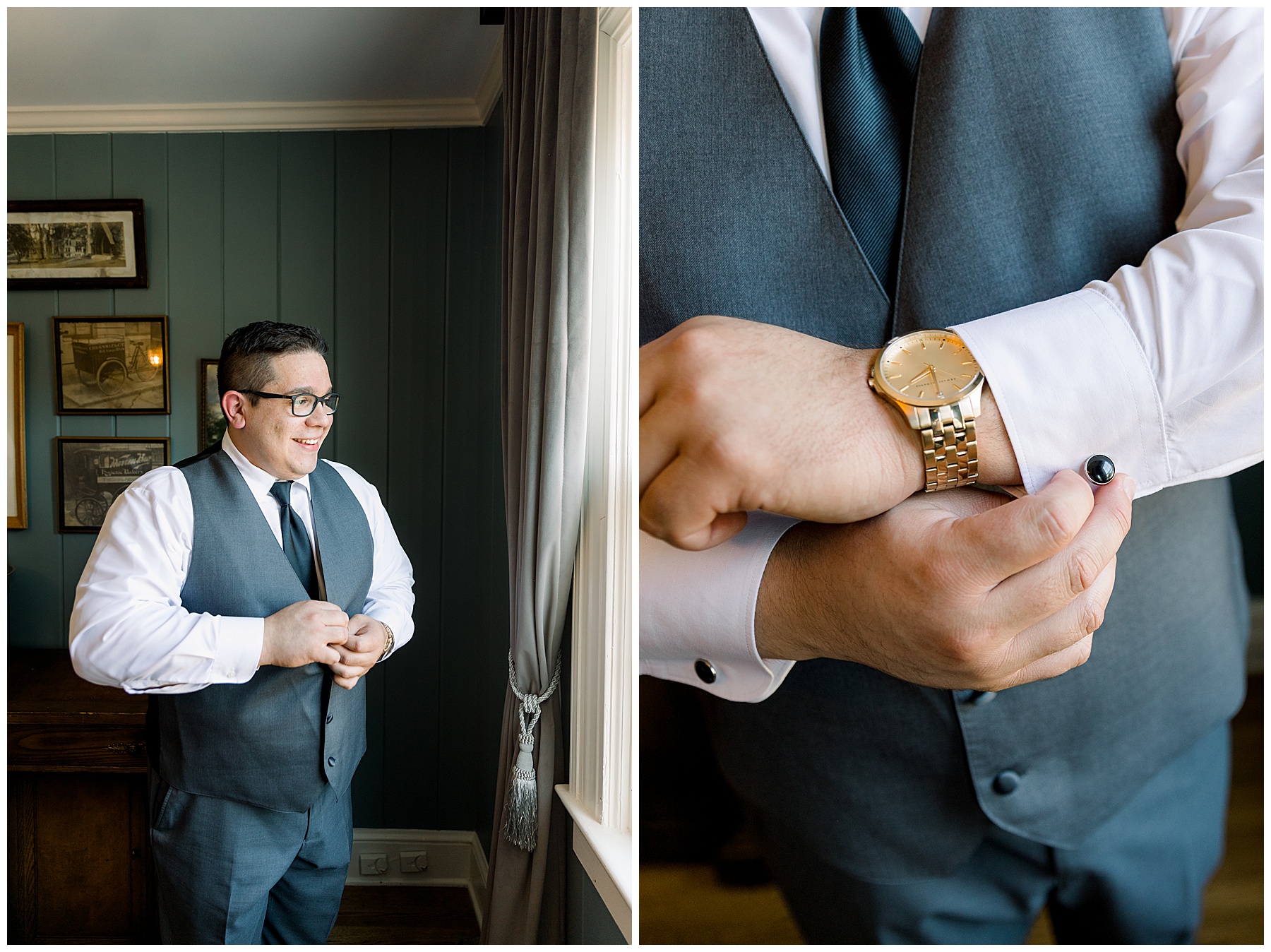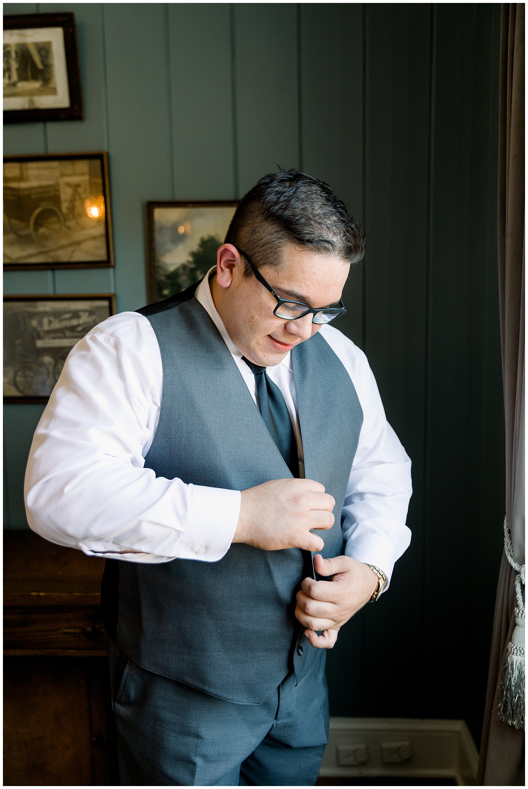 The girls arrived with their glam done, and looked beautiful! They enjoyed snacks & hanging out in the pretty bridal suite, while the guys hung out playing cards and betting haha! :)