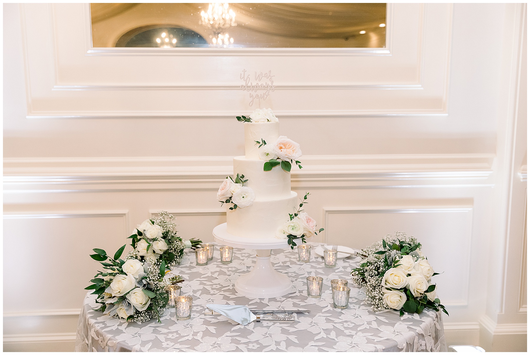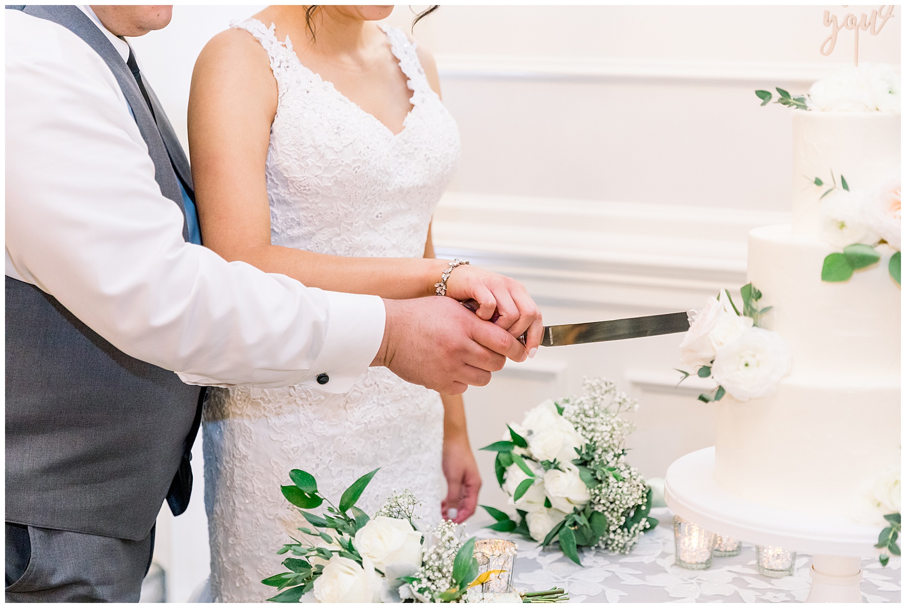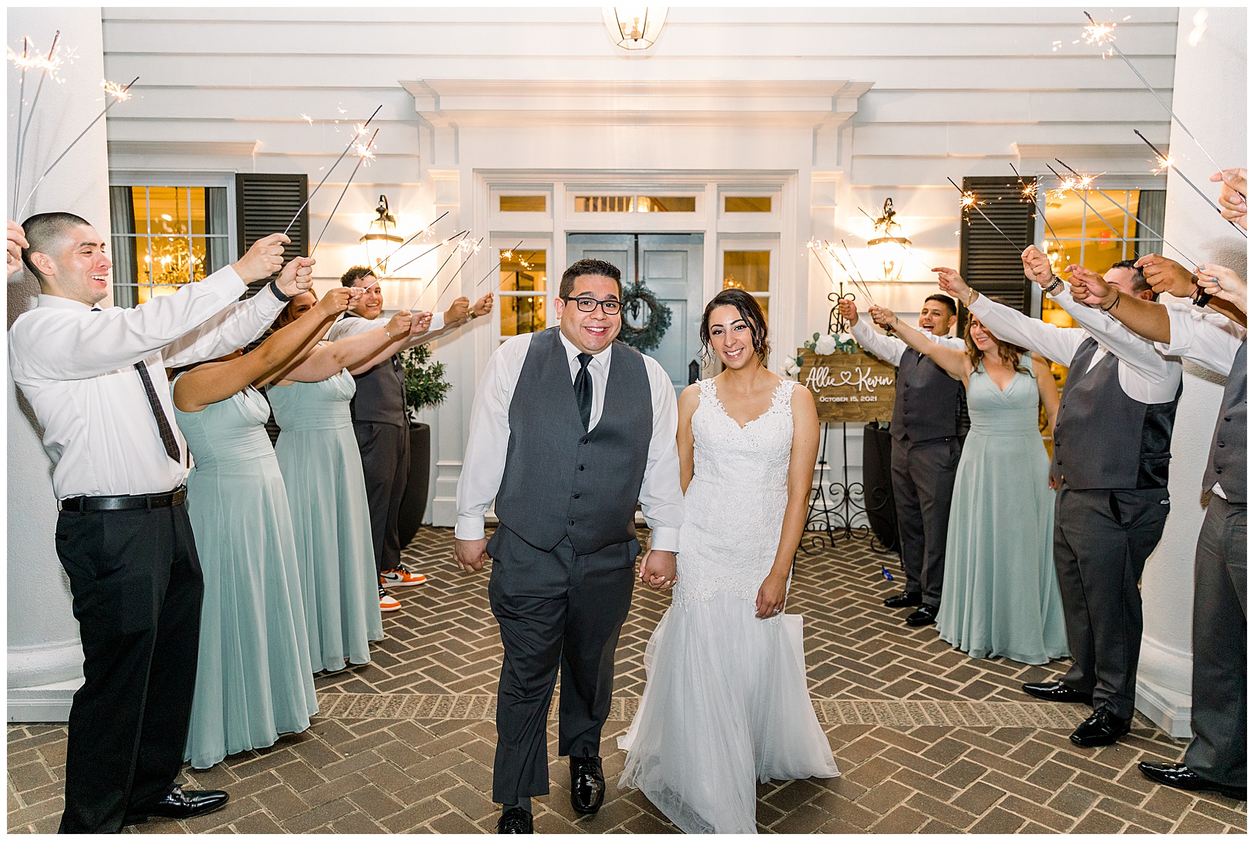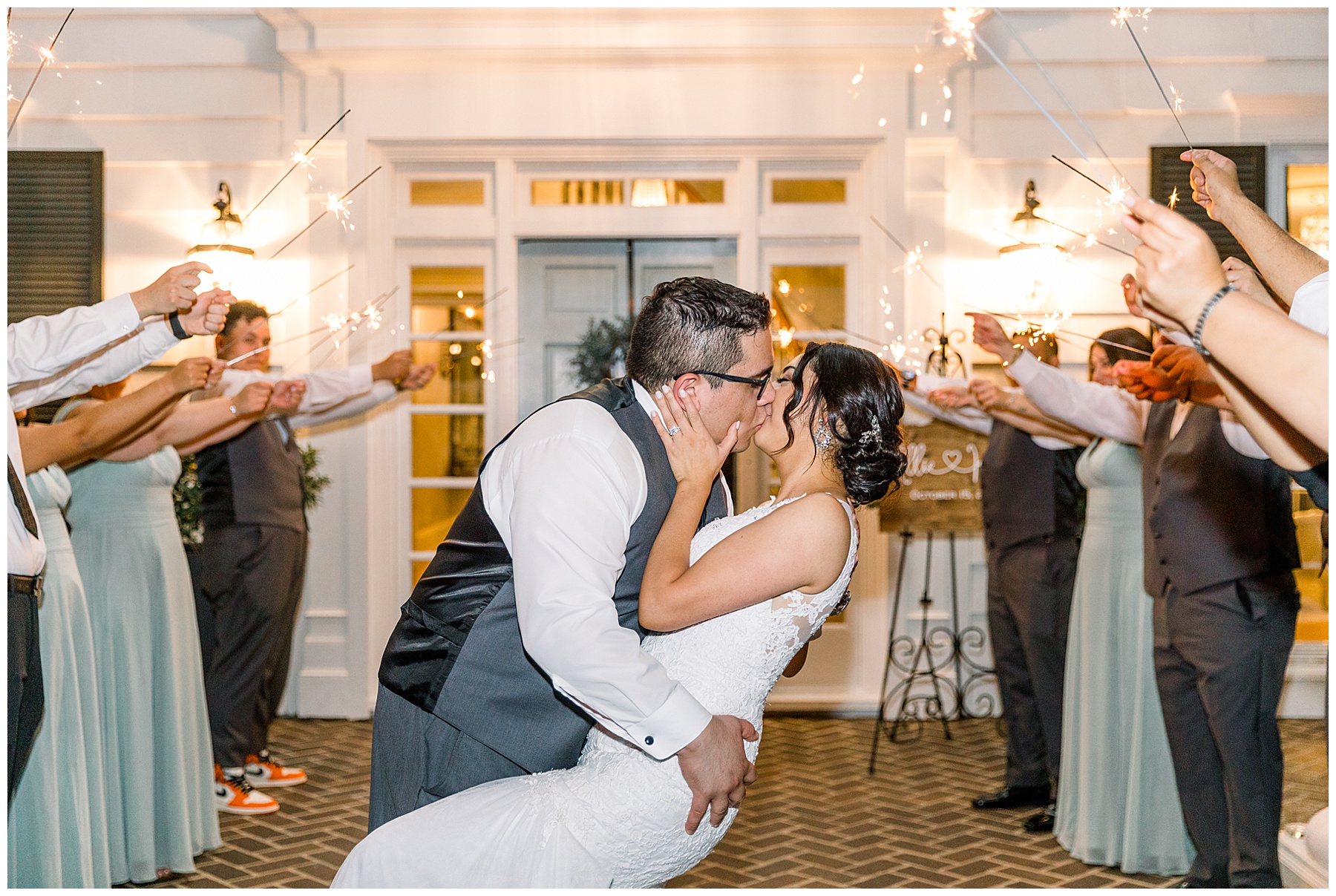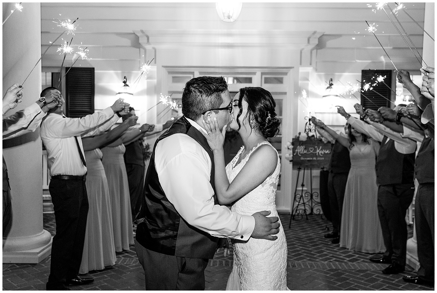 The reception kicked off with a delicious dinner, toasts, cake, LOTS of dancing, and even a flambé doughnut bar for a late night snack!!! You can NEVER go wrong with late night food in our opinion! It made us so happy to see Kevin and Allie finally be able to celebrate this long-awaited day with their closest family and friends. They went through a tunnel of sparklers, and it was just magical!!!