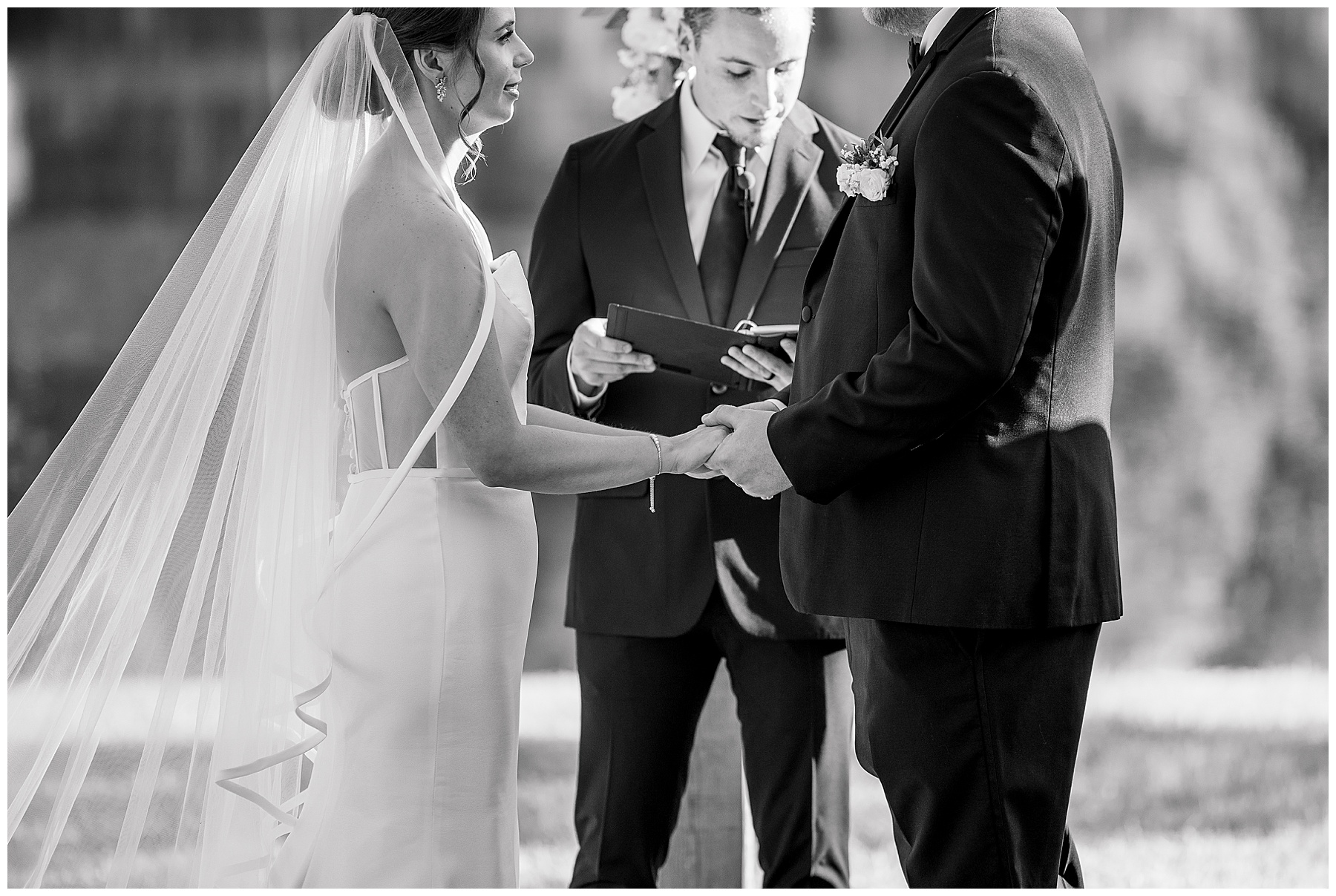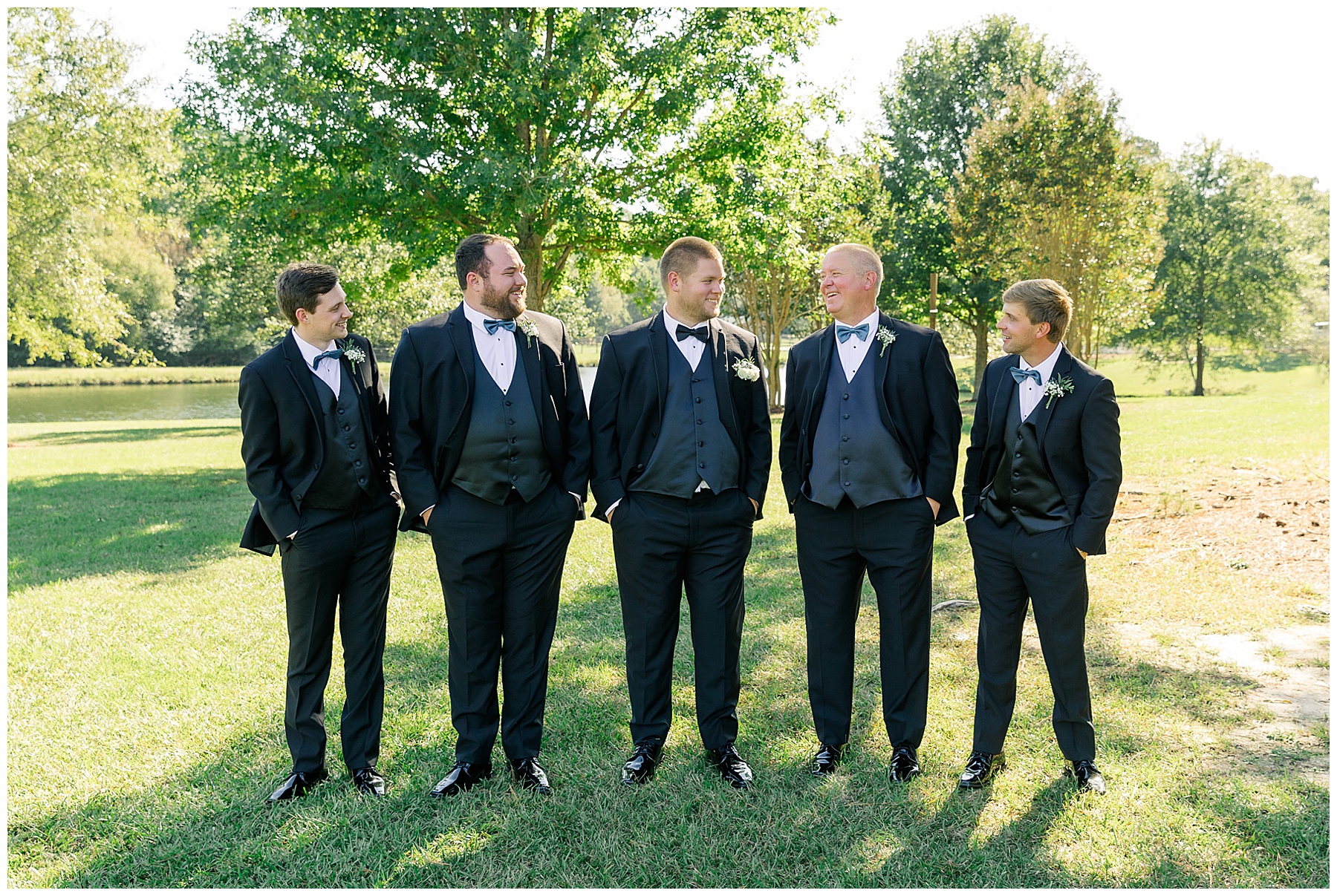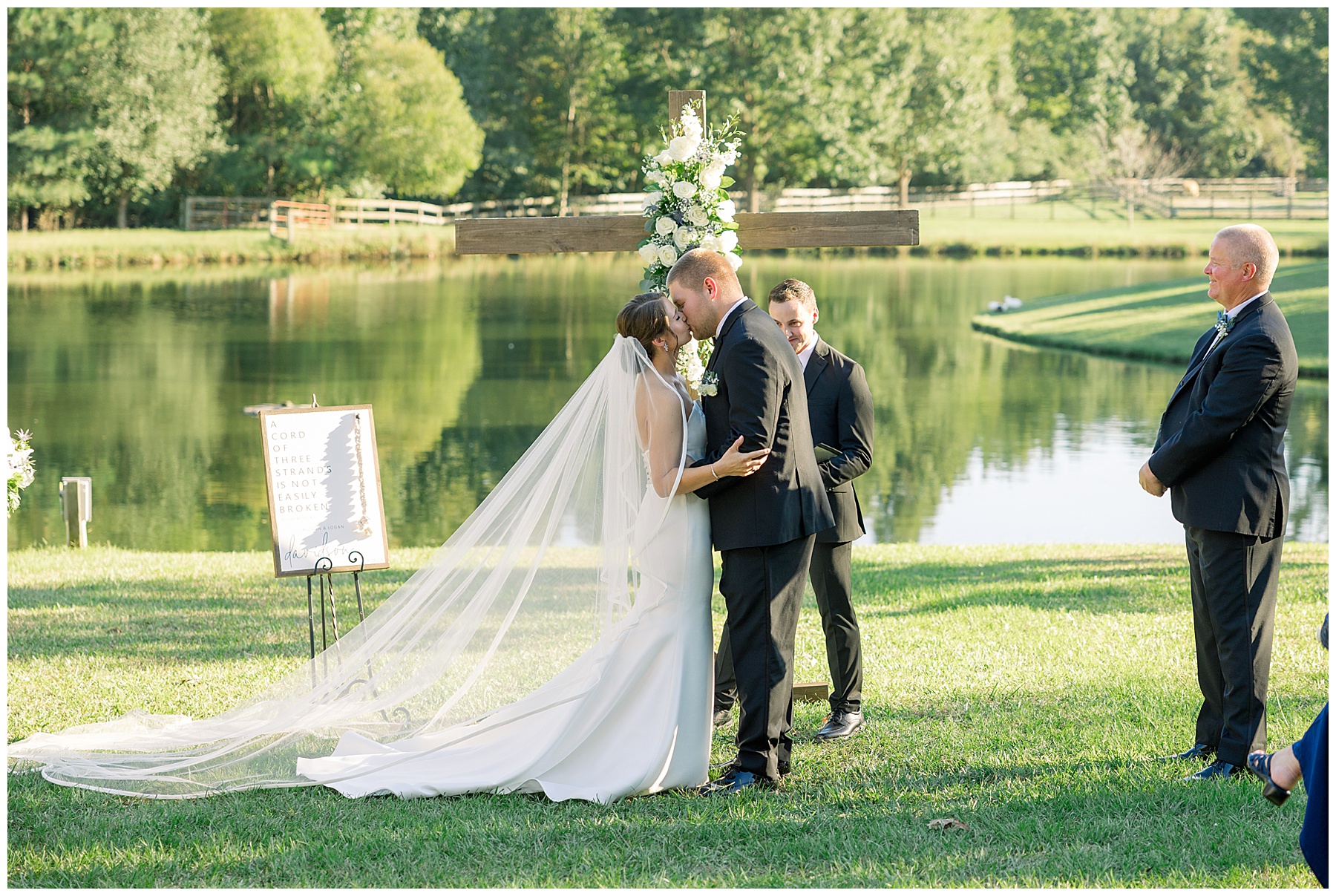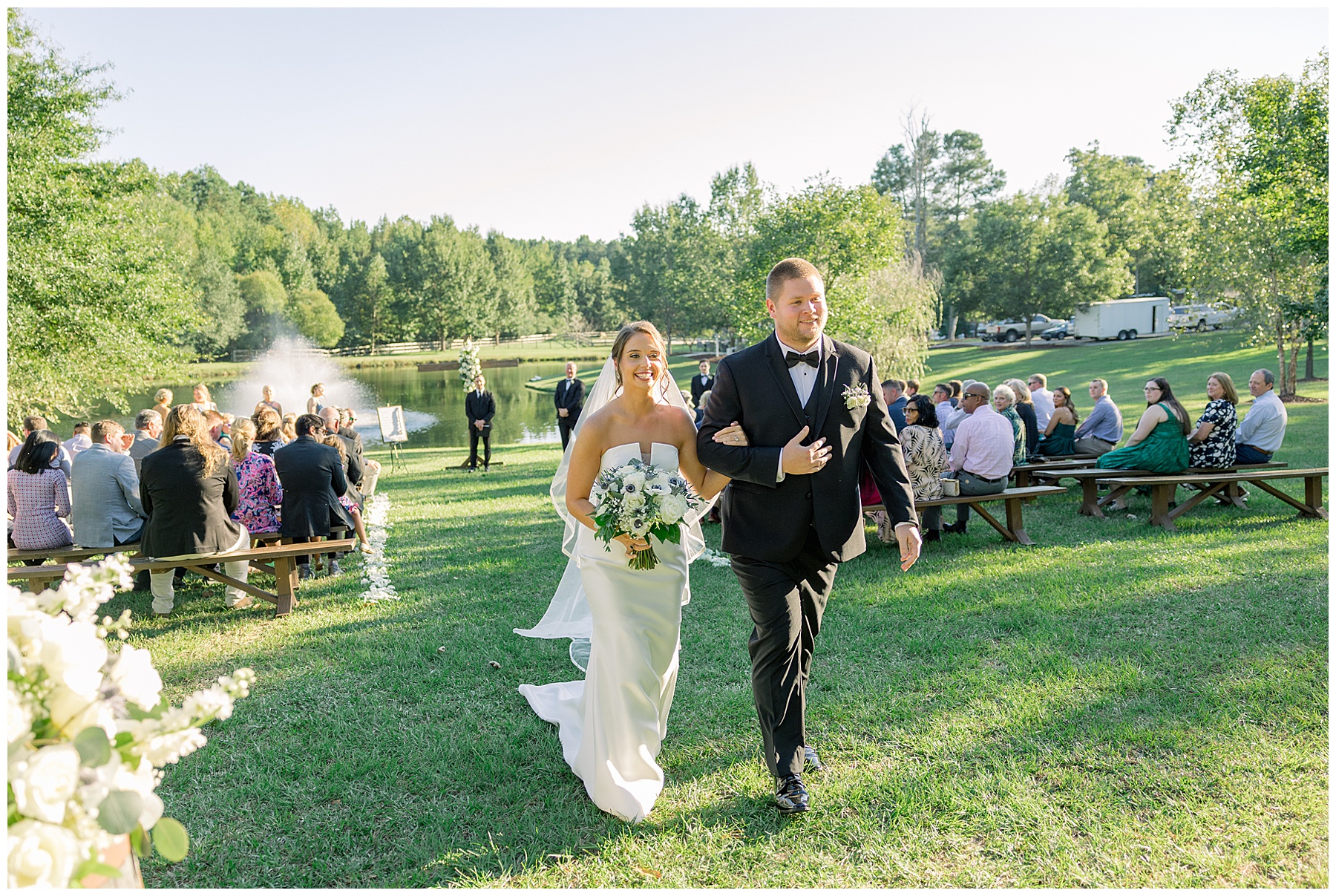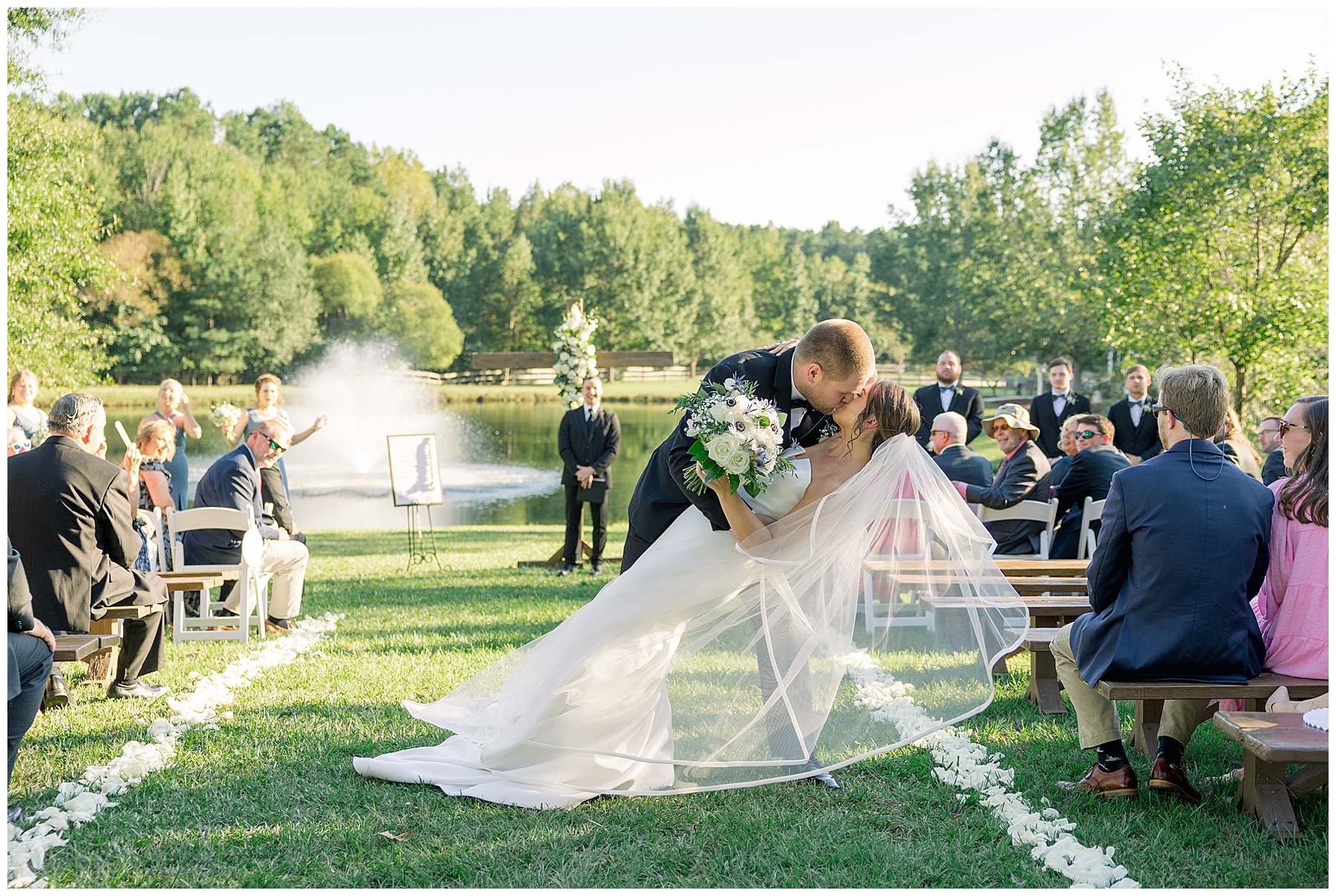 The ceremony was really special in front of the pond! Our pastor, Aaron Pierce, did a great job officiating. Since we’d photographed most of the photos pre-ceremony, they were able to take a second set of Bride & Groom portraits – and joined their cocktail hour for 30 minutes!