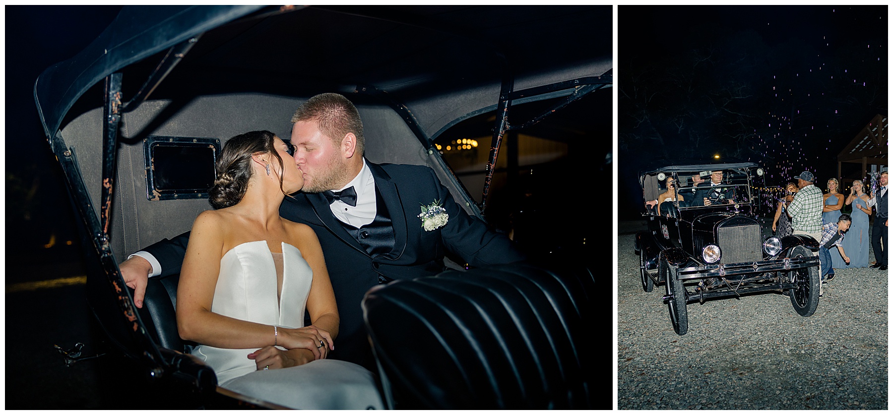 Allison & Logan left through a tunnel of bubbles into her dad’s Model T (that her parents actually had as their getaway car for THEIR wedding day!)