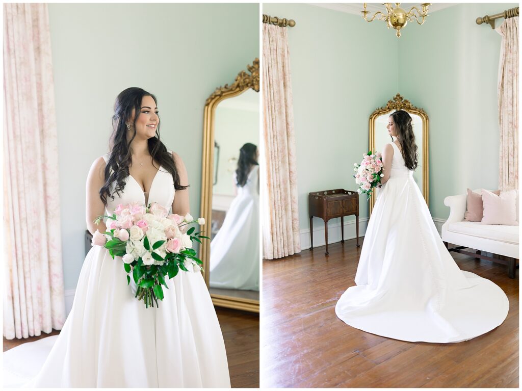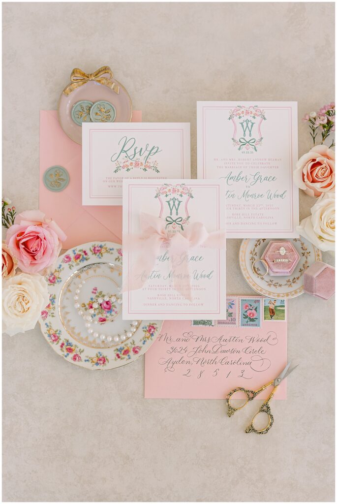 There’s no bigger honor than a sister of a former bride also booking us for her day! Amber was the Maid of Honor for her sister Ashley back in 2021 (click HERE to see Ashley’s wedding blog!) and now it was her turn as the bride!!! Amber and her sweet mom & sister planned an absolutely STUNNING wedding day – full of light pink feminine florals, vintage touches, and romantic vibes. Wow, oh wow it was SO GORGEOUS!!!!