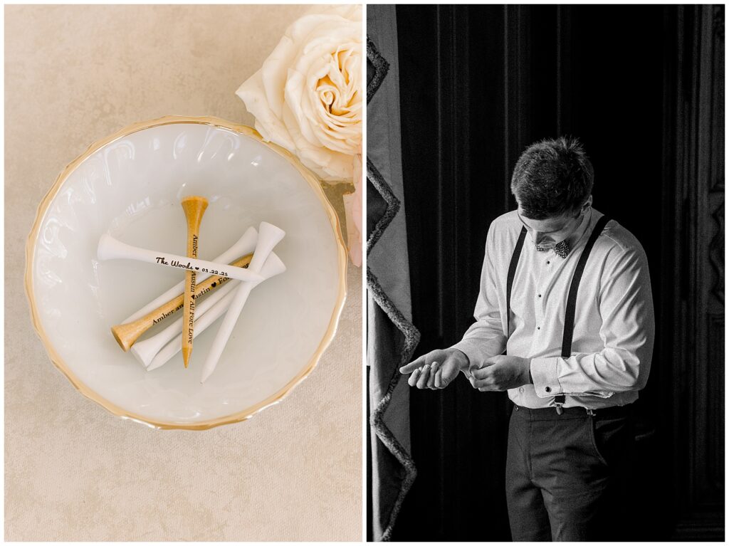 I started off the morning photographing details – including an invitation suite that I designed (soooo fun), along with some really special pieces: Austin’s grandfather’s watch, his dad’s wedding ring, his grandmother’s ring, Amber’s family’s heirloom jewelry pieces, among other special items!