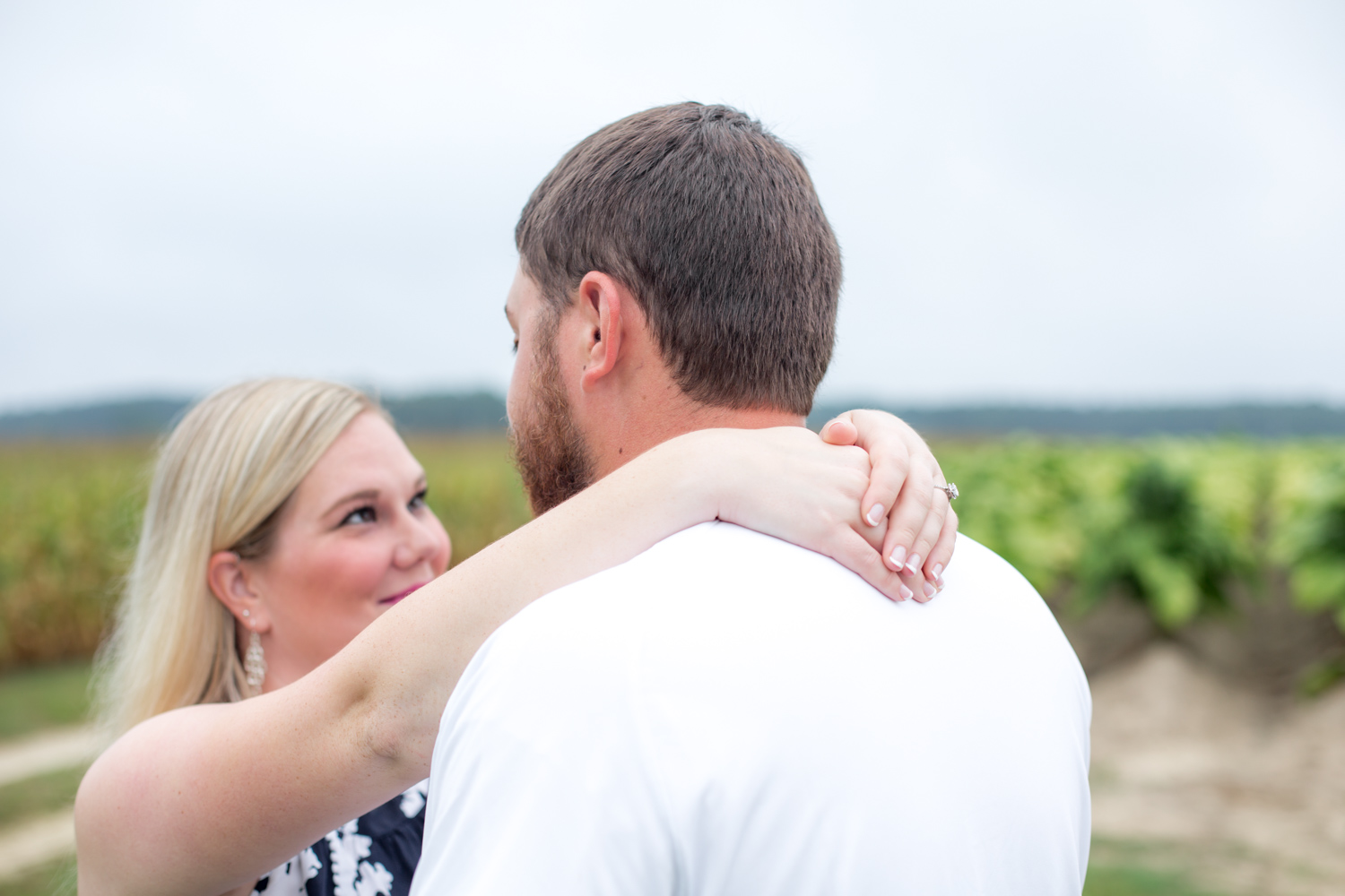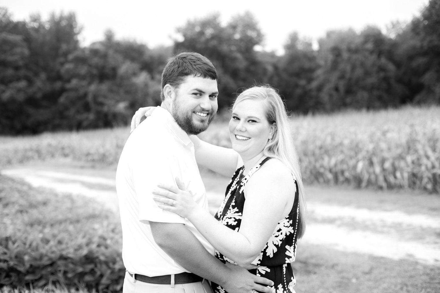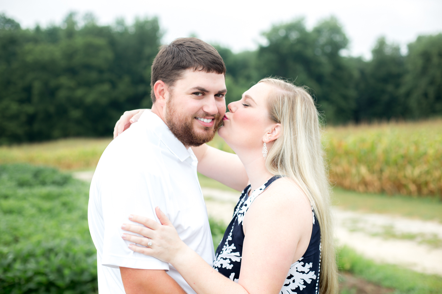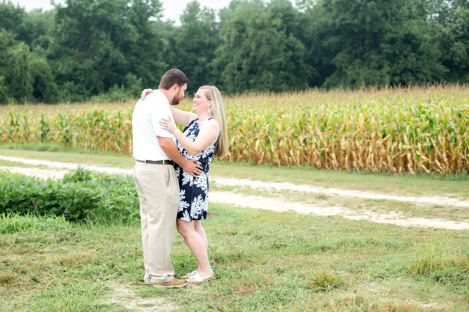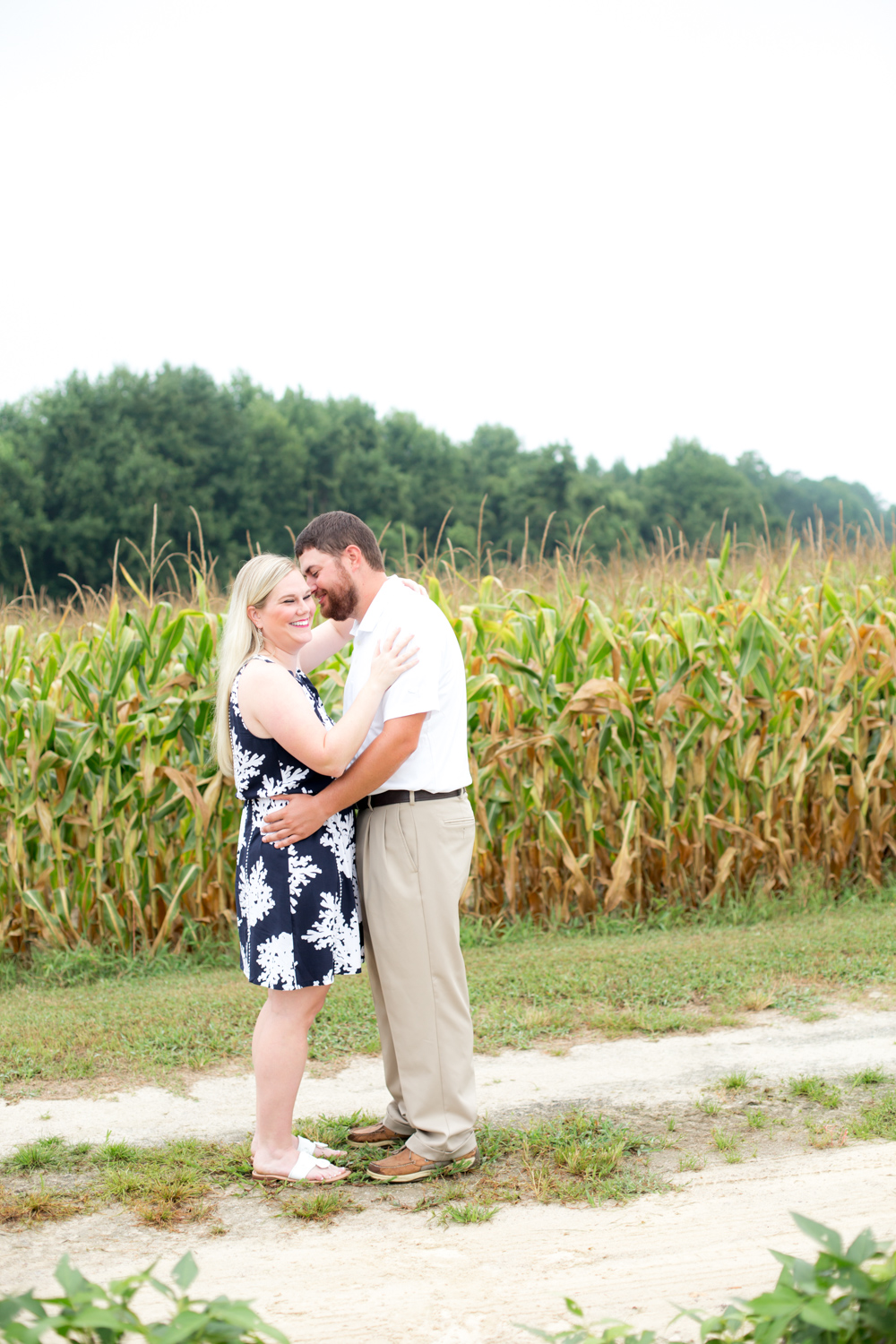 They both work at Beddingfield High School, and Bryant works with the Agriculture program there, and LOTS of farm animals. It only made PERFECT sense to have their Engagement Session out in corn & soybean fields! Right off the bat, Amber was smiling and laughing, and made shooting them so much fun. Now I see how Bryant convinced her to adopt a bunch of ducks from Beddingfield’s program – because she’s such a good sport! (PLUS she had to wake up at 5:00am to get ready, yet she was STILL smiling!!!)