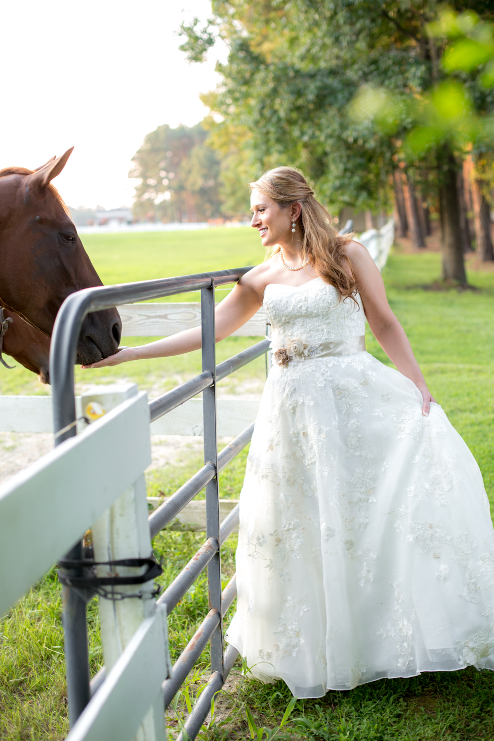 Amy loves the outdoors: nature, water, and horses. Shooting her Bridal Portraits at her wedding venue, Dean Plantation made perfect sense. We were blessed with a sunny day – but it was another hot July day! Phillip was a HUGE help for me as usual – he literally fanned Amy with the reflector during the ENTIRE shoot to give her a breeze and shoo away all the summer gnats from her face. Phil to the rescue yet again!