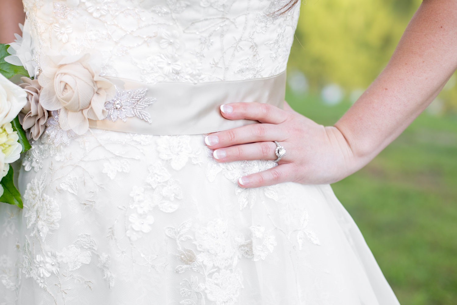 Amy’s hair and dress choice were so natural and feminine. Her hair was half down with curls, and looked perfect with her dress. Her wedding dress had several layers, each with a different texture and pattern. It was SO unique! I’d never seen a dress like hers before. Amy added a whimsical sash on her dress that was a cream color, and looked great around her waist.