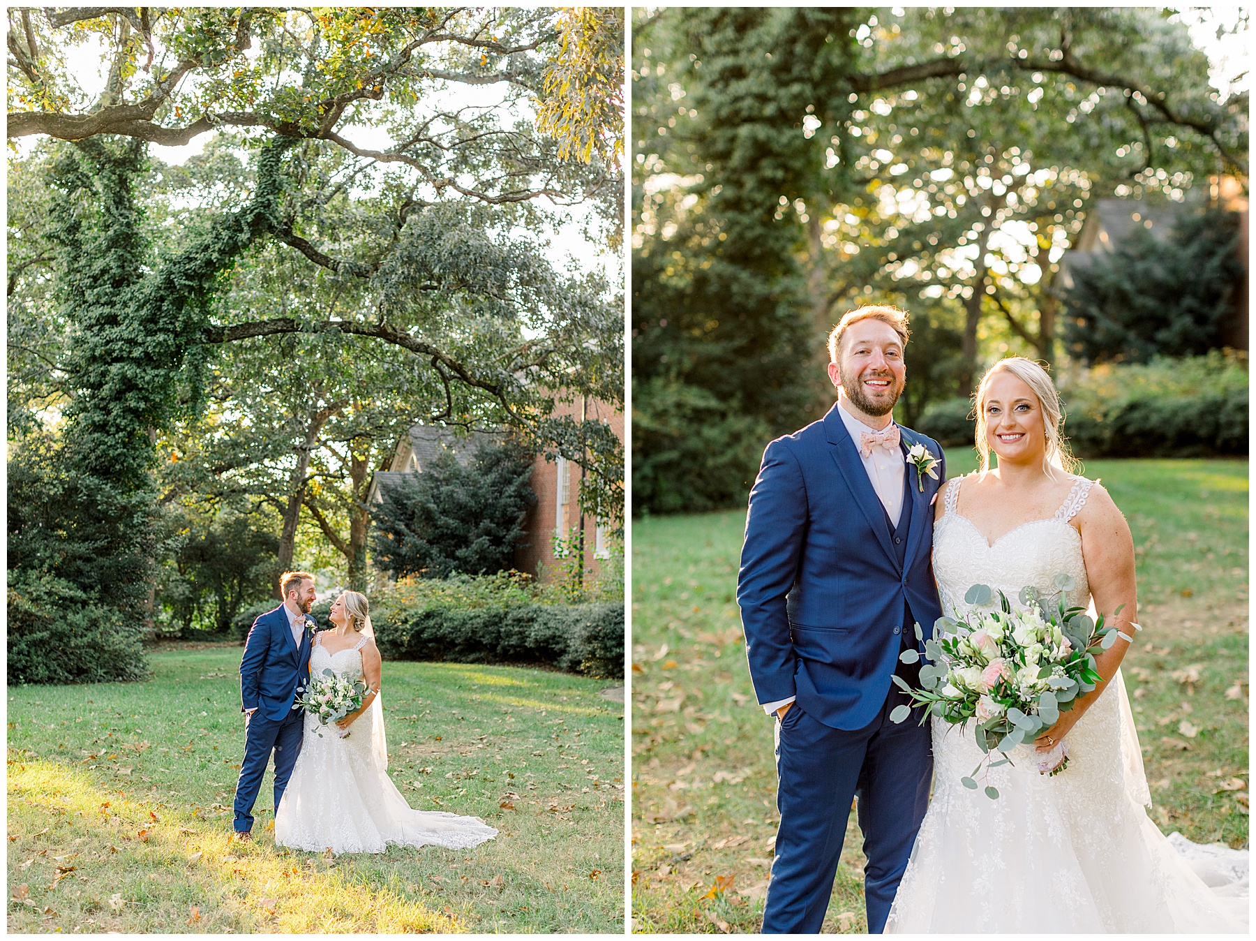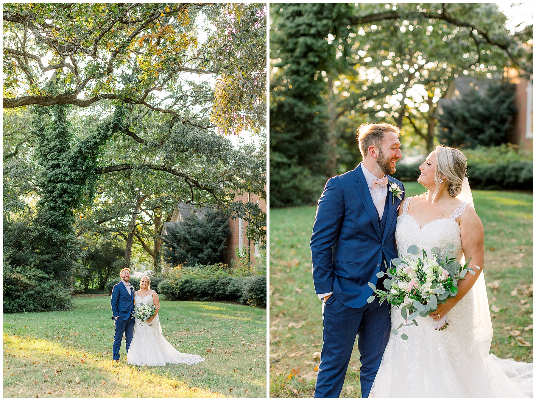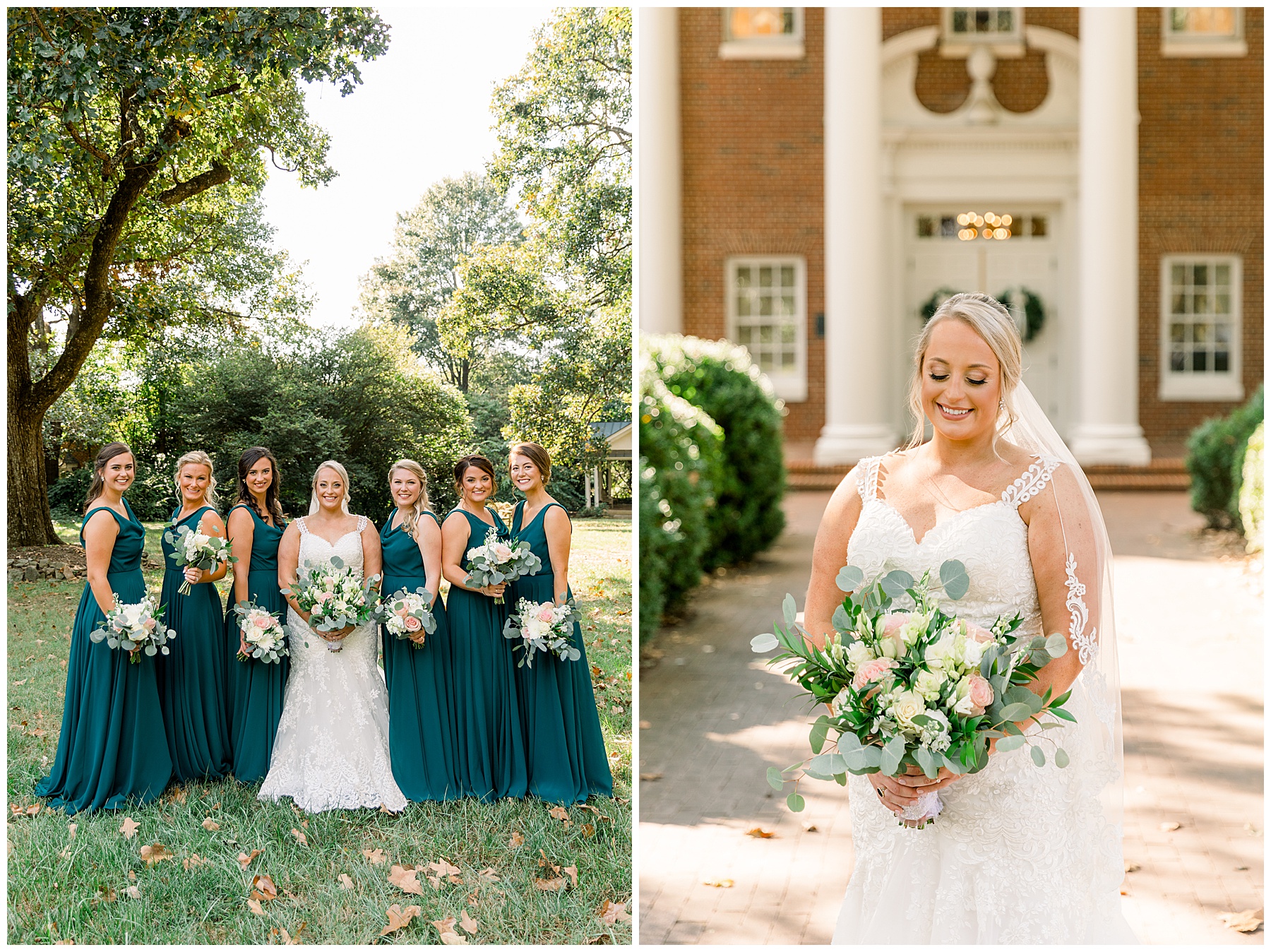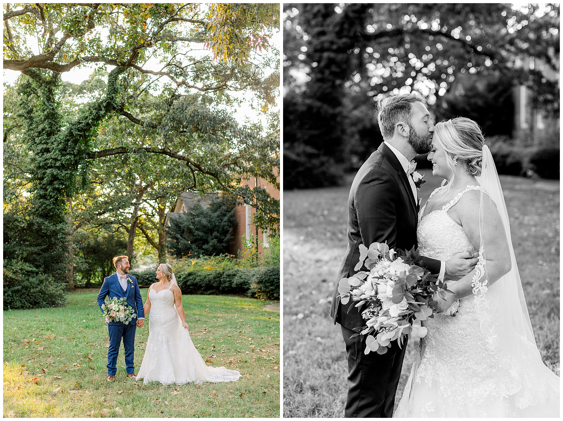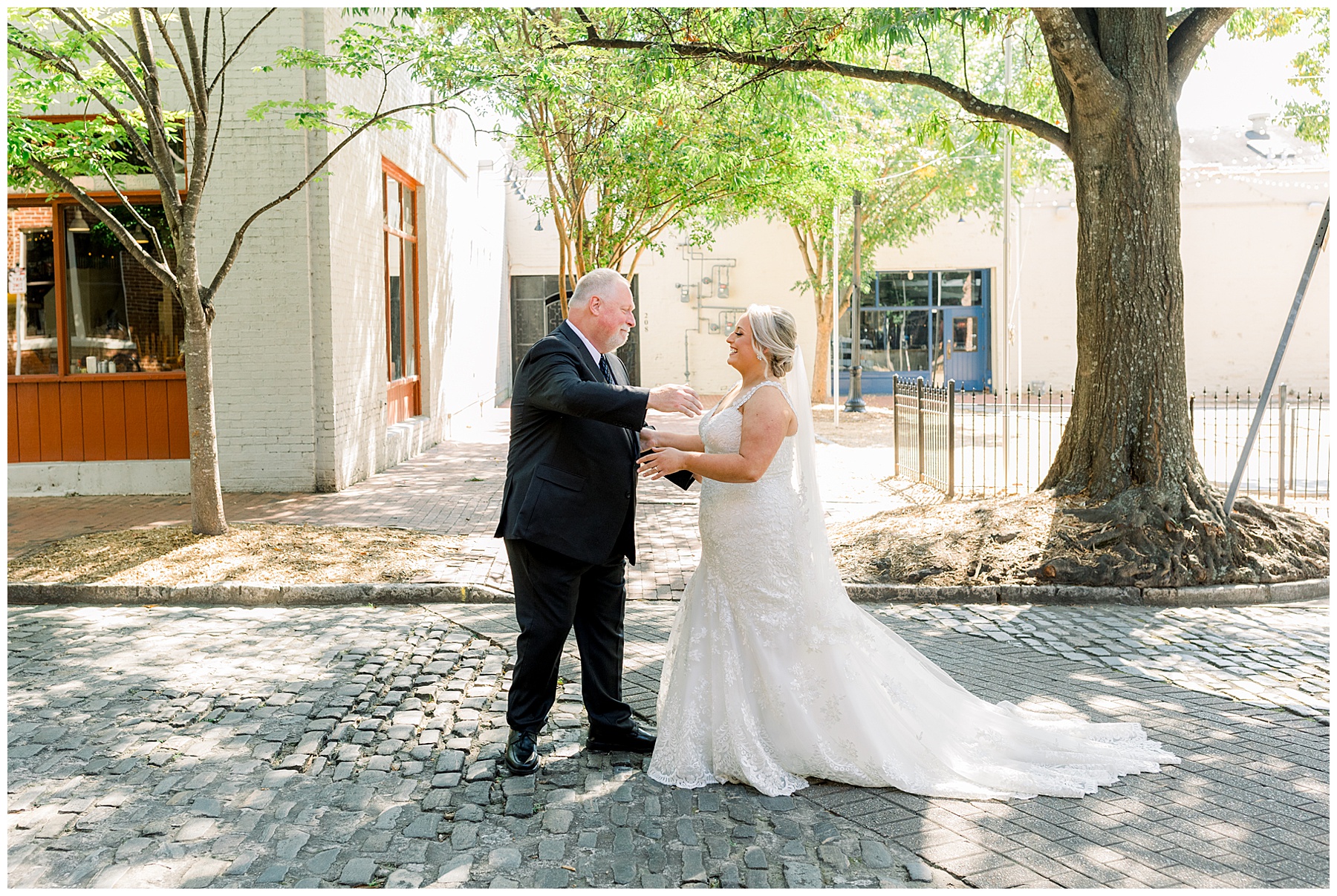 Anna had a First Look with her dad, and he’s just precious! His laugh is contagious, and they shared an emotional moment together on the cobblestones. After that, we all headed to Meredith College for the ceremony, and the ceremony was Christ-centered and such a testimony of their faith. I loved hearing how much work Matthew and Anna have put into pre-marital counseling and preparing for their marriage, to start off their life in such an important way. After the ceremony, we photographed their portraits with the prettiest backdrop of ivy-covered trees that were just MAGICAL and I loved that little light-soaked spot!