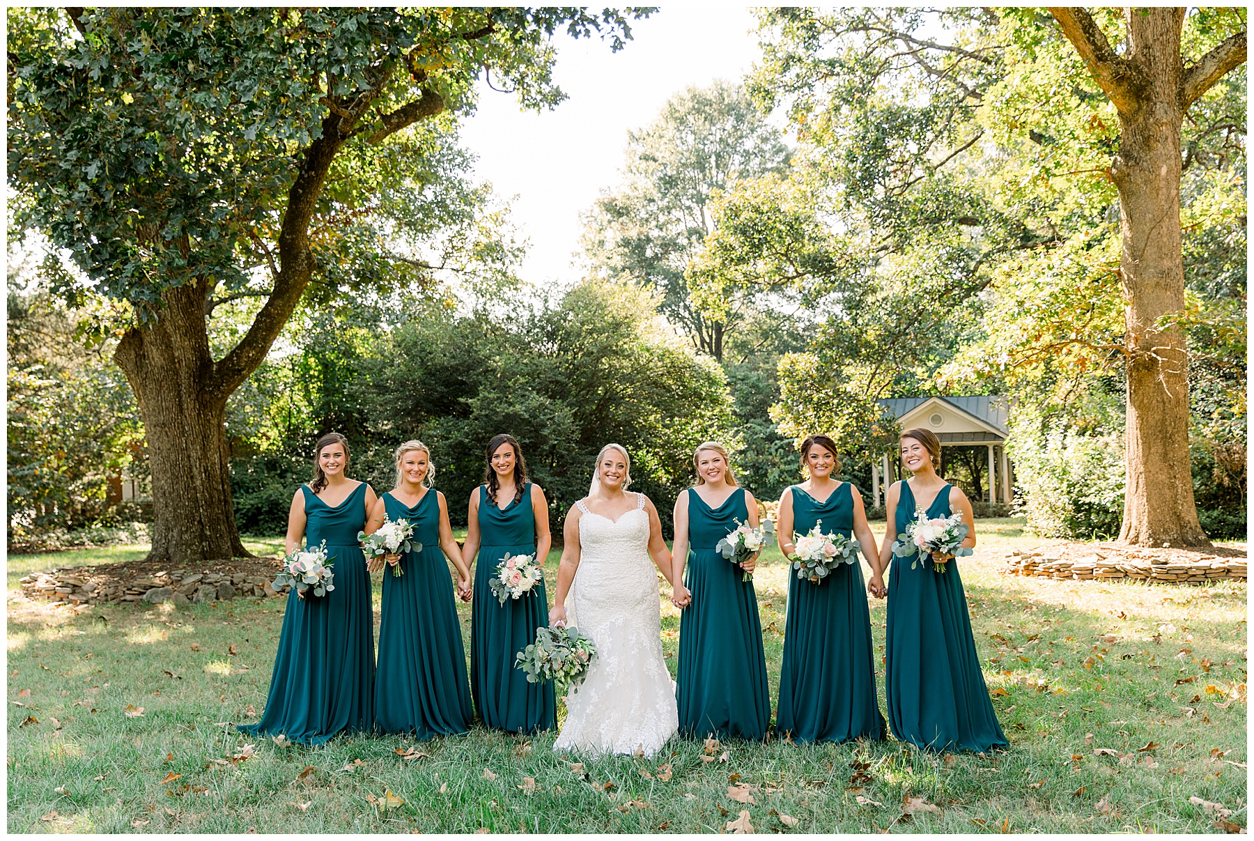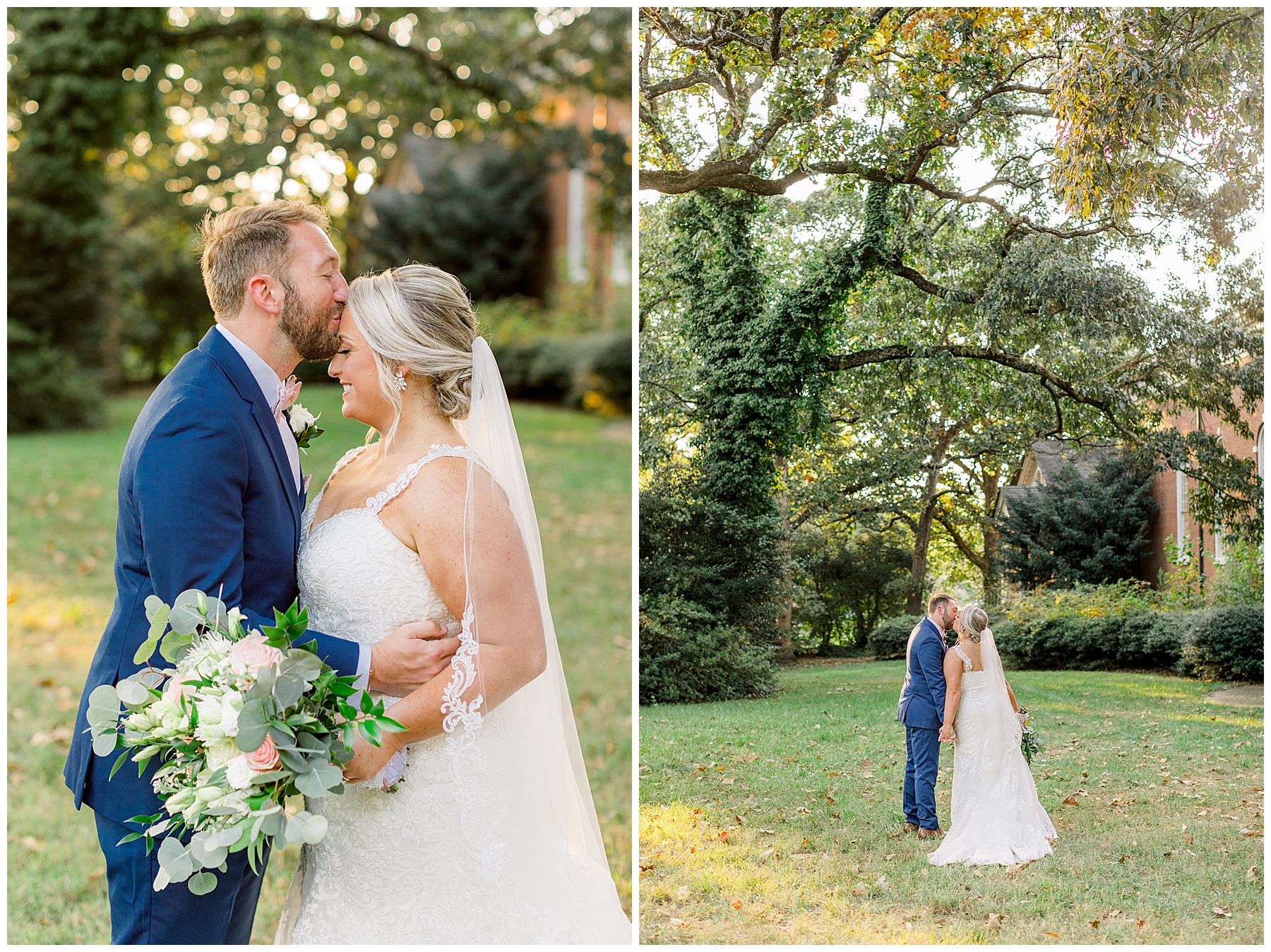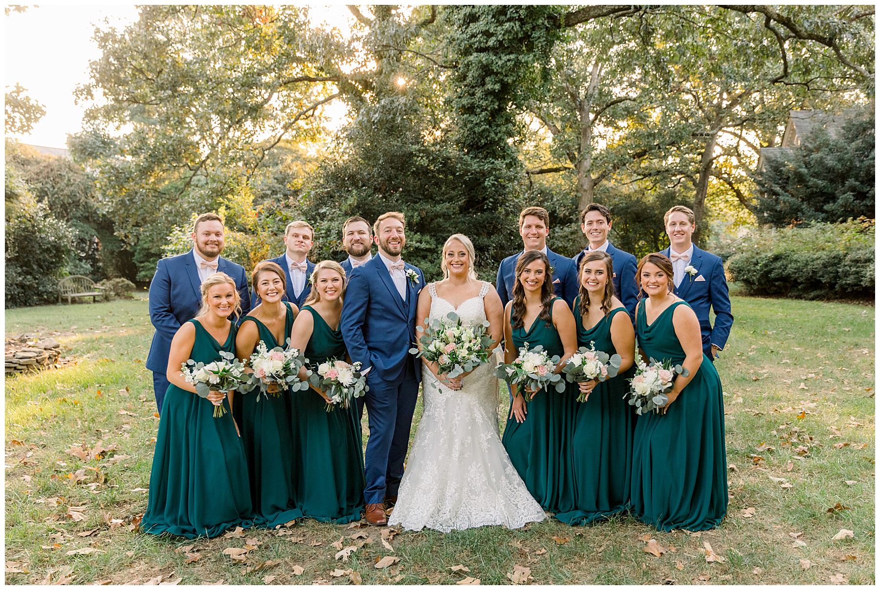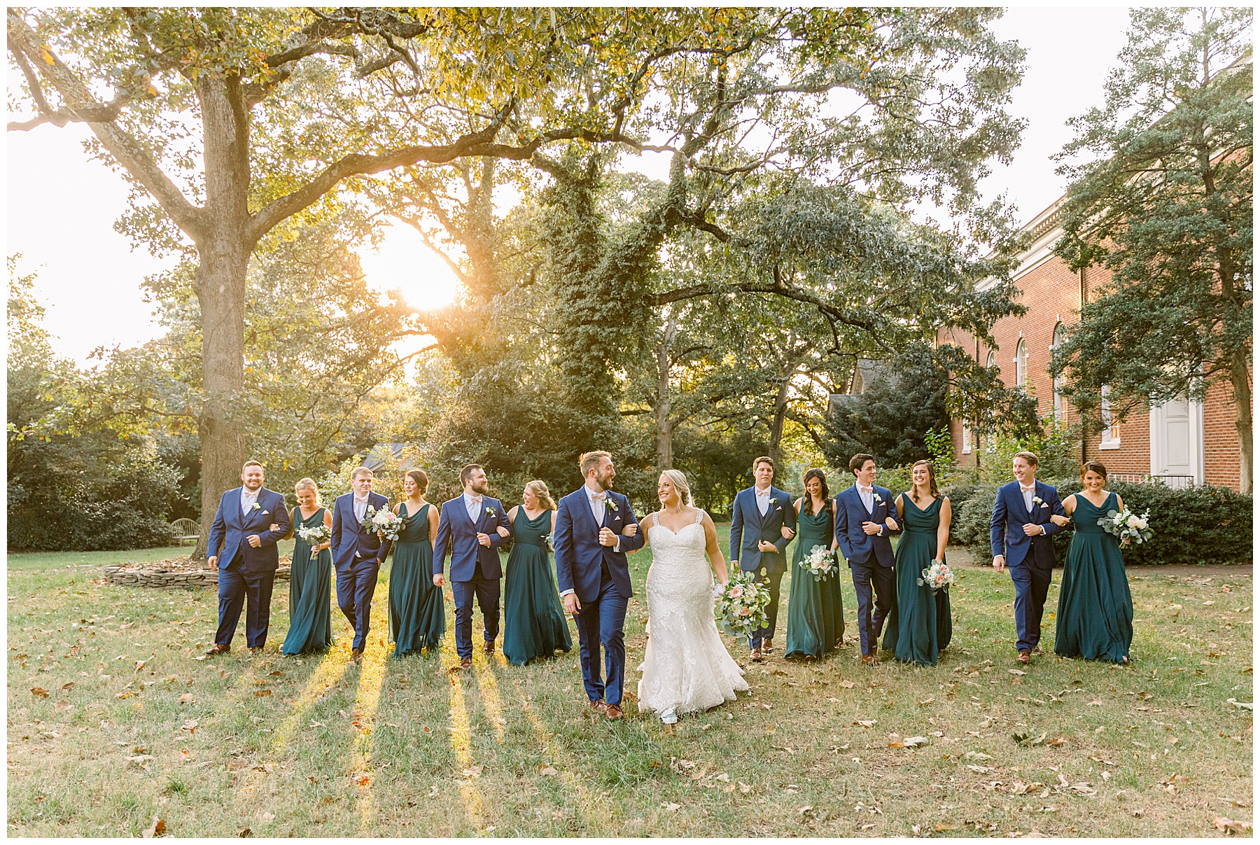 Anna had a First Look with her dad, and he’s just precious! His laugh is contagious, and they shared an emotional moment together on the cobblestones. After that, we all headed to Meredith College for the ceremony, and the ceremony was Christ-centered and such a testimony of their faith. I loved hearing how much work Matthew and Anna have put into pre-marital counseling and preparing for their marriage, to start off their life in such an important way. After the ceremony, we photographed their portraits with the prettiest backdrop of ivy-covered trees that were just MAGICAL and I loved that little light-soaked spot!