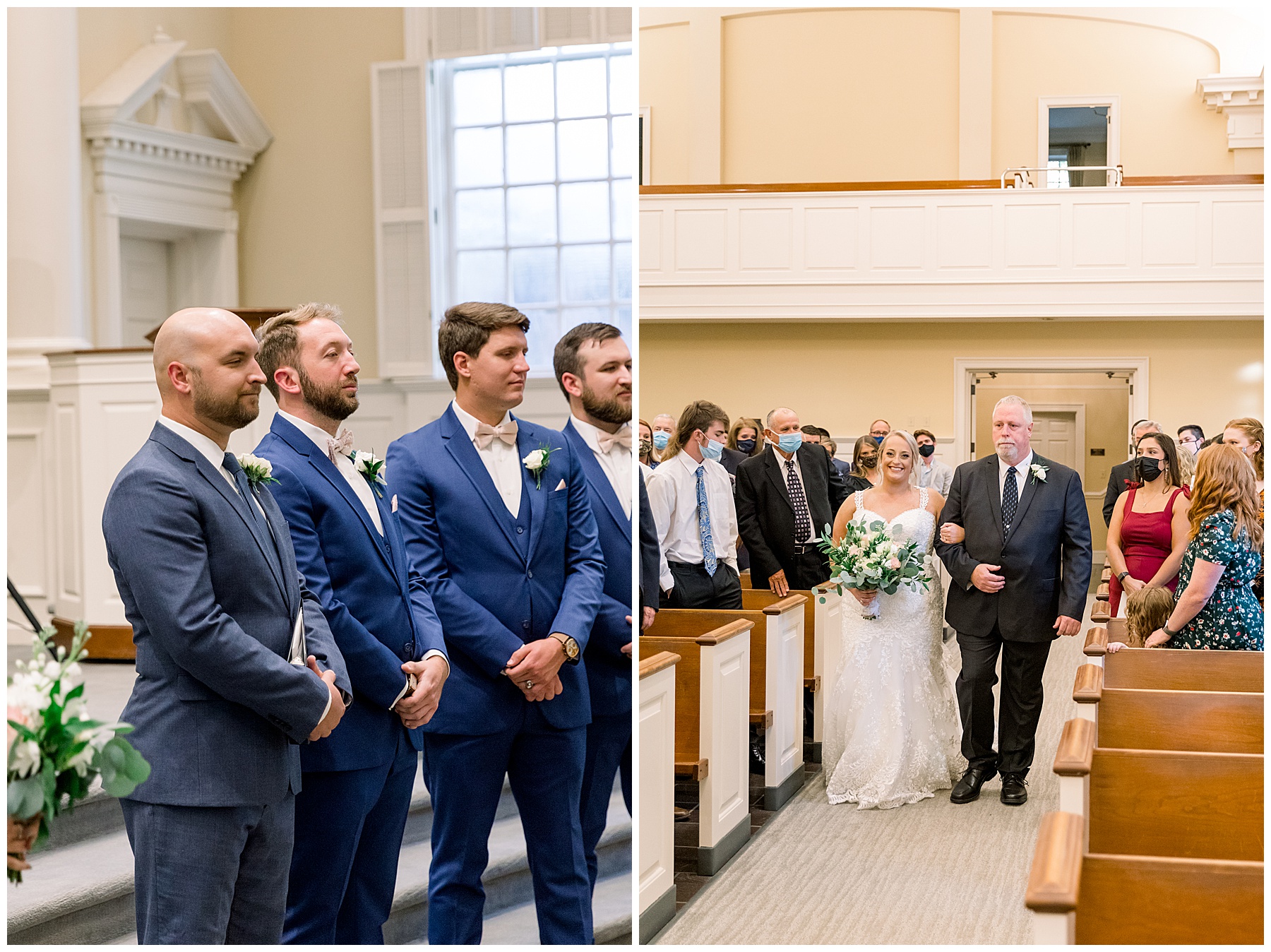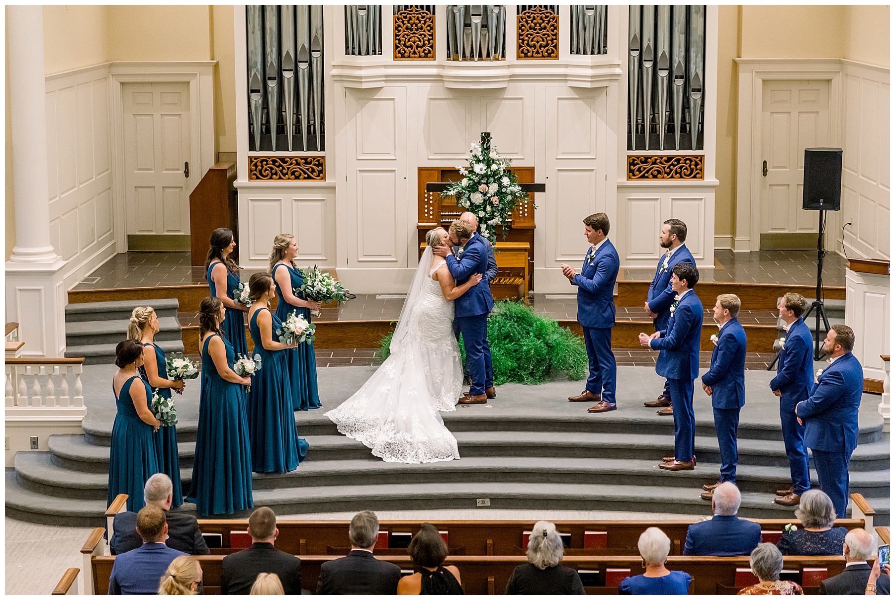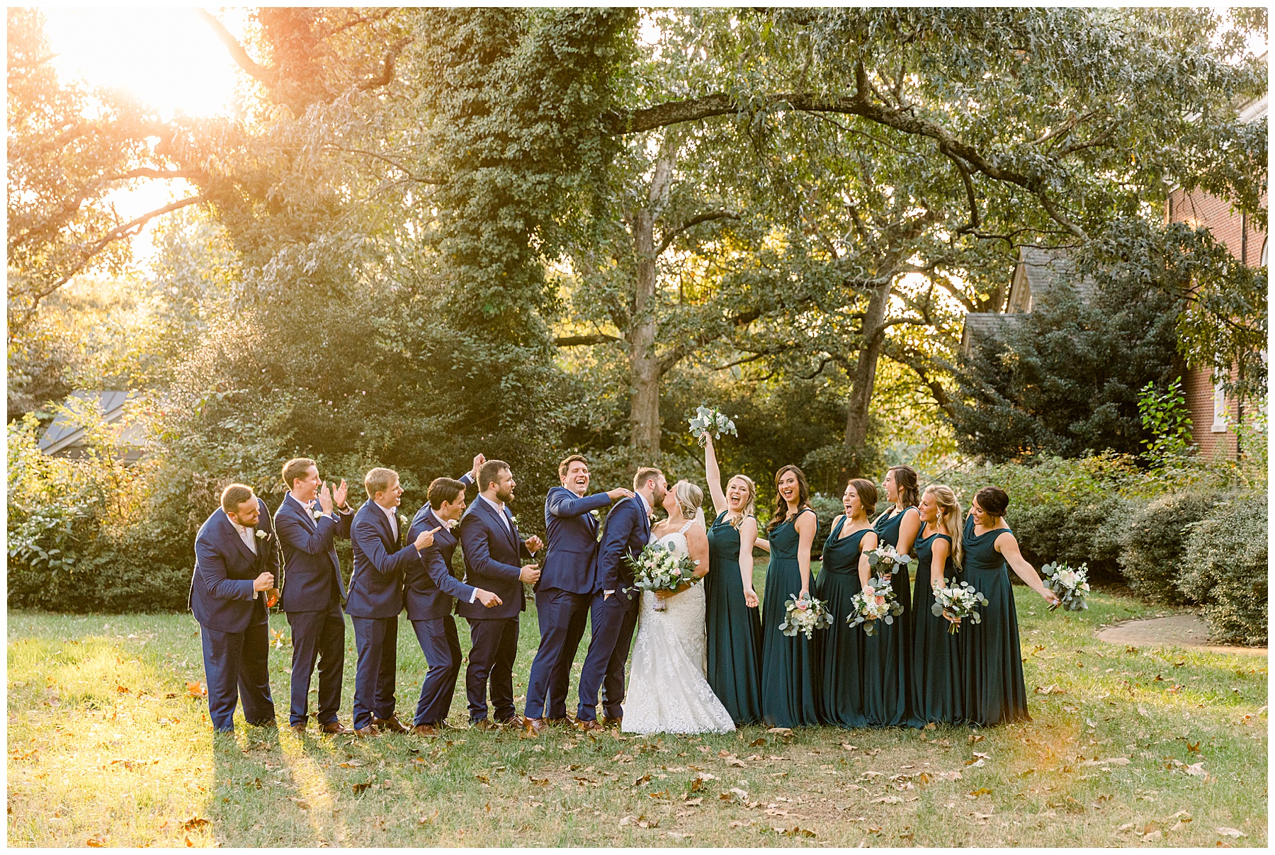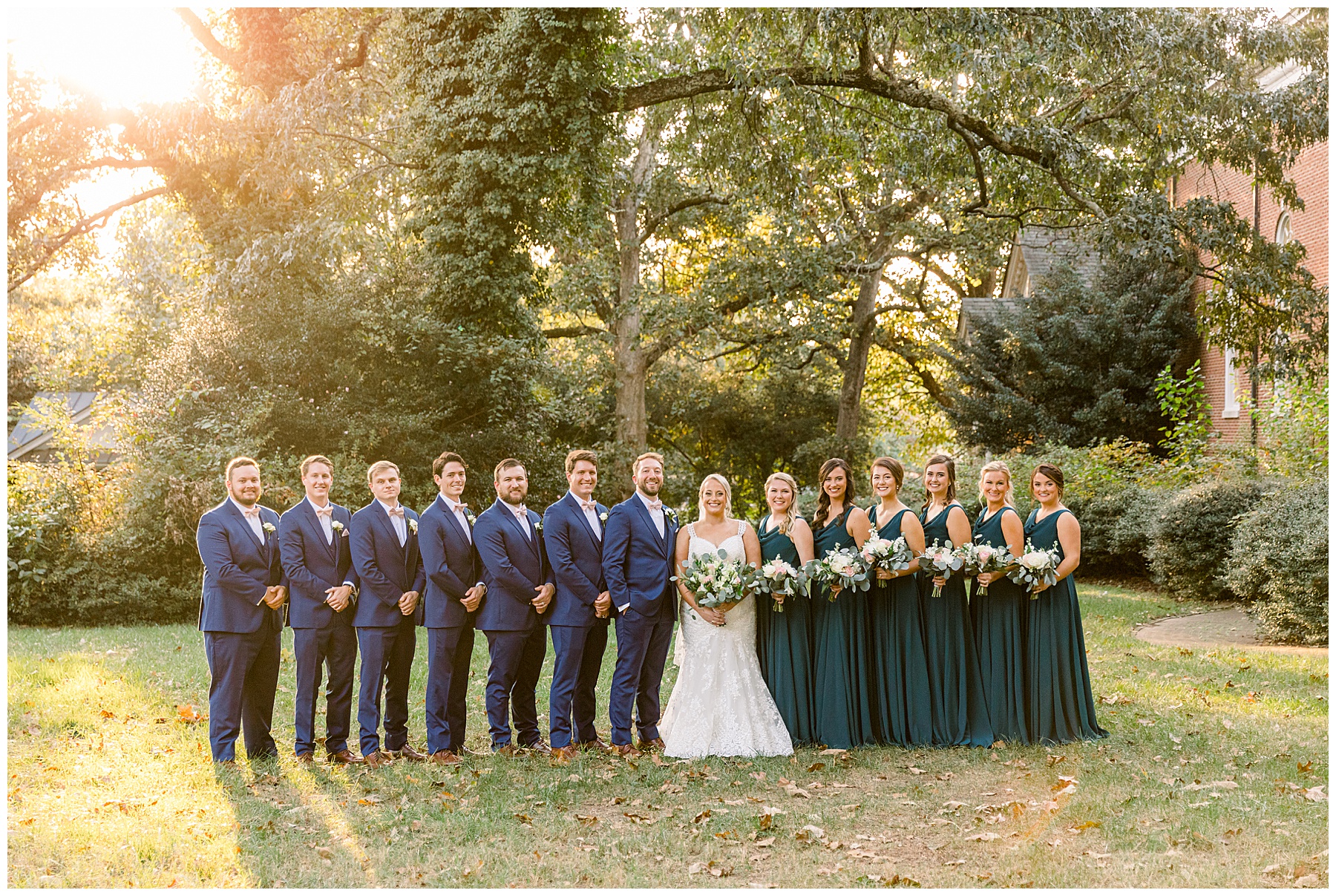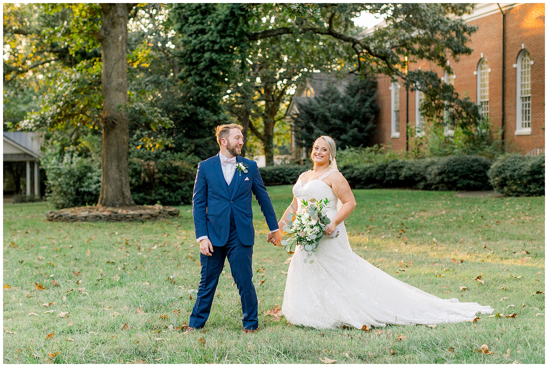 Anna had a First Look with her dad, and he’s just precious! His laugh is contagious, and they shared an emotional moment together on the cobblestones. After that, we all headed to Meredith College for the ceremony, and the ceremony was Christ-centered and such a testimony of their faith. I loved hearing how much work Matthew and Anna have put into pre-marital counseling and preparing for their marriage, to start off their life in such an important way. After the ceremony, we photographed their portraits with the prettiest backdrop of ivy-covered trees that were just MAGICAL and I loved that little light-soaked spot!