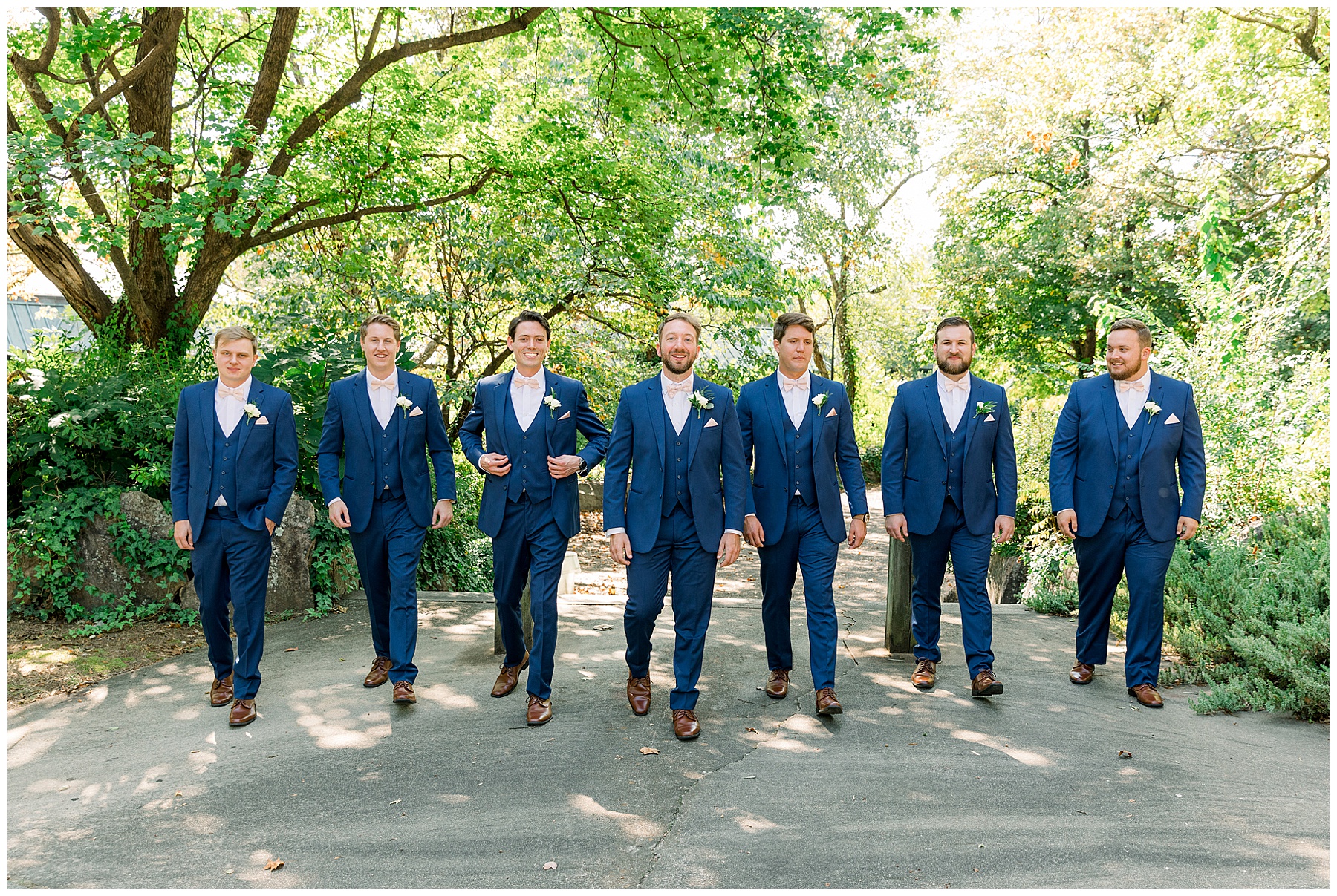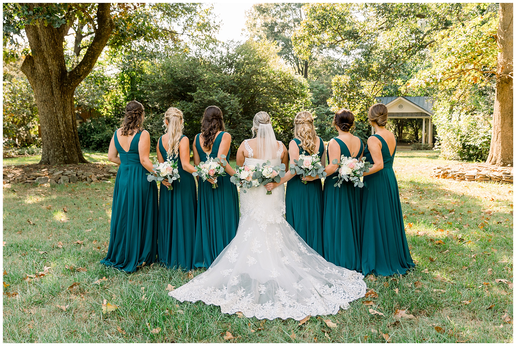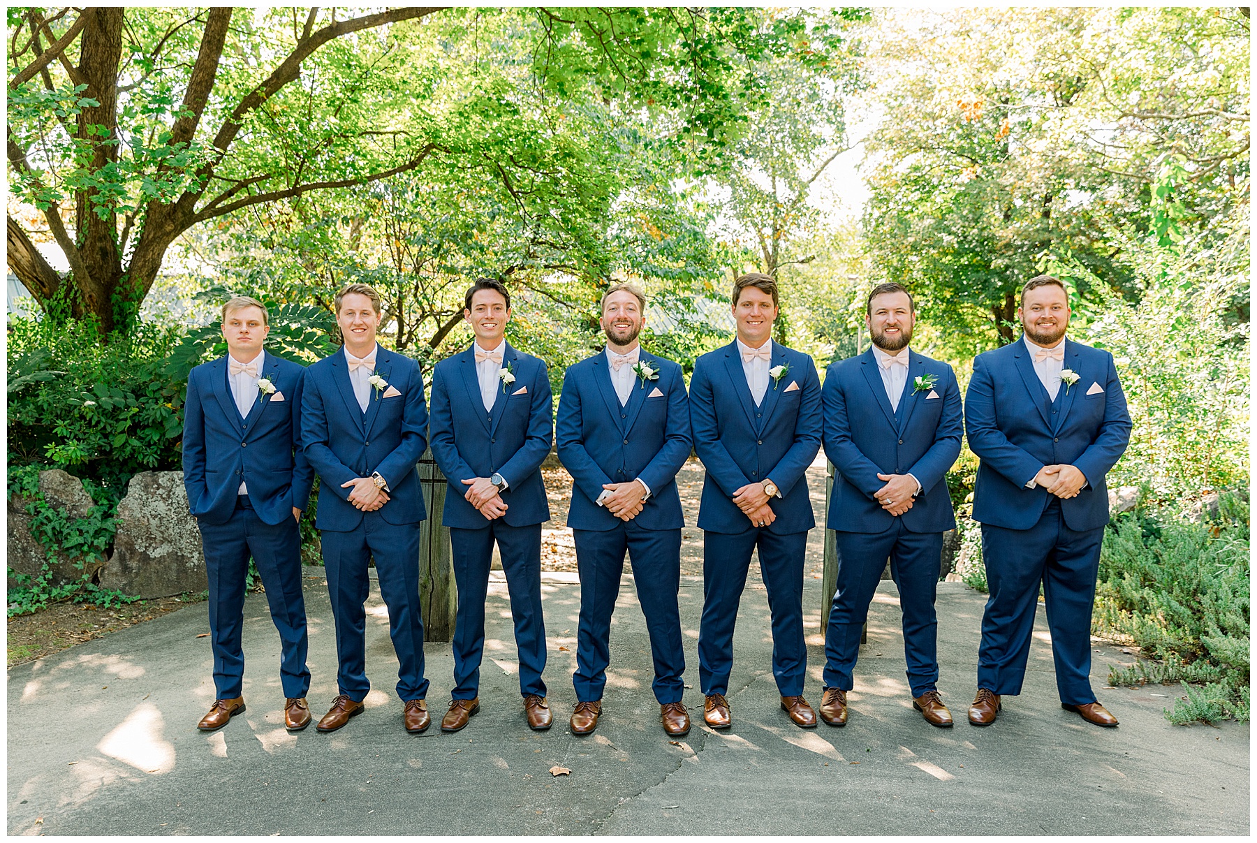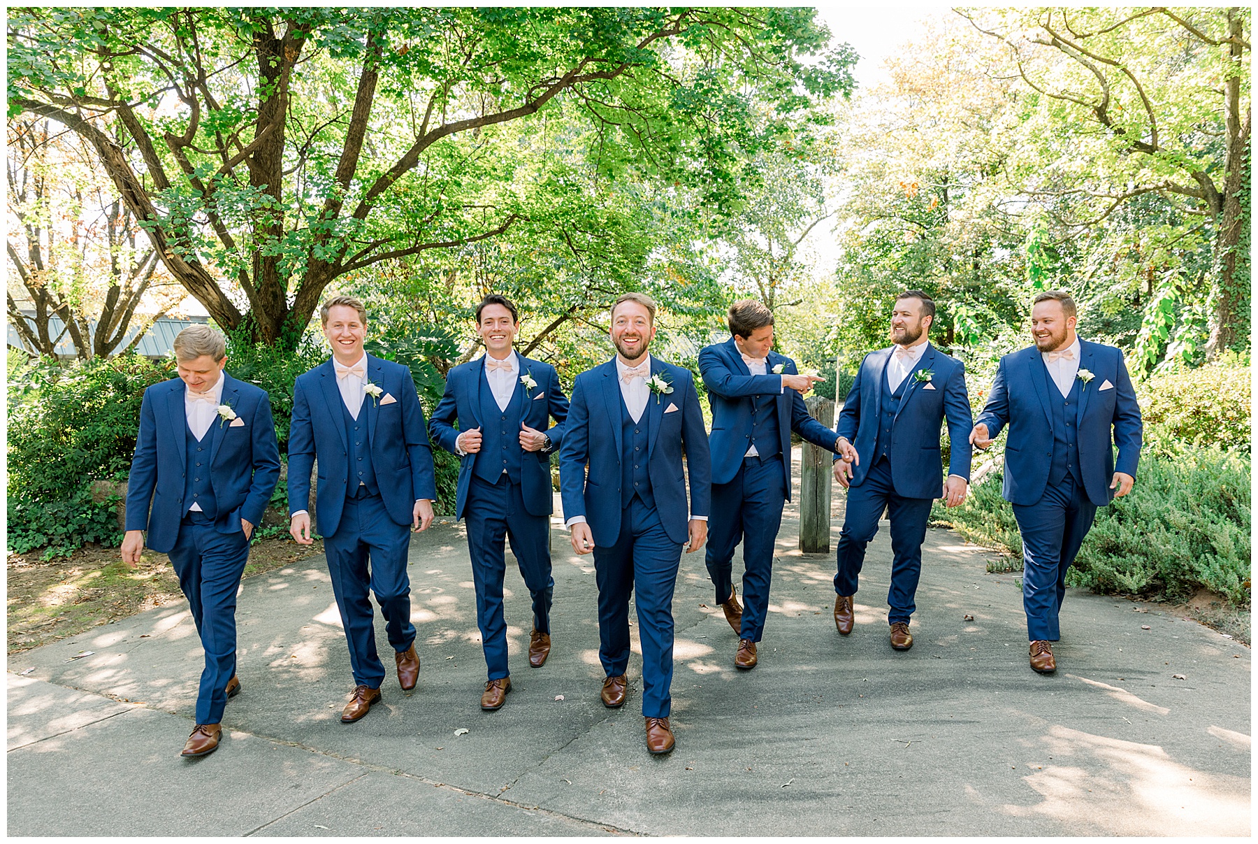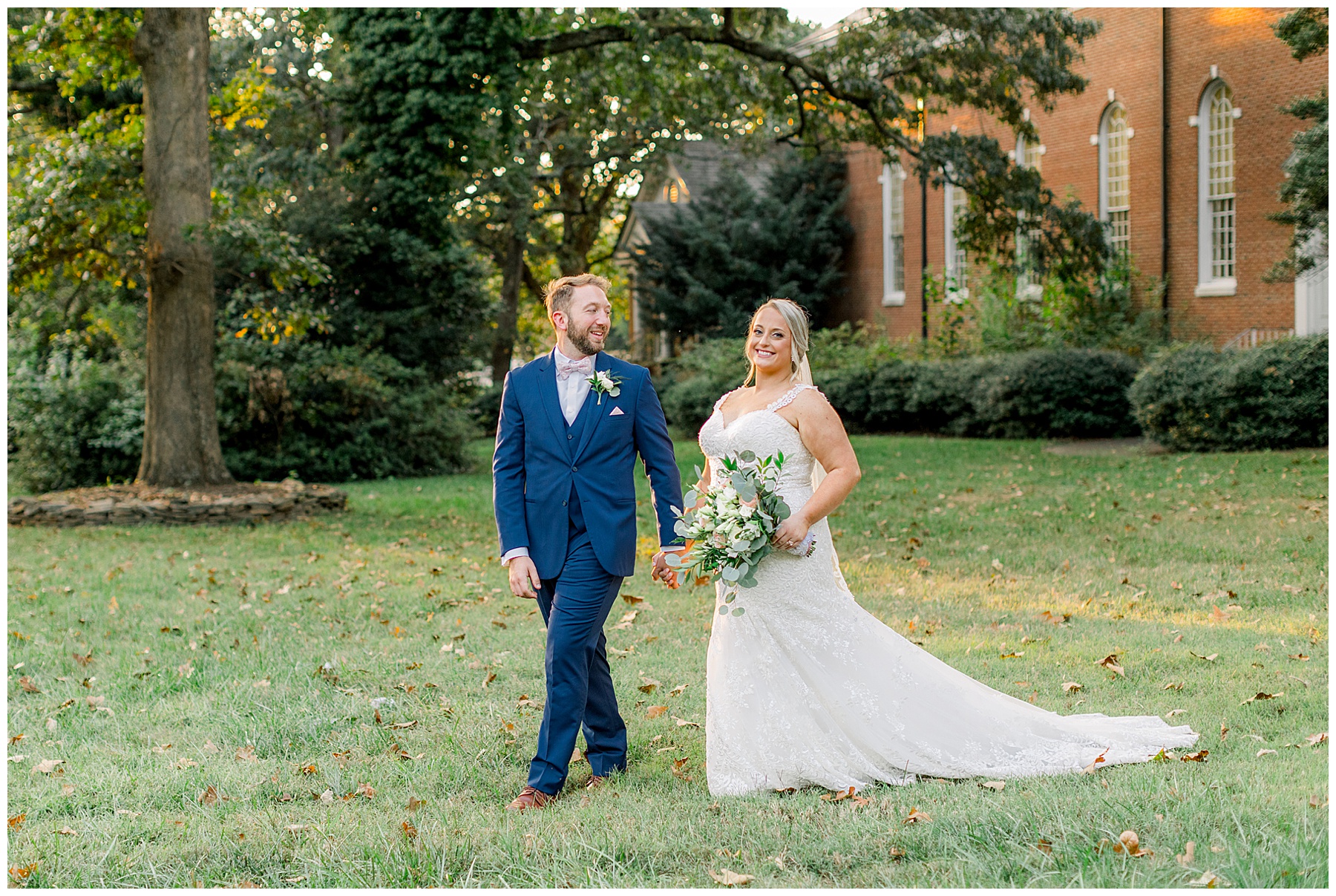 Anna had a First Look with her dad, and he’s just precious! His laugh is contagious, and they shared an emotional moment together on the cobblestones. After that, we all headed to Meredith College for the ceremony, and the ceremony was Christ-centered and such a testimony of their faith. I loved hearing how much work Matthew and Anna have put into pre-marital counseling and preparing for their marriage, to start off their life in such an important way. After the ceremony, we photographed their portraits with the prettiest backdrop of ivy-covered trees that were just MAGICAL and I loved that little light-soaked spot!