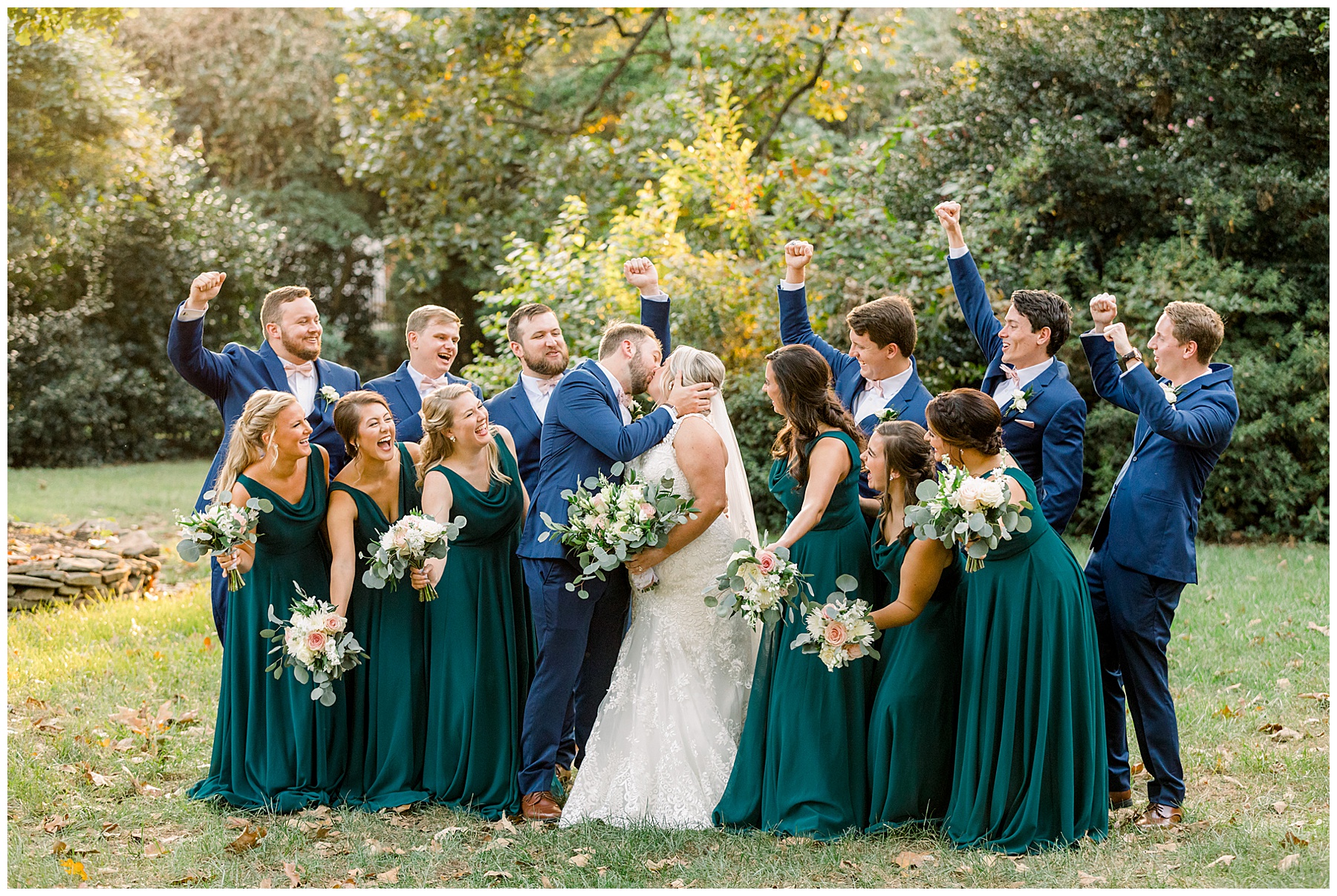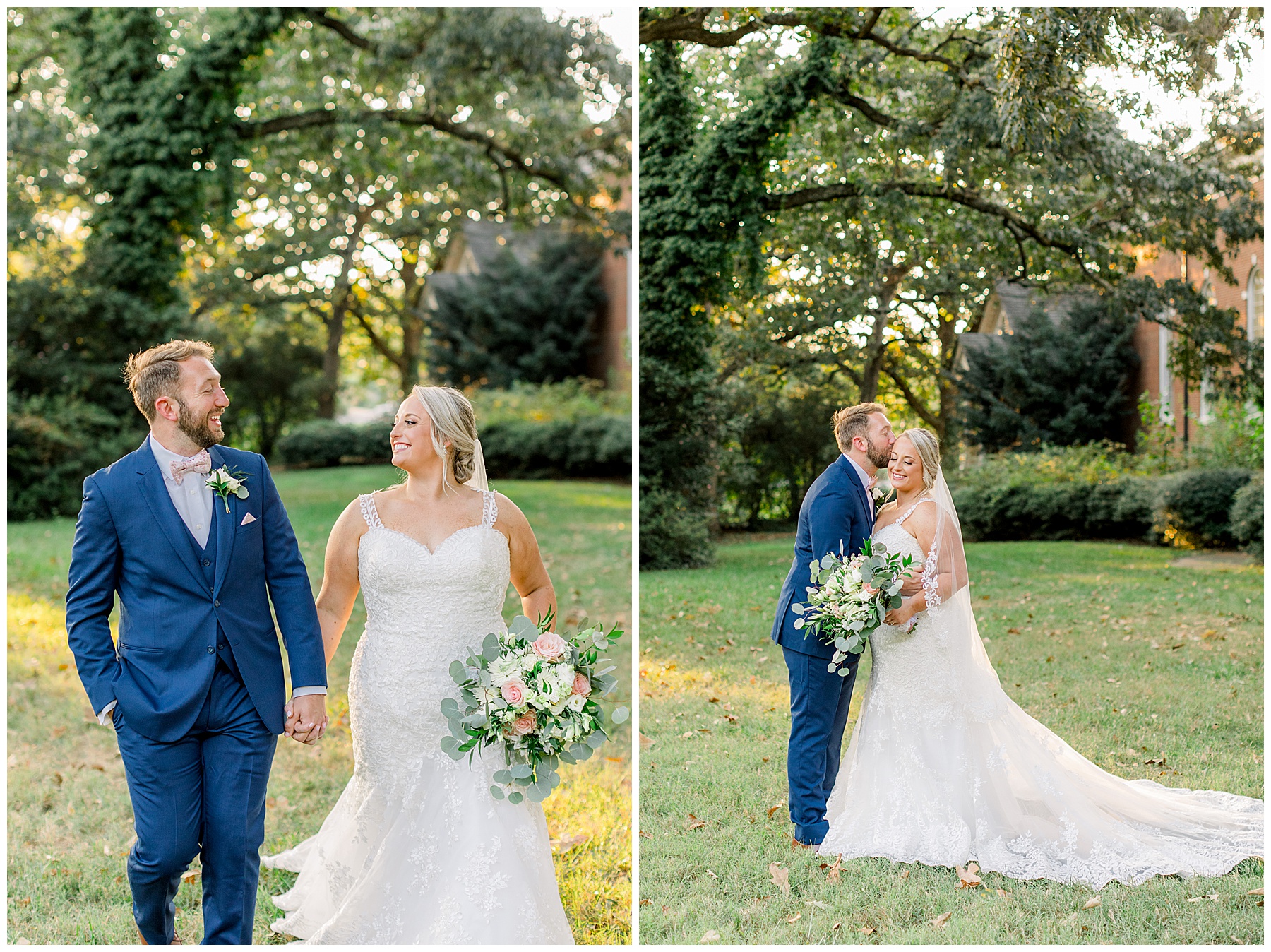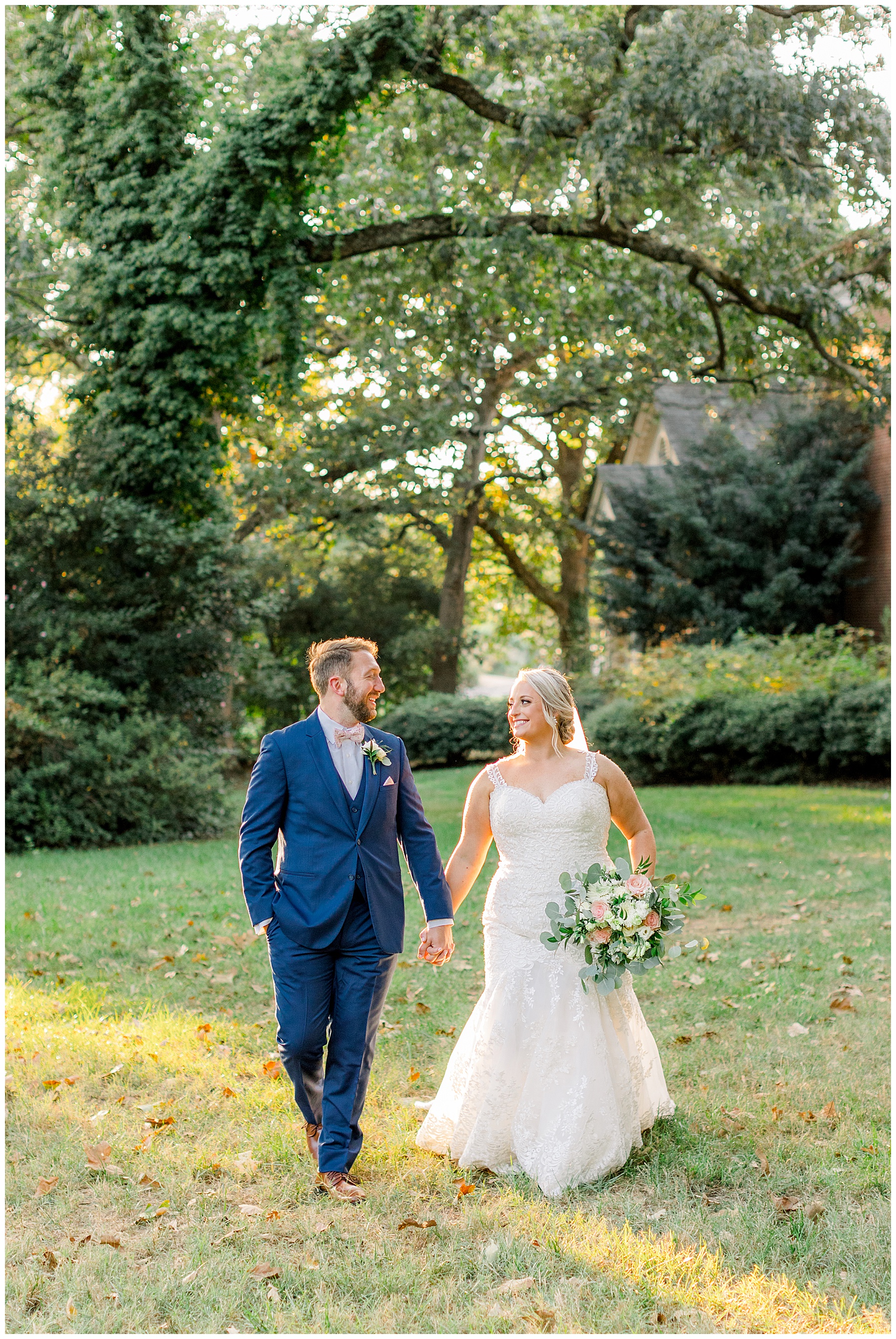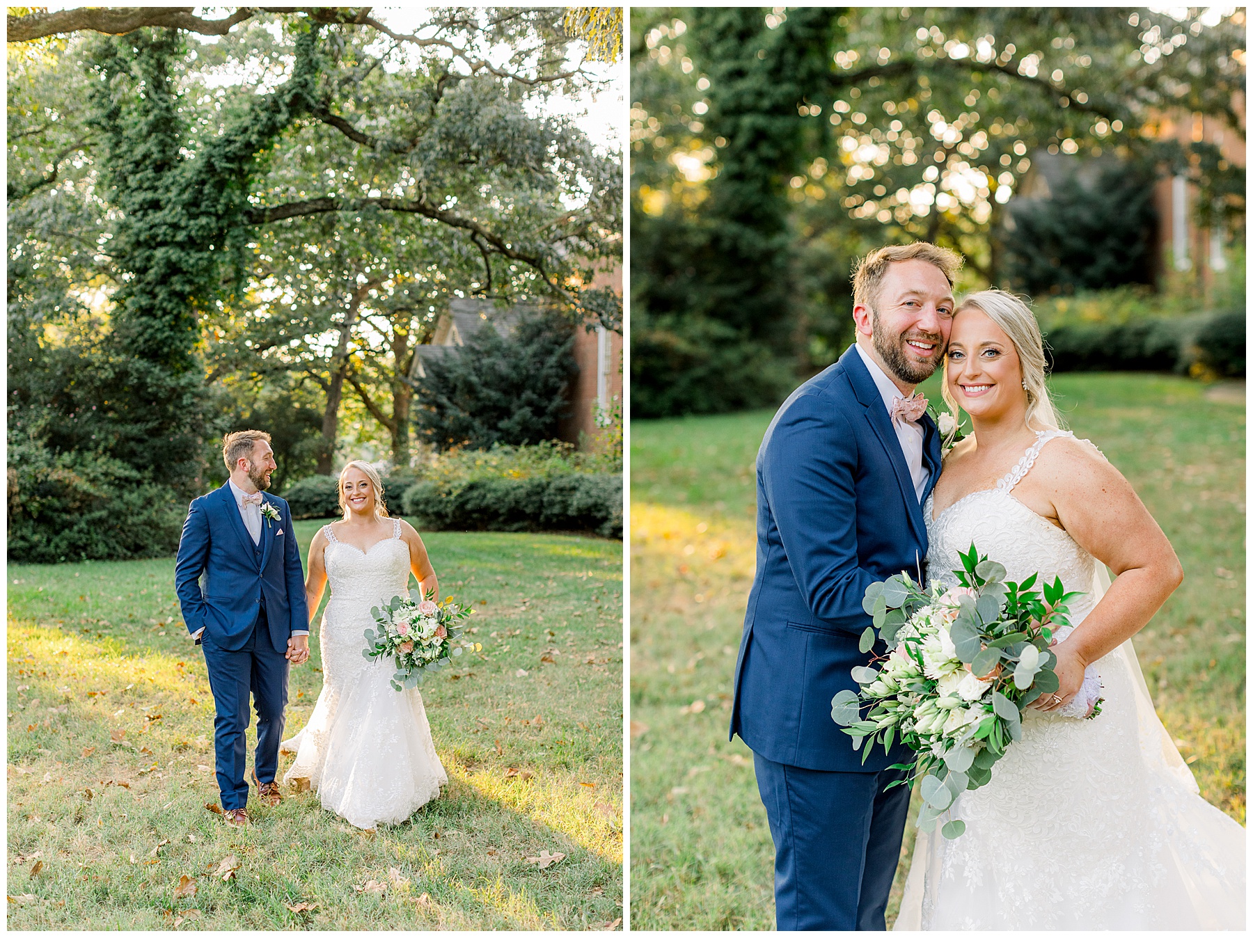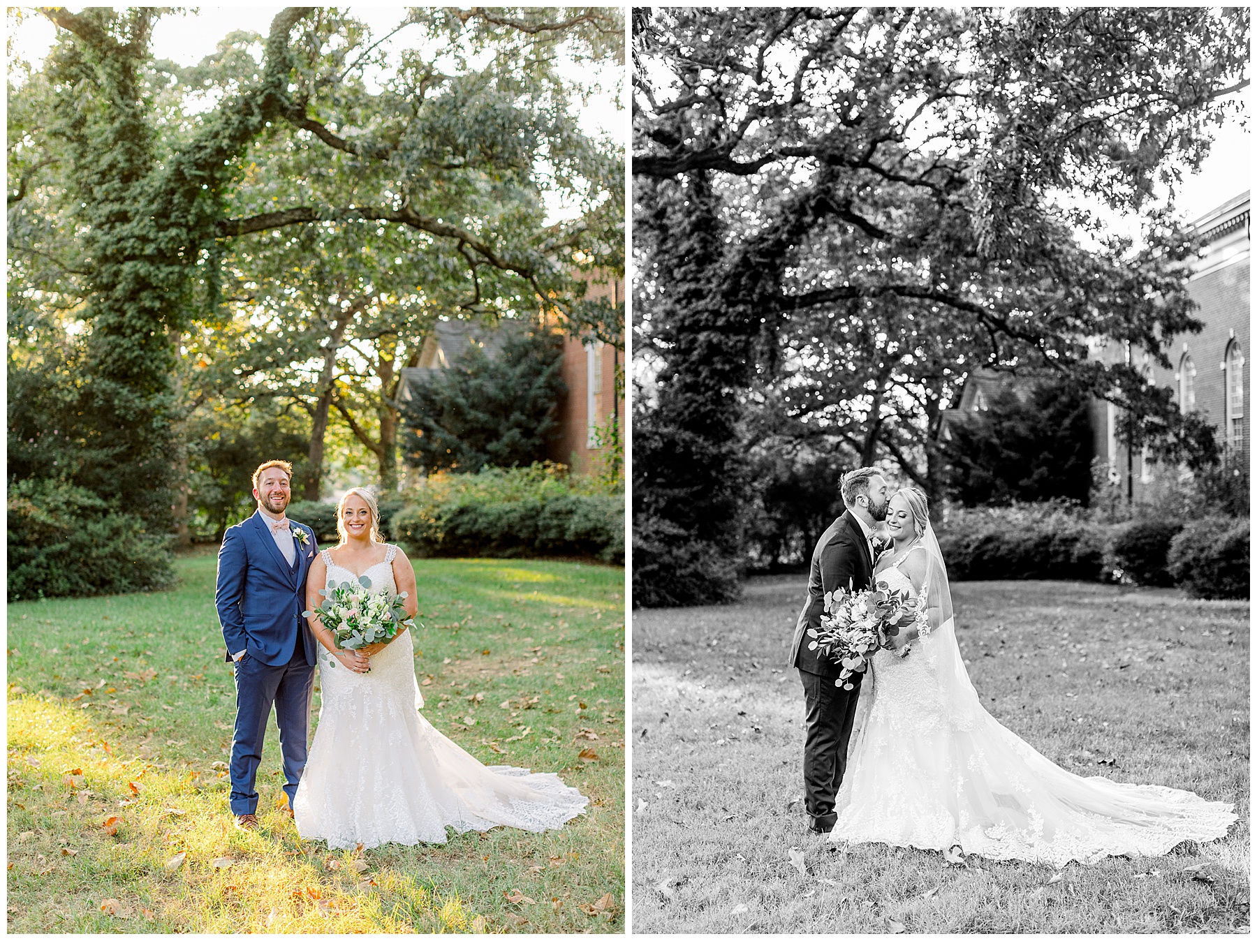 Anna had a First Look with her dad, and he’s just precious! His laugh is contagious, and they shared an emotional moment together on the cobblestones. After that, we all headed to Meredith College for the ceremony, and the ceremony was Christ-centered and such a testimony of their faith. I loved hearing how much work Matthew and Anna have put into pre-marital counseling and preparing for their marriage, to start off their life in such an important way. After the ceremony, we photographed their portraits with the prettiest backdrop of ivy-covered trees that were just MAGICAL and I loved that little light-soaked spot!