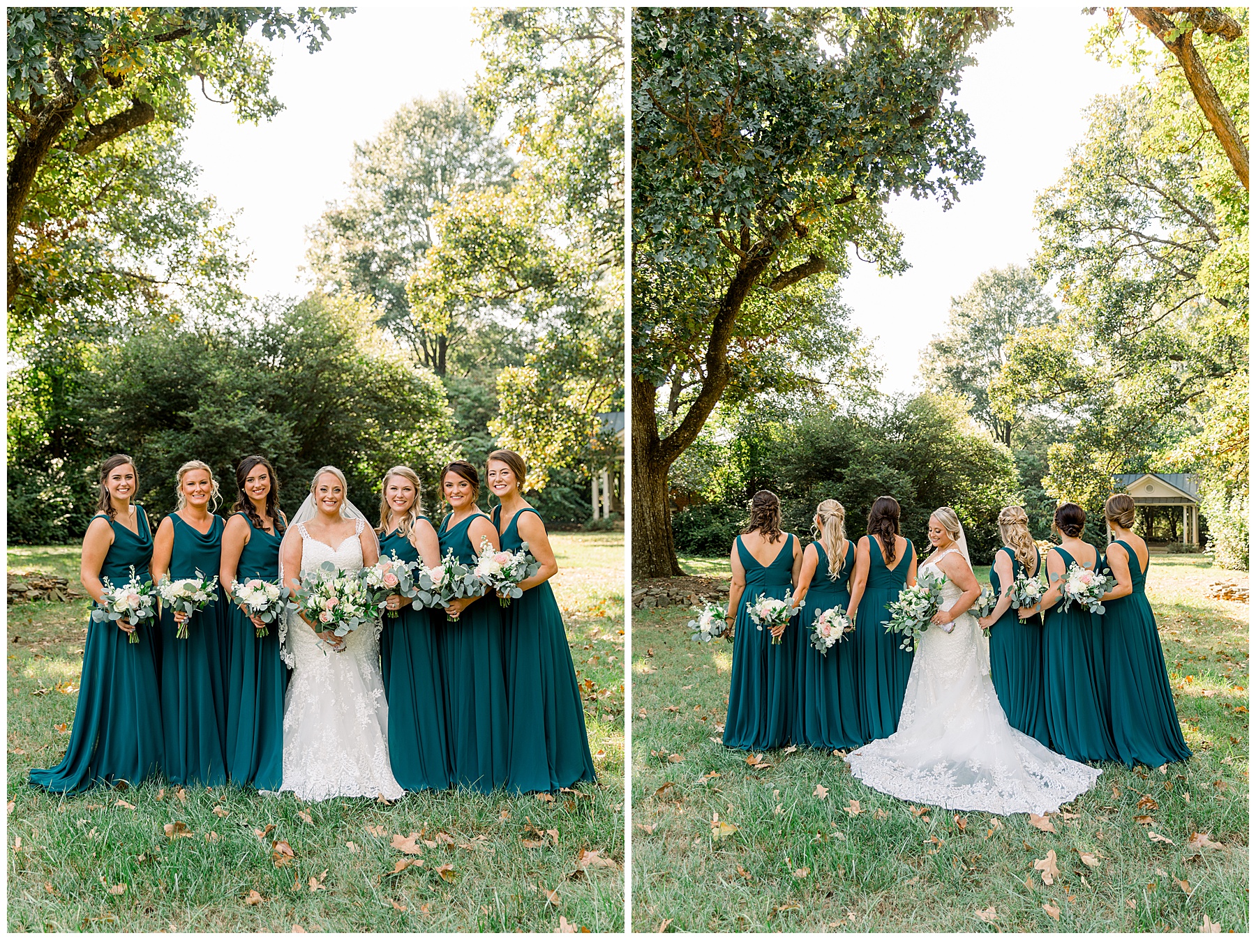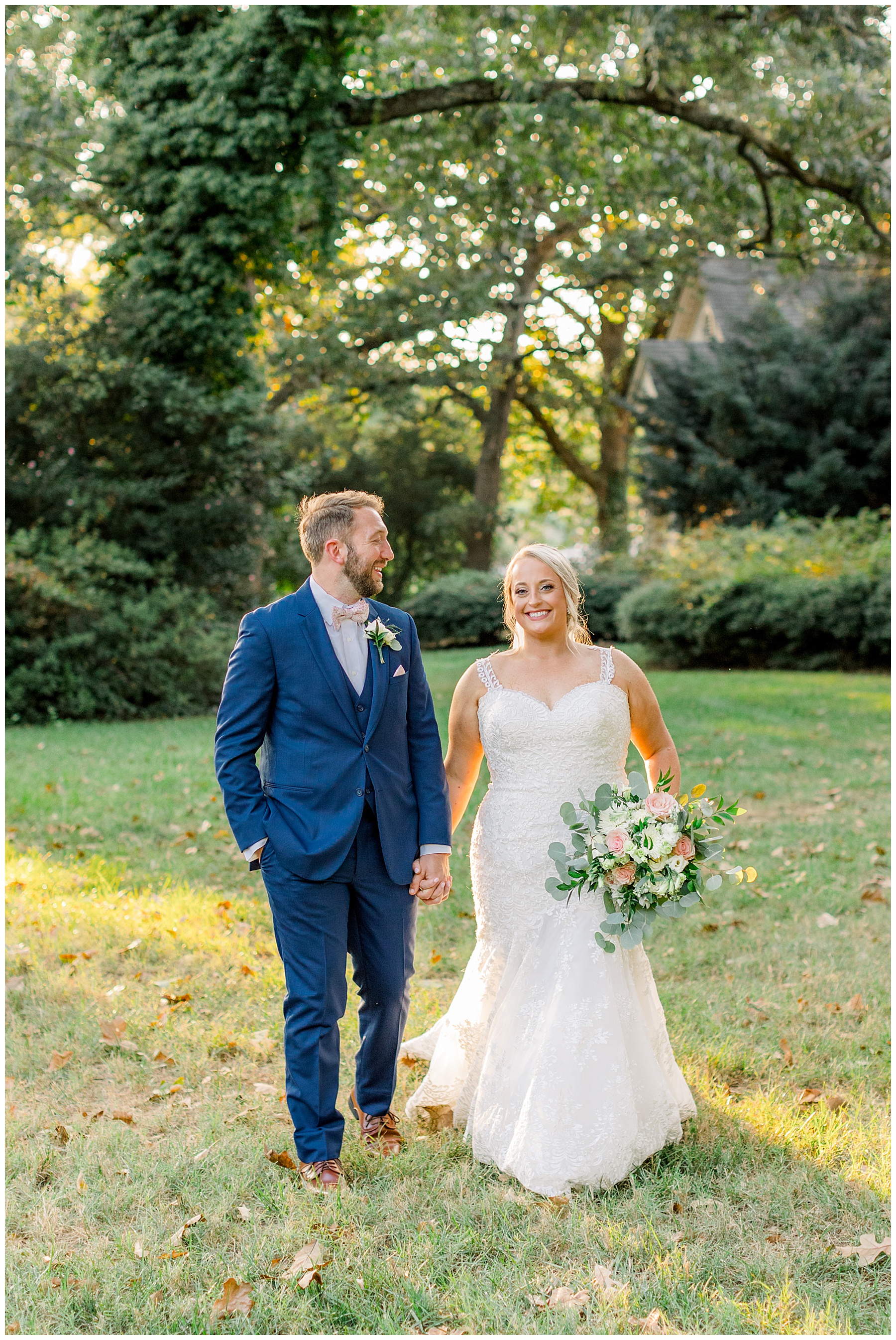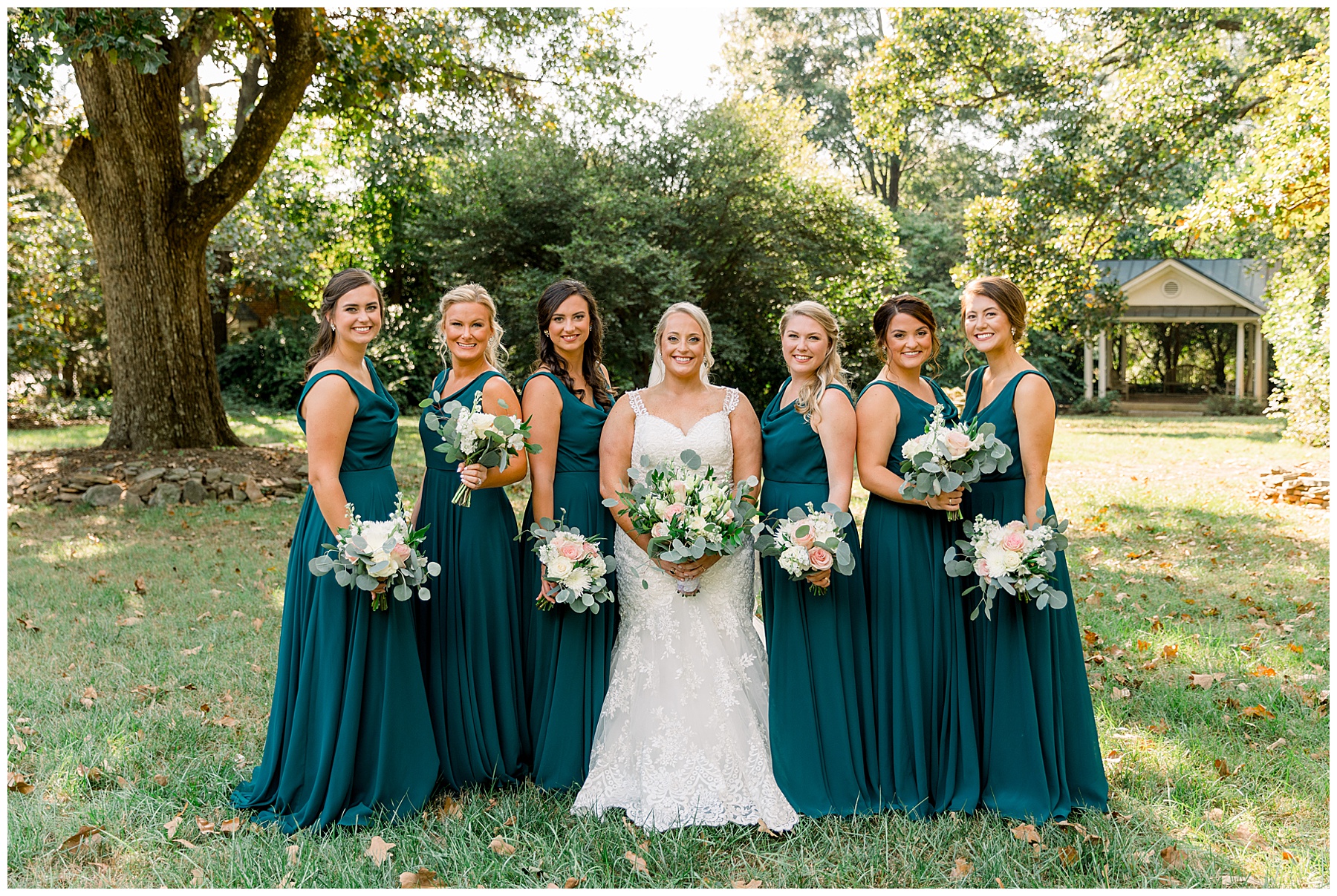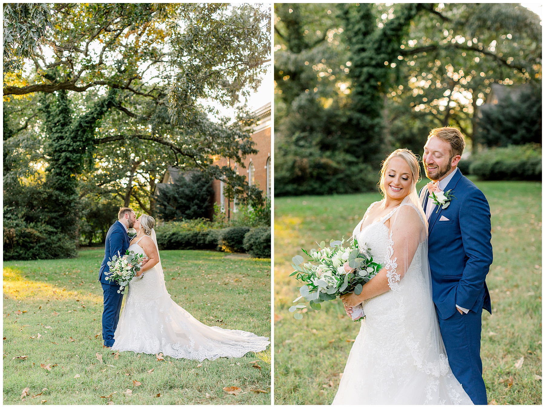 Anna had a First Look with her dad, and he’s just precious! His laugh is contagious, and they shared an emotional moment together on the cobblestones. After that, we all headed to Meredith College for the ceremony, and the ceremony was Christ-centered and such a testimony of their faith. I loved hearing how much work Matthew and Anna have put into pre-marital counseling and preparing for their marriage, to start off their life in such an important way. After the ceremony, we photographed their portraits with the prettiest backdrop of ivy-covered trees that were just MAGICAL and I loved that little light-soaked spot!