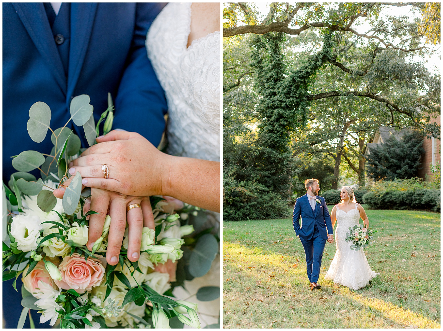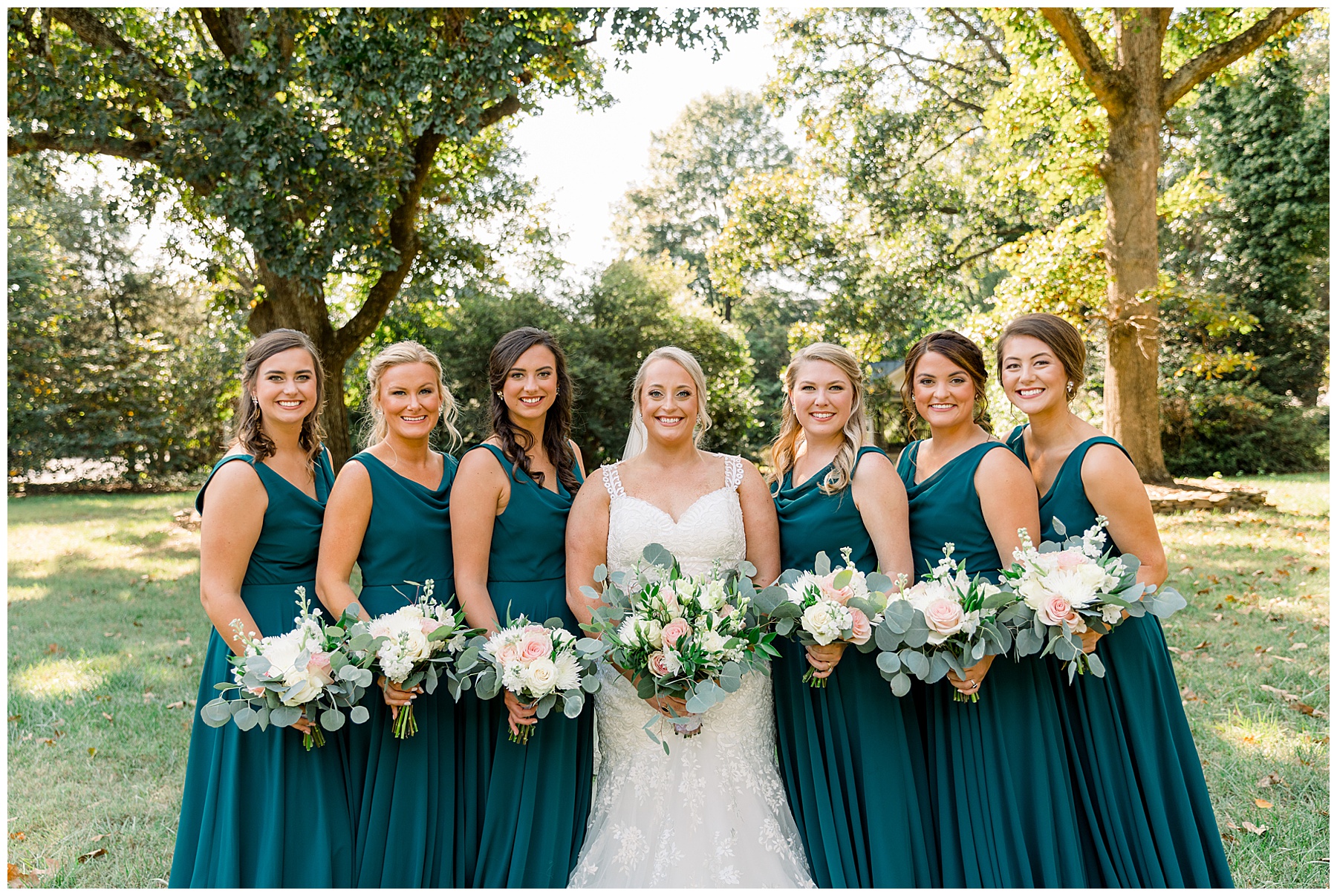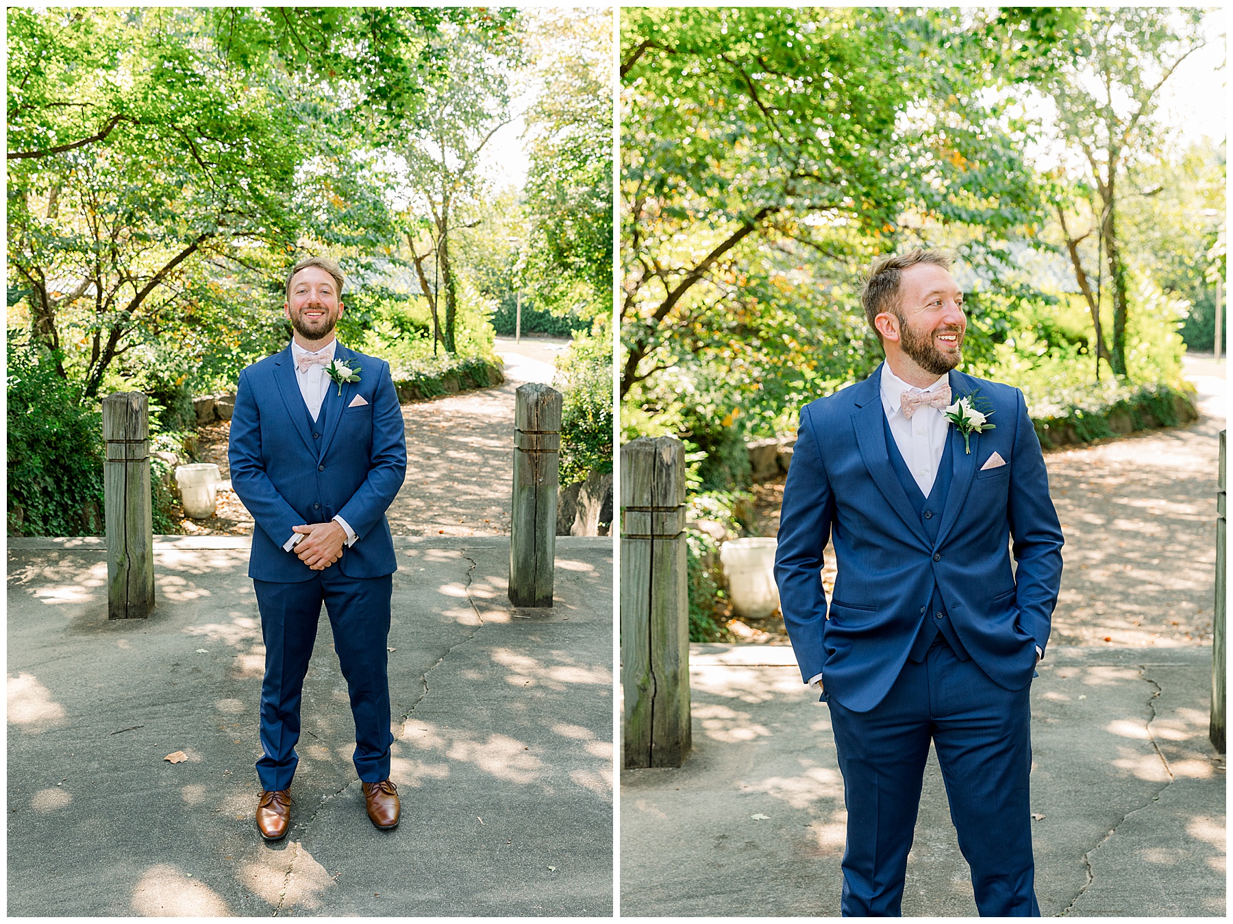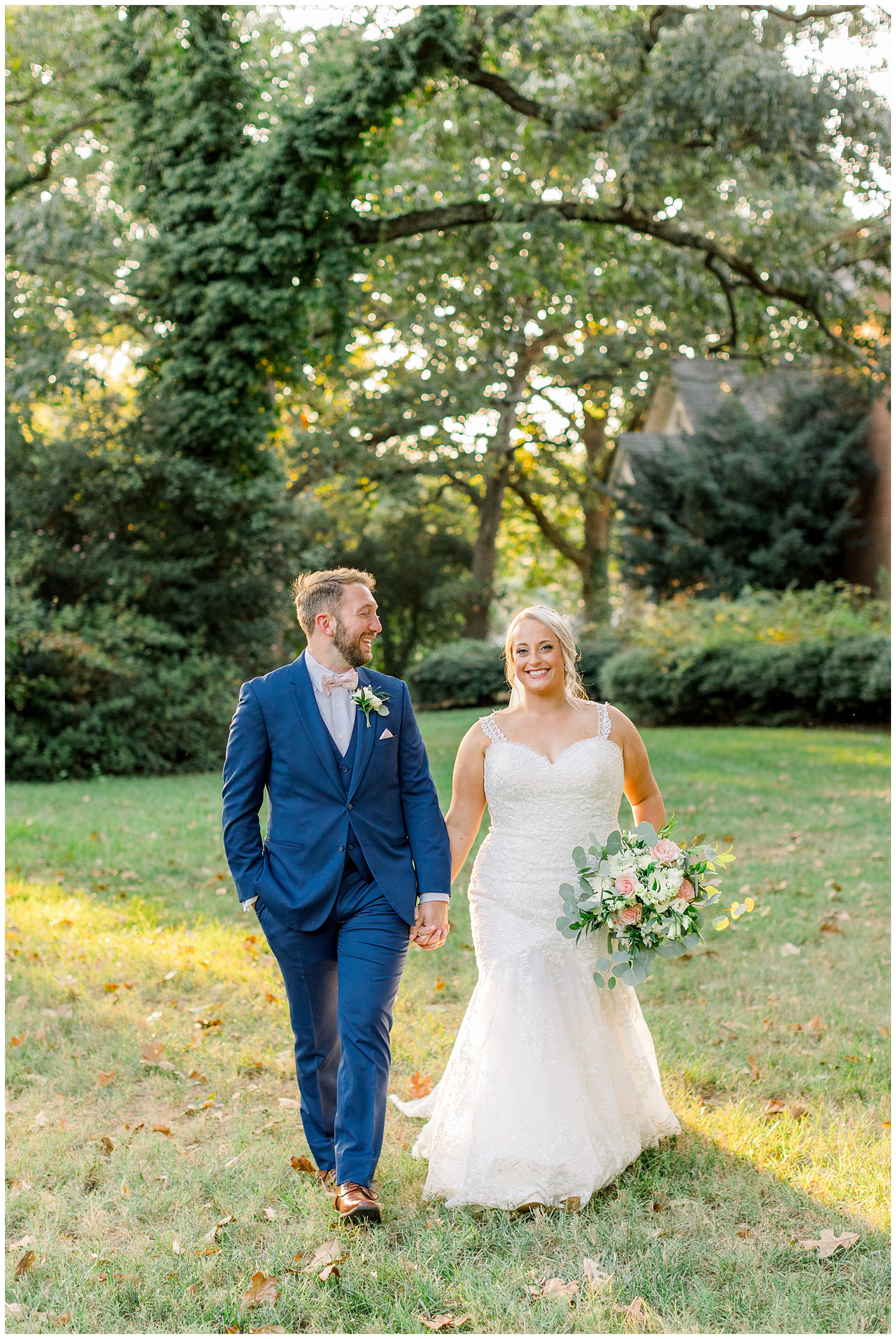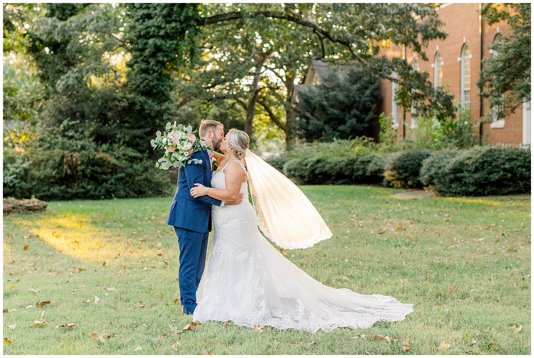 Anna had a First Look with her dad, and he’s just precious! His laugh is contagious, and they shared an emotional moment together on the cobblestones. After that, we all headed to Meredith College for the ceremony, and the ceremony was Christ-centered and such a testimony of their faith. I loved hearing how much work Matthew and Anna have put into pre-marital counseling and preparing for their marriage, to start off their life in such an important way. After the ceremony, we photographed their portraits with the prettiest backdrop of ivy-covered trees that were just MAGICAL and I loved that little light-soaked spot!