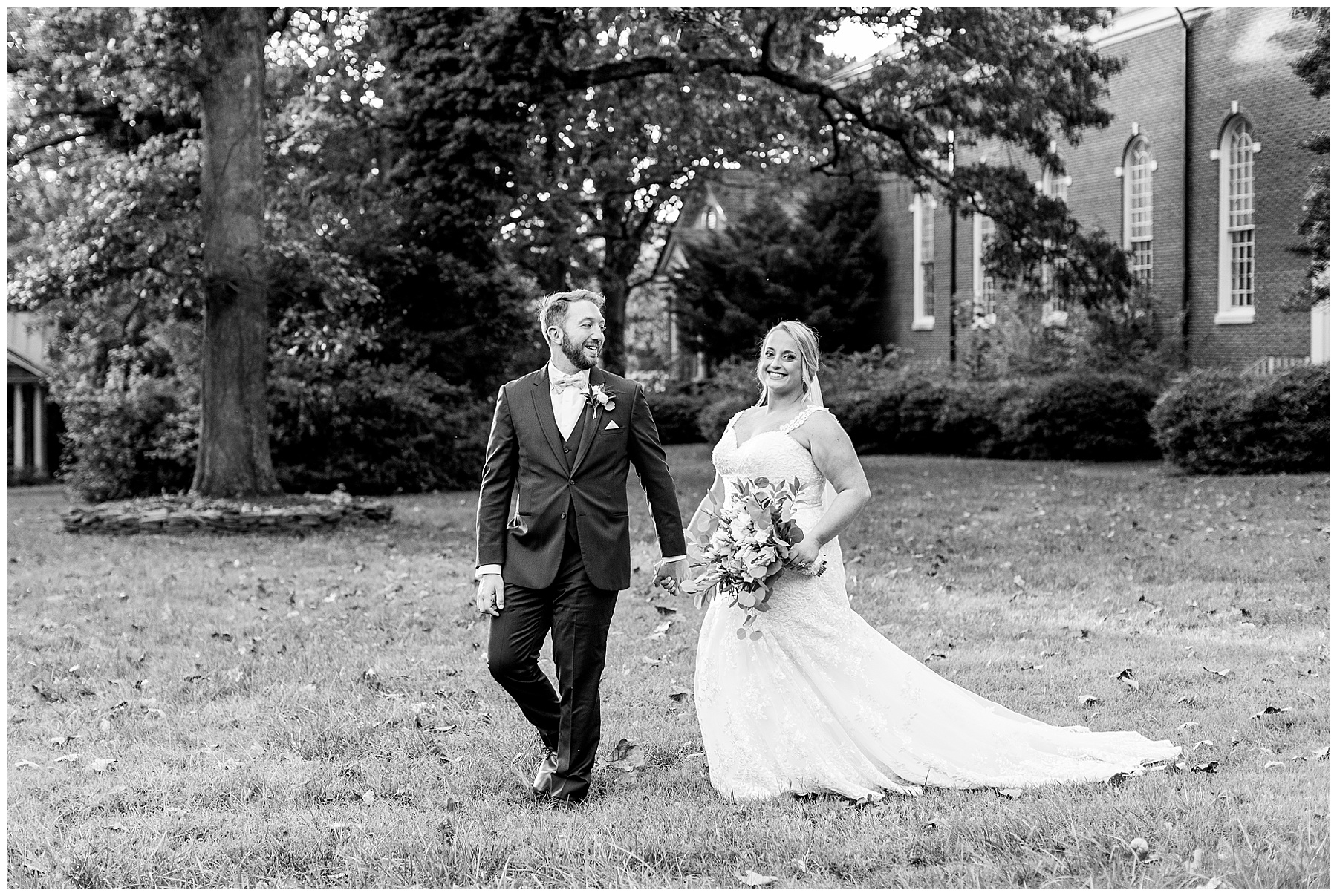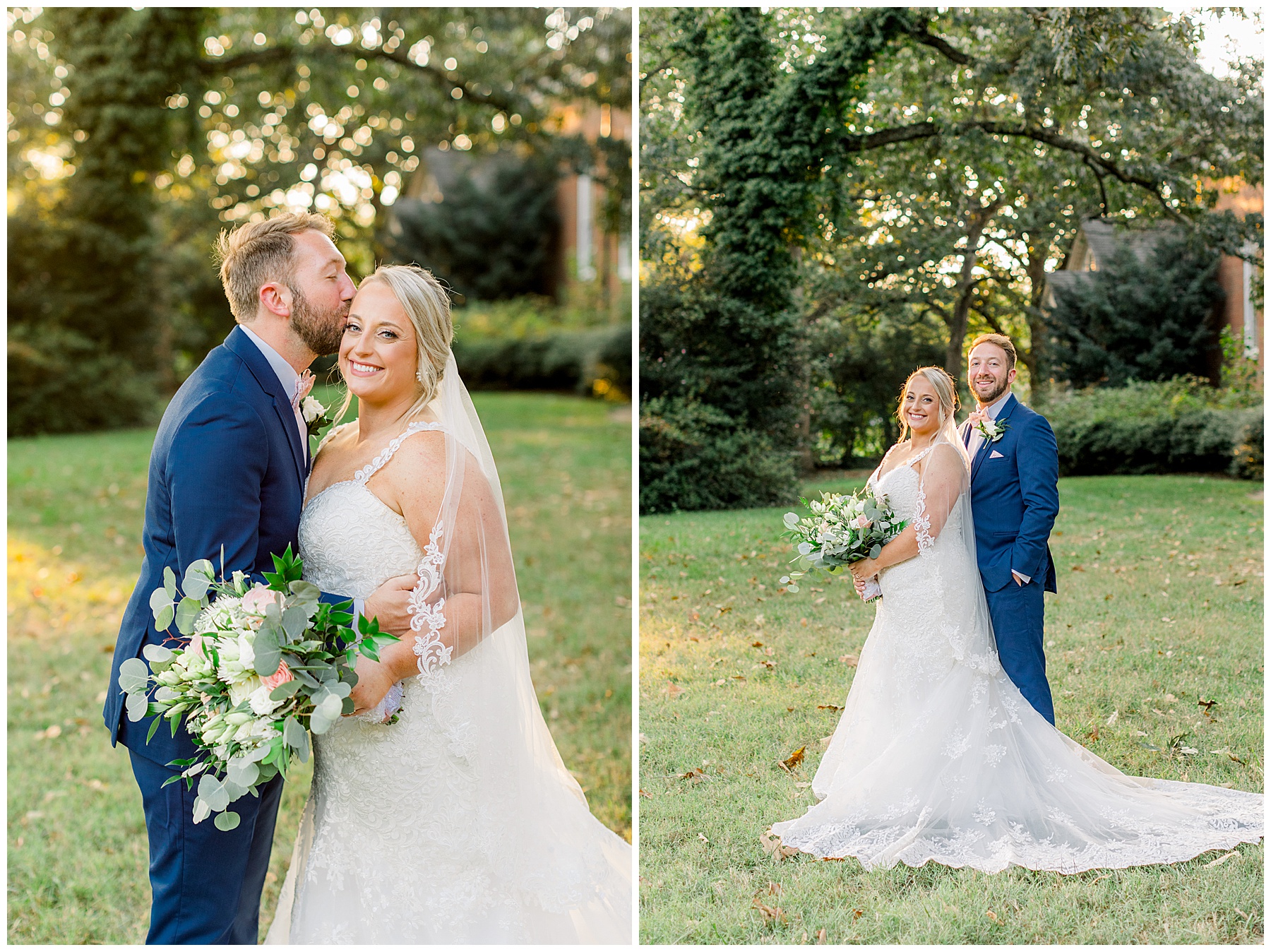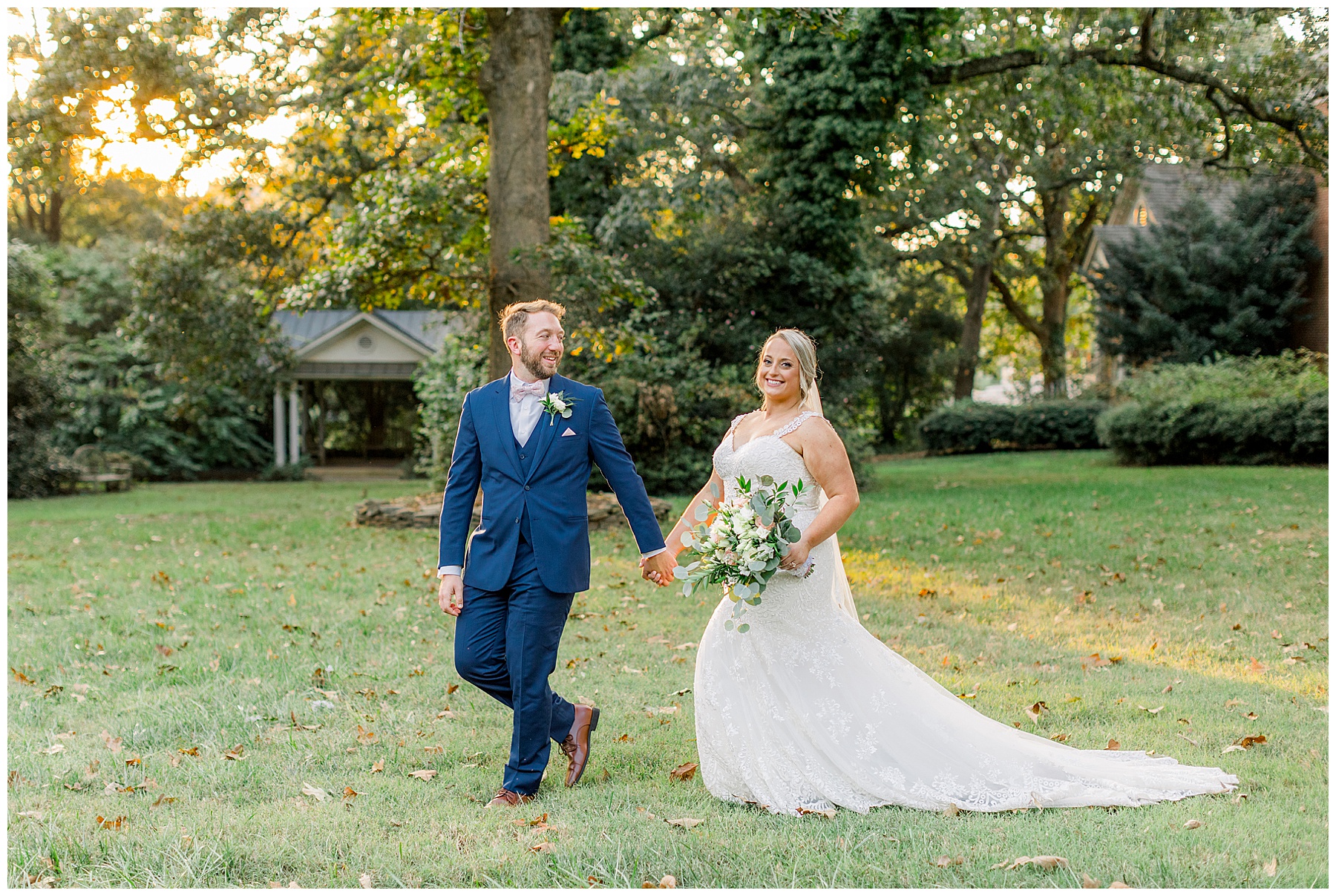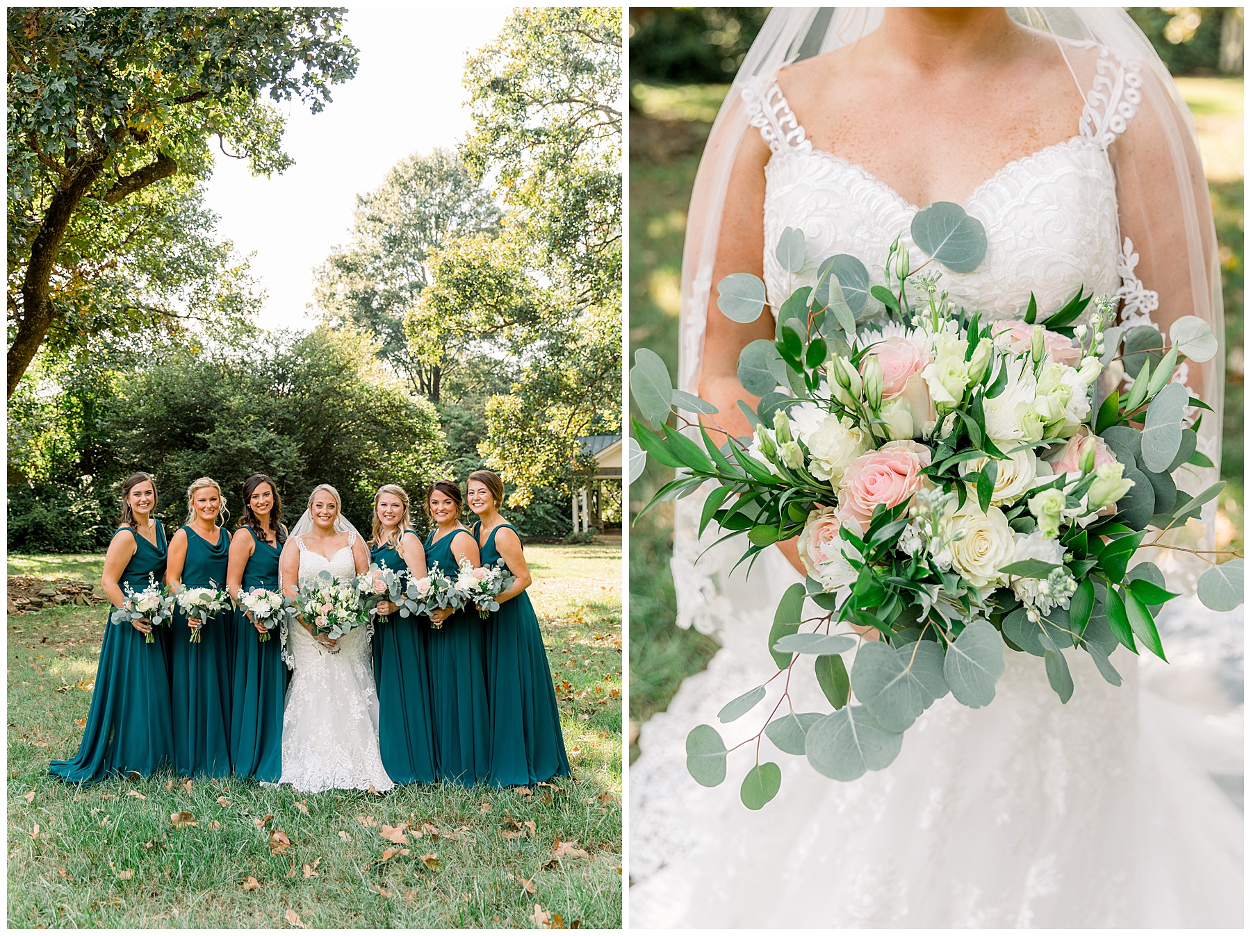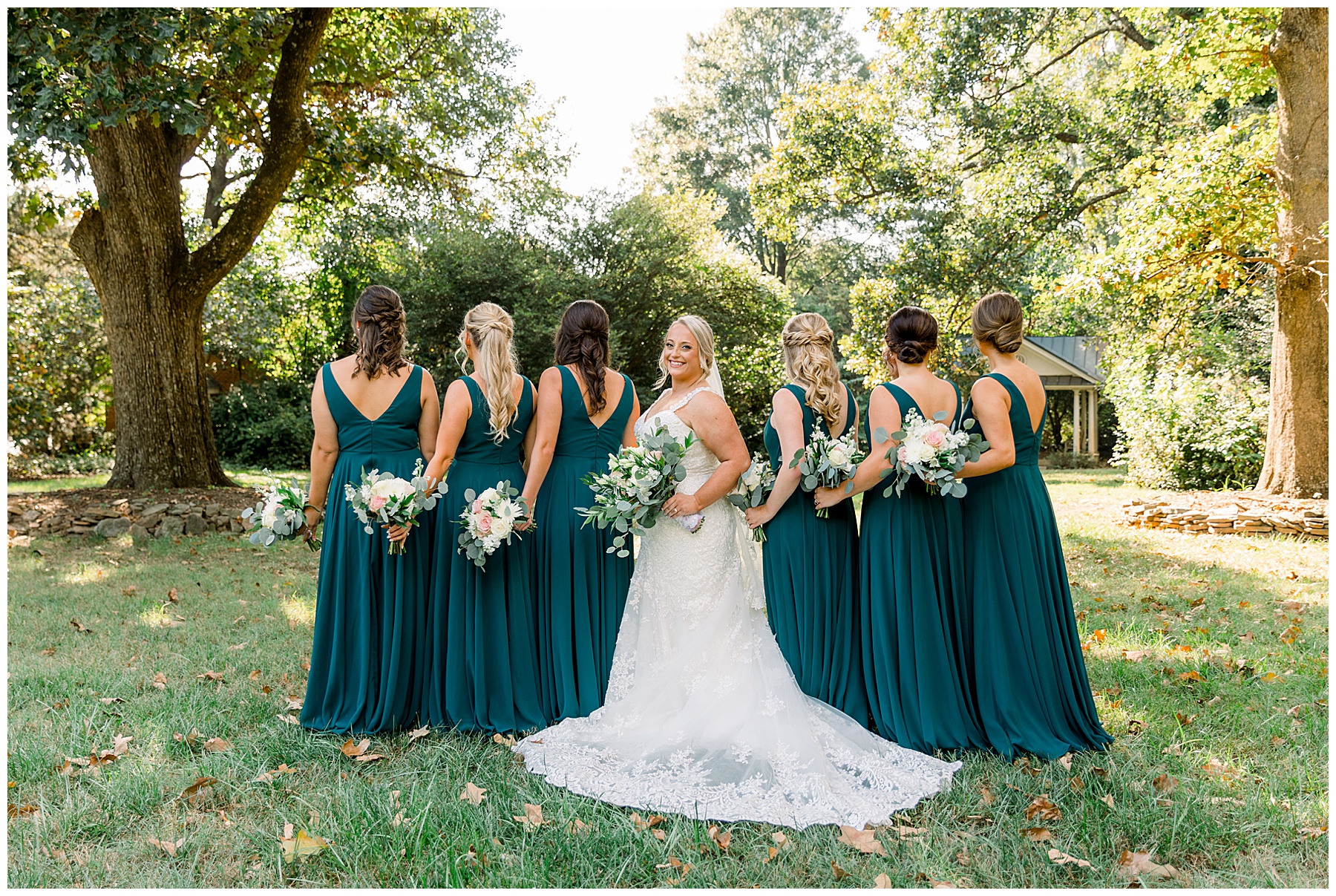 Anna had a First Look with her dad, and he’s just precious! His laugh is contagious, and they shared an emotional moment together on the cobblestones. After that, we all headed to Meredith College for the ceremony, and the ceremony was Christ-centered and such a testimony of their faith. I loved hearing how much work Matthew and Anna have put into pre-marital counseling and preparing for their marriage, to start off their life in such an important way. After the ceremony, we photographed their portraits with the prettiest backdrop of ivy-covered trees that were just MAGICAL and I loved that little light-soaked spot!