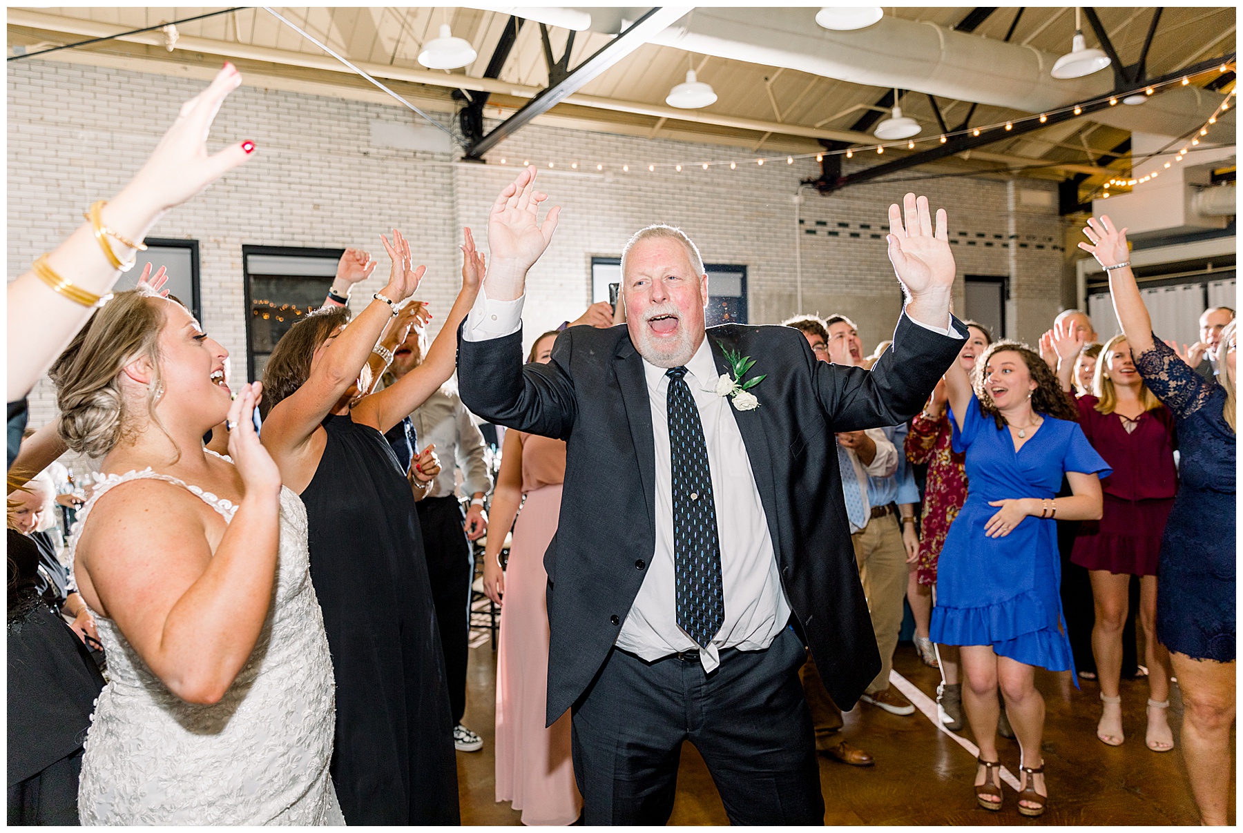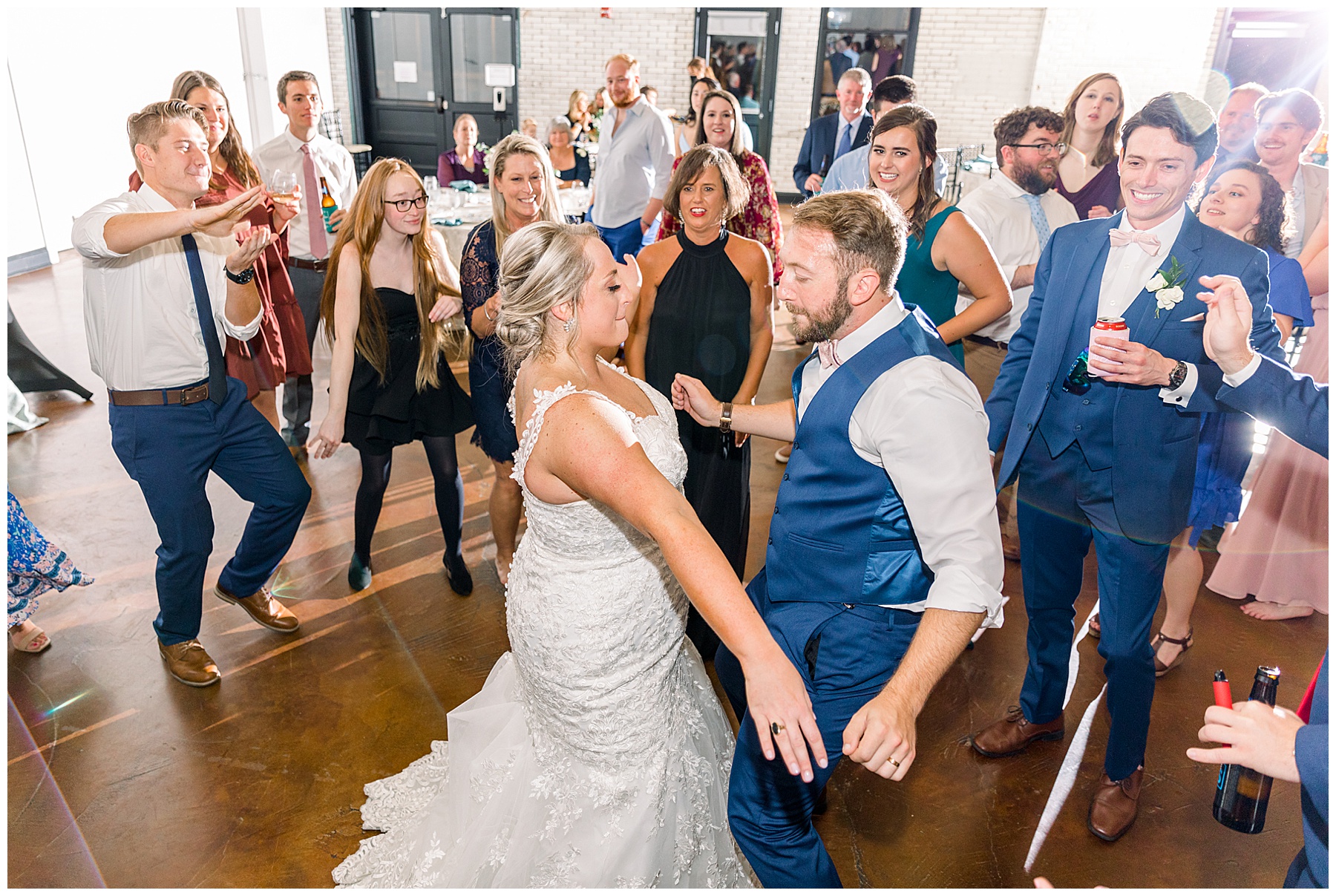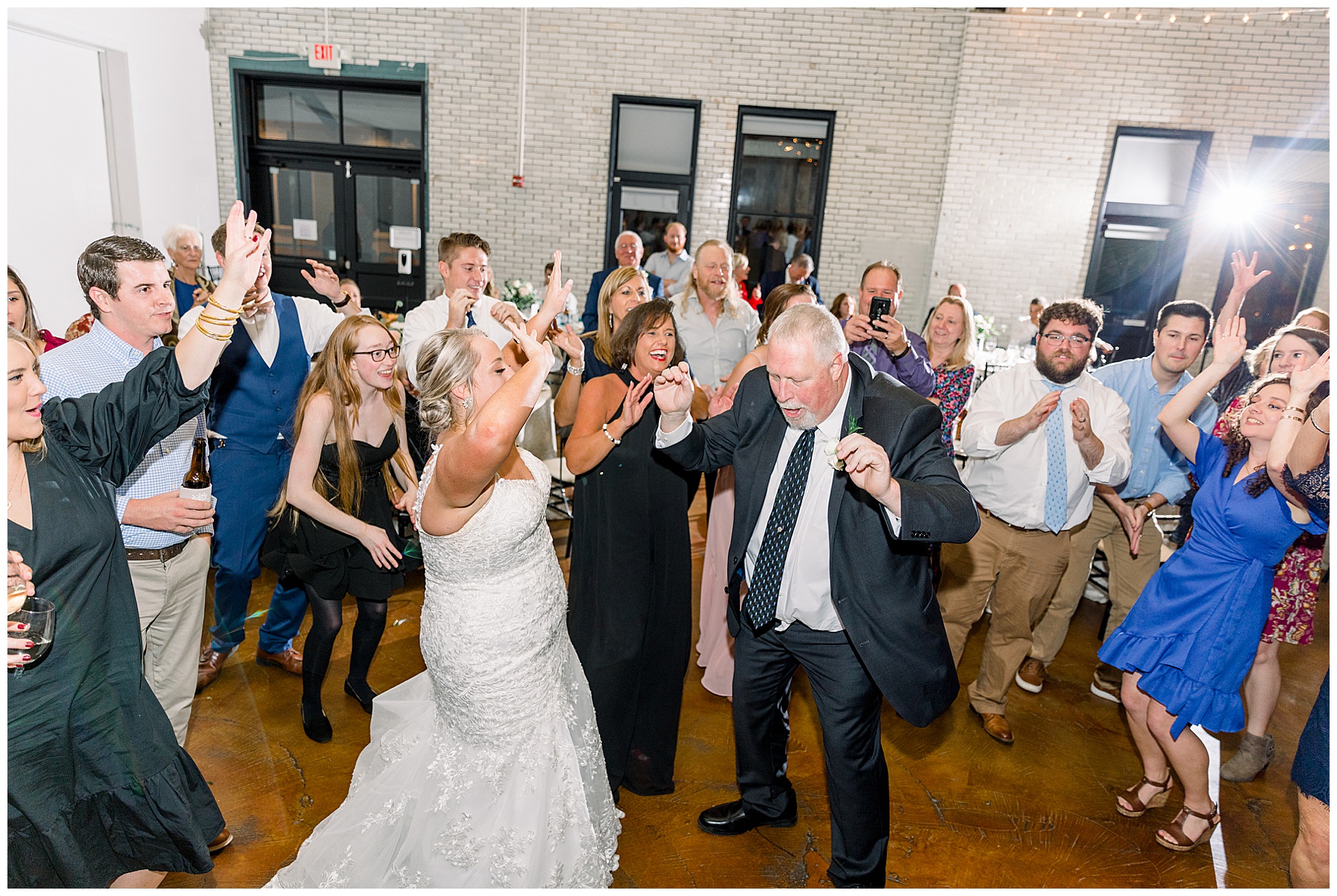 After a delicious buffet, Anna & Matthew cut their cake, started dancing, and everyone had a blast! There were lots of desserts to choose from – including tiny ice cream cookie sandwiches passed out by the staff to guests! Everyone had a great time dancing and letting loose. The star of the show was definitely Anna’s dad with the happiest dancing to the “SHOUT” song that we’ve ever seen.