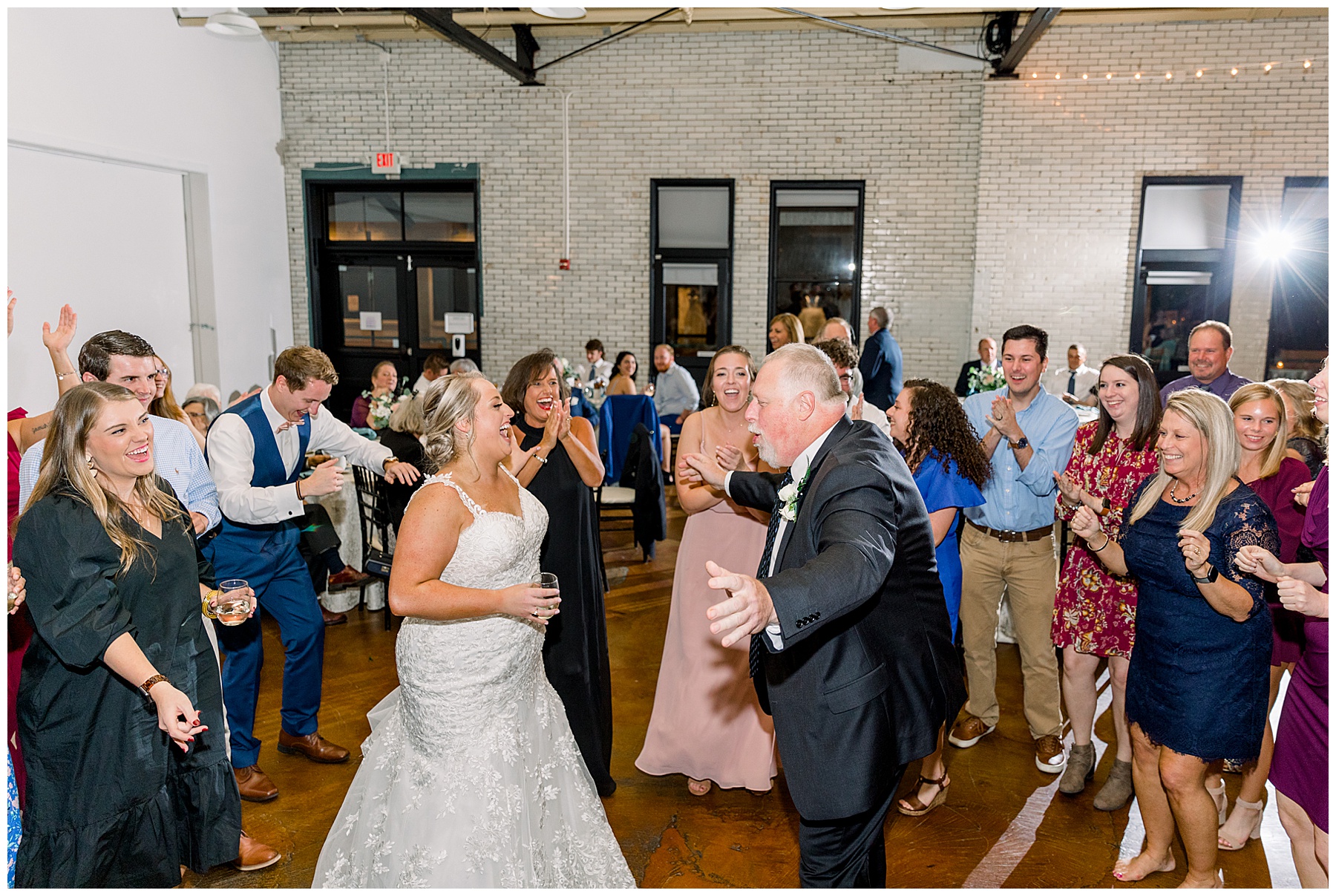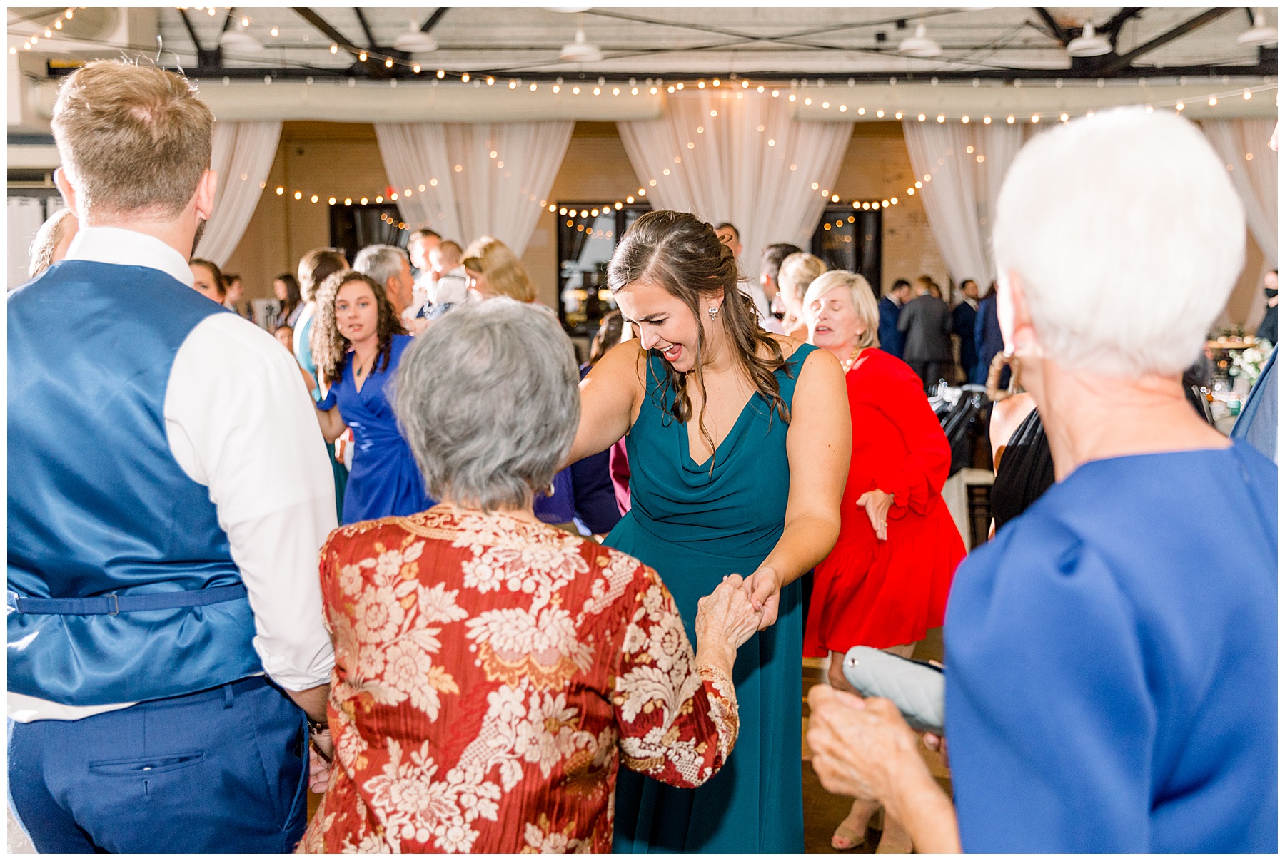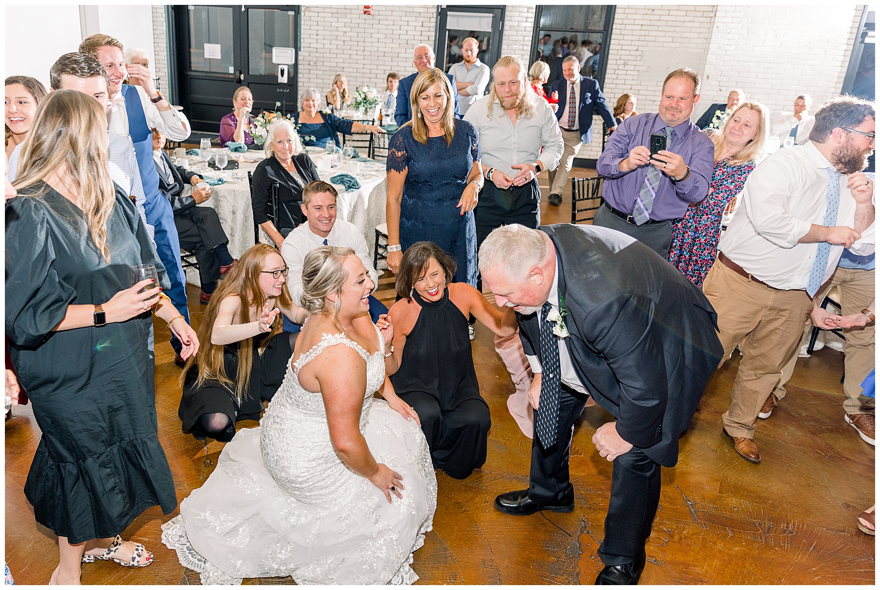 After a delicious buffet, Anna & Matthew cut their cake, started dancing, and everyone had a blast! There were lots of desserts to choose from – including tiny ice cream cookie sandwiches passed out by the staff to guests! Everyone had a great time dancing and letting loose. The star of the show was definitely Anna’s dad with the happiest dancing to the “SHOUT” song that we’ve ever seen.