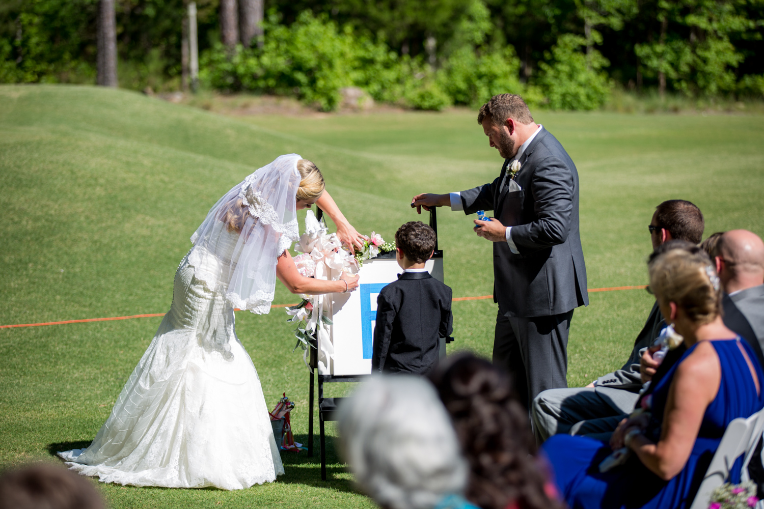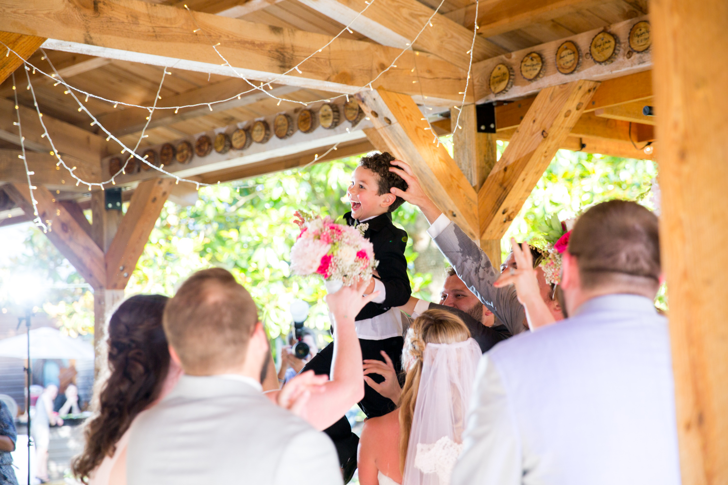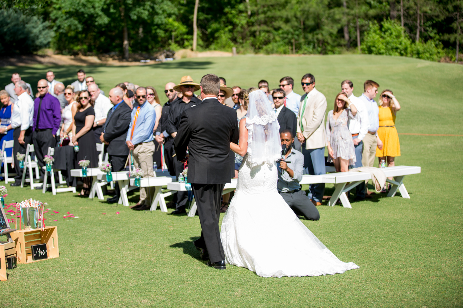 The ceremony was so centered on family. Jason stood at the front and helped make a family painting. Such a cool idea – and I’m SUPER impressed they didn’t get paint on their clothing too! After their vows, Ashley & David left through a tunnel of ribbon wands and bells.