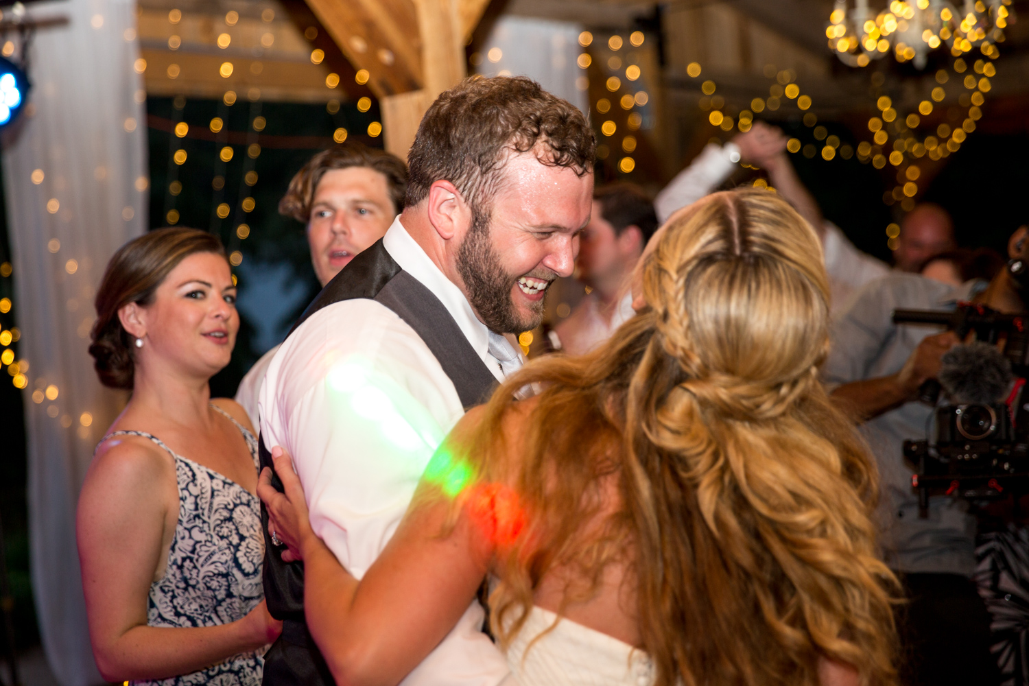 A few minutes into the reception, we stole them away for sunset photographs! The lighting was perfect by the water, and we loved getting a few quiet moments with David and Ashley. The PARTY STARTED up after that, and people danced the night away! David and Ashley had so many personal touches around the entire reception. Each flower box was handmade by her dad, signage was made by friends and family, and even work friends had helped with parts! Everything came together beautifully, and looked amazing.