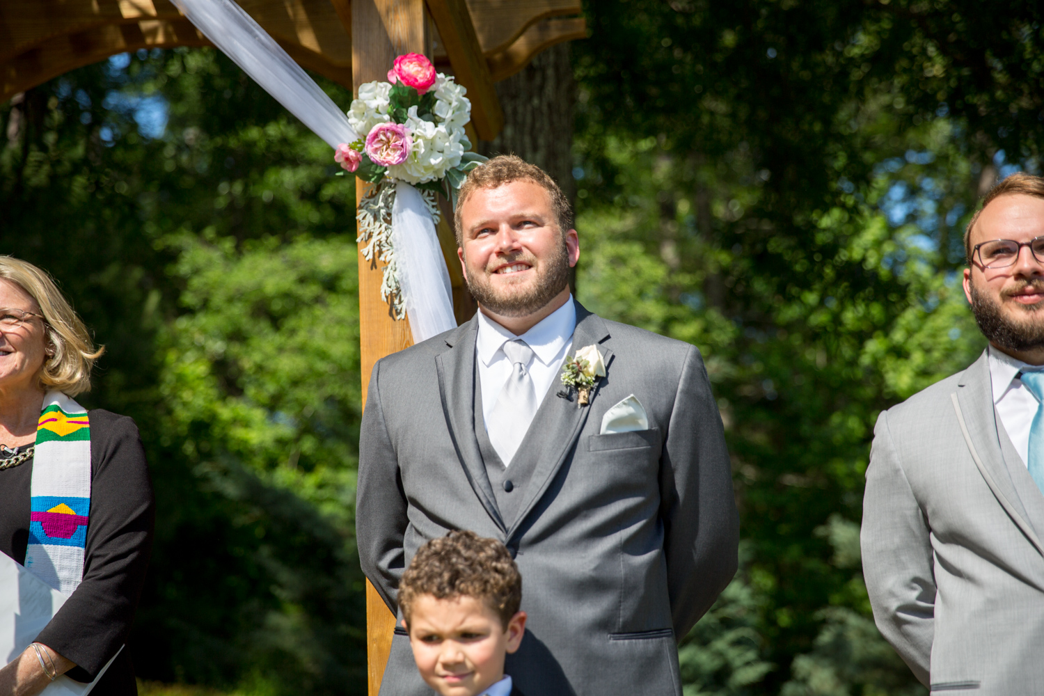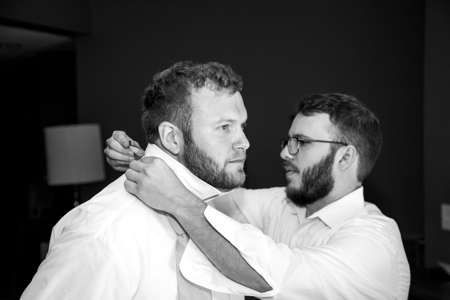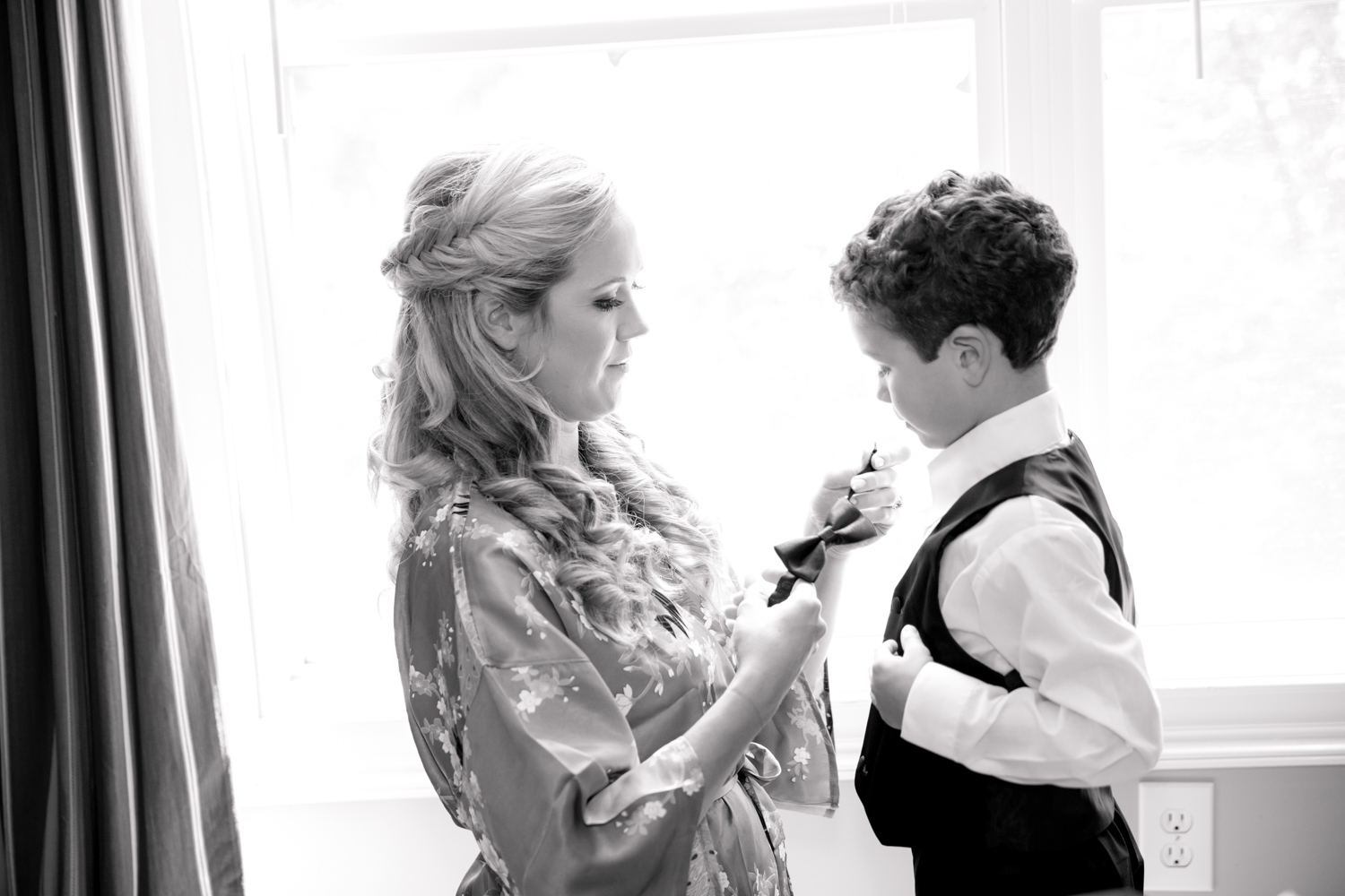 While the girls were getting glam that morning, the guys were outside golfing, playing foosball, and smoking cigars. They were all a laid-back crew, and it made the day stress-free and easy! My favorite part of the morning with the girls was when Ashley dressed her son Jason in his little 5-piece tuxedo. It was such a sweet moment, and Jason was so excited to wear fancy clothes.