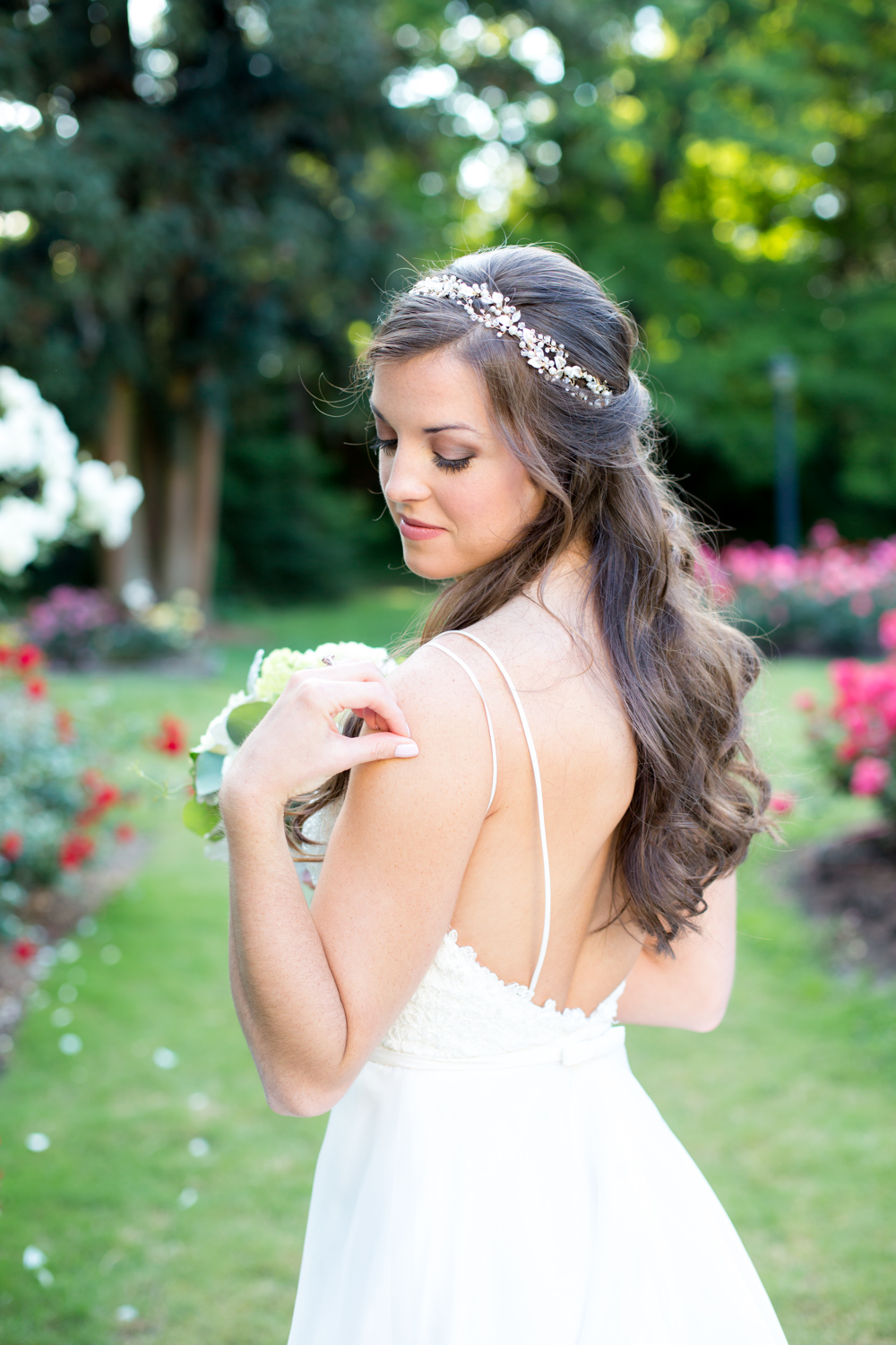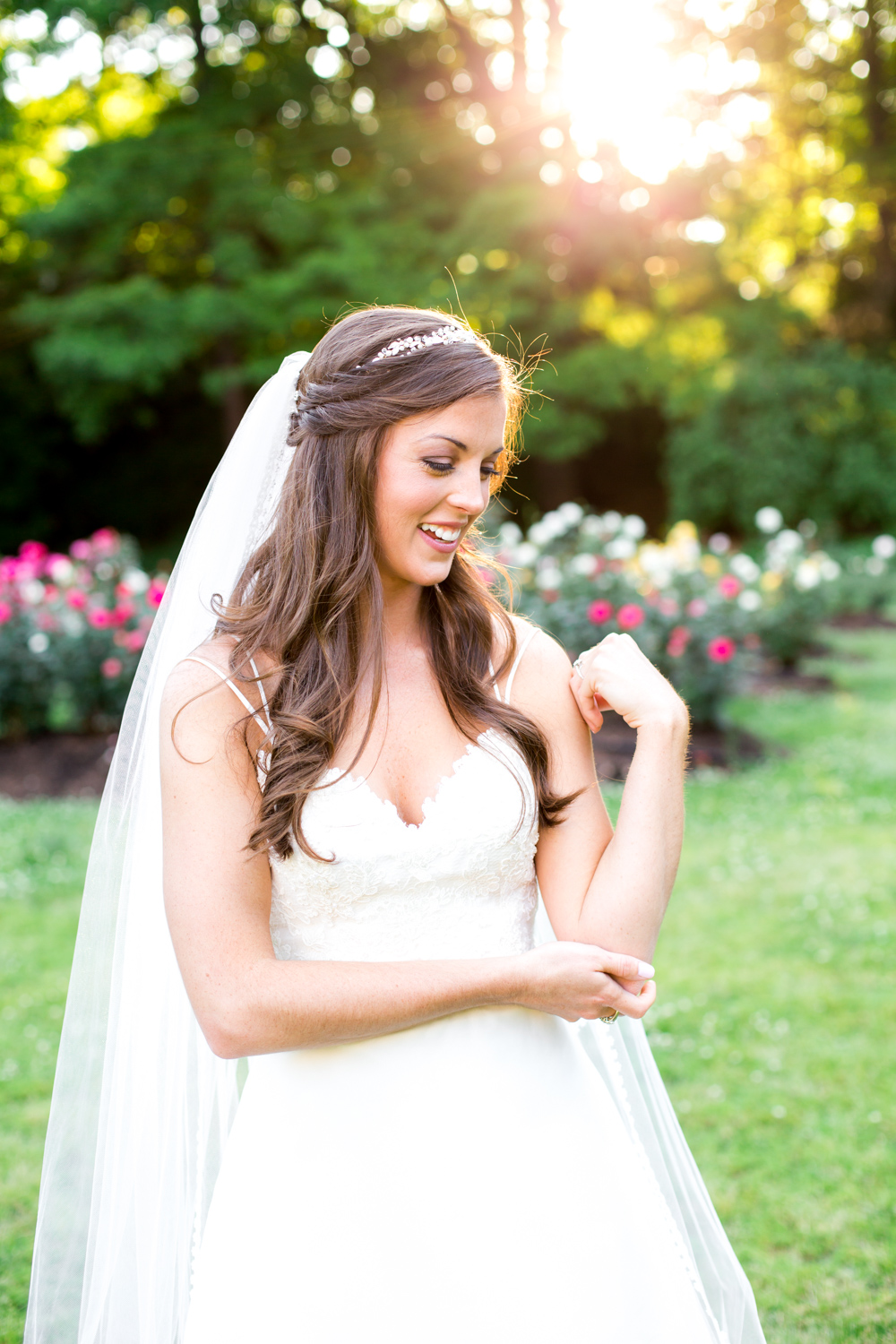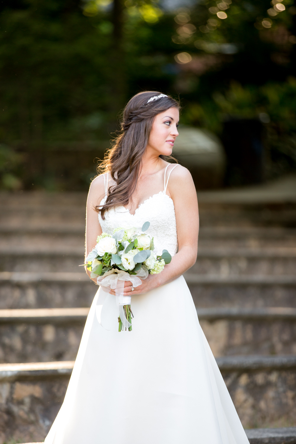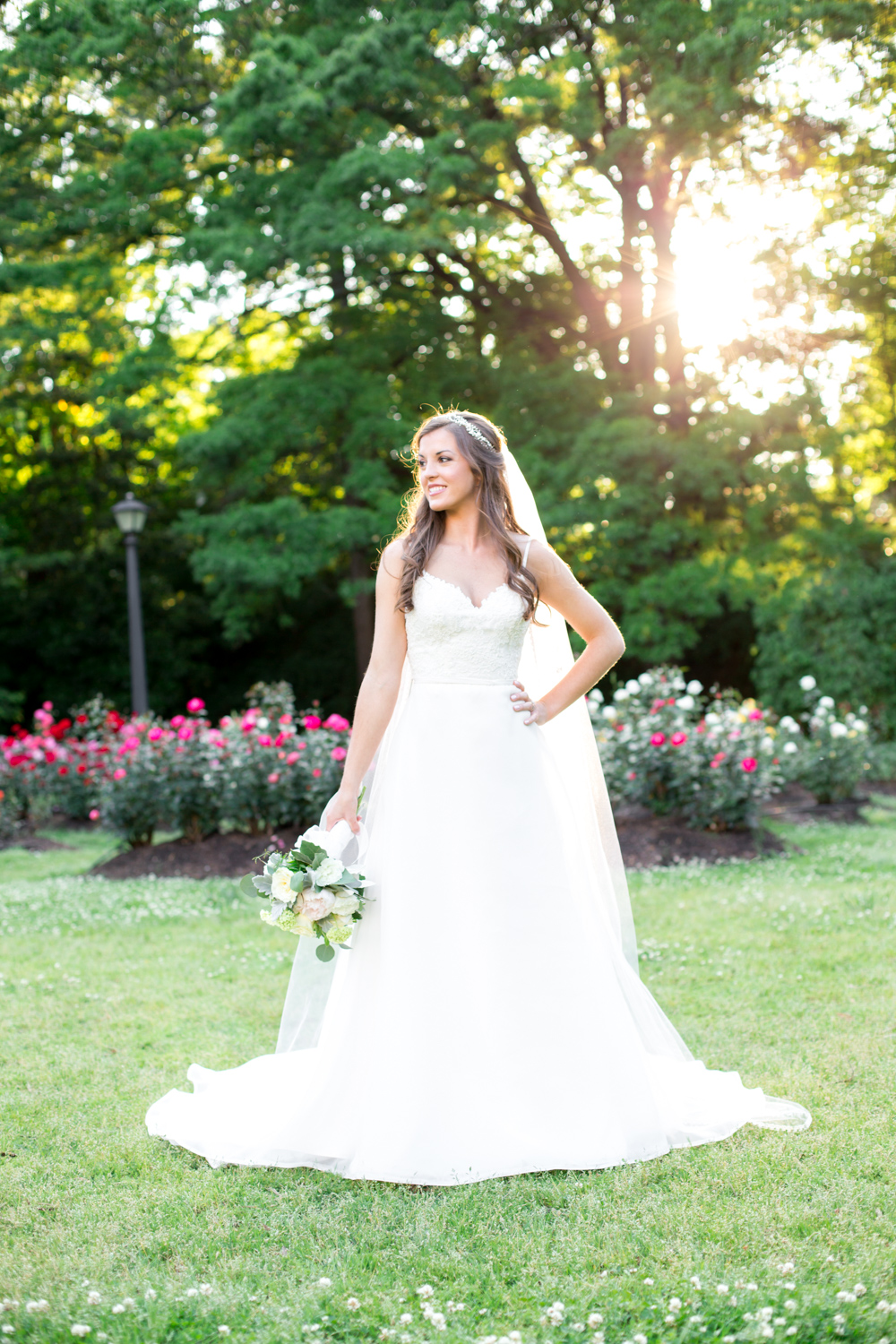 On the way to the session, Phillip and I had guessed about what type of dress Ashlyn would be wearing. She seemed like one of my classic and elegant brides – so I wasn’t surprised when she arrived wearing the most gorgeous gown. The top bodice was lace, with the most delicate straps that led to a deep V back, and a little bow in the middle of her back. It was the PERFECT dress for her, as it didn’t take away from her natural beauty.
