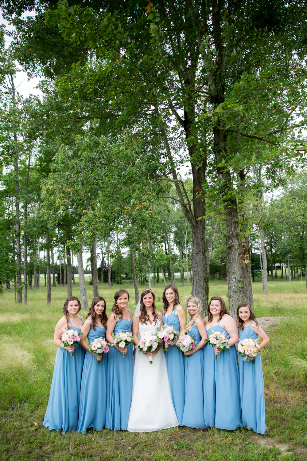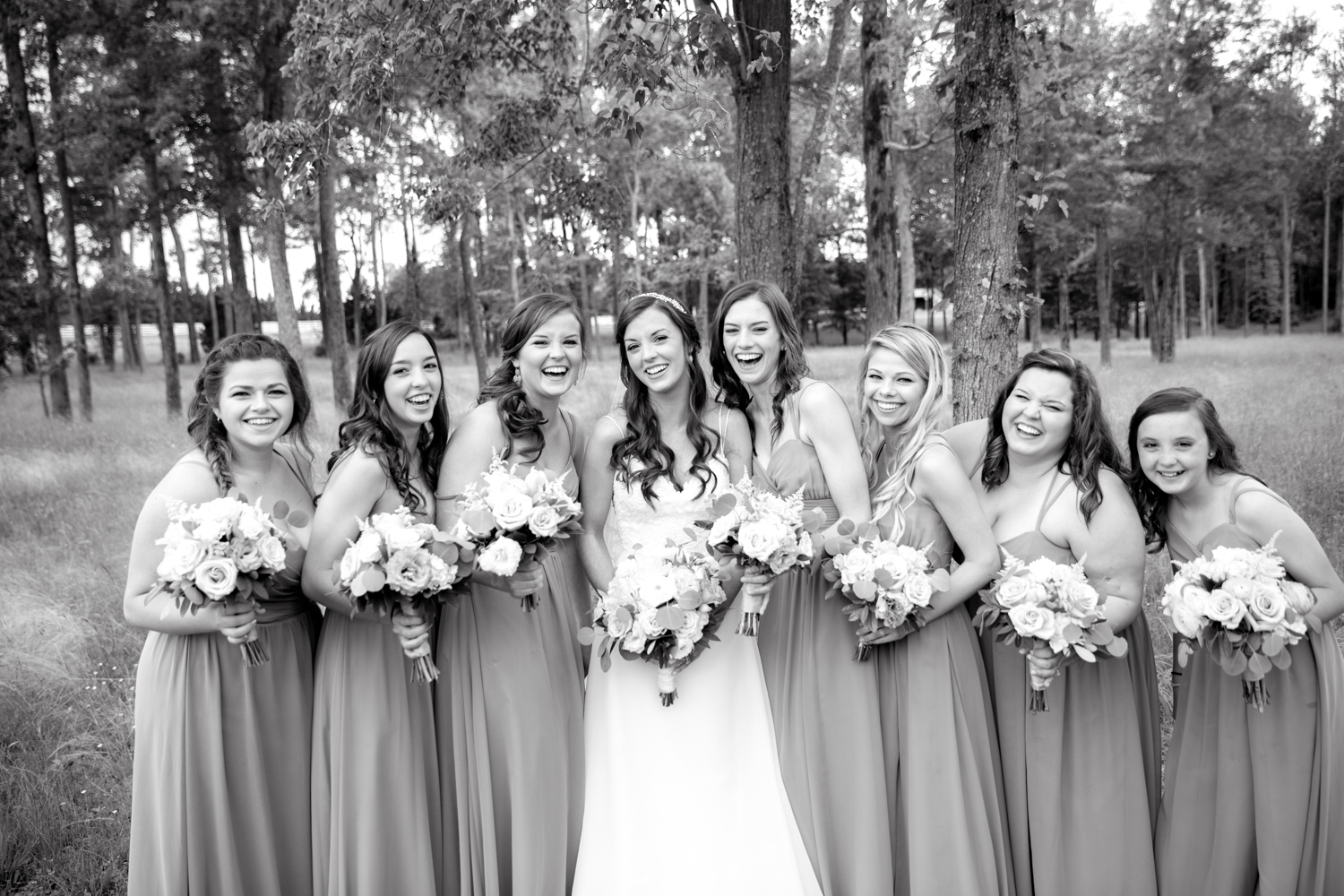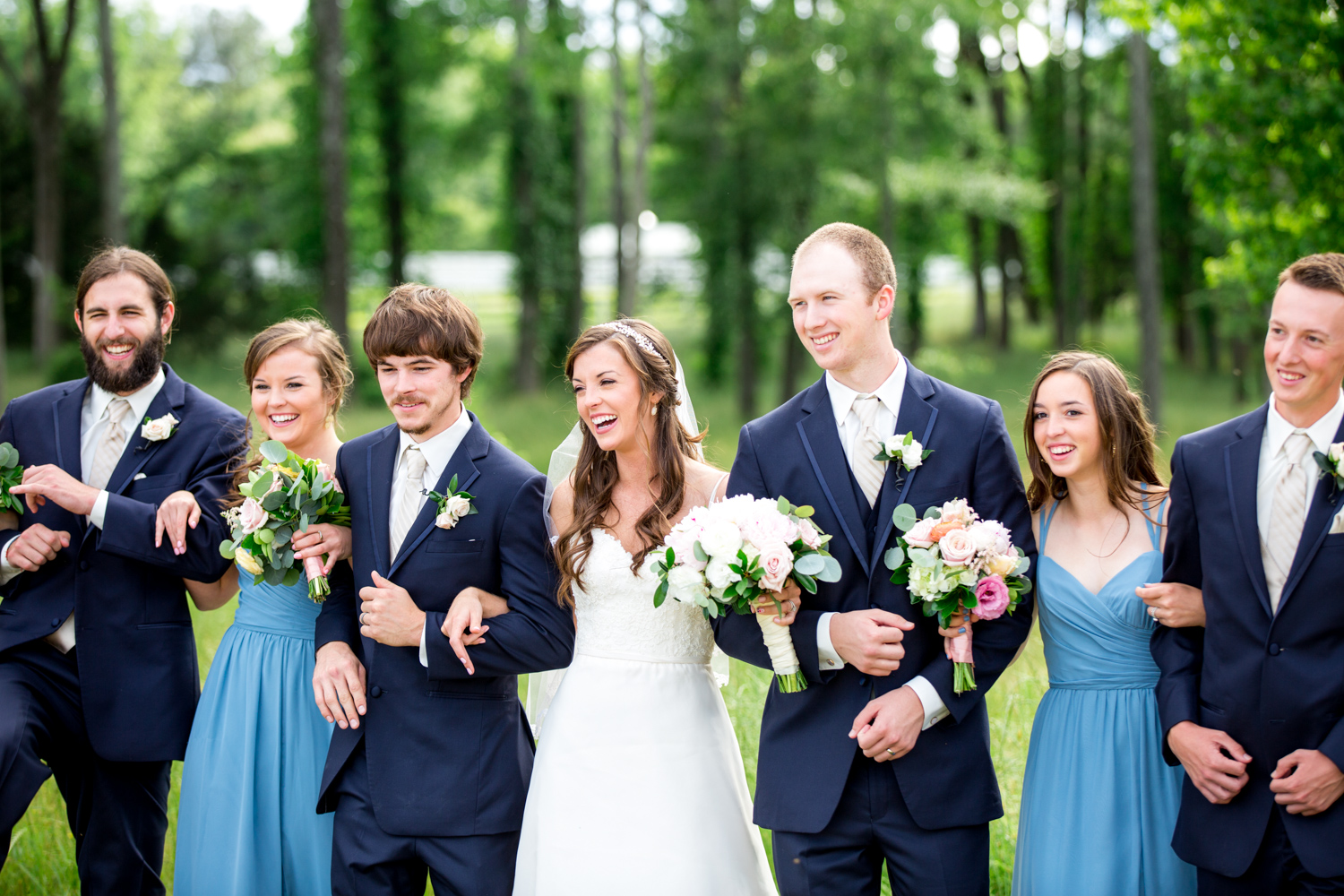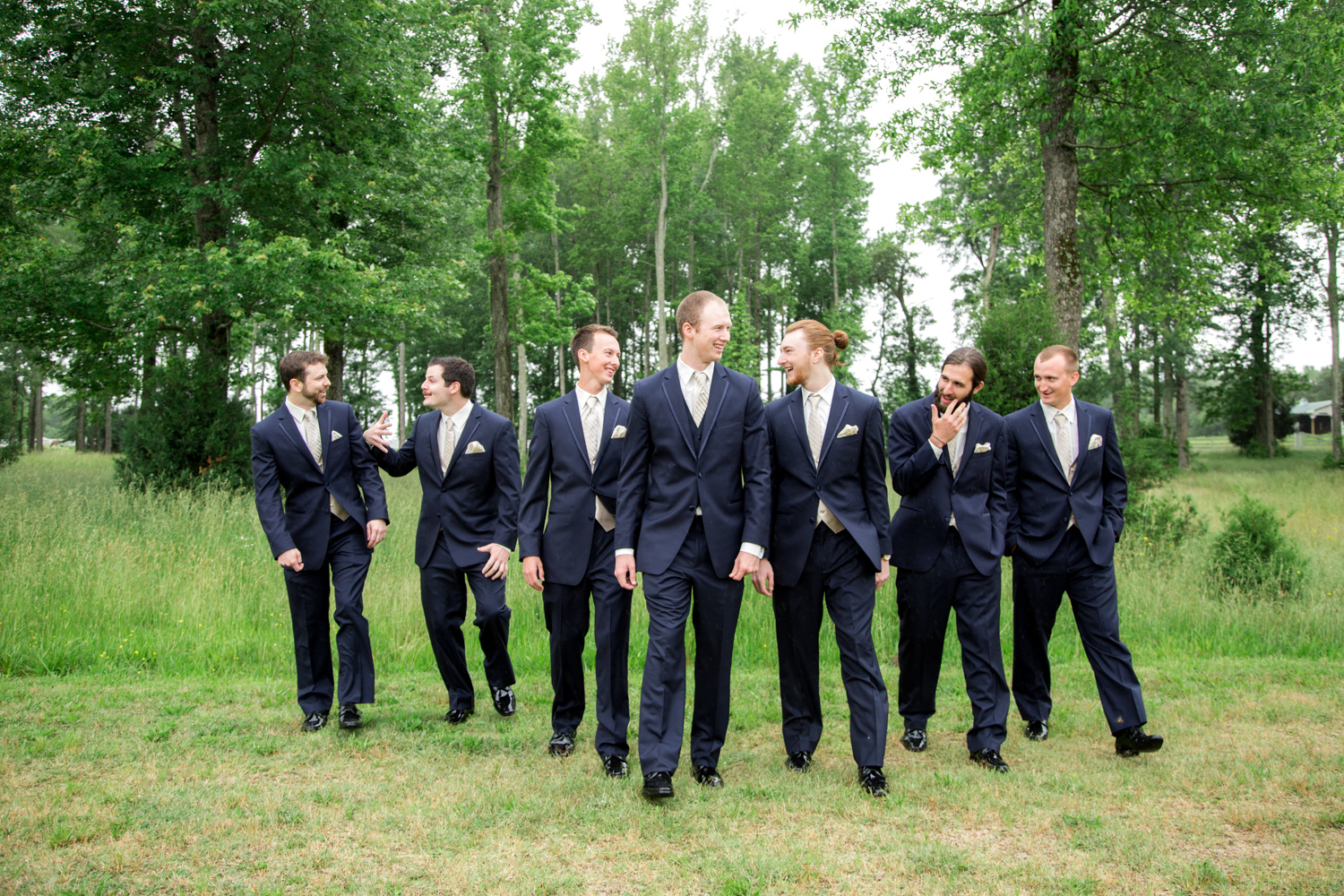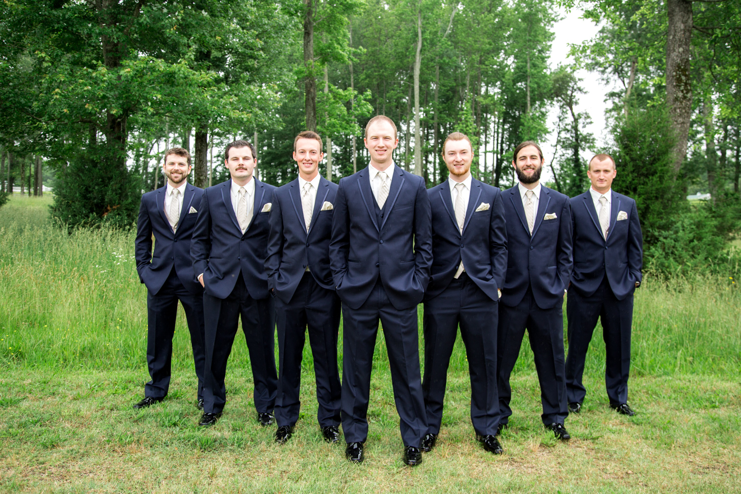 Not many bridal parties would agree to pose in the light RAIN, but both the guys and the girls posed WHILE IT WAS RAINING, with no umbrellas, and we were able to have pretty outdoor photographs. Because of their easy-going attitudes and willingness to trust our vision, it made the day go smoothly!