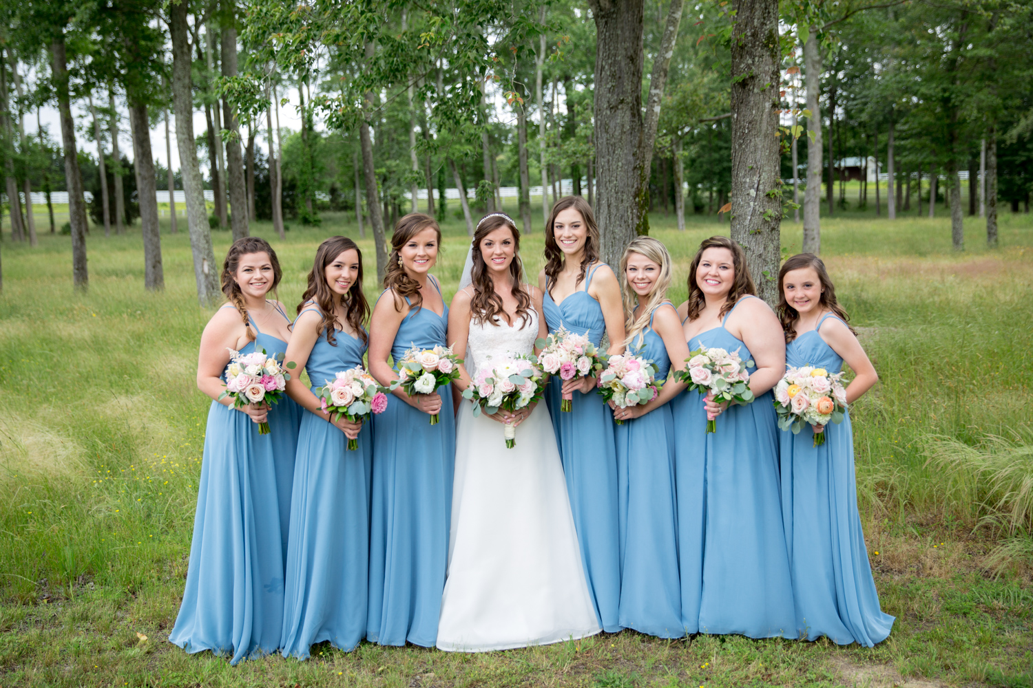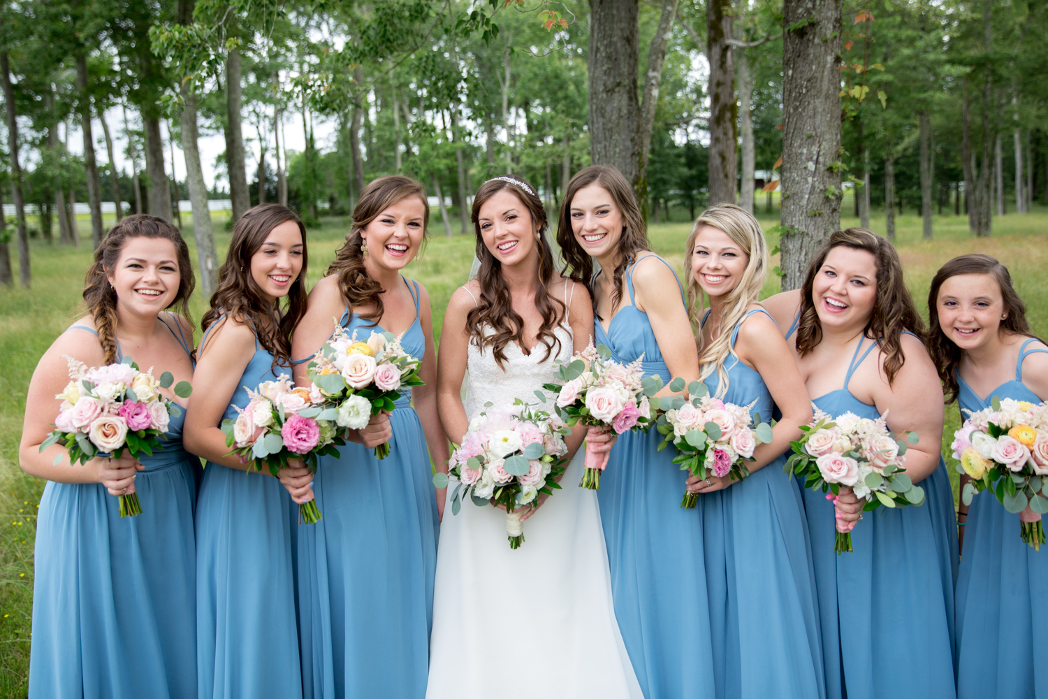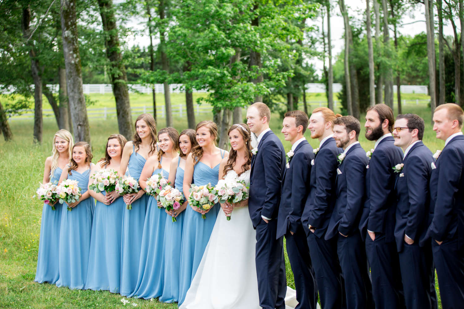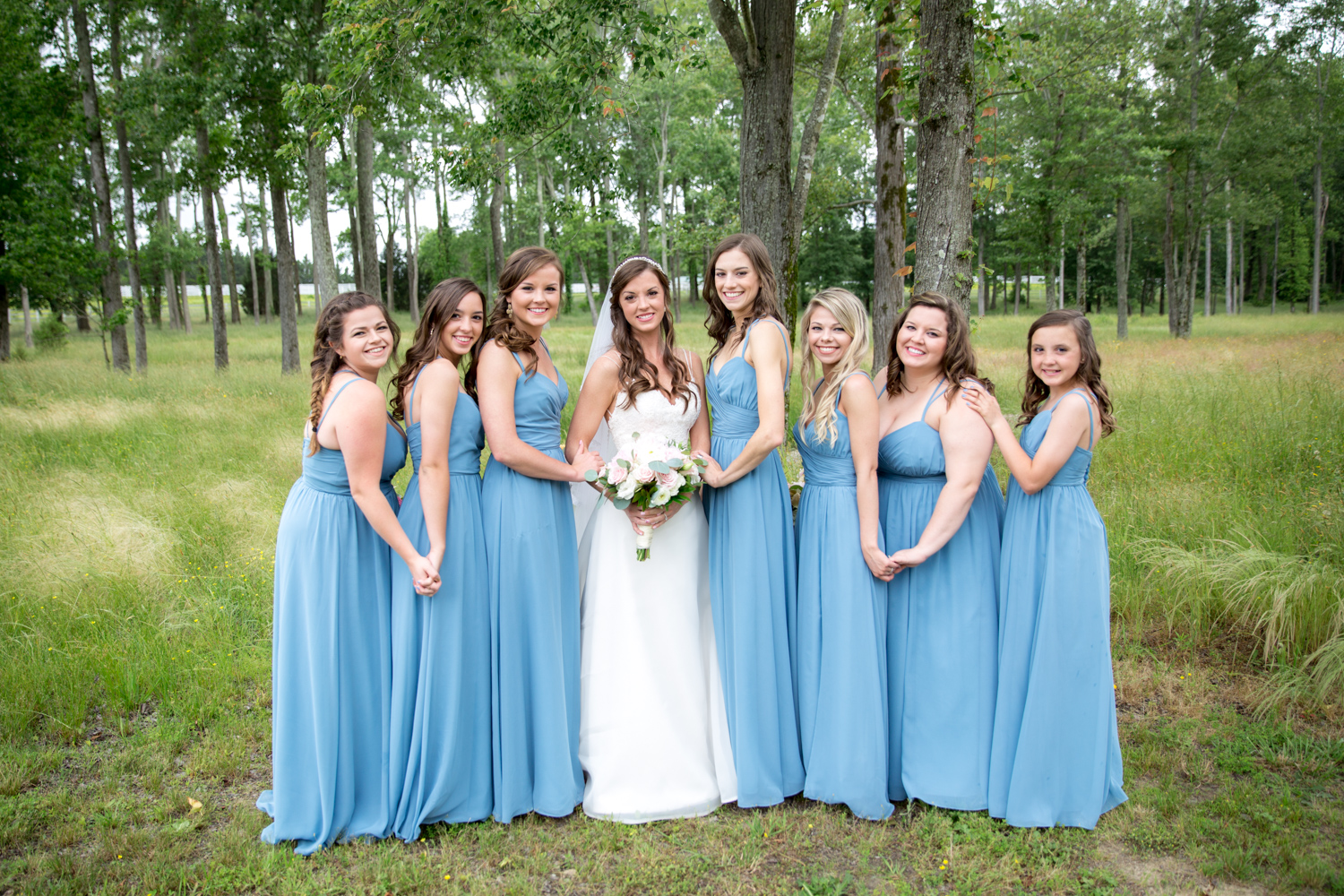 Not many bridal parties would agree to pose in the light RAIN, but both the guys and the girls posed WHILE IT WAS RAINING, with no umbrellas, and we were able to have pretty outdoor photographs. Because of their easy-going attitudes and willingness to trust our vision, it made the day go smoothly!