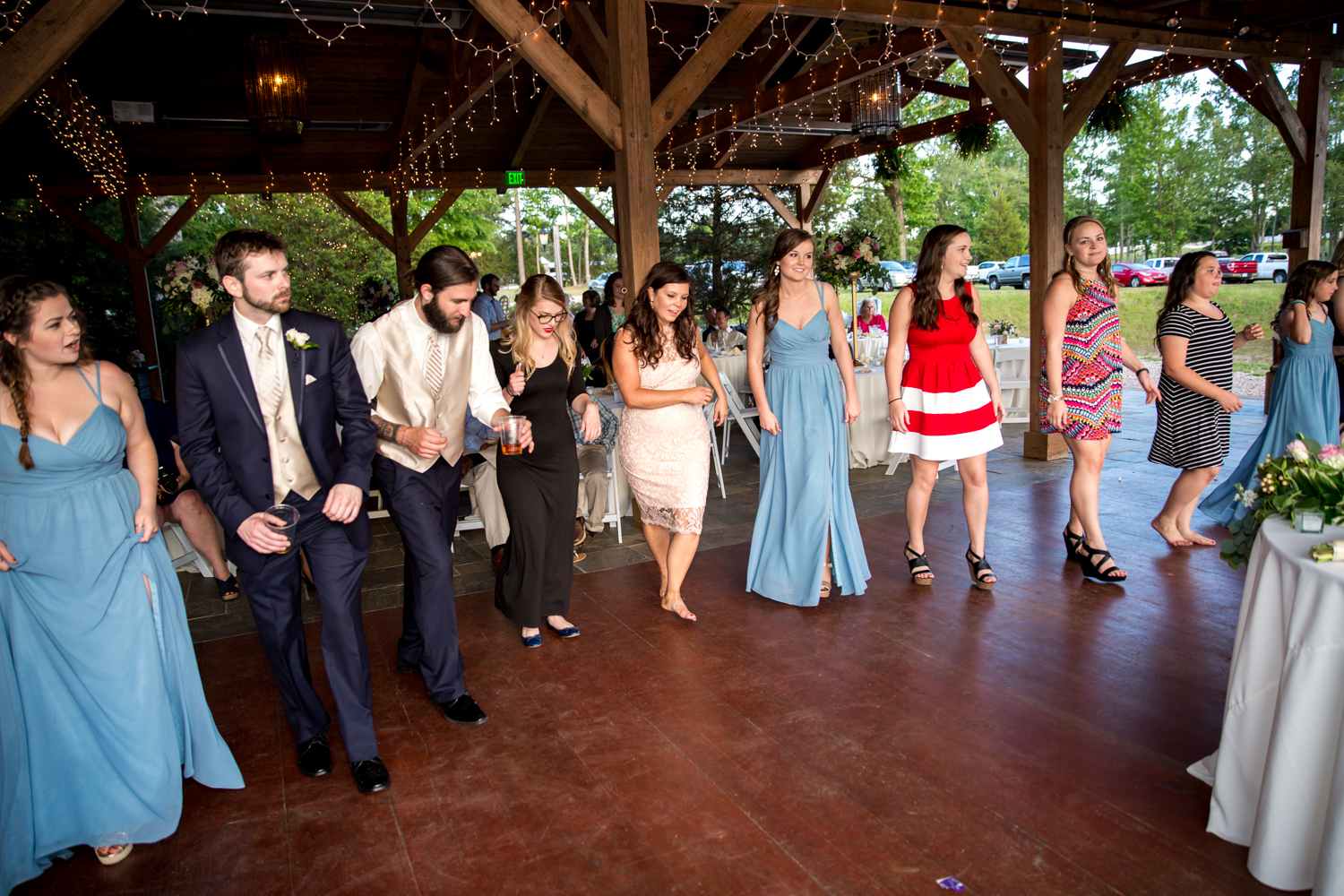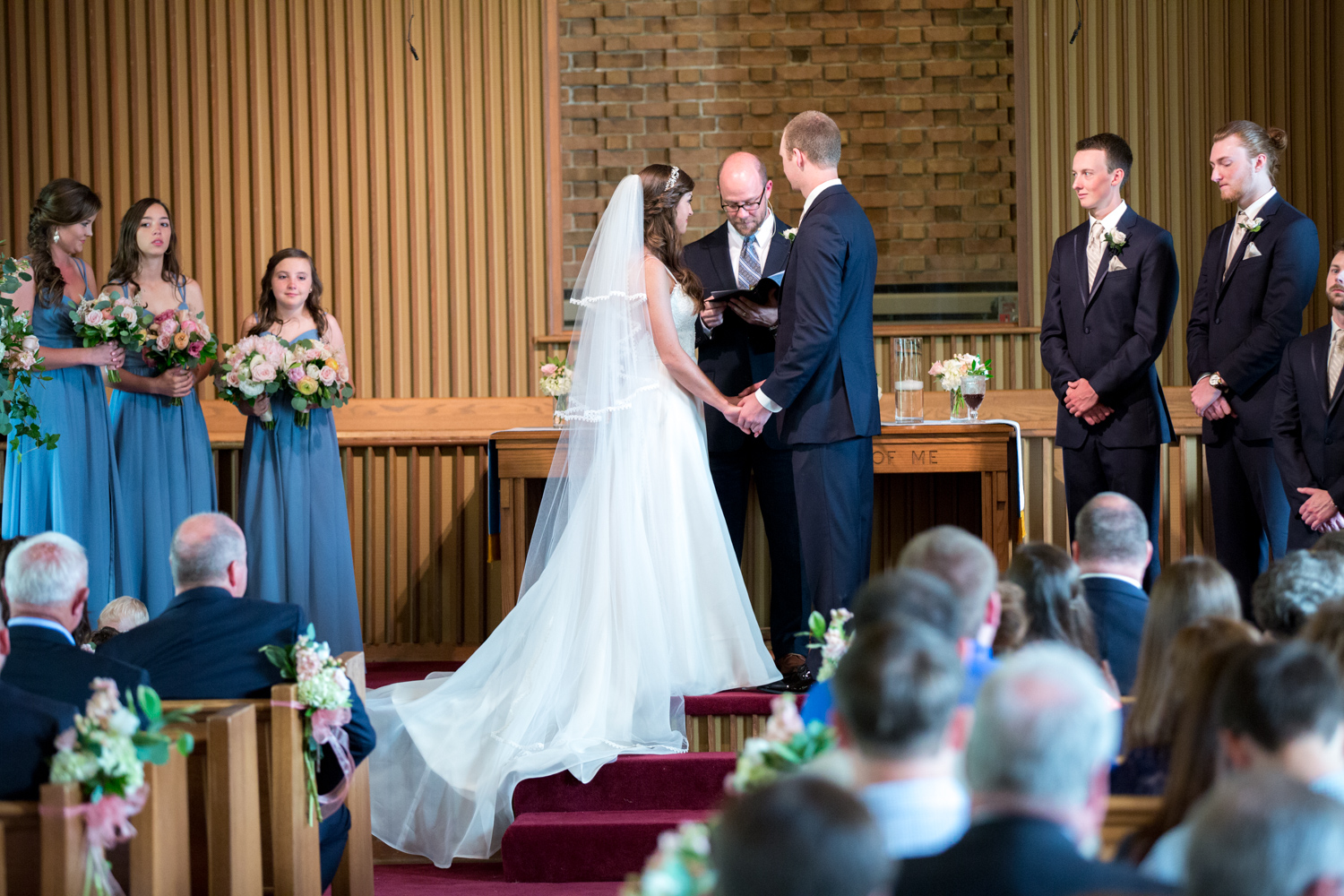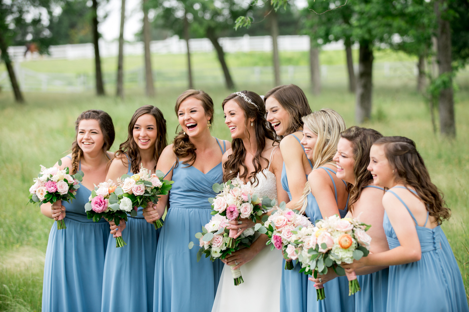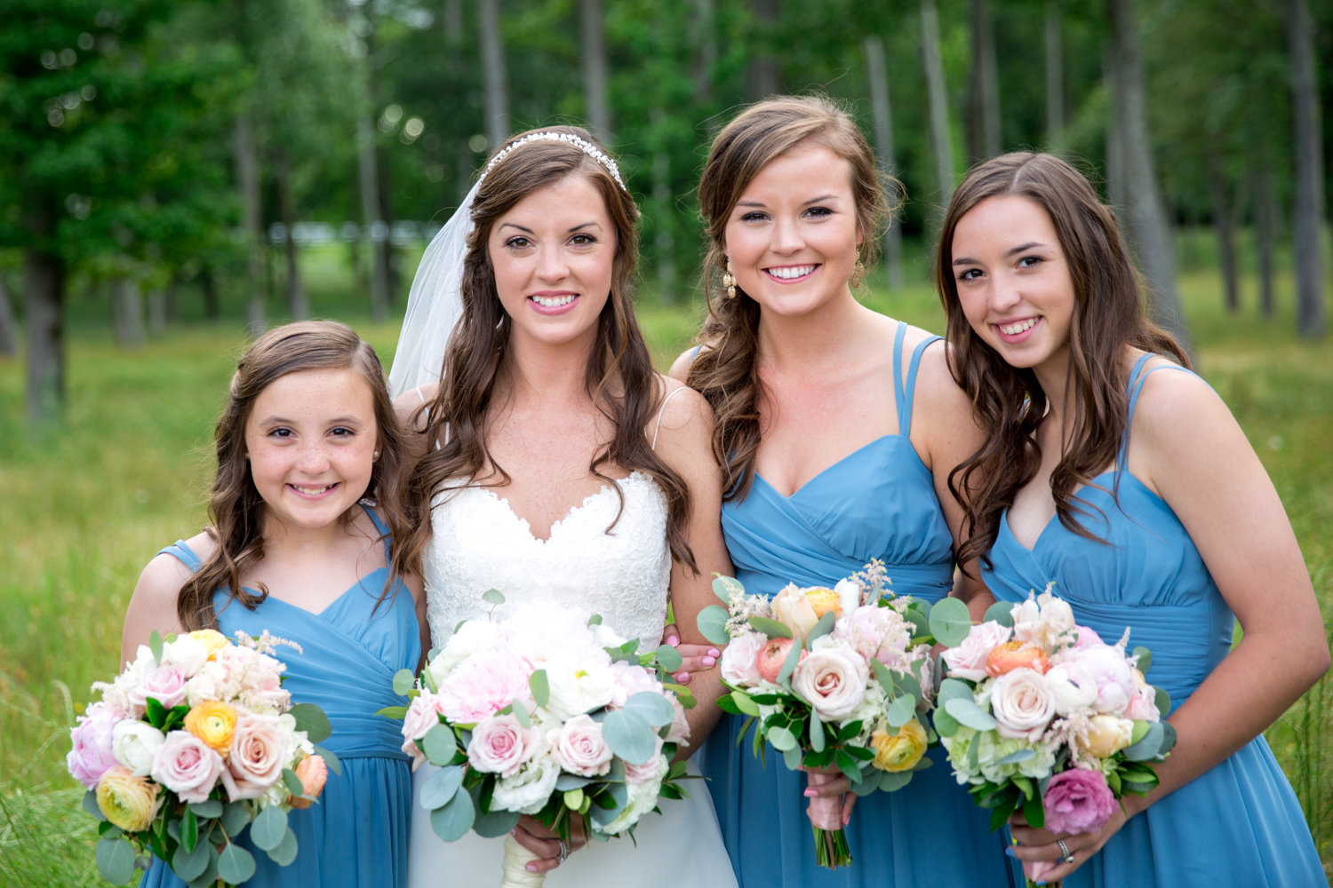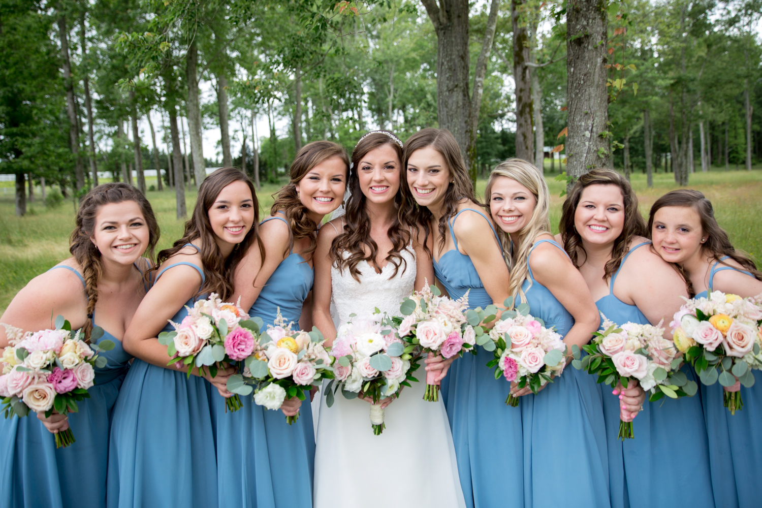 Not many bridal parties would agree to pose in the light RAIN, but both the guys and the girls posed WHILE IT WAS RAINING, with no umbrellas, and we were able to have pretty outdoor photographs. Because of their easy-going attitudes and willingness to trust our vision, it made the day go smoothly!