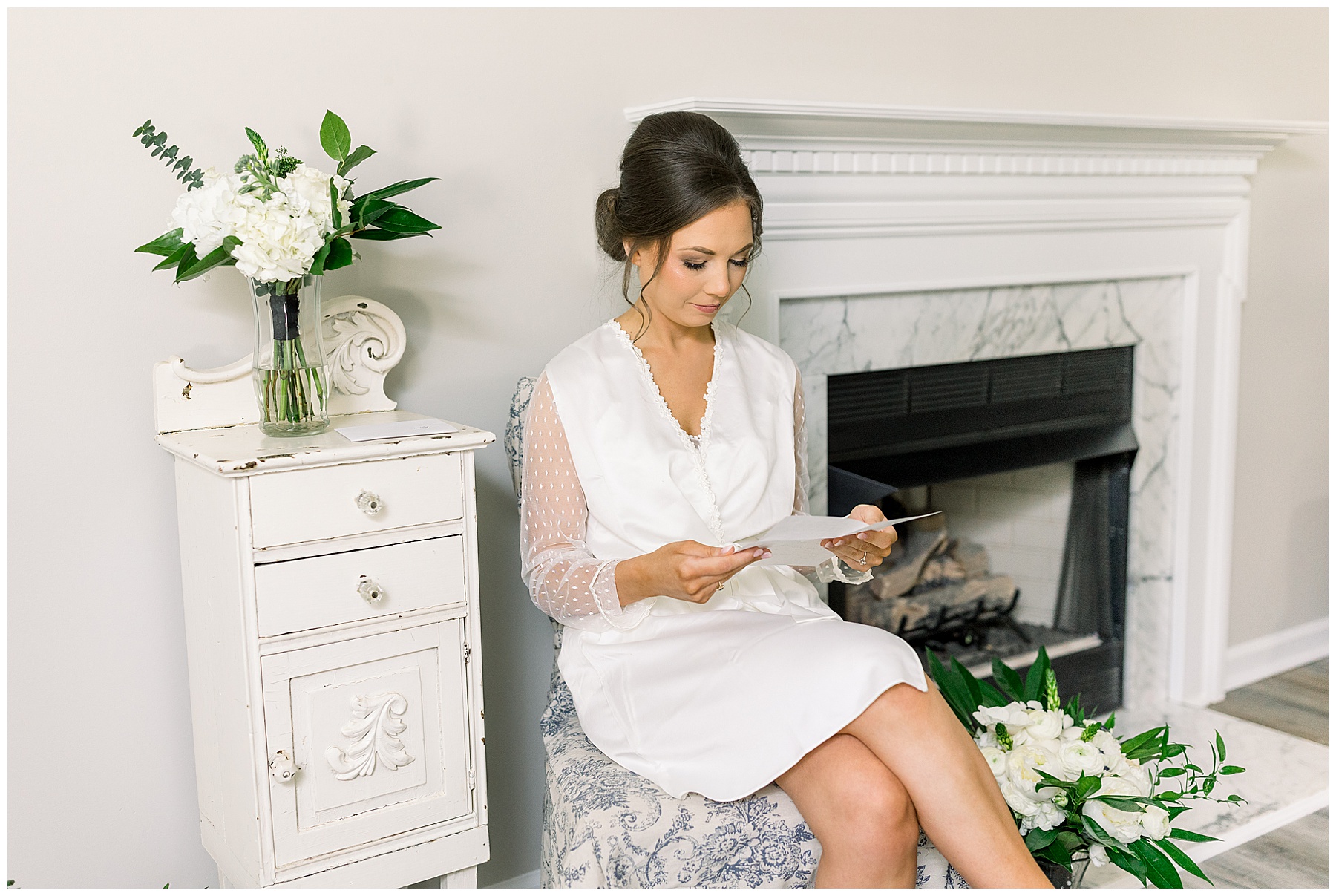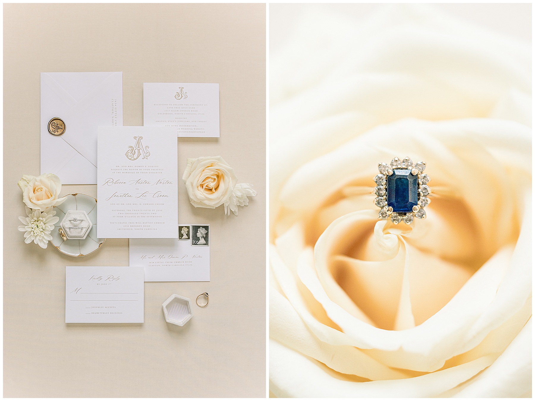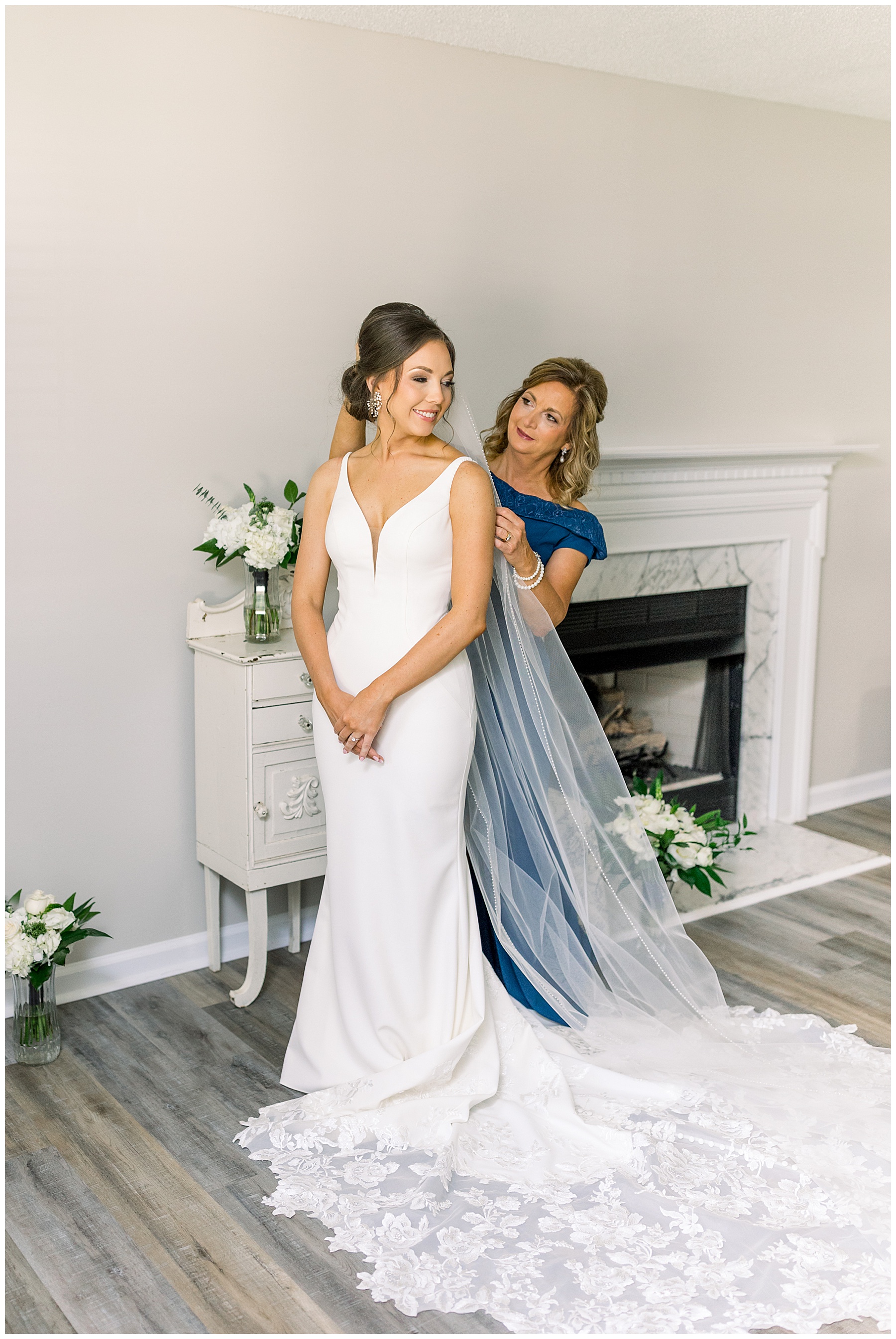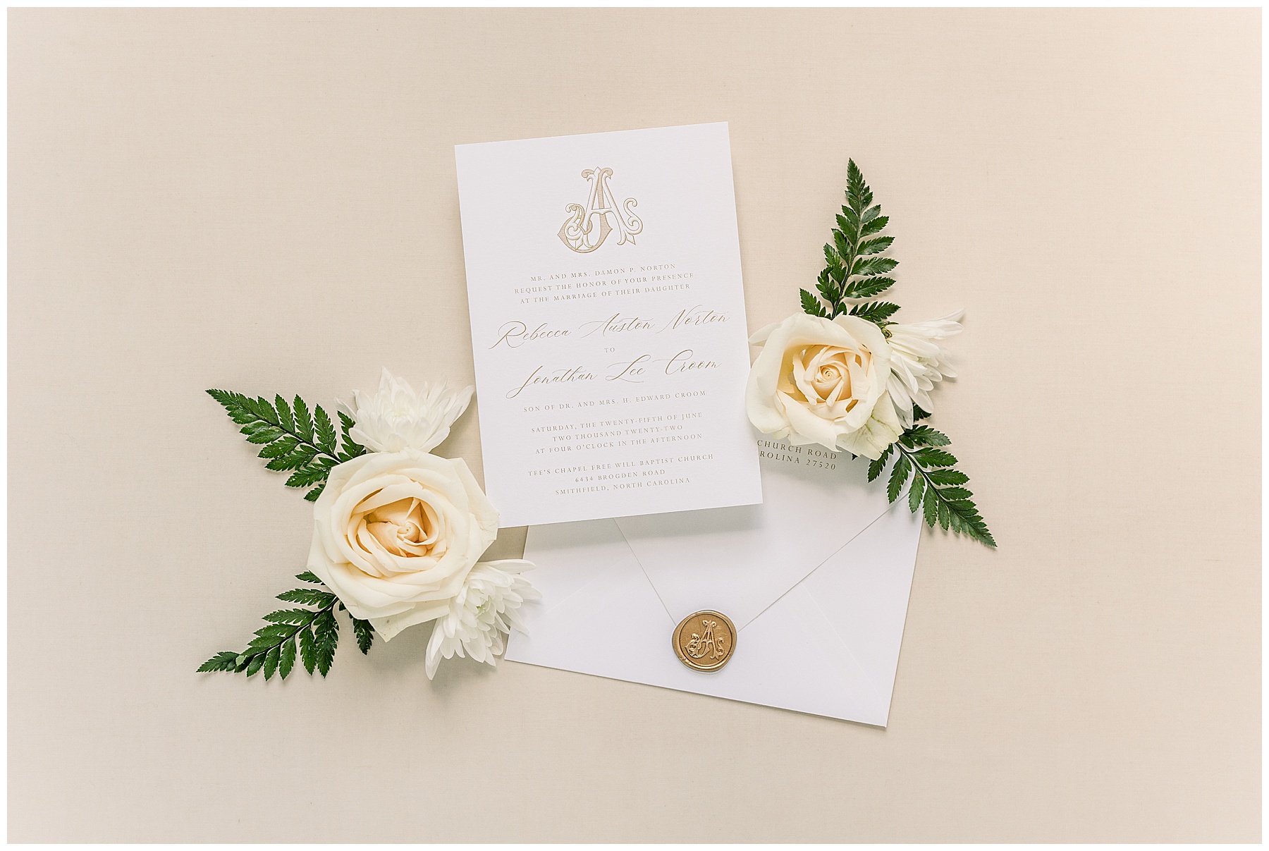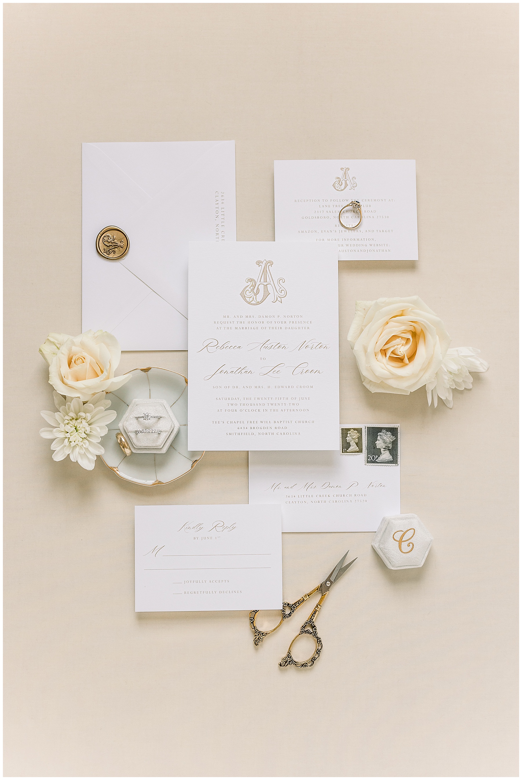 We started our day photographing all of Auston’s beautiful details at her Aunt Angie’s house. Her Aunt was an absolute SAINT for allowing us to basically re-arrange every room in her house for photos. (Thank you soooo much, Ms. Angie – you’re amazing!) One of the most special parts of the details was photographing Auston’s wedding dress on a piece of furniture given to her grandparents for THEIR wedding day! How special is that?! I also loved the classic monogram on their invitation suite created by Andi Workman. SO pretty!!
