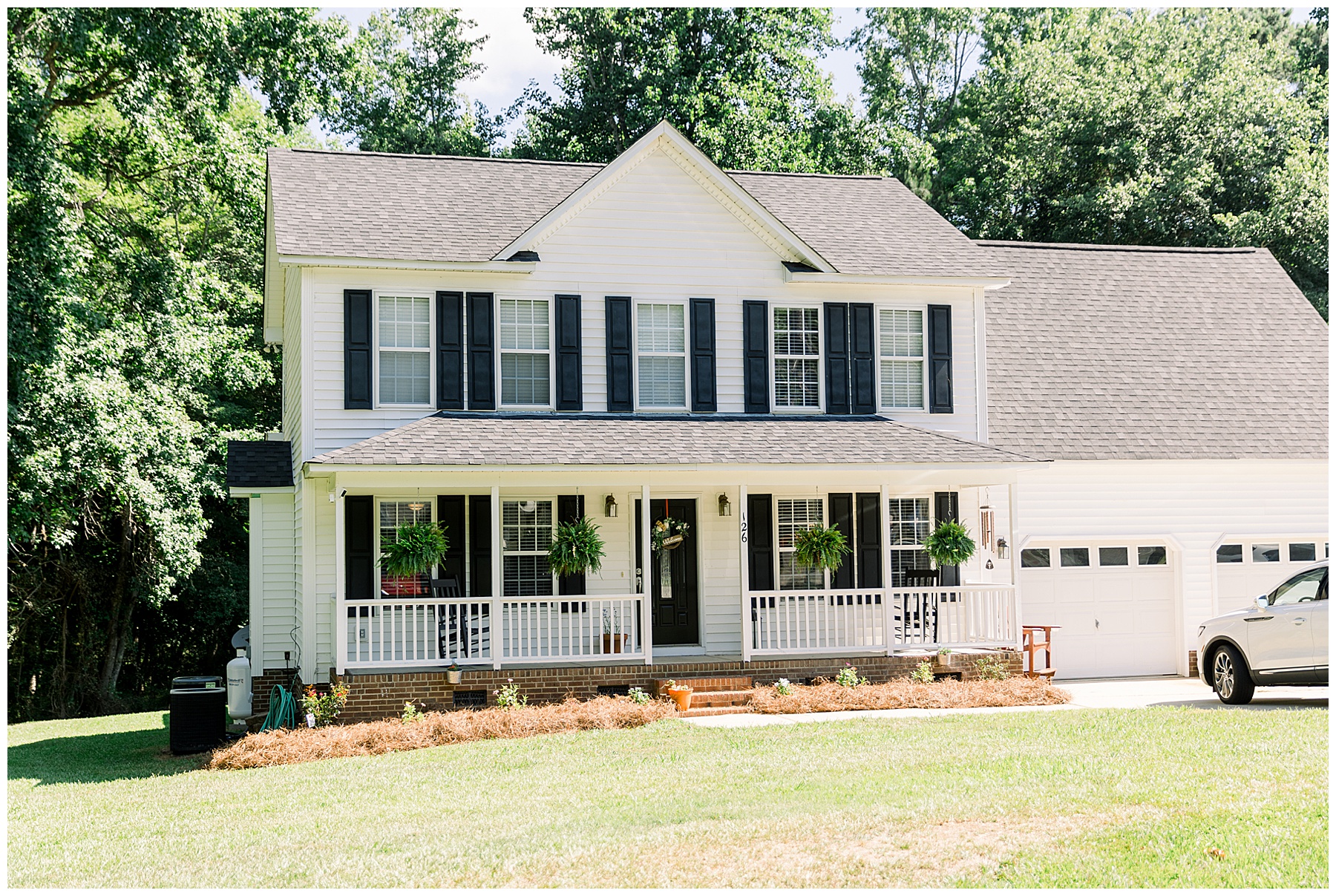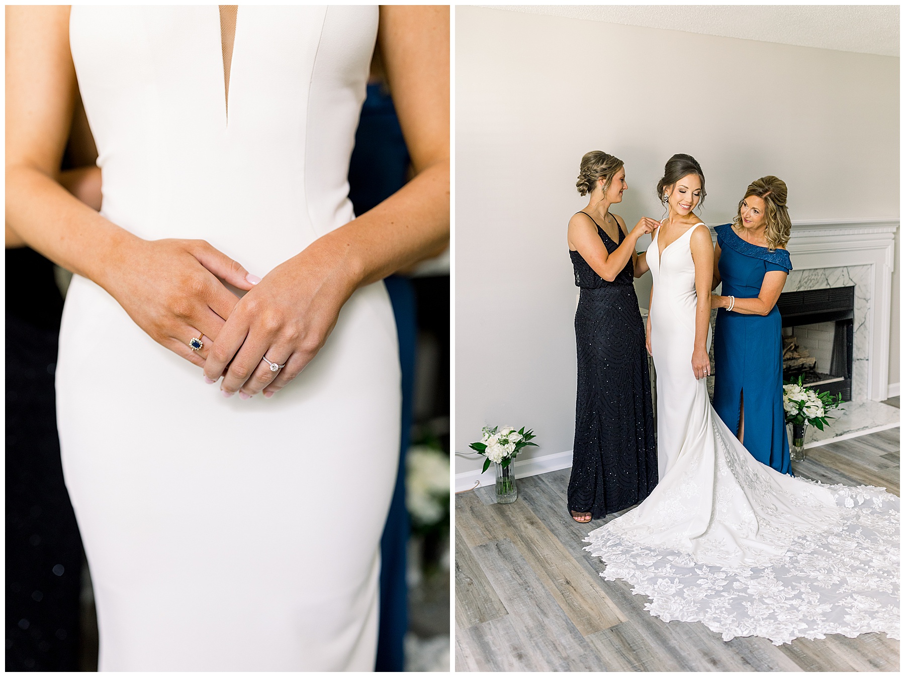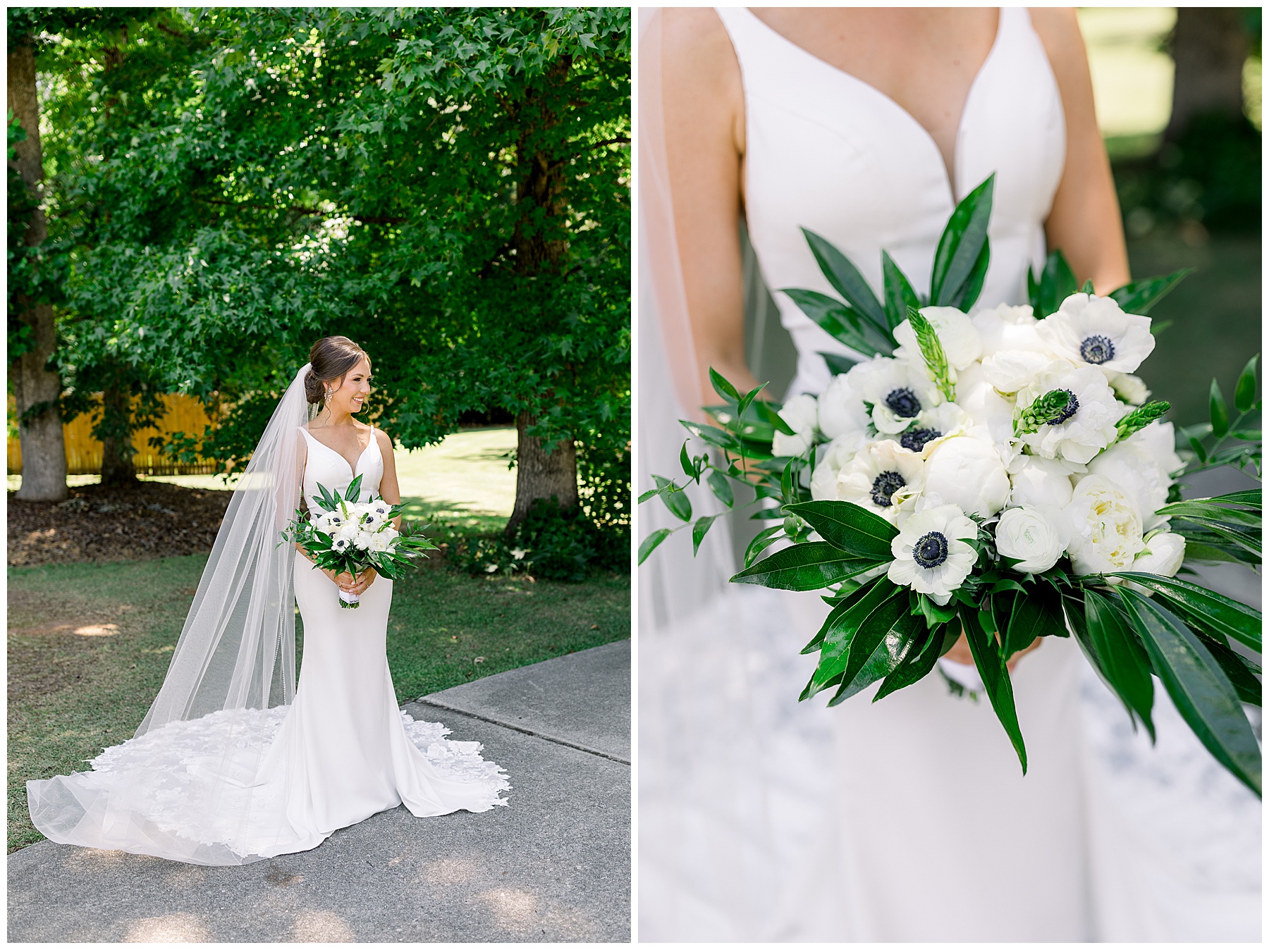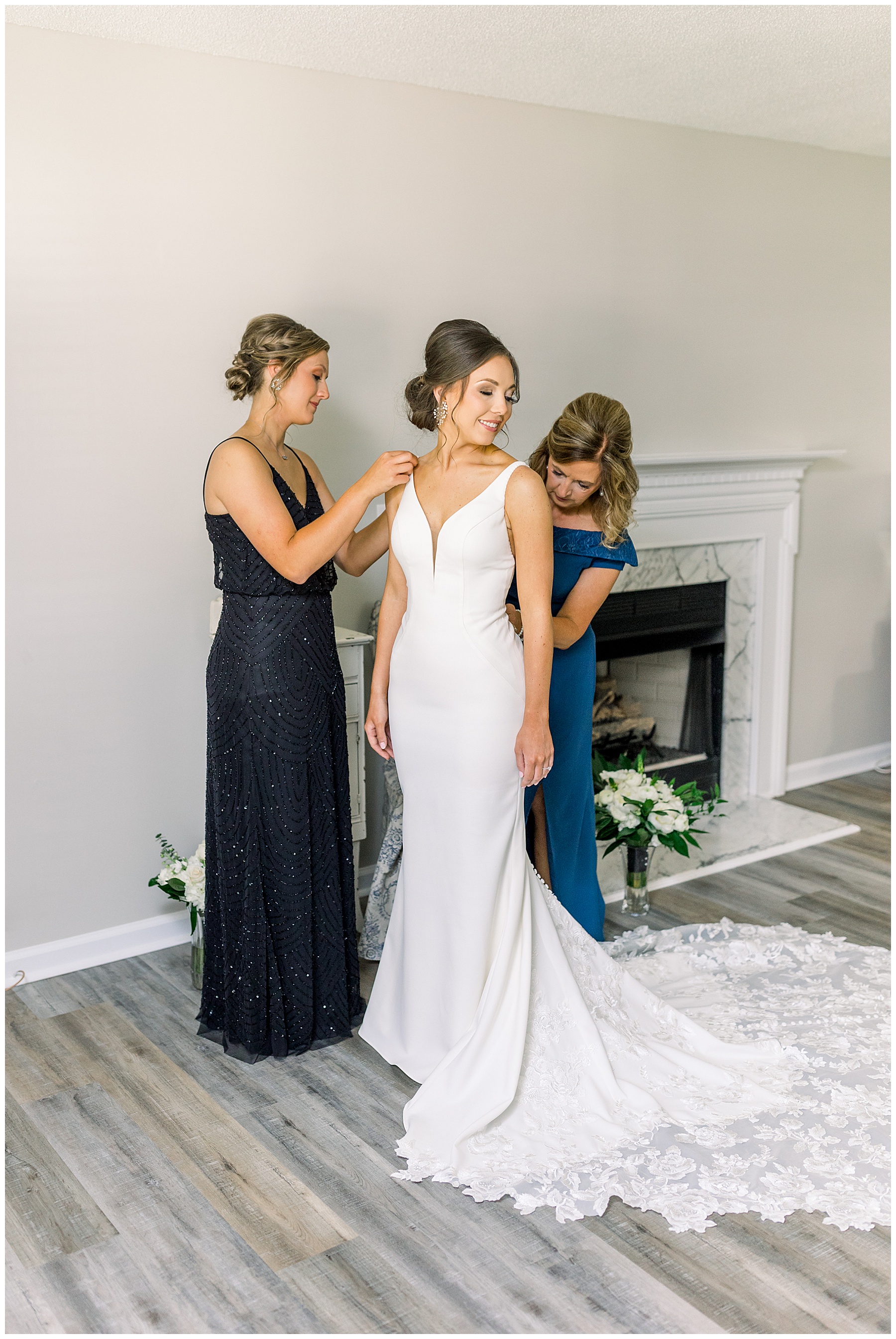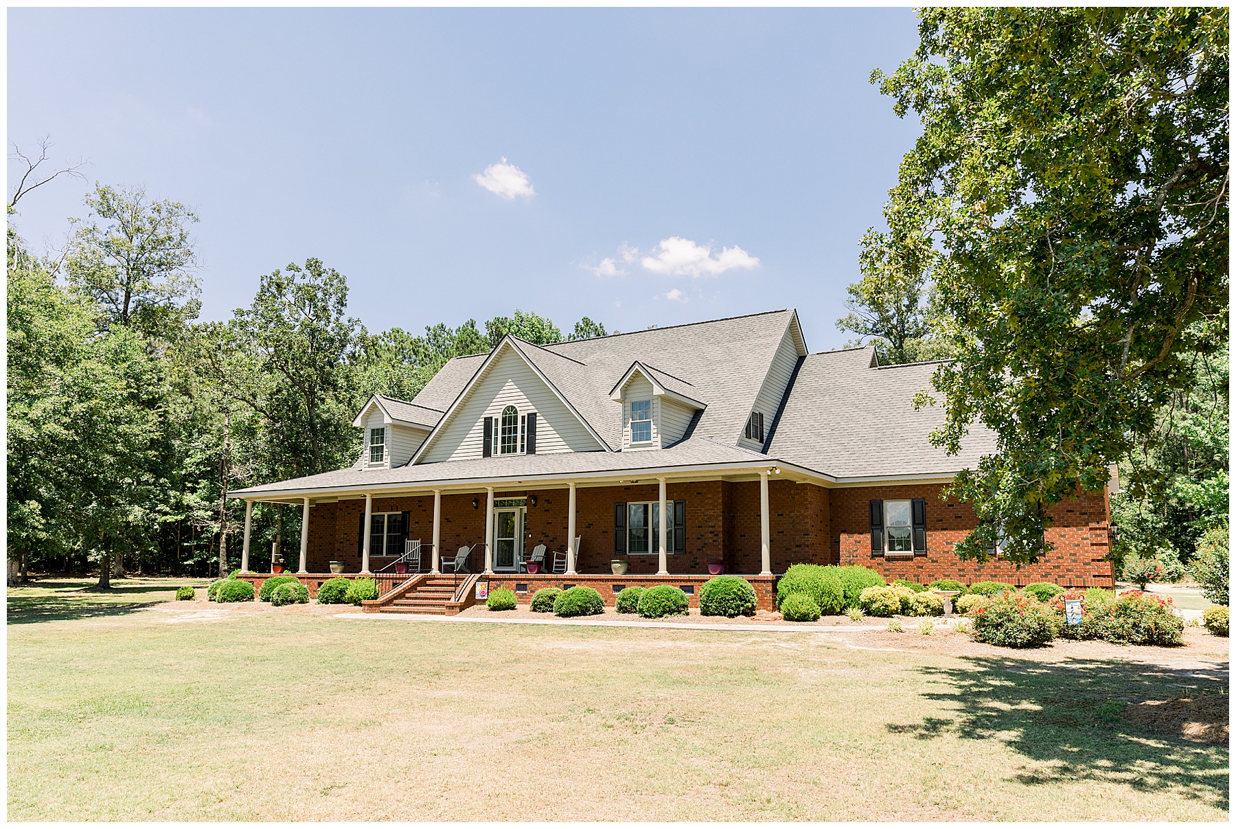We started our day photographing all of Auston’s beautiful details at her Aunt Angie’s house. Her Aunt was an absolute SAINT for allowing us to basically re-arrange every room in her house for photos. (Thank you soooo much, Ms. Angie – you’re amazing!) One of the most special parts of the details was photographing Auston’s wedding dress on a piece of furniture given to her grandparents for THEIR wedding day! How special is that?! I also loved the classic monogram on their invitation suite created by Andi Workman. SO pretty!!