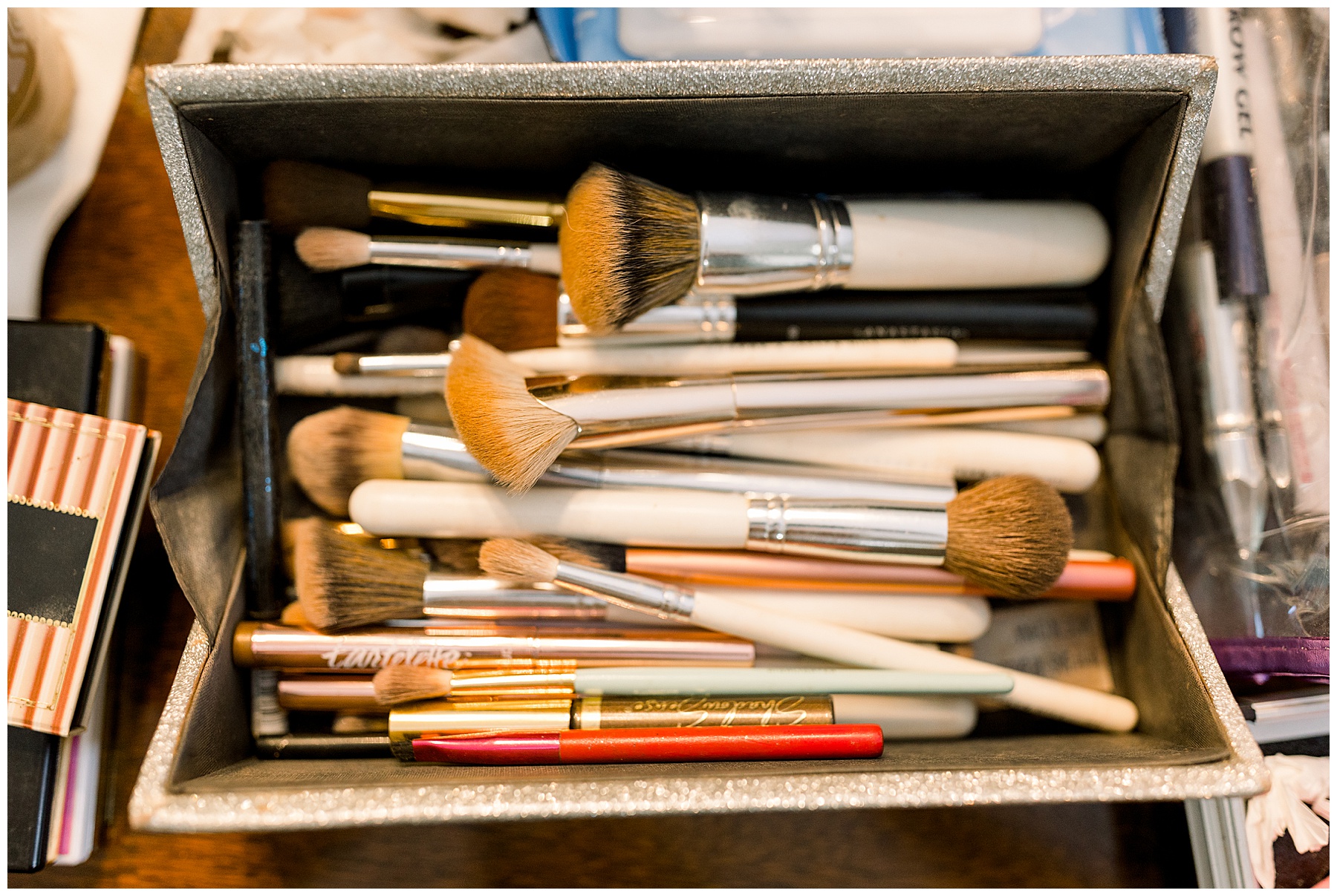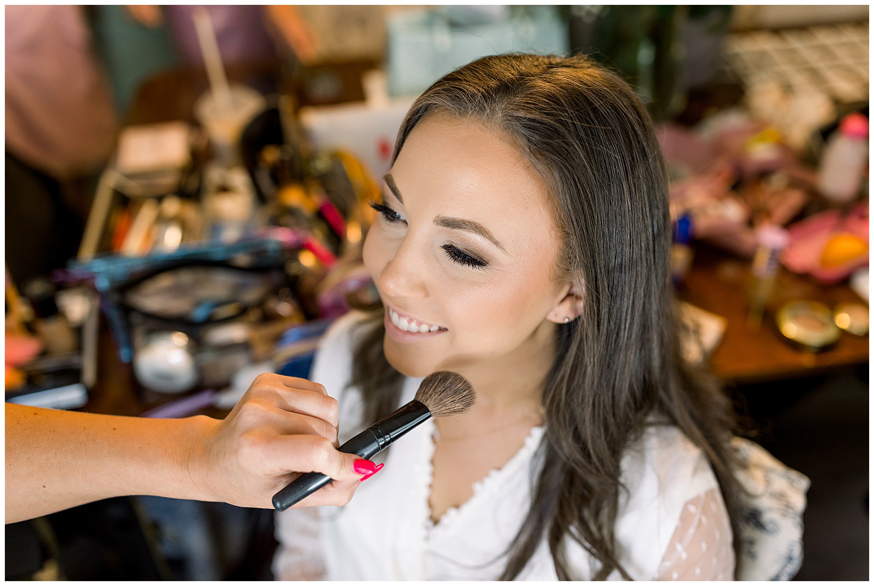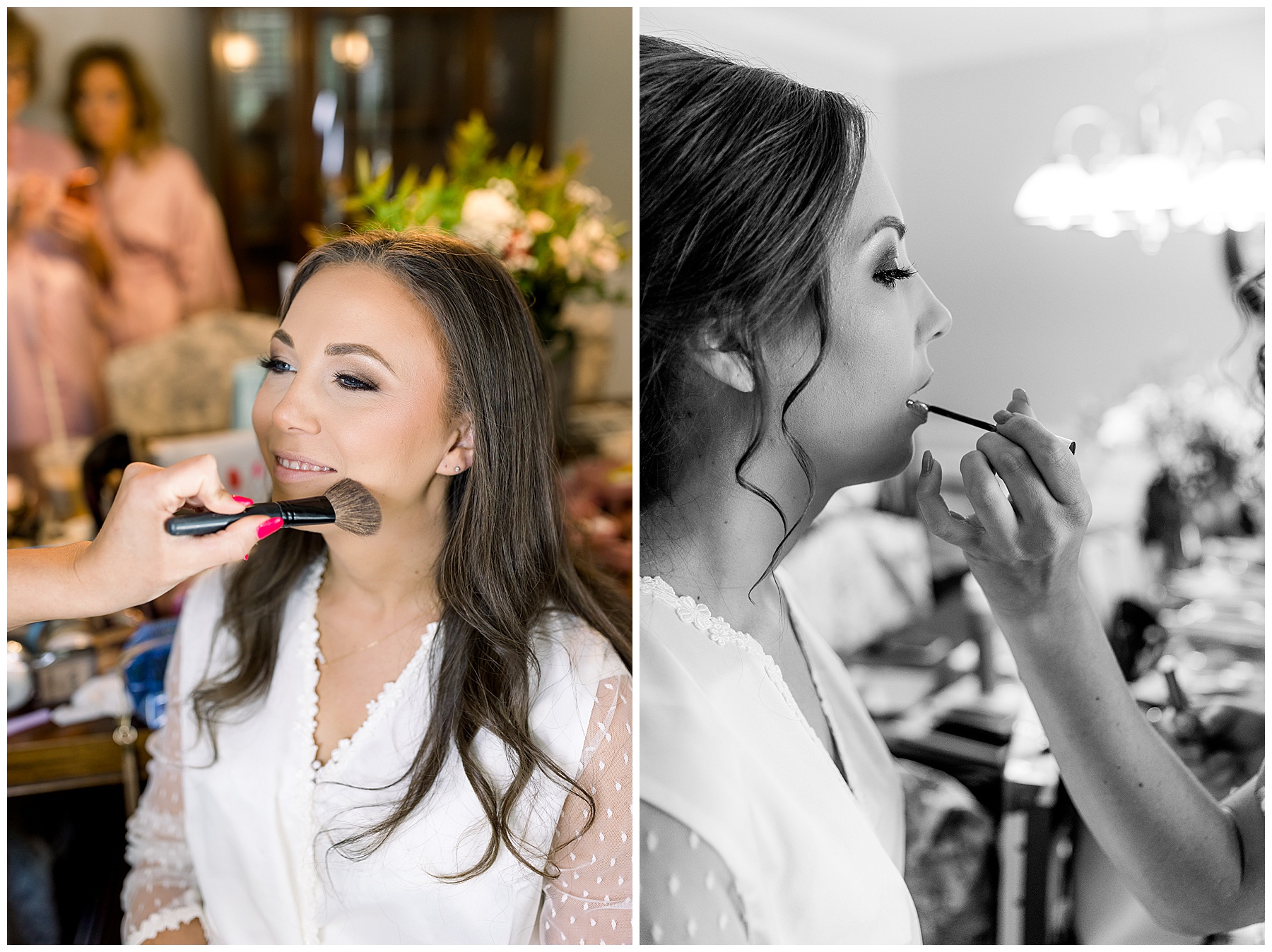 The girls were all enjoying listening to music, drinking Starbucks (my kind of girls!), and getting glammed up by talented ladies! Fun fact – Beauty by Karey (Karey Nicholson) is actually a TLJ Bride herself – and it was so fun to see her and catch up! All the bridesmaids looked so comfy in their cute PJ sets, and I love that Auston’s mom Jennifer even had a satin robe to match! :)