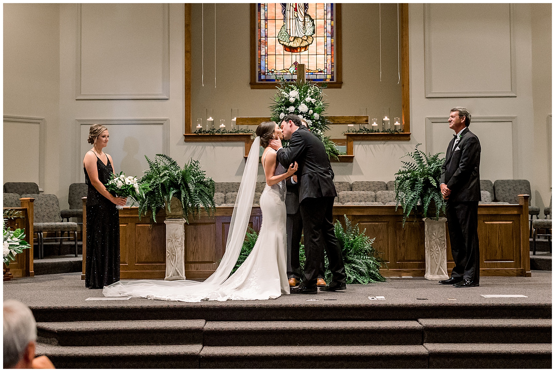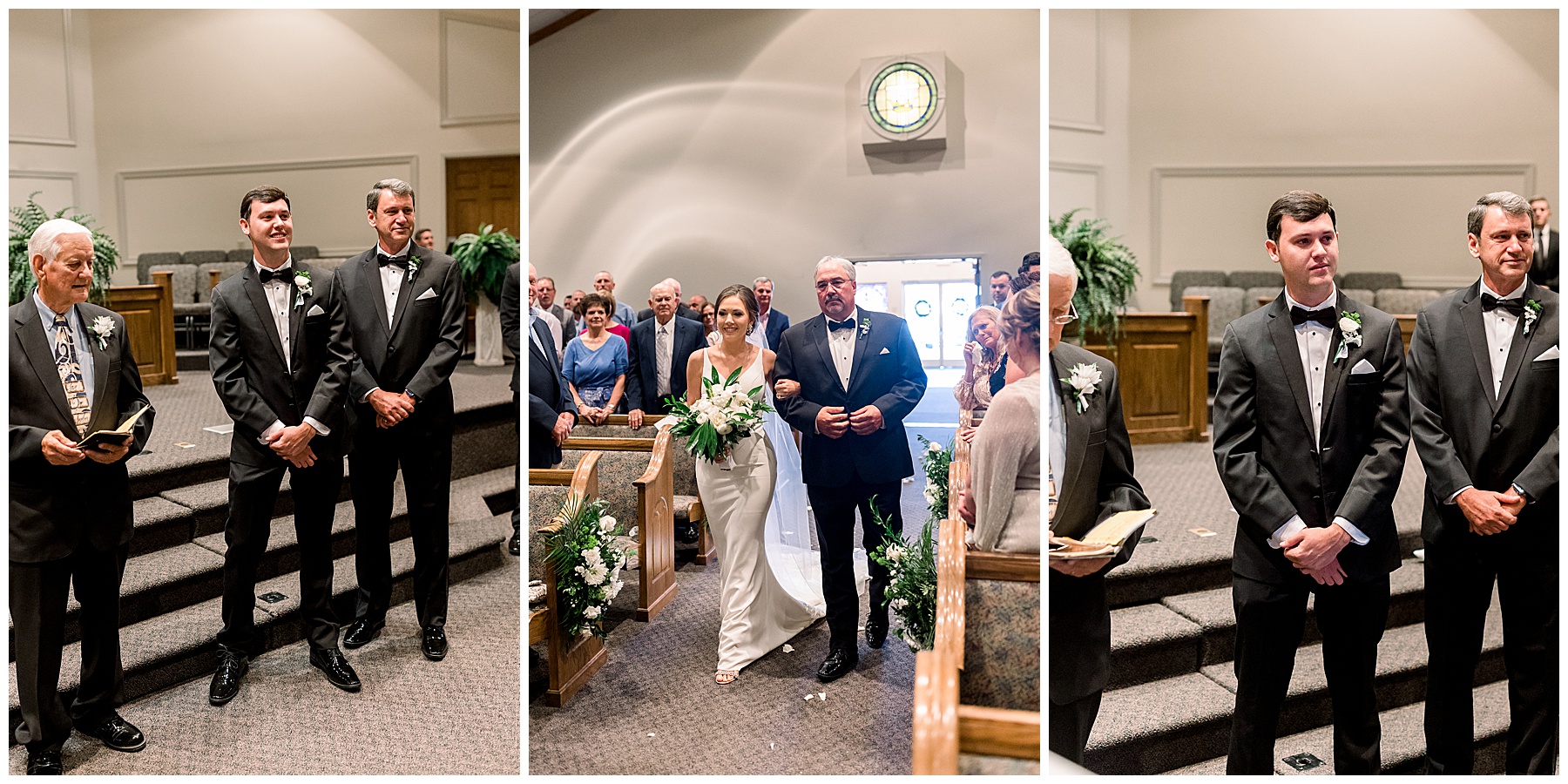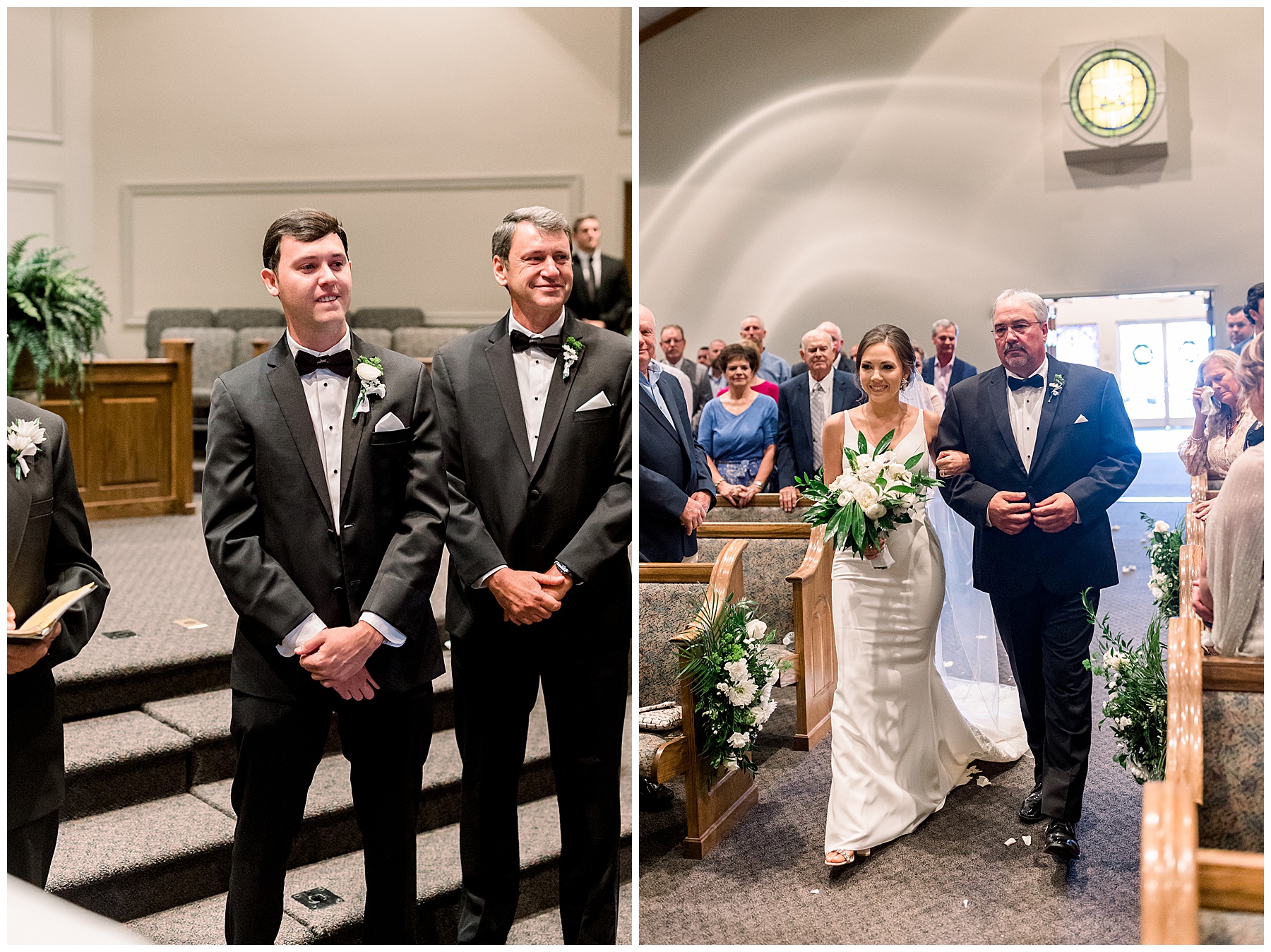 After getting ready, Auston had a First Look with her sweet bridesmaids (the precious one crying is our TLJ Bride Lindsey! Click HERE to see her wedding day!) and then a First Look with her daddy! He had worked so hard to make sure the landscaping would be beautiful for photos – so thank you Mr. Damon for that! After all the bridesmaids photos, we headed to Auston’s home church for the ceremony.