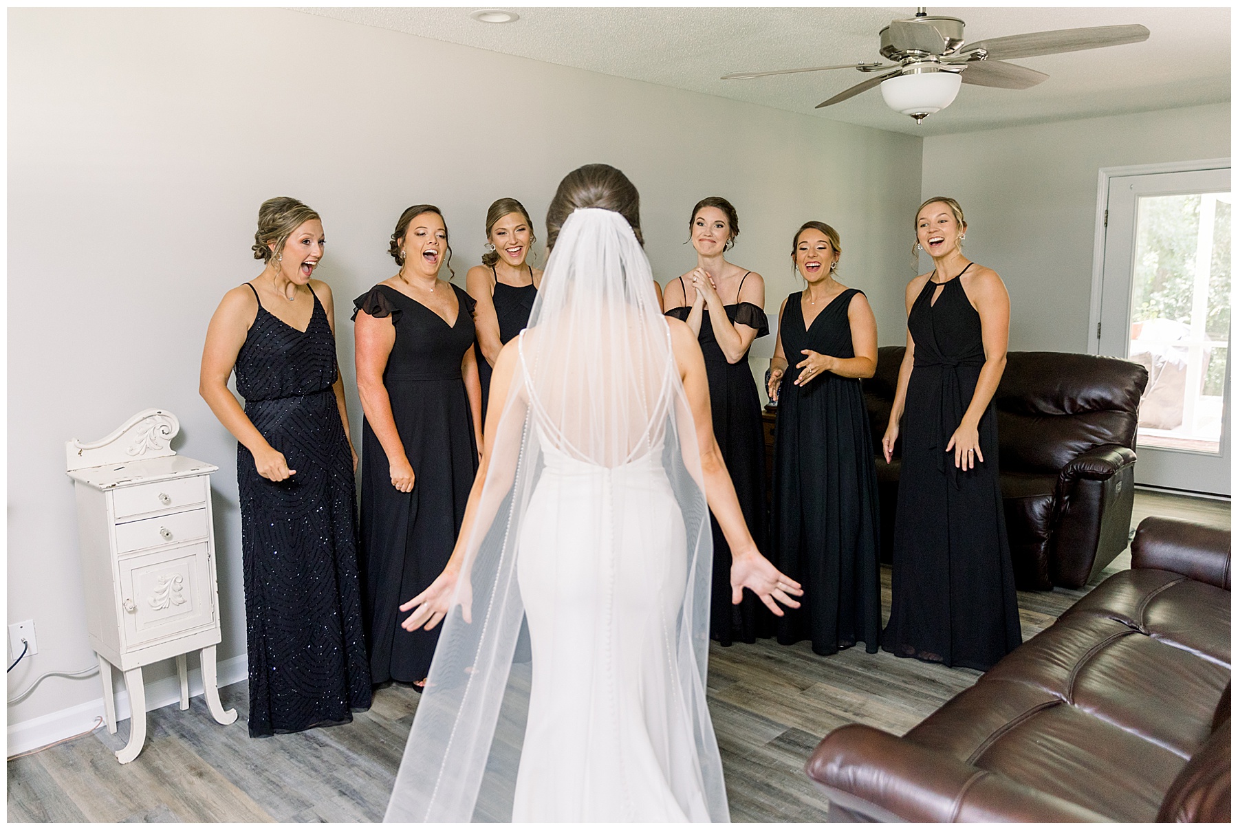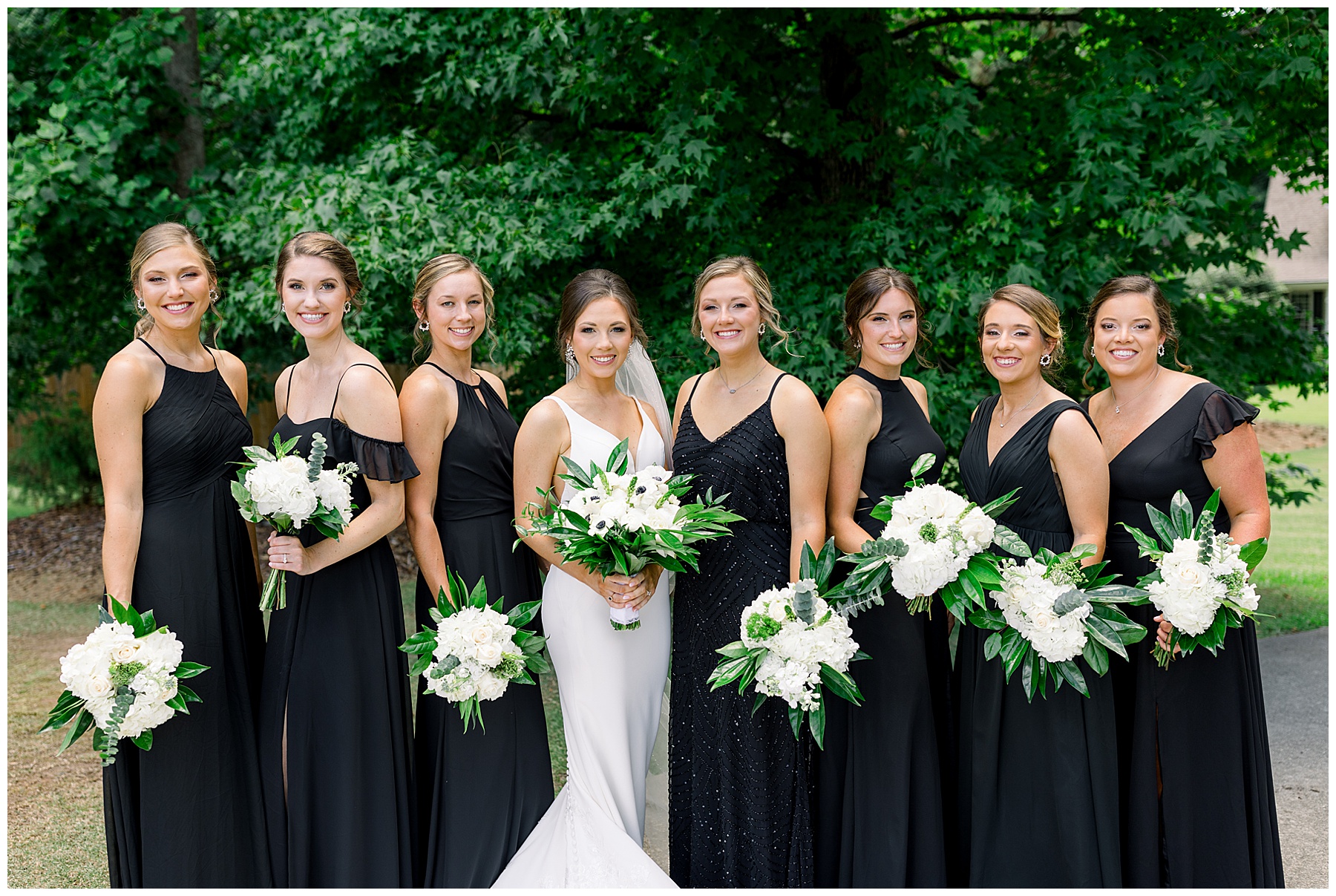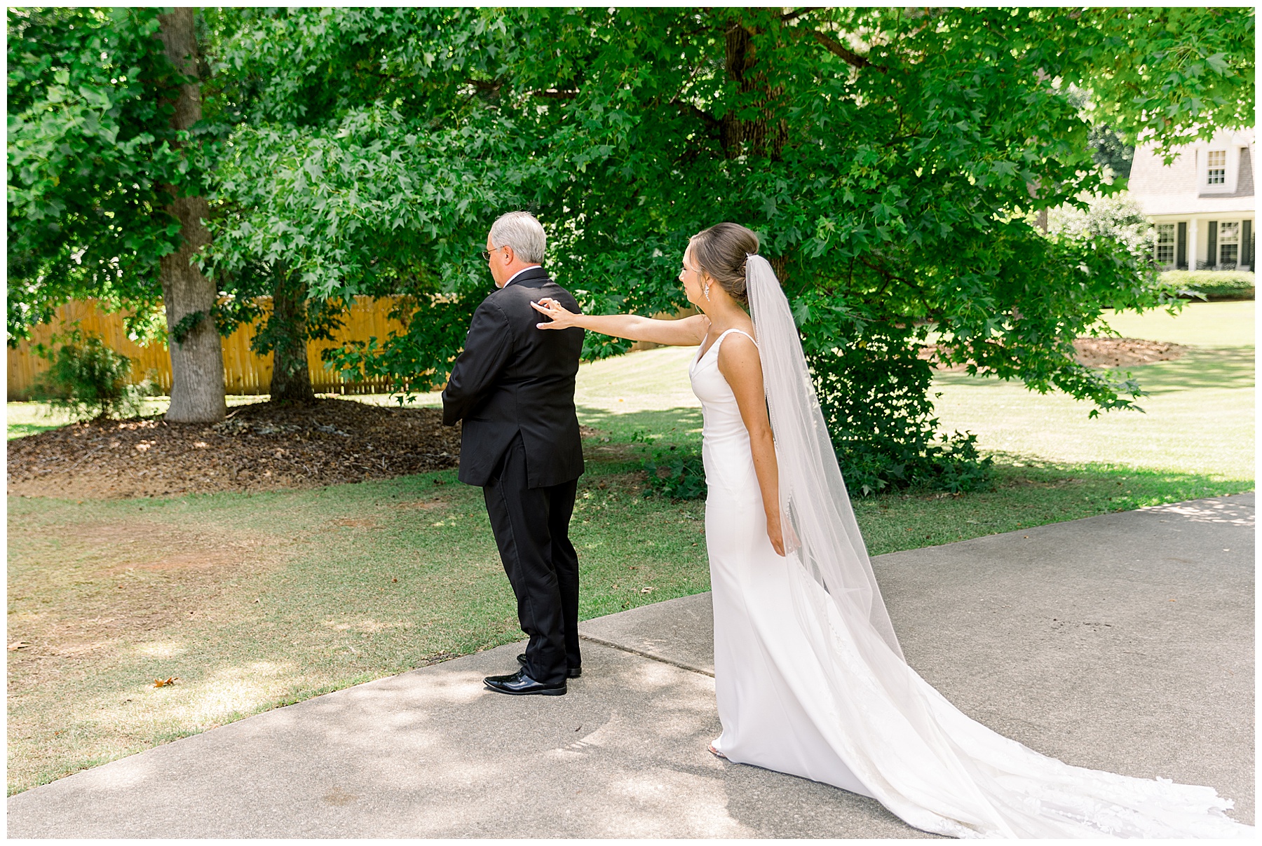 After getting ready, Auston had a First Look with her sweet bridesmaids (the precious one crying is our TLJ Bride Lindsey! Click HERE to see her wedding day!) and then a First Look with her daddy! He had worked so hard to make sure the landscaping would be beautiful for photos – so thank you Mr. Damon for that! After all the bridesmaids photos, we headed to Auston’s home church for the ceremony.