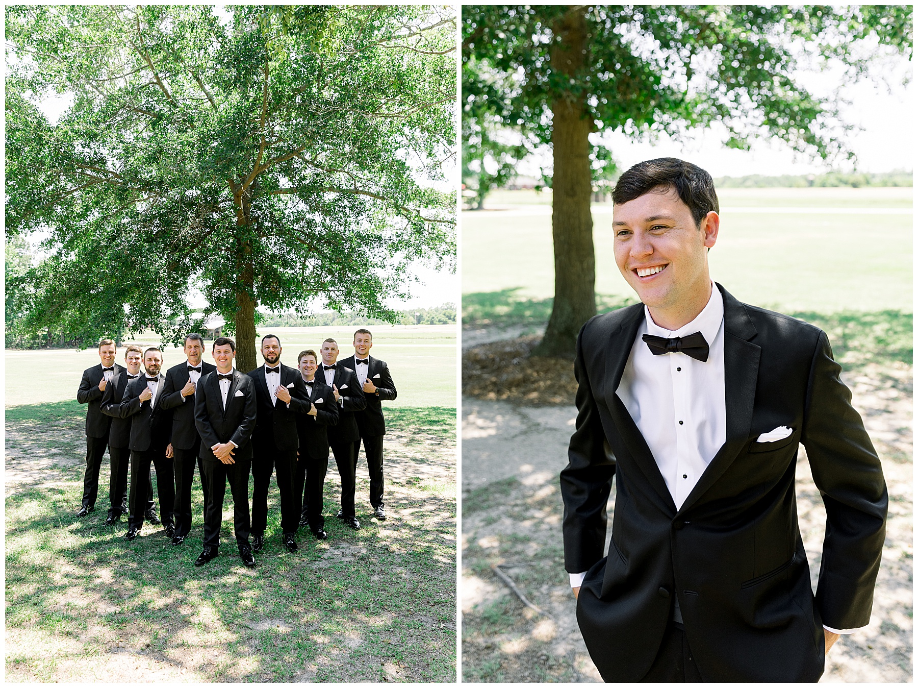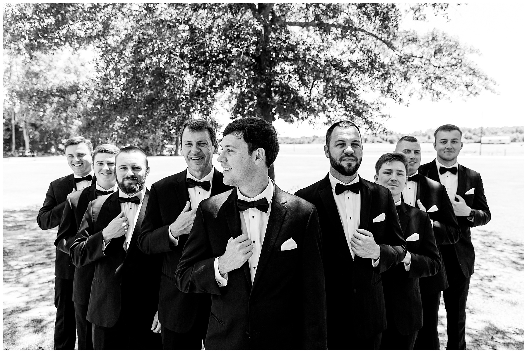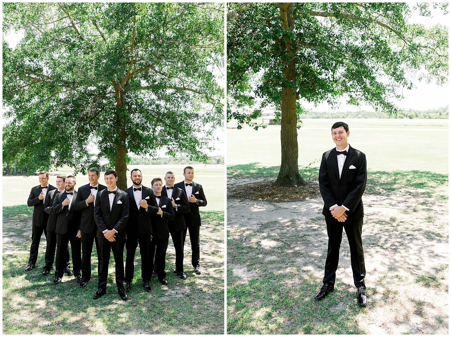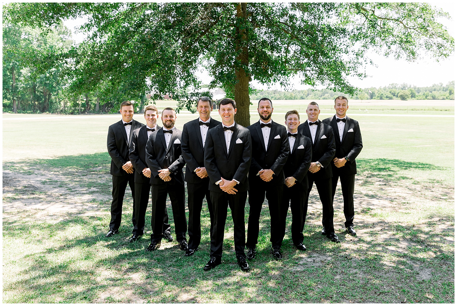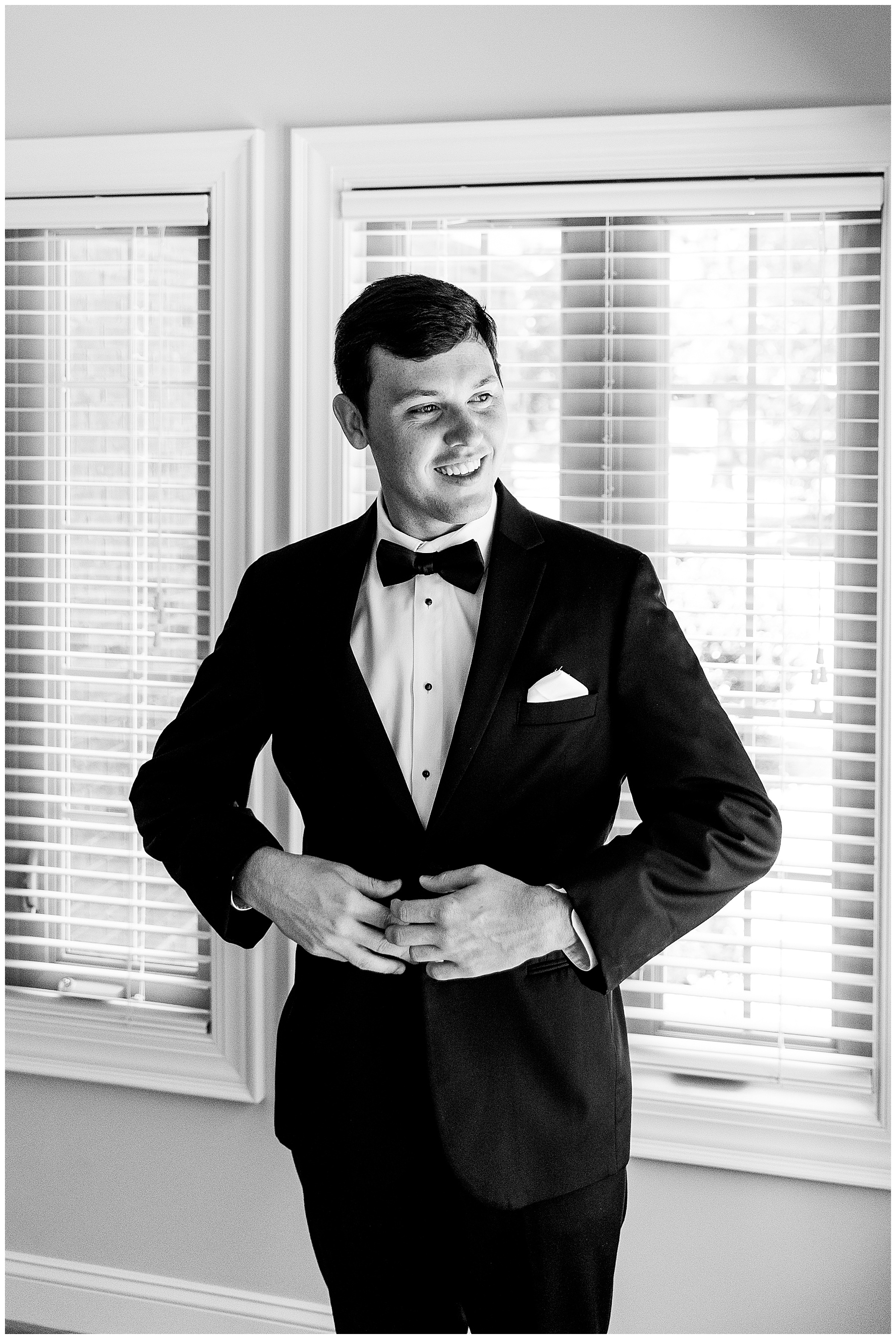Phillip was hanging out & photographing all the guys at Jonathan’s family home – and he was in heaven with guys who talk golf AND two golden retrievers (Goose & Maverick) running around! Jonathan had 8 groomsmen and 6 ushers, and they all looked so handsome in their black tuxes!