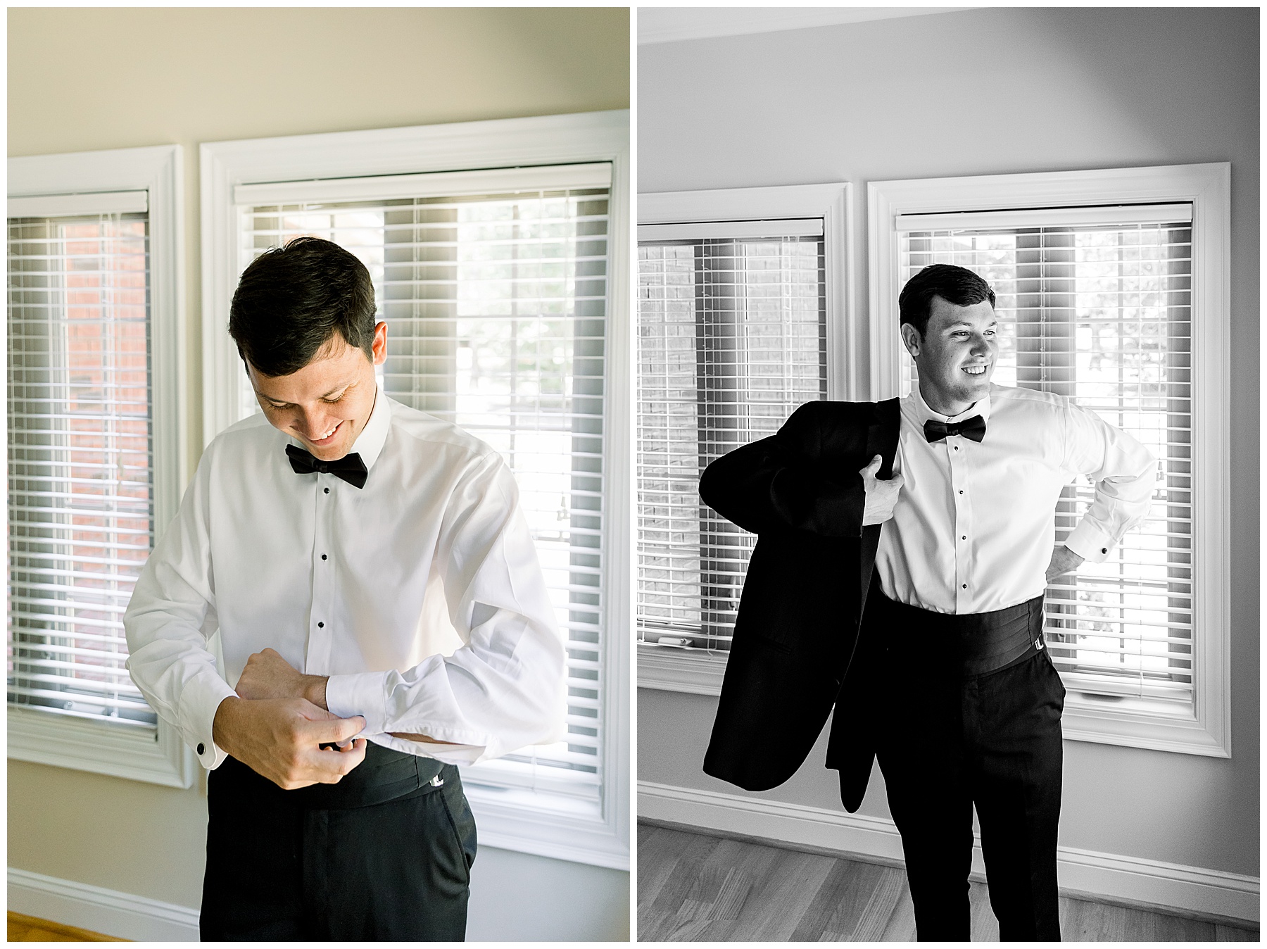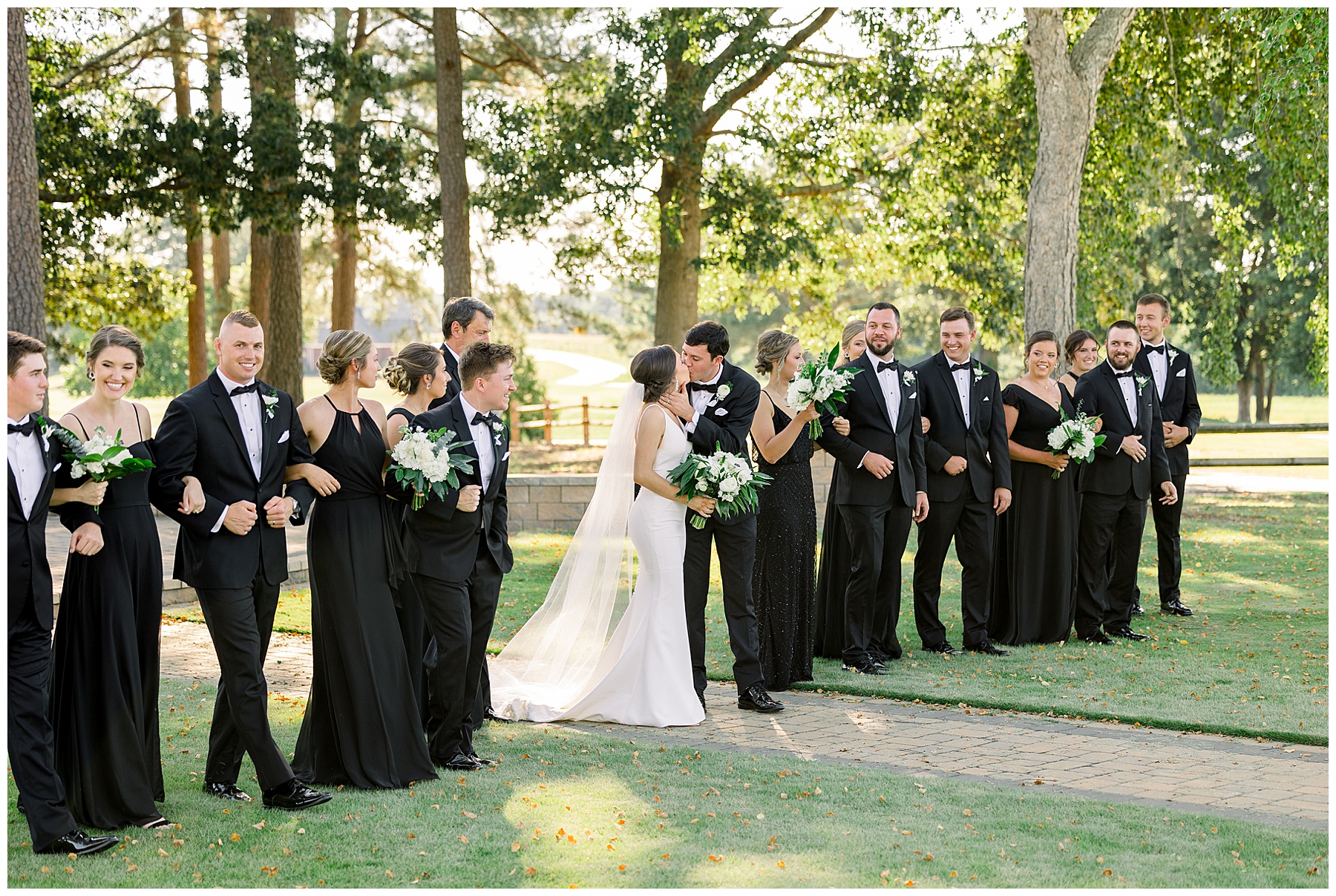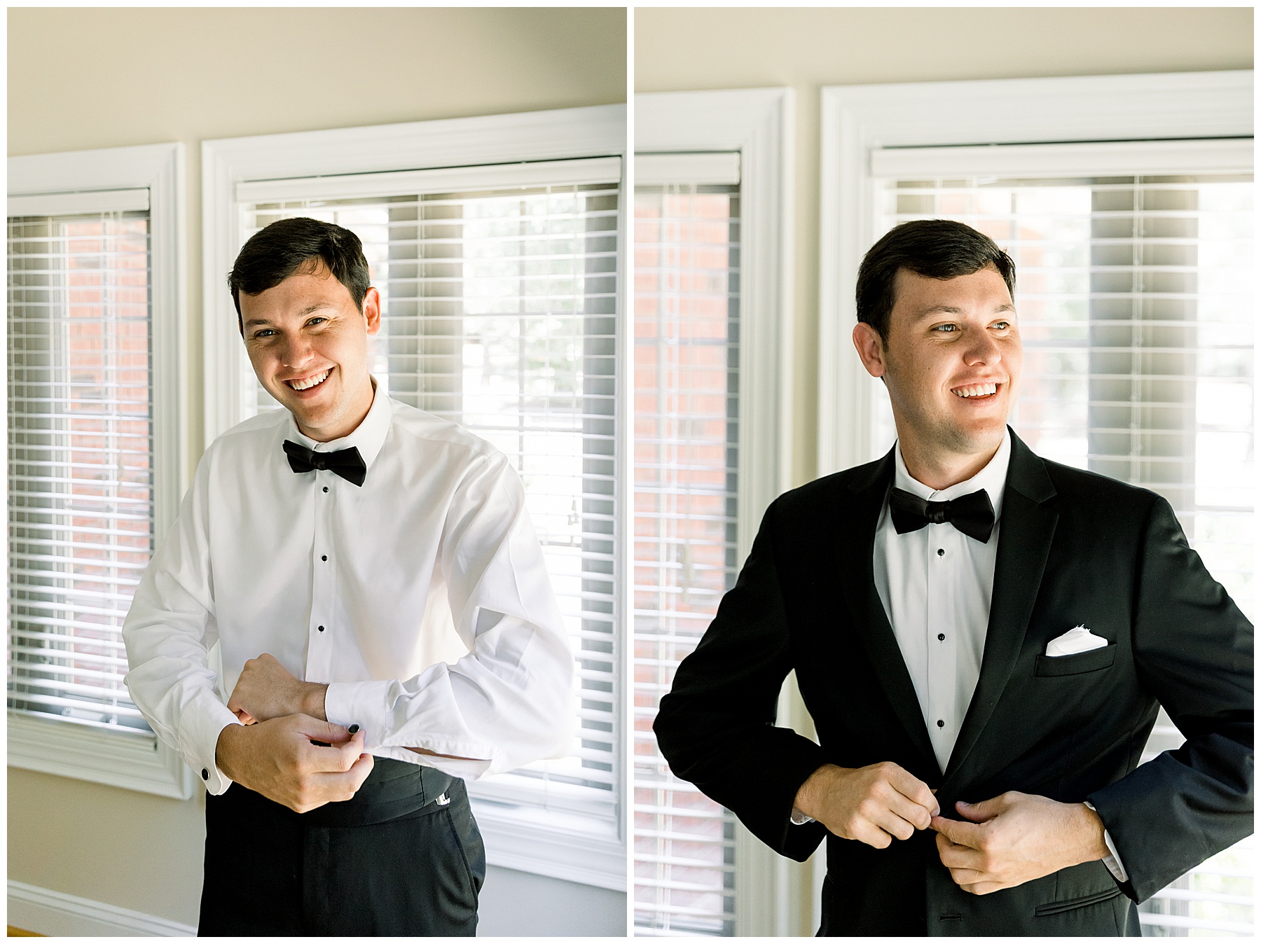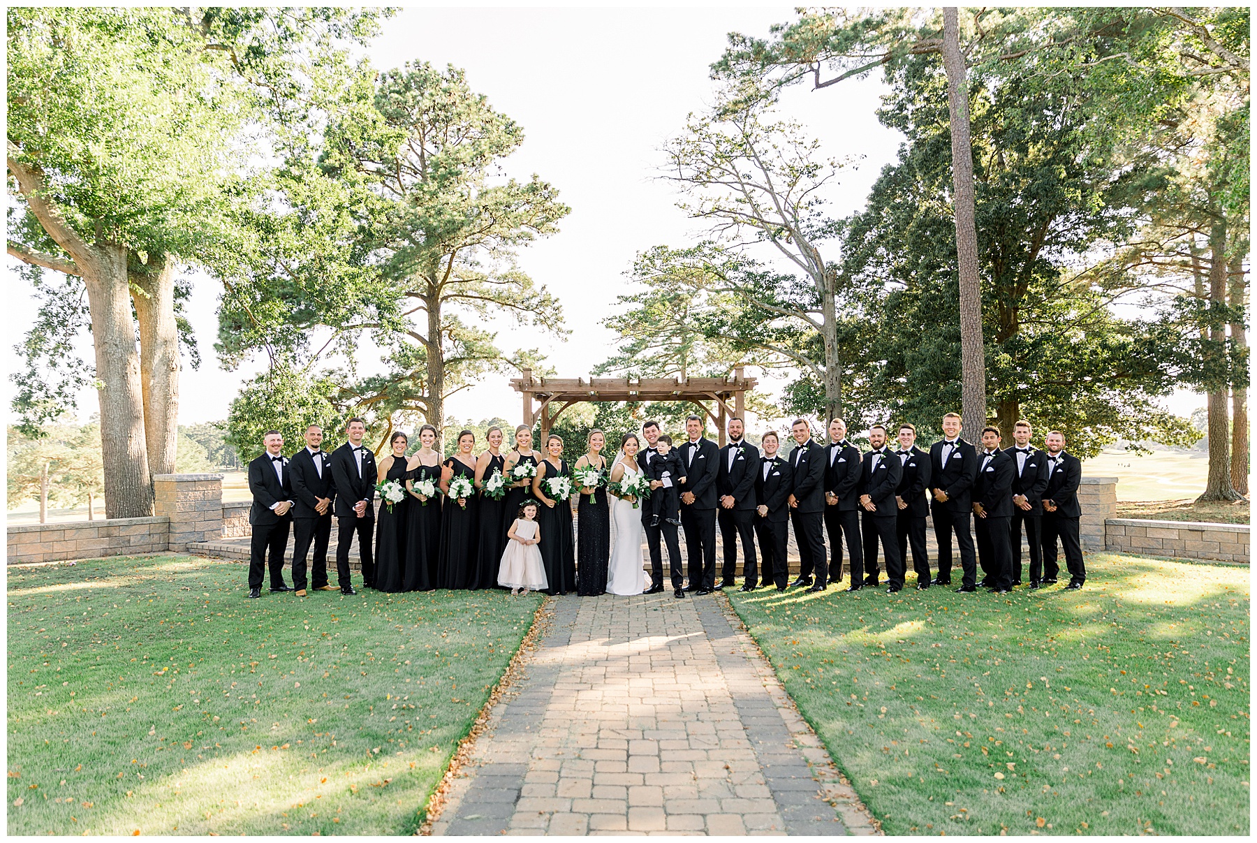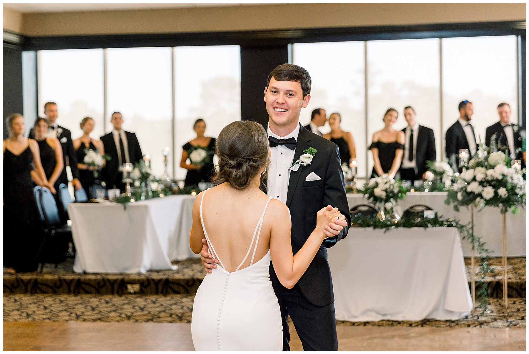 Phillip was hanging out & photographing all the guys at Jonathan’s family home – and he was in heaven with guys who talk golf AND two golden retrievers (Goose & Maverick) running around! Jonathan had 8 groomsmen and 6 ushers, and they all looked so handsome in their black tuxes!