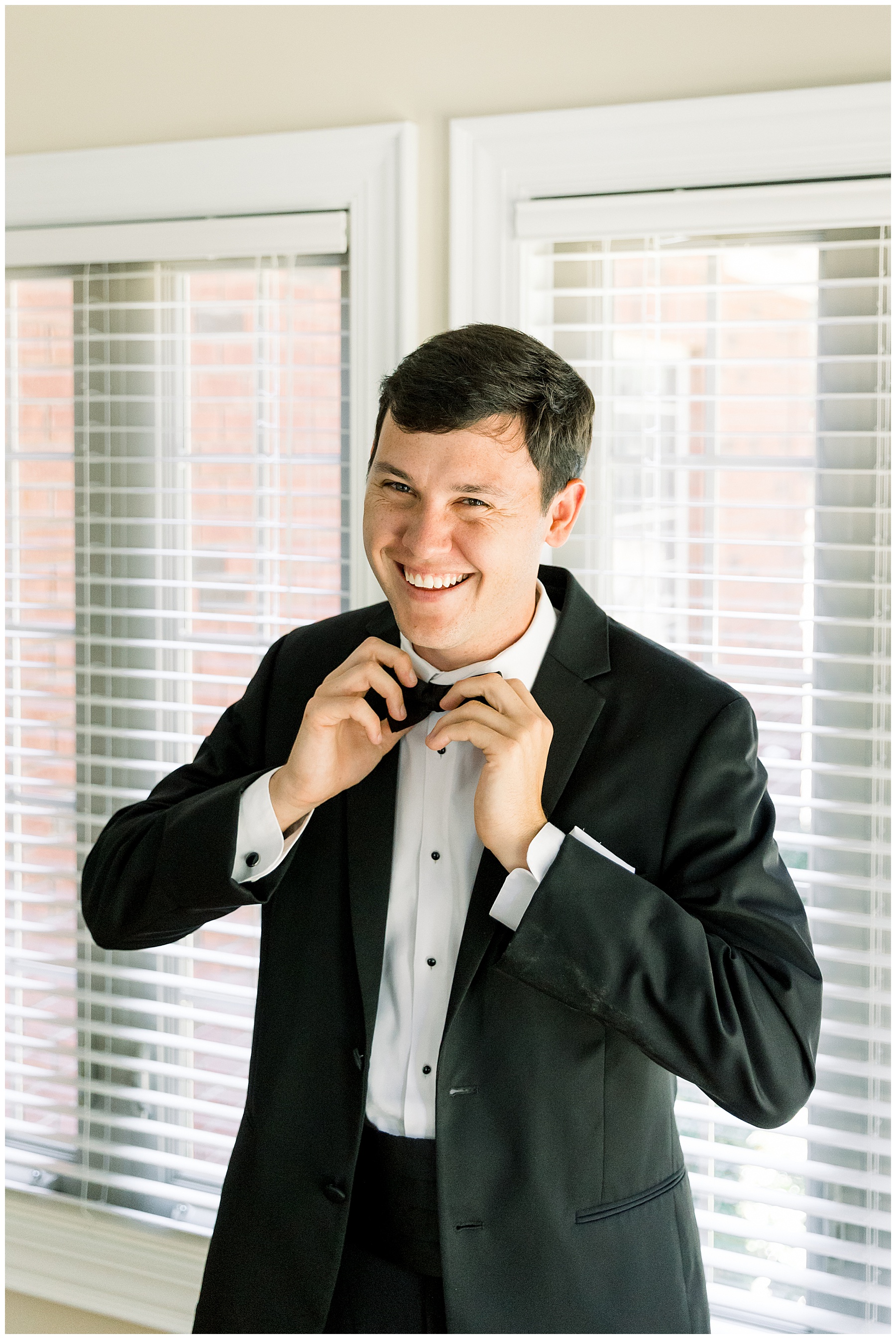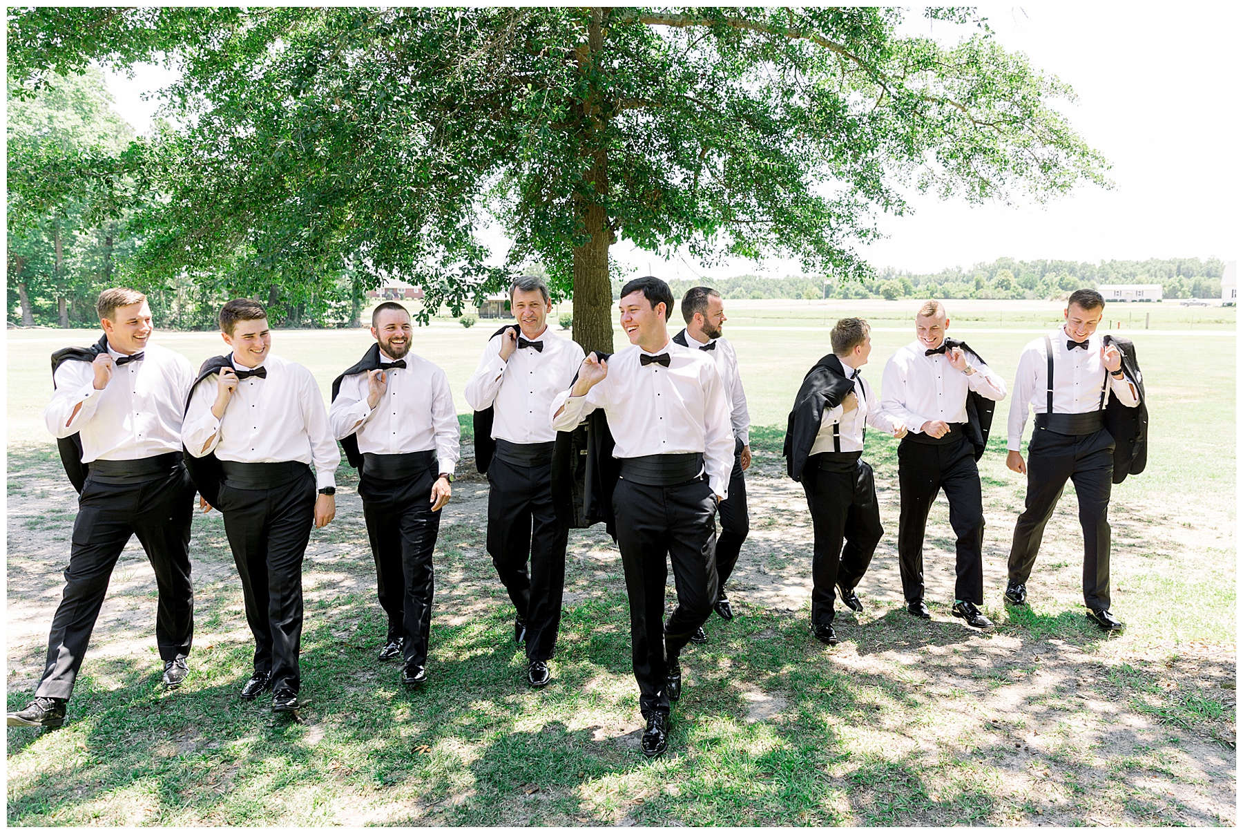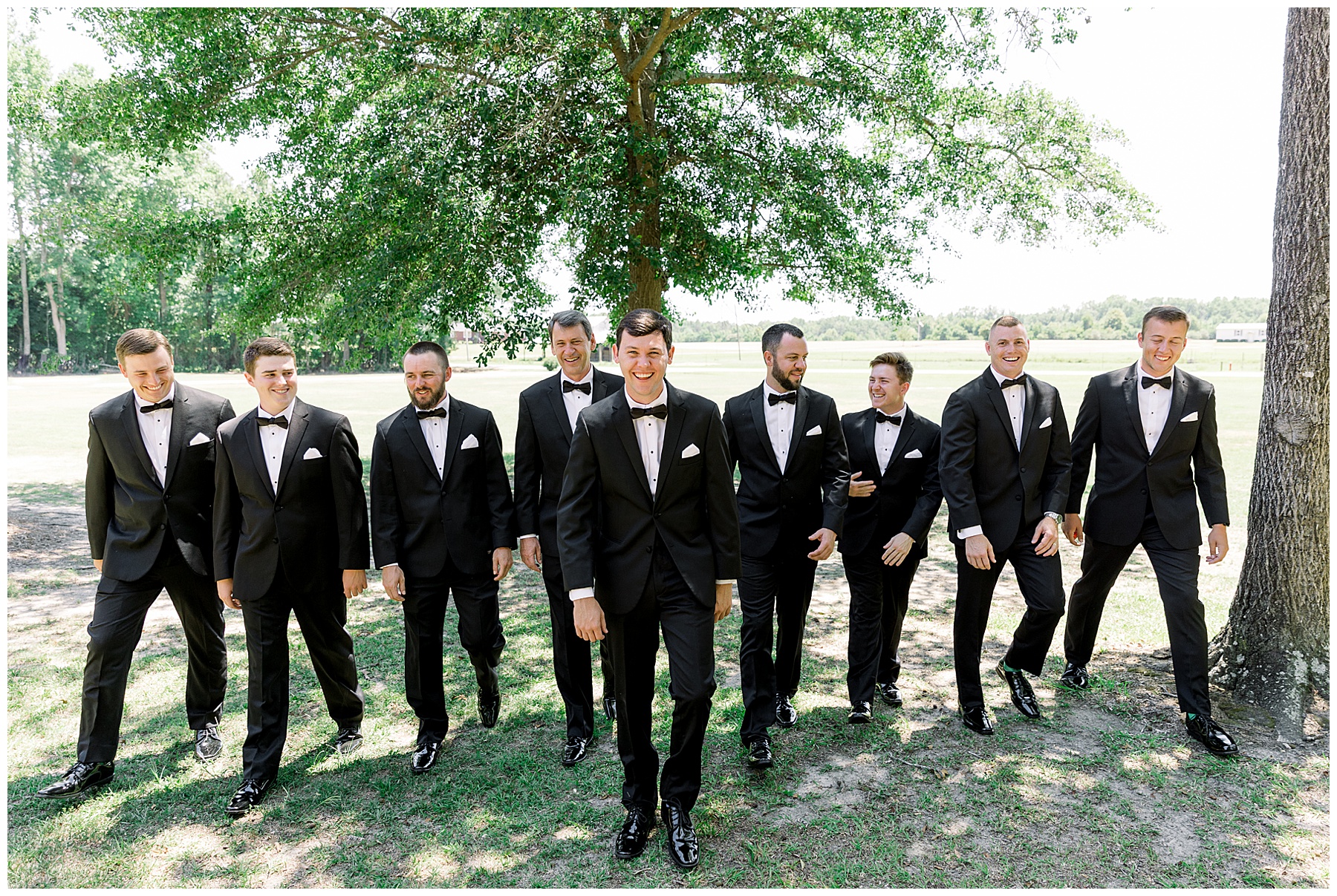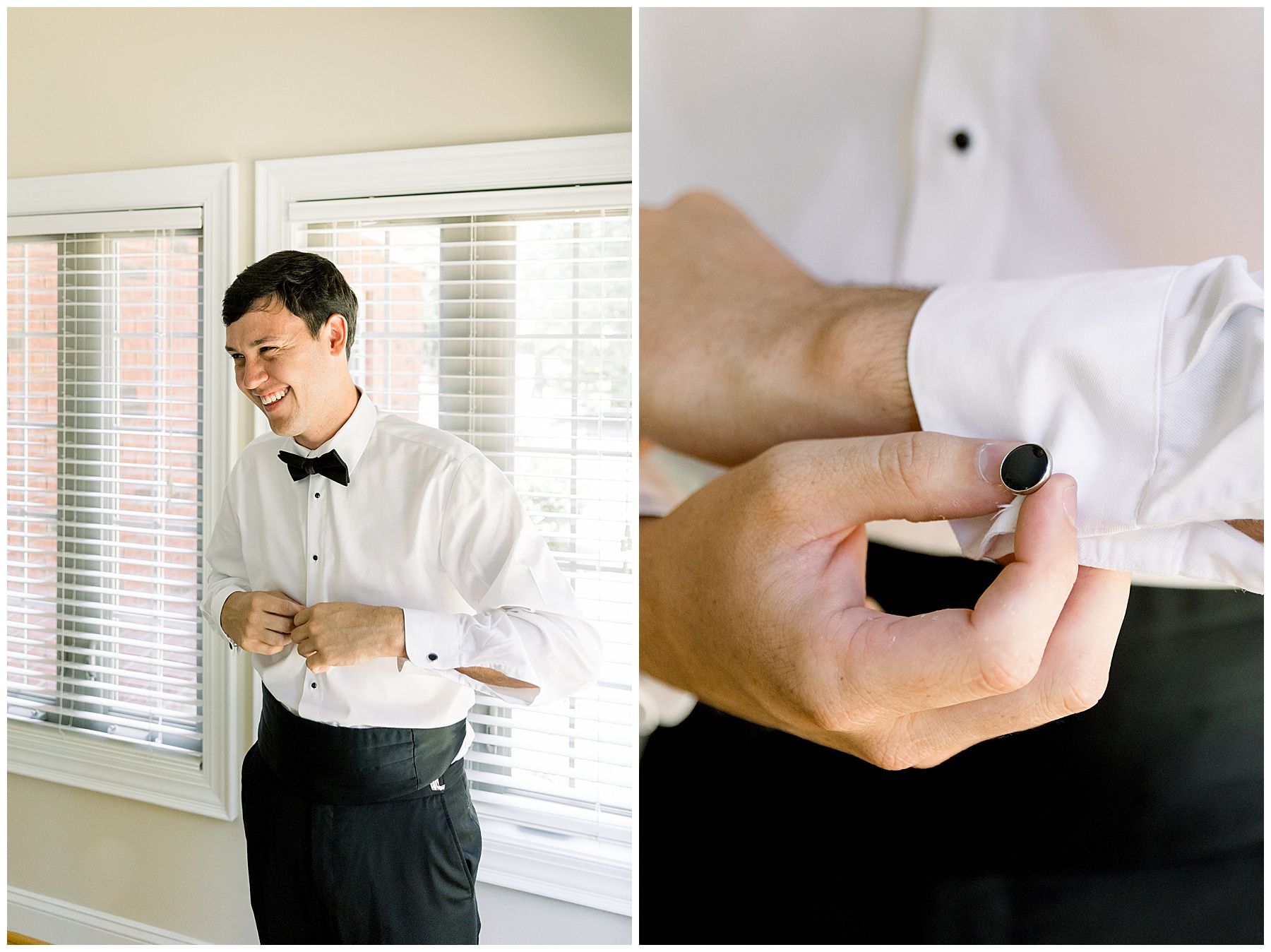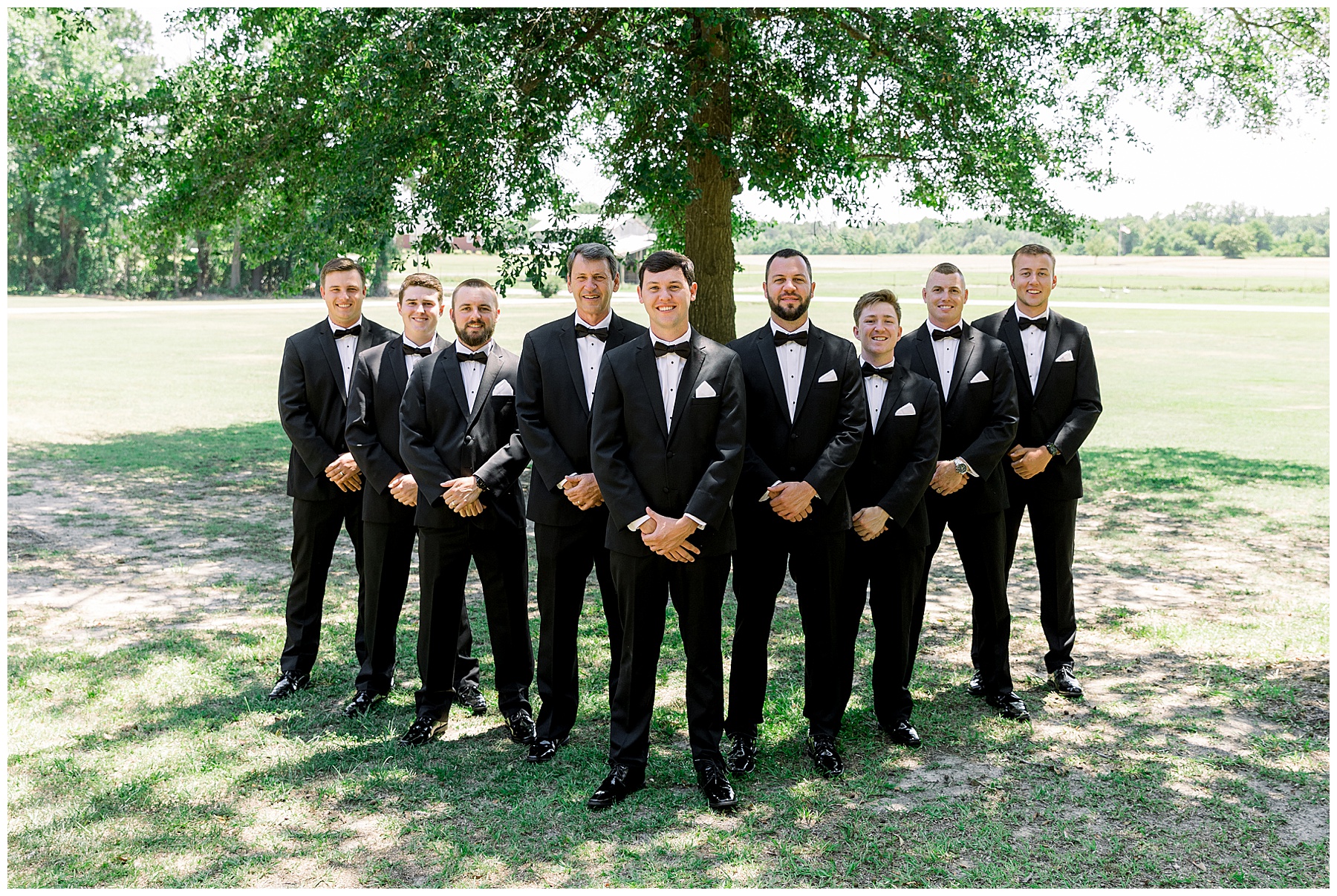 Phillip was hanging out & photographing all the guys at Jonathan’s family home – and he was in heaven with guys who talk golf AND two golden retrievers (Goose & Maverick) running around! Jonathan had 8 groomsmen and 6 ushers, and they all looked so handsome in their black tuxes!