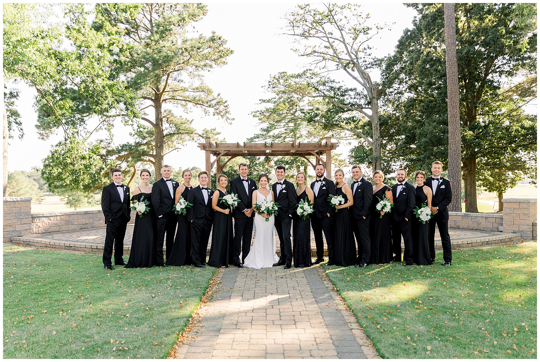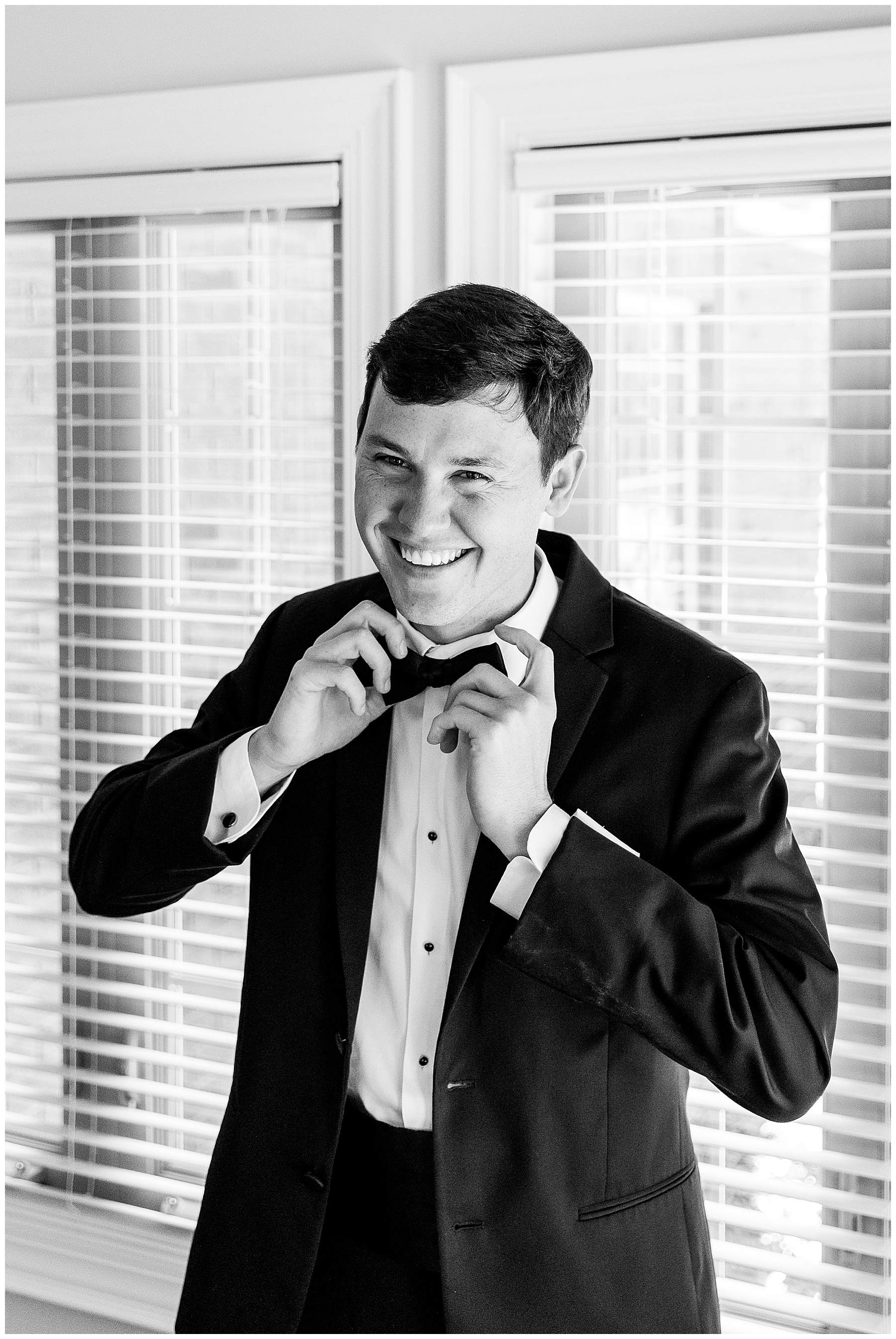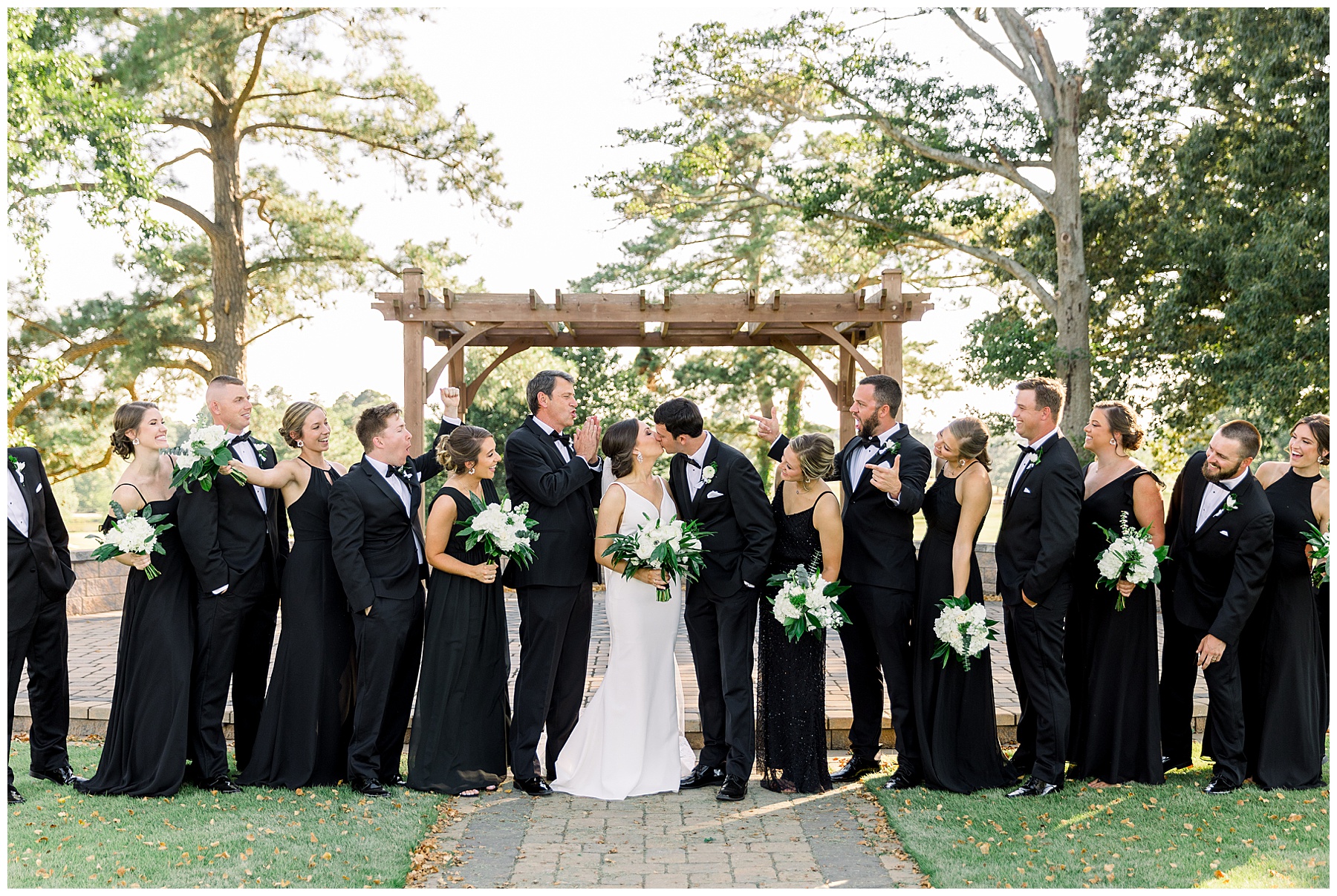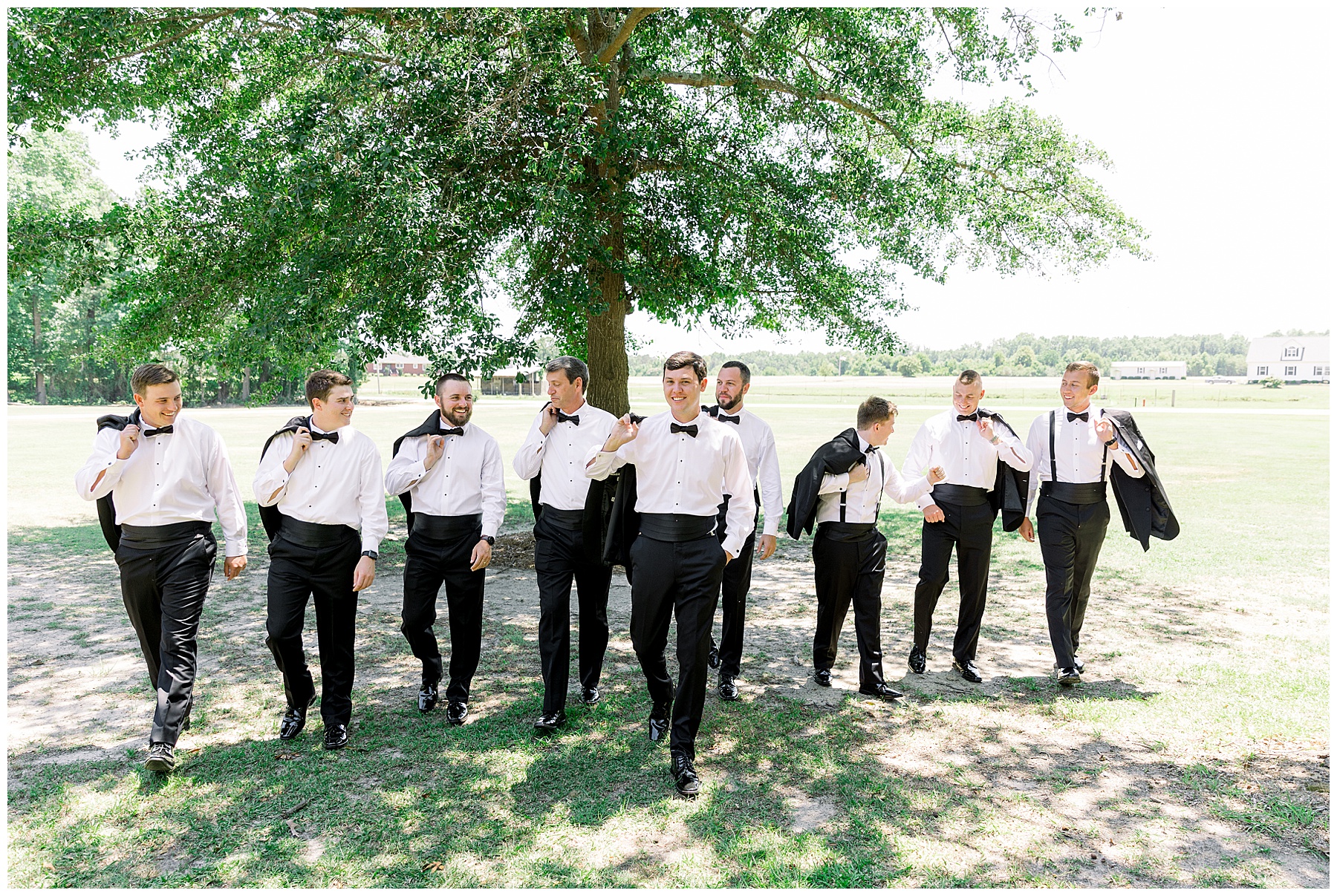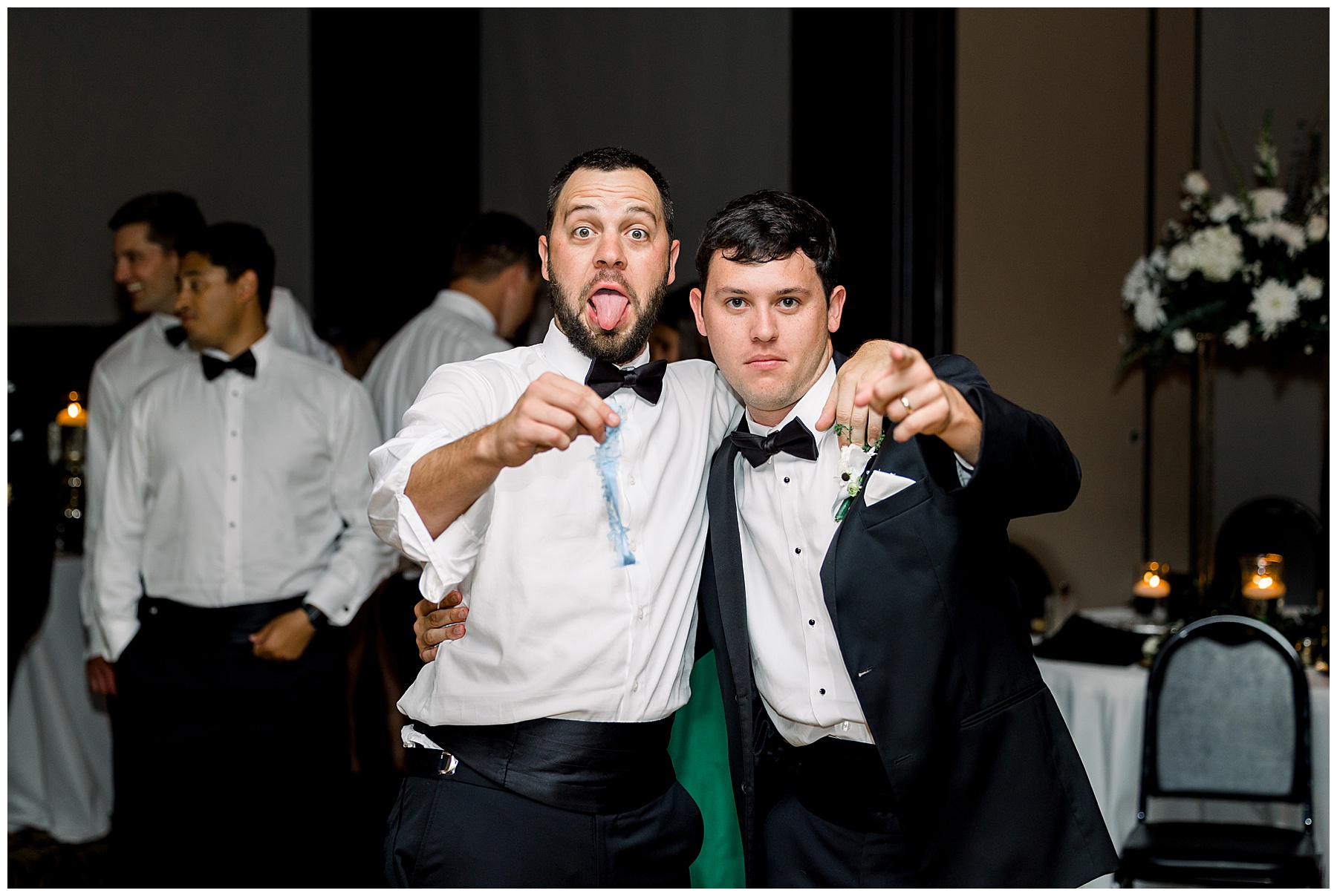 Phillip was hanging out & photographing all the guys at Jonathan’s family home – and he was in heaven with guys who talk golf AND two golden retrievers (Goose & Maverick) running around! Jonathan had 8 groomsmen and 6 ushers, and they all looked so handsome in their black tuxes!