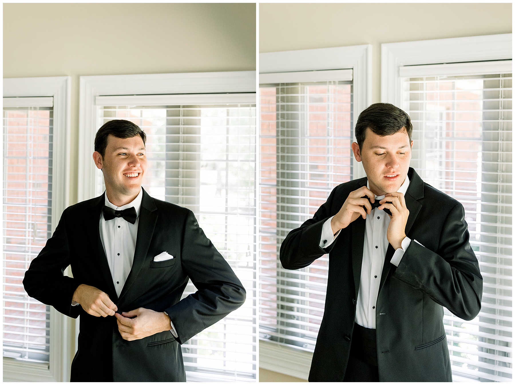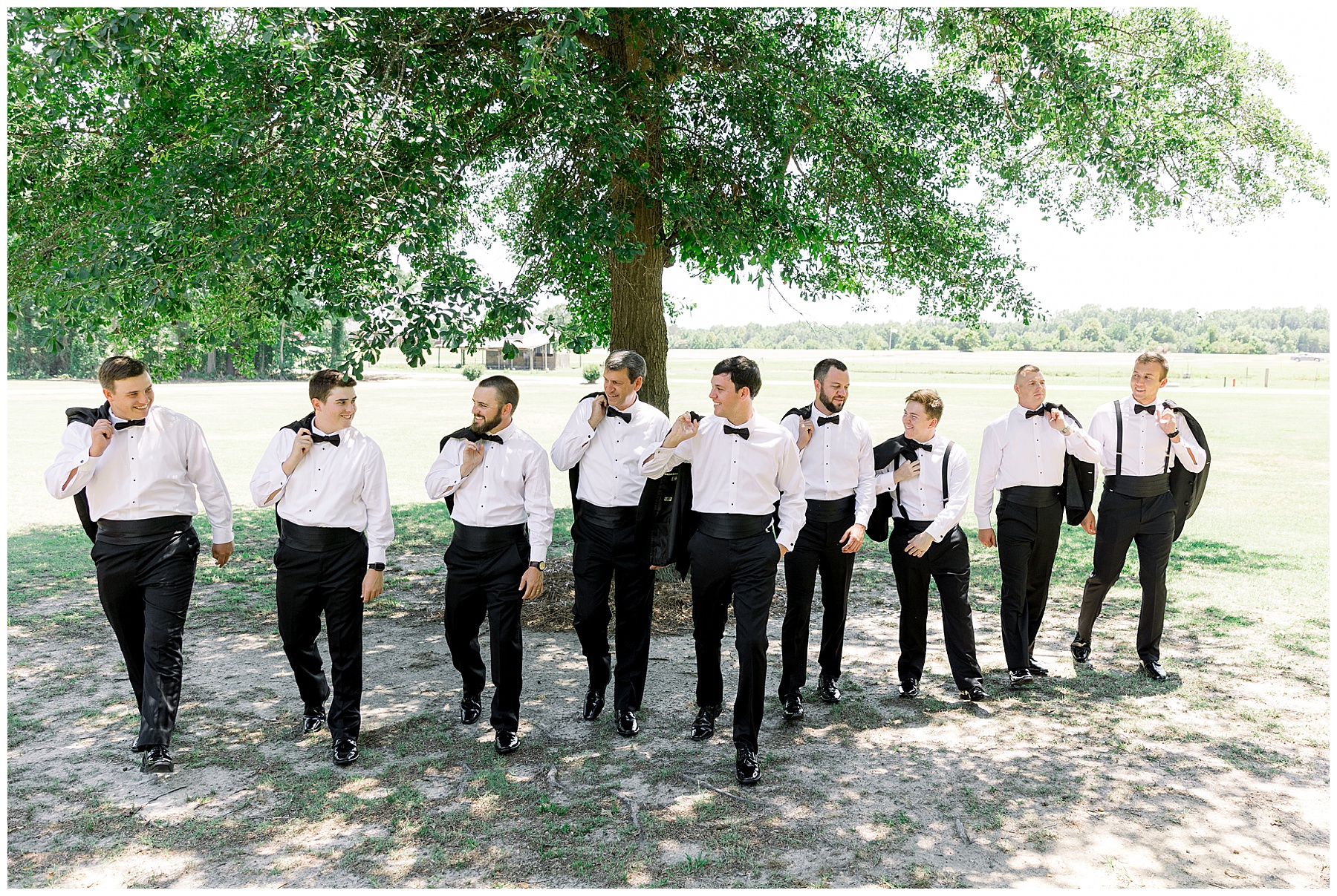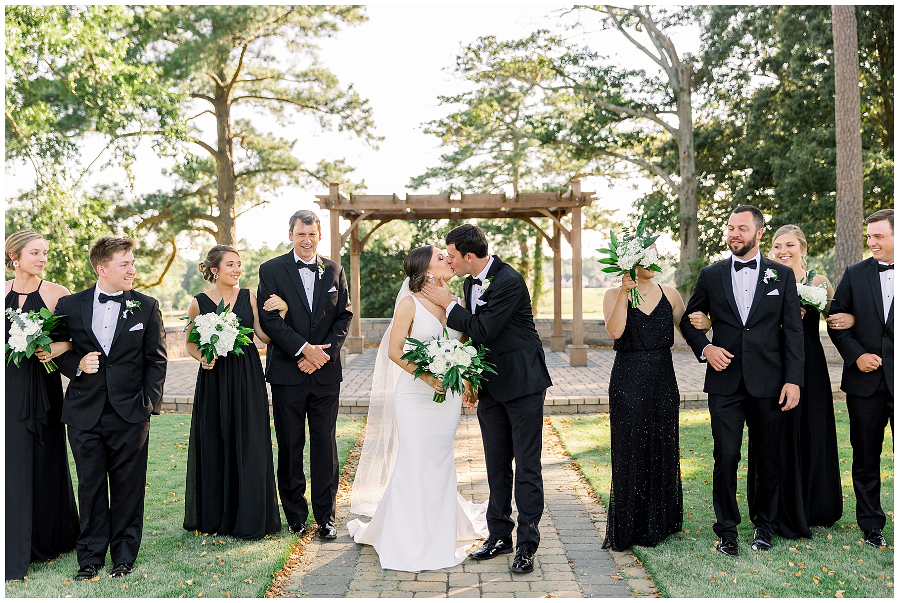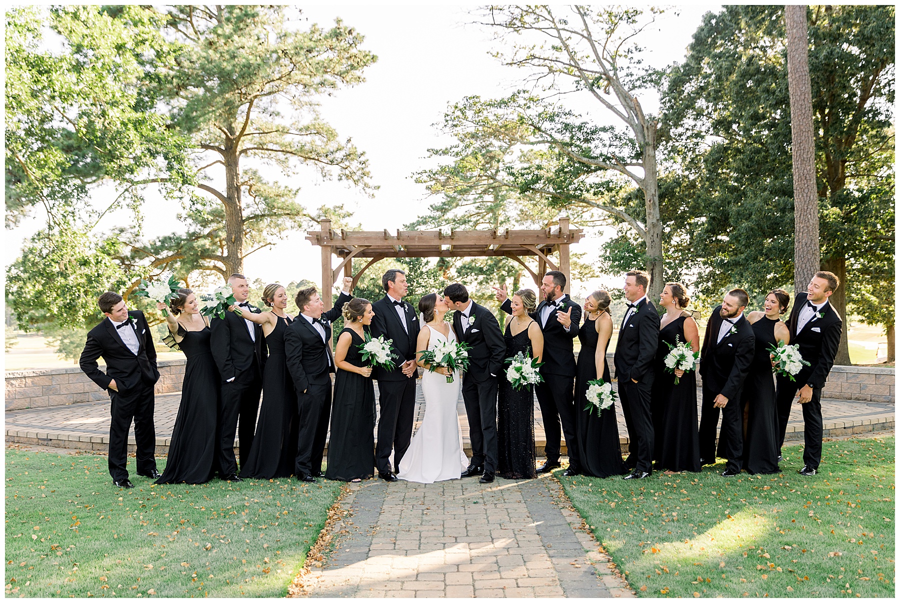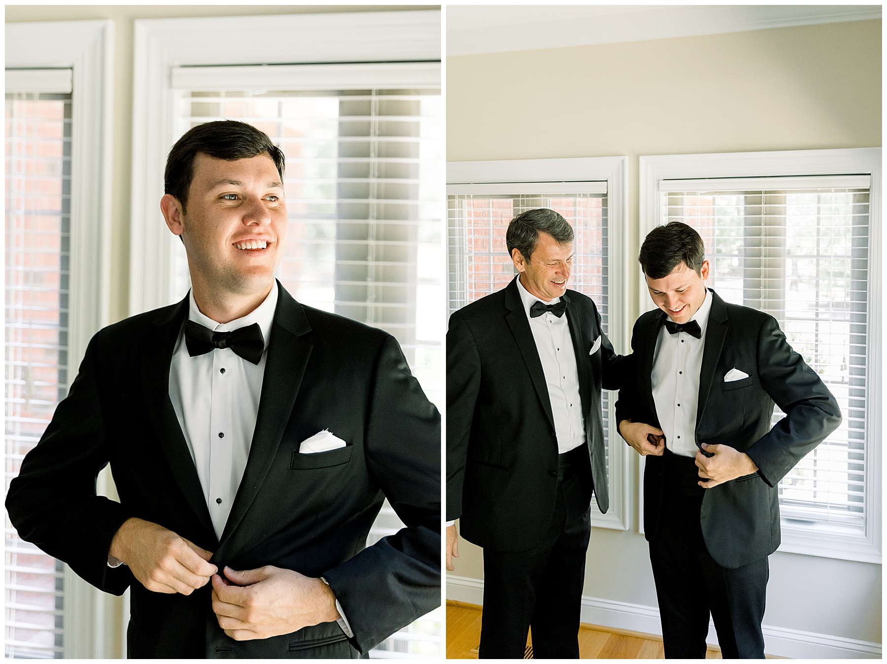 Phillip was hanging out & photographing all the guys at Jonathan’s family home – and he was in heaven with guys who talk golf AND two golden retrievers (Goose & Maverick) running around! Jonathan had 8 groomsmen and 6 ushers, and they all looked so handsome in their black tuxes!