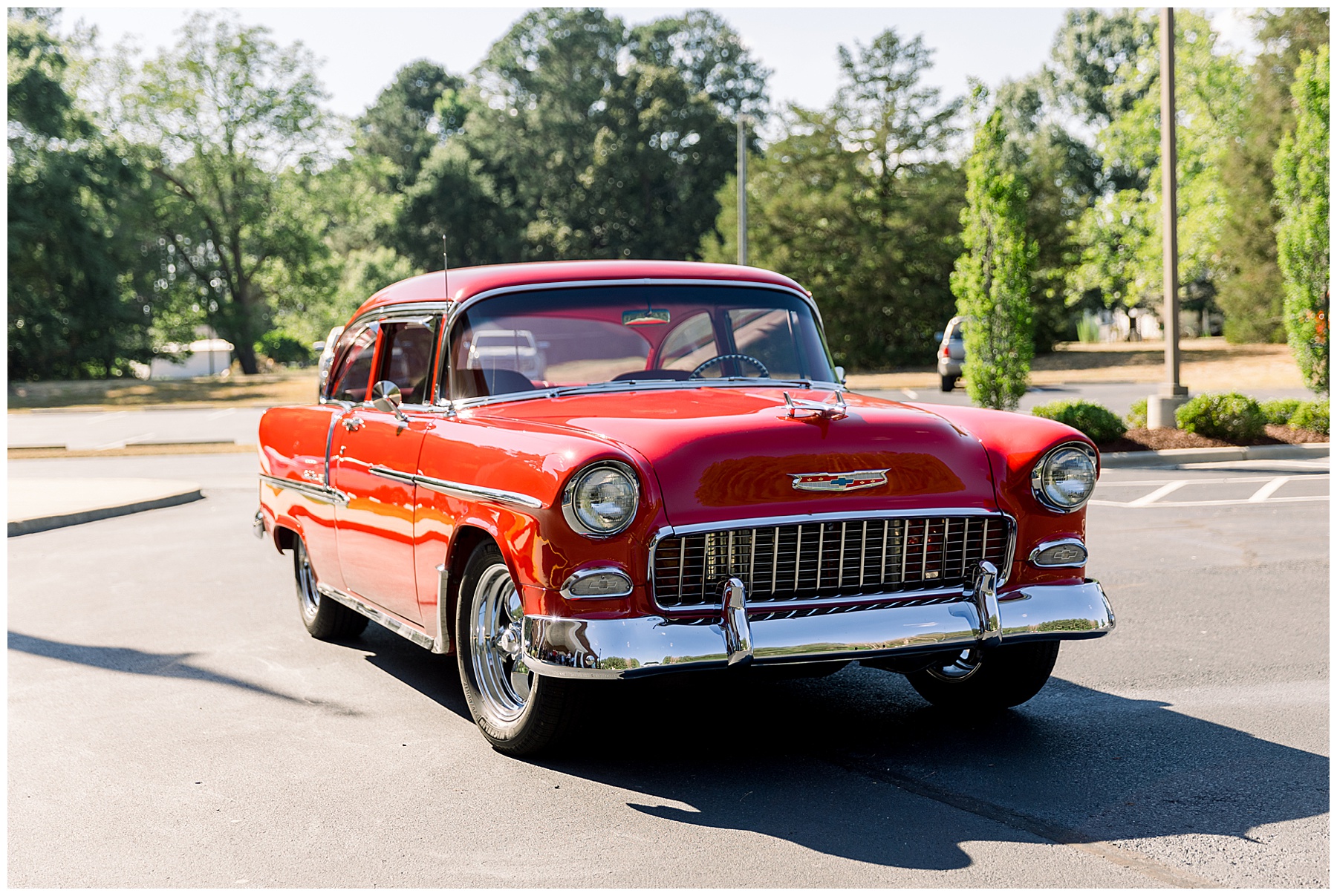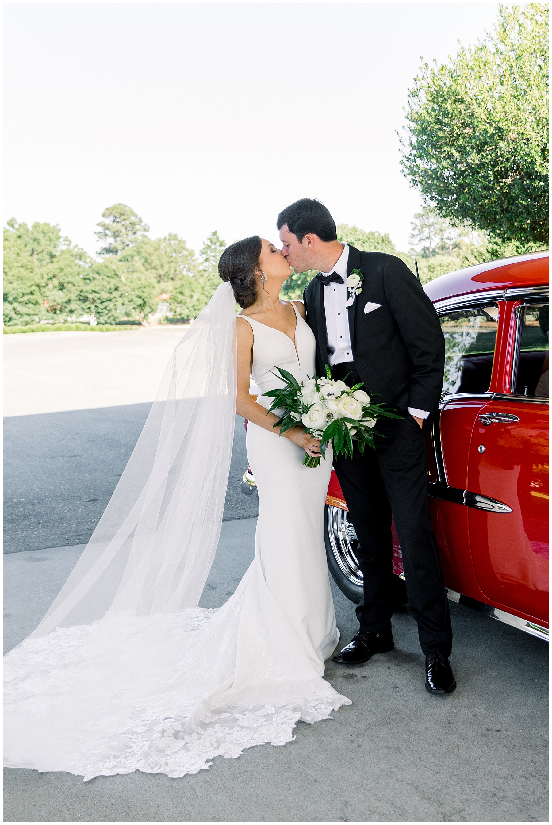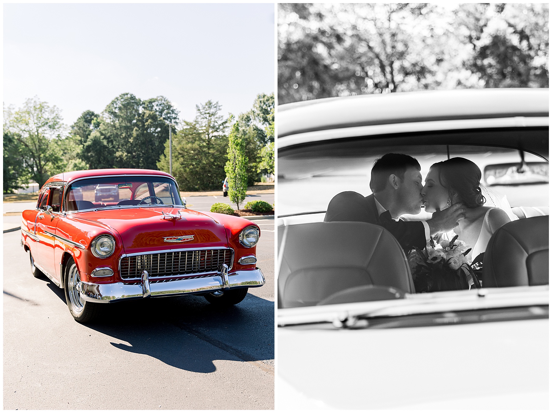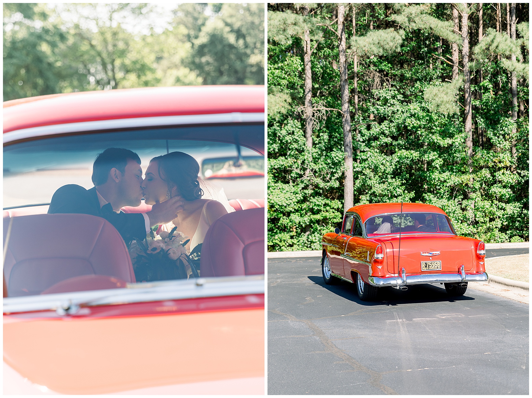 The ceremony was sweet & performed by one of Jonathan’s friends – which made it extra special! After the ceremony, Auston & Jonathan had a bright red 1955 Bellair as their getaway car – and it was absolutely in perfect condition and literally sparkling!!! It was a 30 minute drive to their reception, so I loved that Jonathan & Auston had a little alone time to chat and soak in their day together! It’s rare to have moments like that on your wedding day! :)