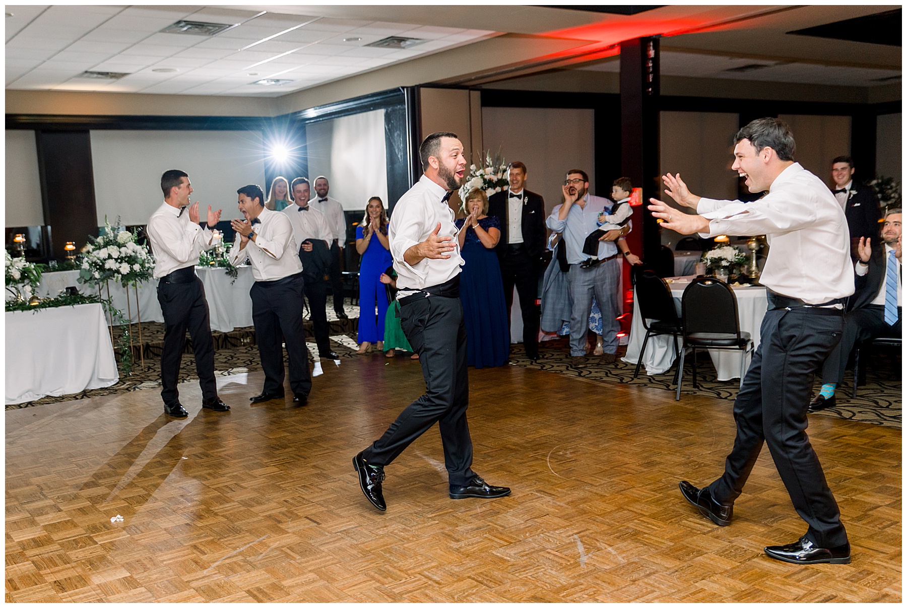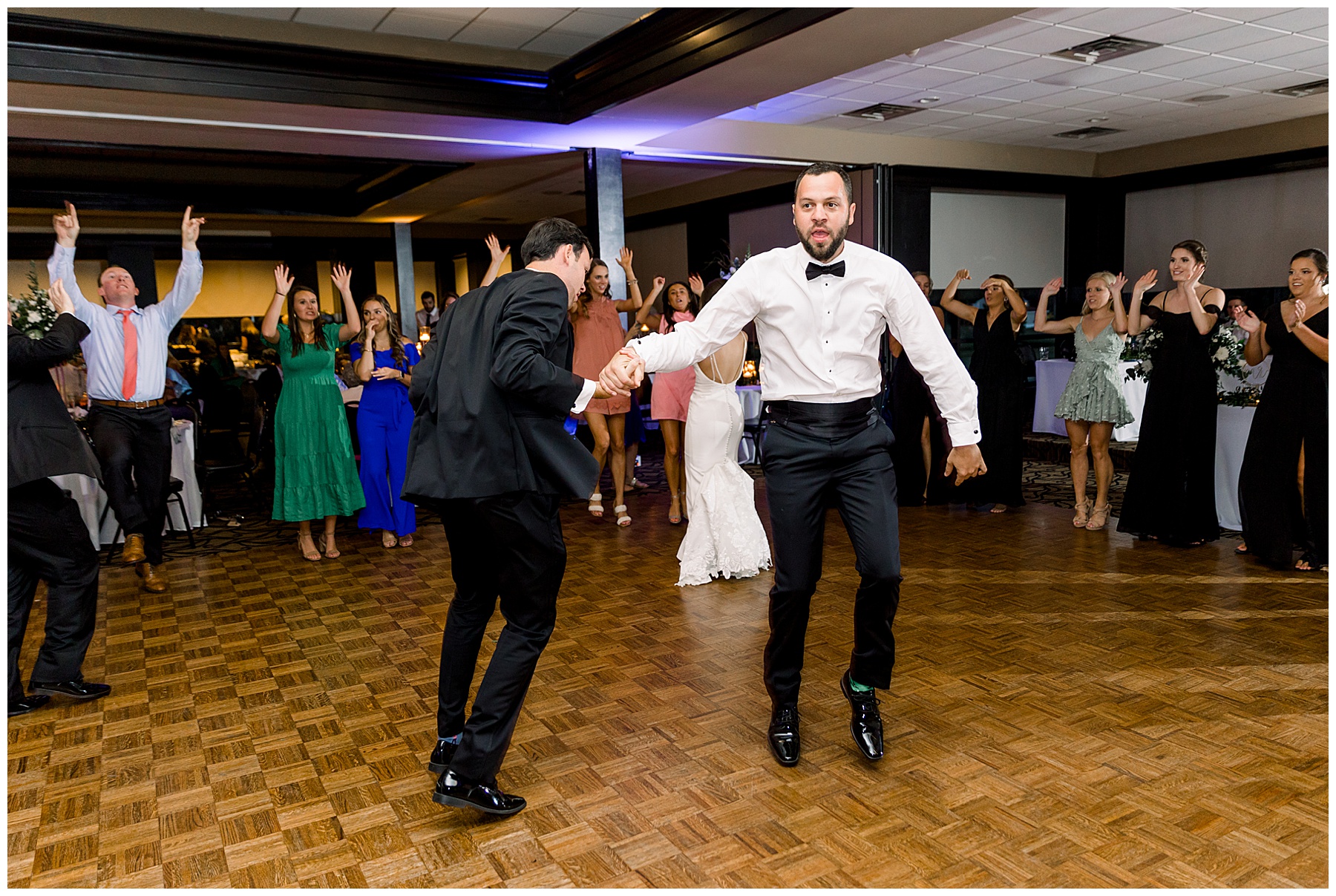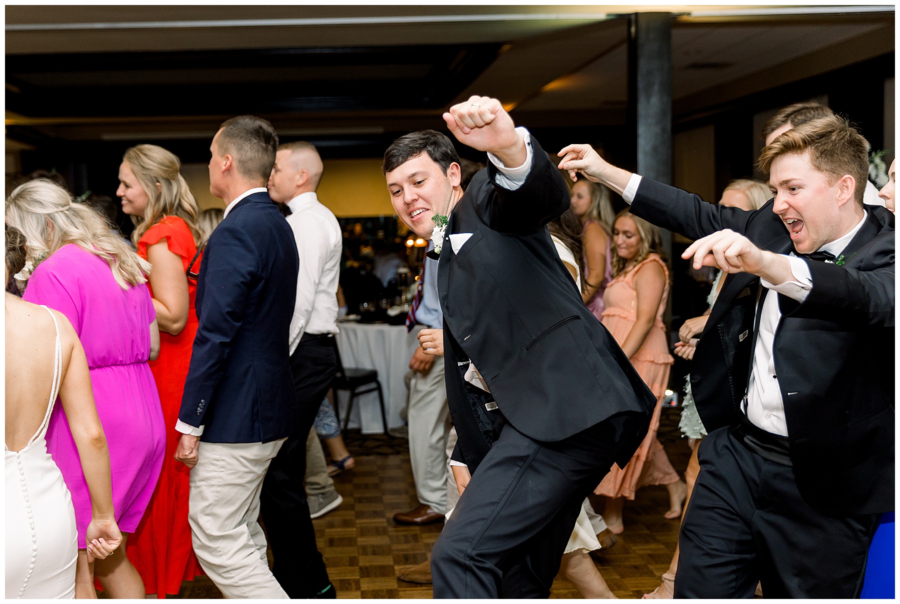 After dinner, speeches, & cake cutting – we snuck out onto the golf course for a few more photos of Auston & Jonathan! Then, it was time to PARTY!!!! I loved how many people stayed on the dance floor all night – and my FAVORITE parts of the reception were: #1 when their friends lifted Jonathan & Auston into the air during dancing… and #2 when Jonathan’s BOSS all of a sudden jumped straight into a SPLIT in the middle of the dance floor!!! Everyone was in SHOCK!!!! It was hilarious!!!
