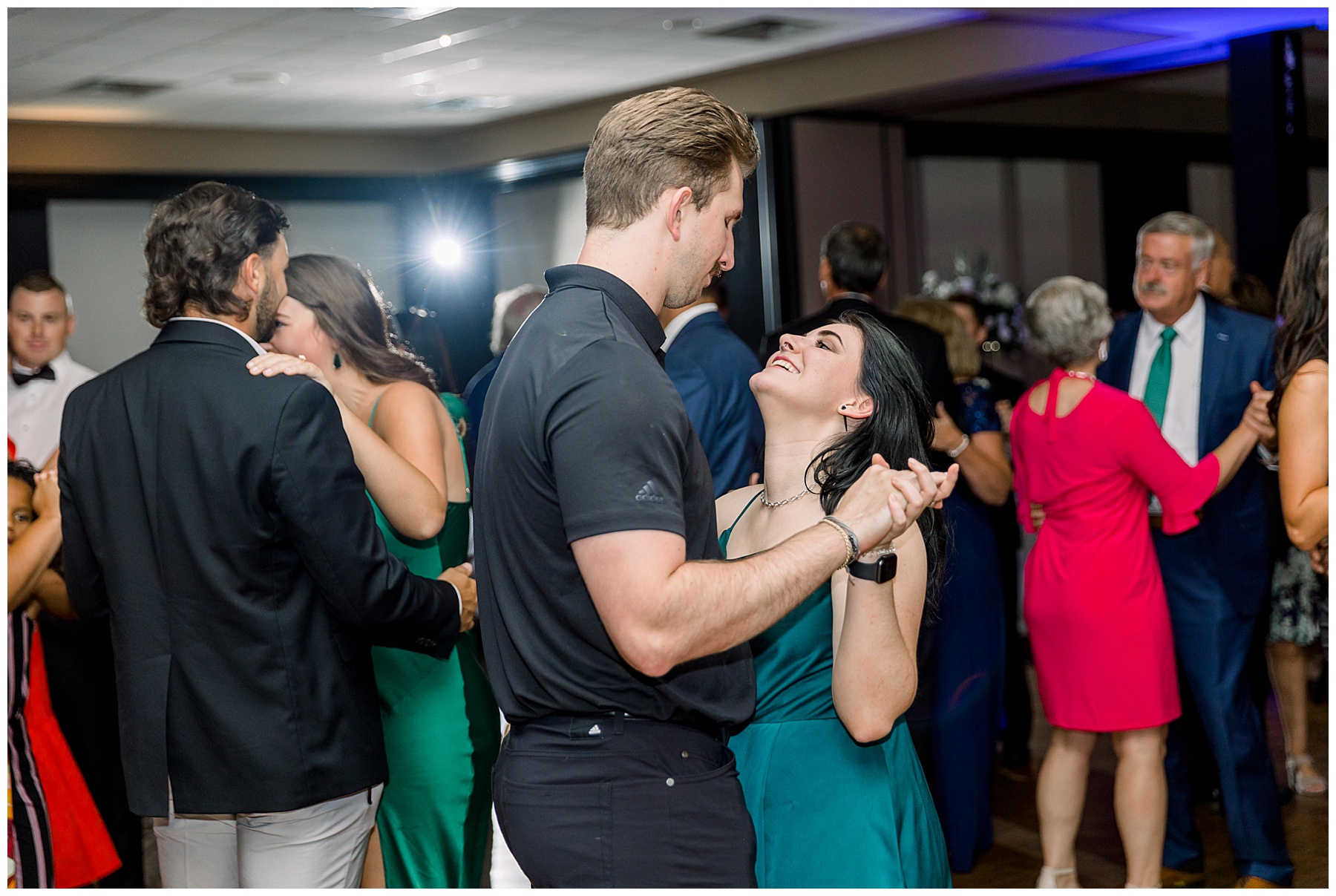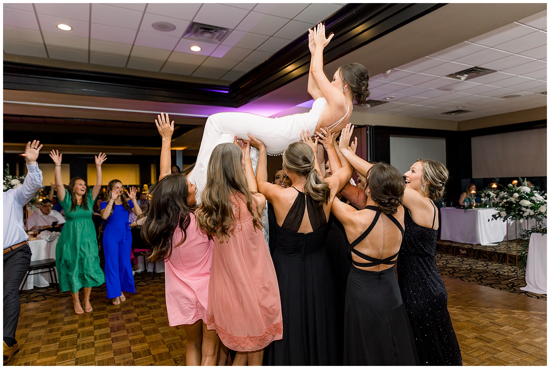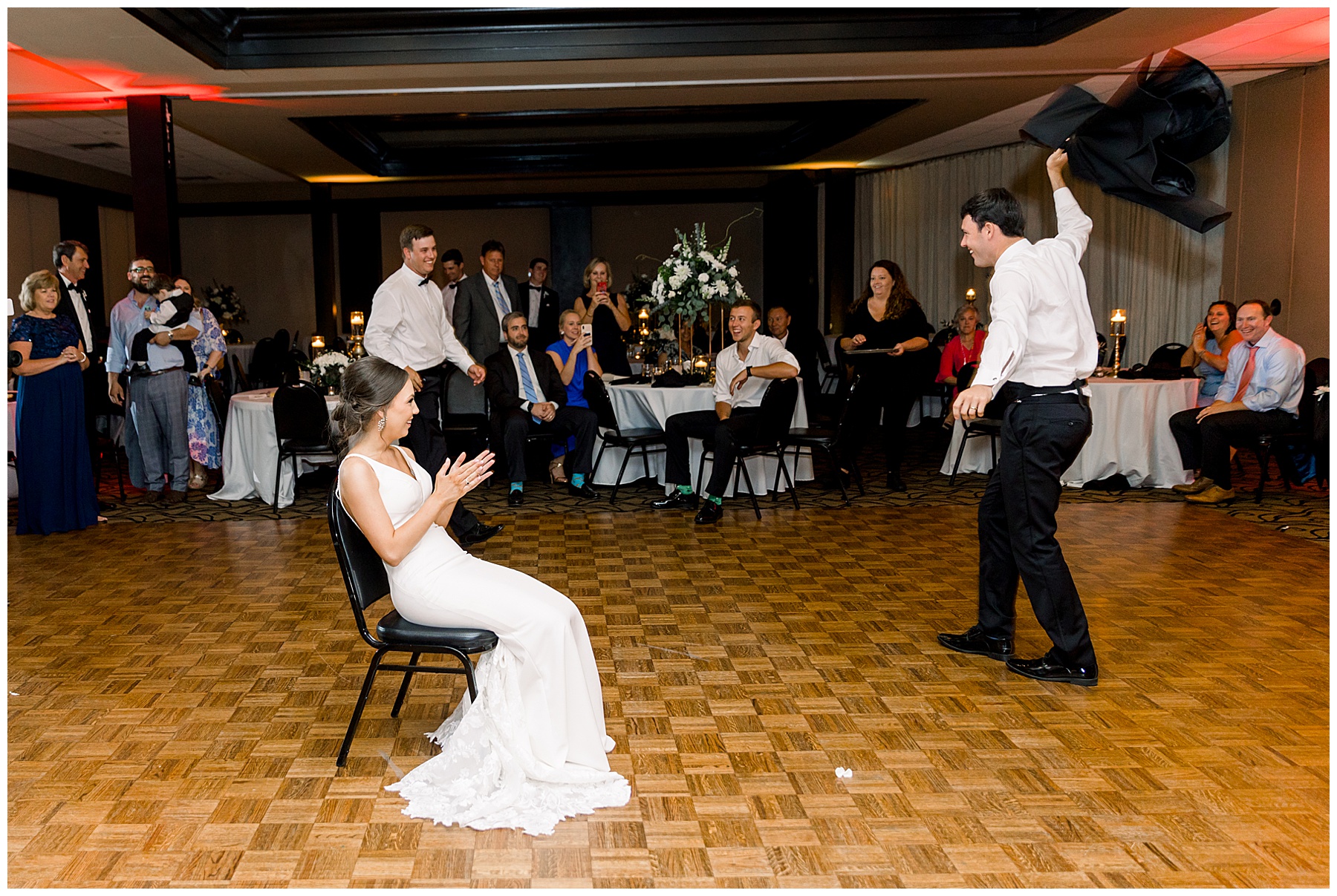 After dinner, speeches, & cake cutting – we snuck out onto the golf course for a few more photos of Auston & Jonathan! Then, it was time to PARTY!!!! I loved how many people stayed on the dance floor all night – and my FAVORITE parts of the reception were: #1 when their friends lifted Jonathan & Auston into the air during dancing… and #2 when Jonathan’s BOSS all of a sudden jumped straight into a SPLIT in the middle of the dance floor!!! Everyone was in SHOCK!!!! It was hilarious!!!