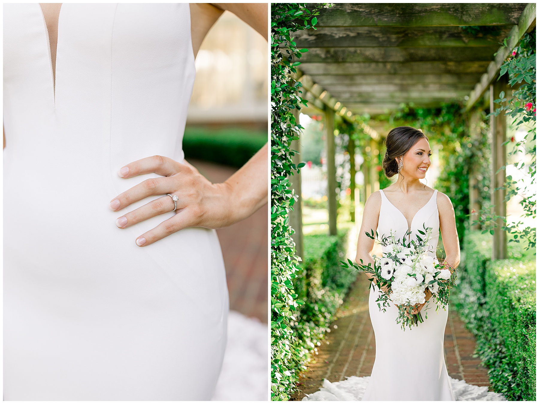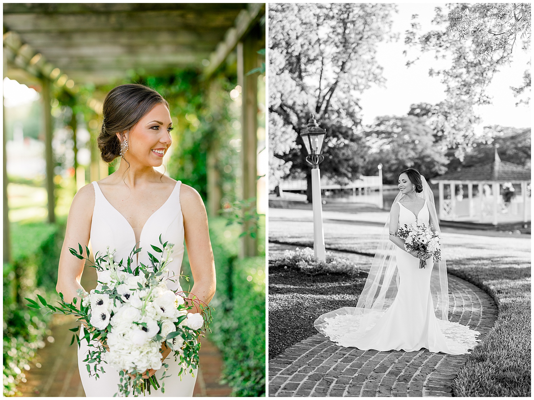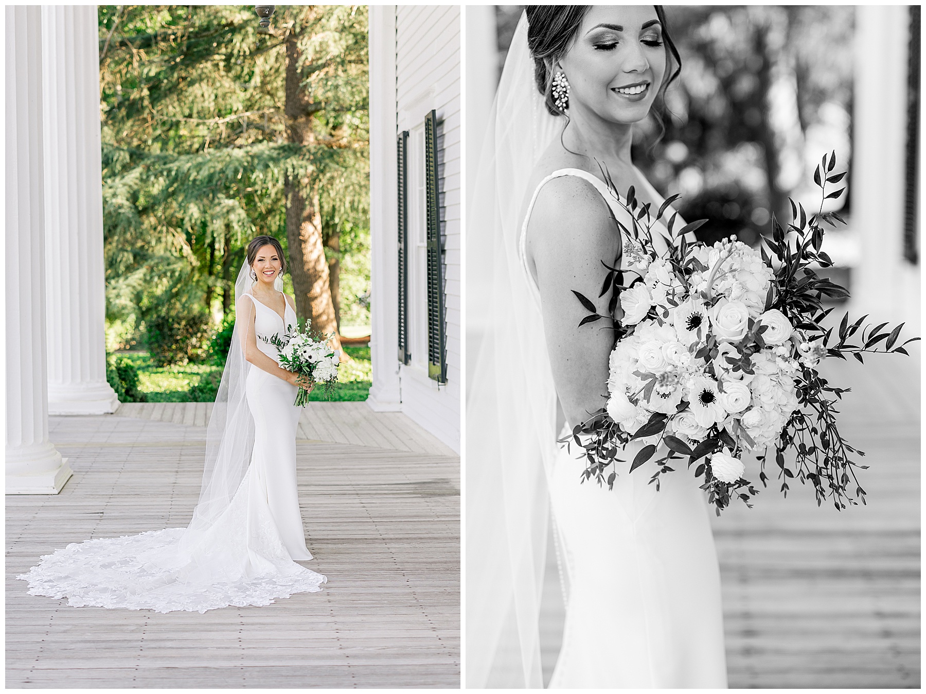 Auston’s wedding style is elegant & timeless – and their color scheme is black and white. Choosing Rose Hill was a wonderful choice for Auston’s Bridal Session because it matches all of those styles/colors perfectly! The grounds at Rose Hill were so green and fresh after rain the day before – and it was showing off in all its glory!