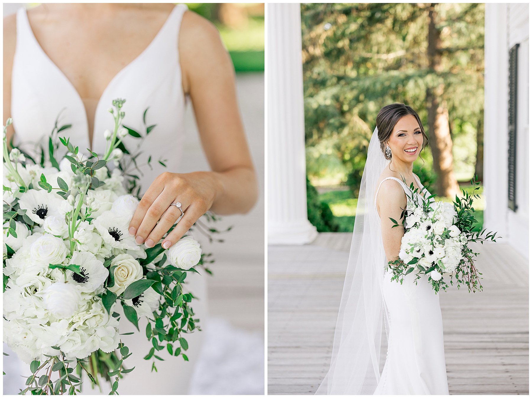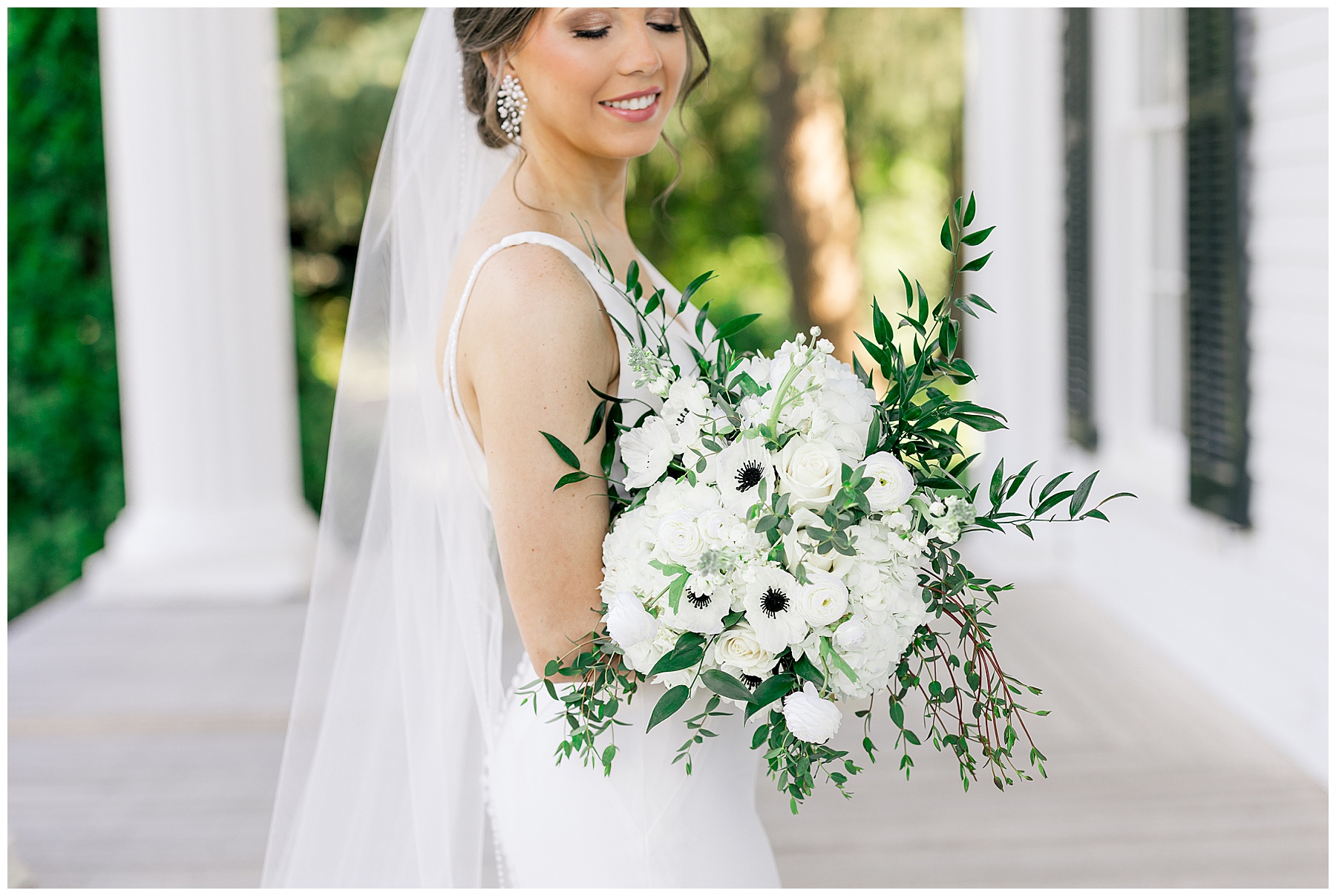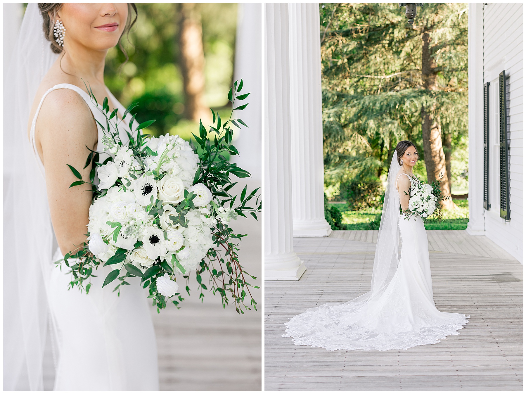 Auston’s wedding style is elegant & timeless – and their color scheme is black and white. Choosing Rose Hill was a wonderful choice for Auston’s Bridal Session because it matches all of those styles/colors perfectly! The grounds at Rose Hill were so green and fresh after rain the day before – and it was showing off in all its glory!