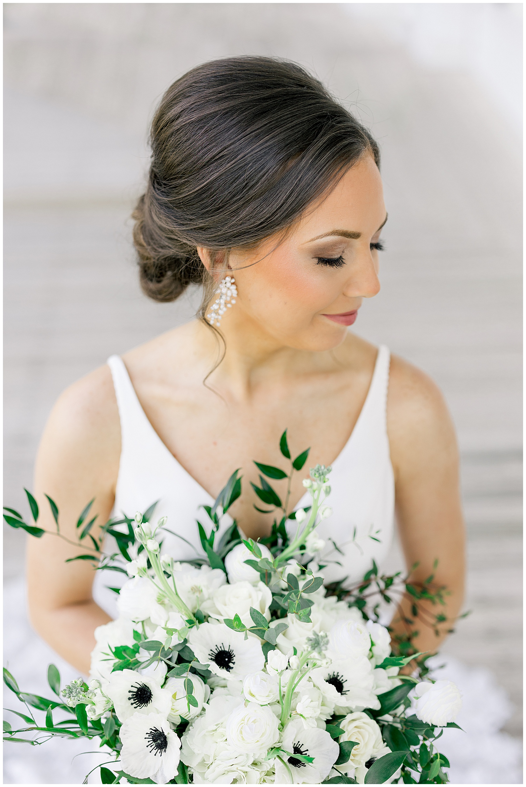 I didn’t have any hints of what Auston’s dress would look like – and when I walked up and saw her STUNNING form-fitting gown with the simplistic front, and the show-stopping back with the long floral train – I was speechless!!! Auston looked absolutely gorgeous!!! Our former TLJ Bride, Karey (Beauty by Karey) did an incredible job on Auston’s hair and makeup – and she was just GLOWING!!!! I loved the unique earrings Auston wore – and her whole bridal look was just soooo beautiful. :)
