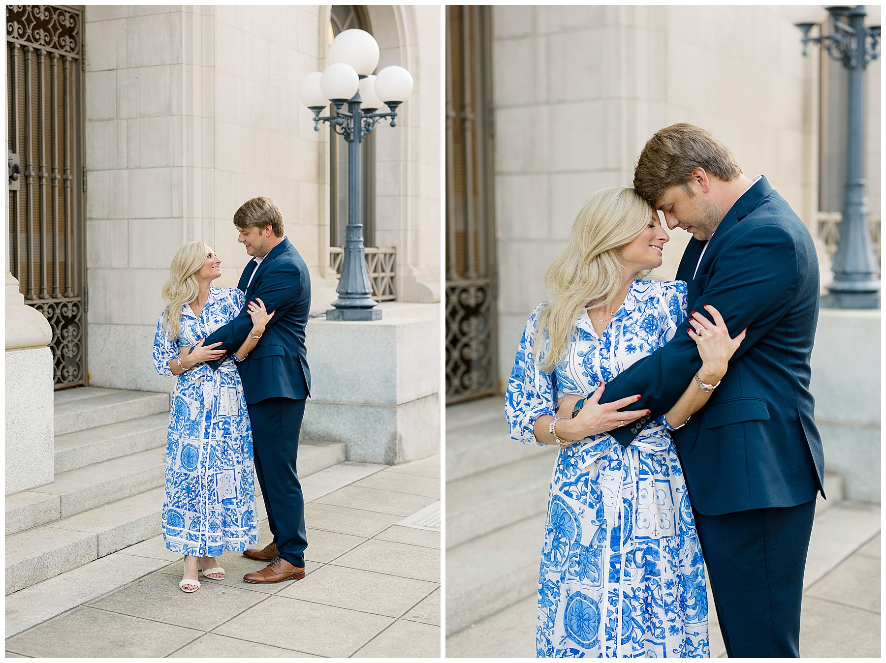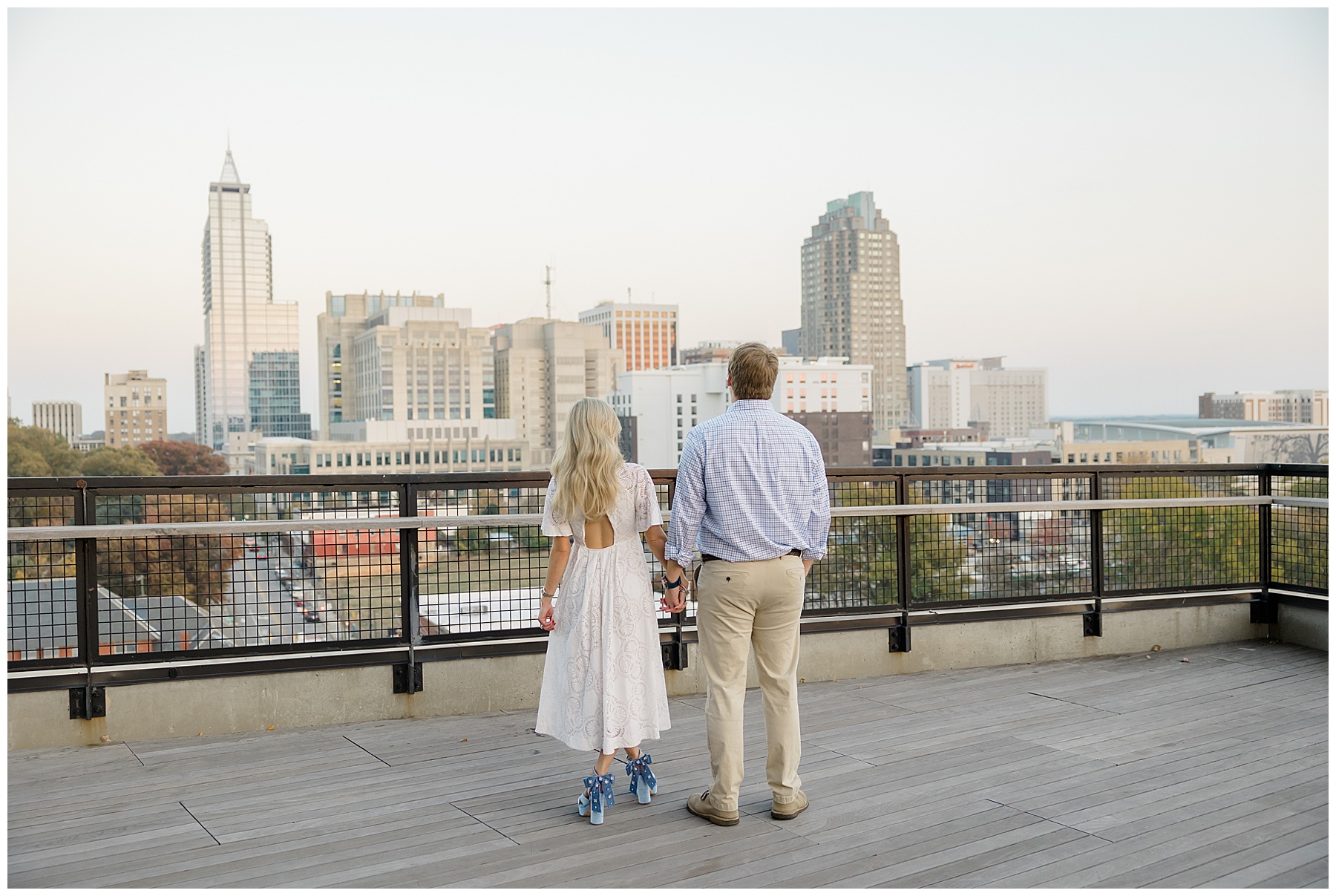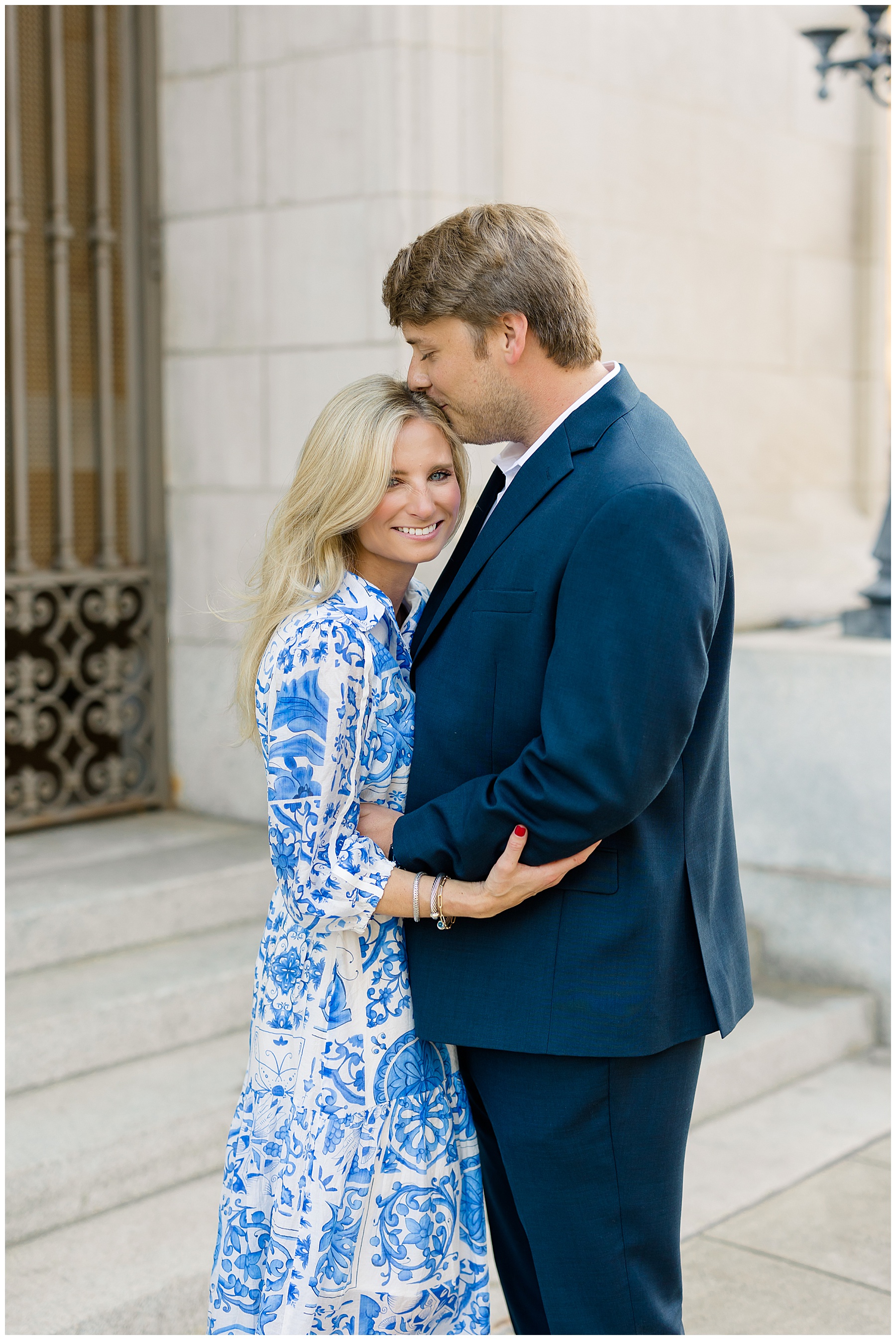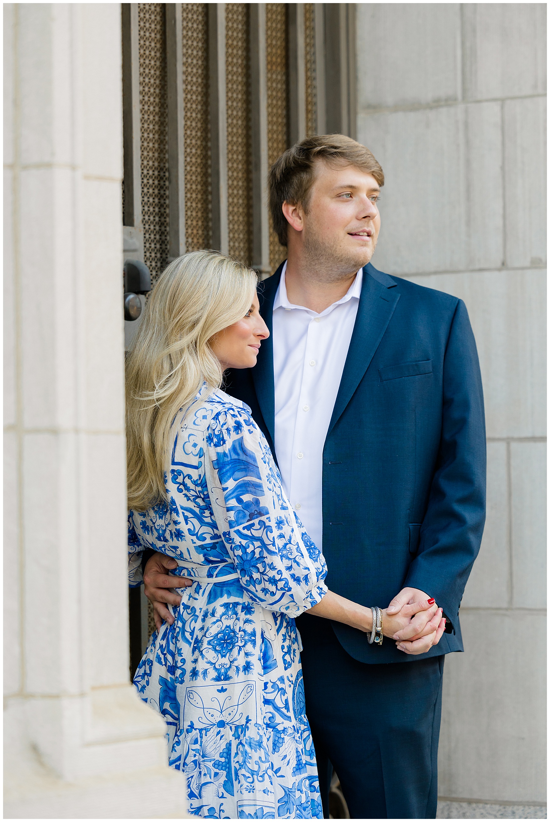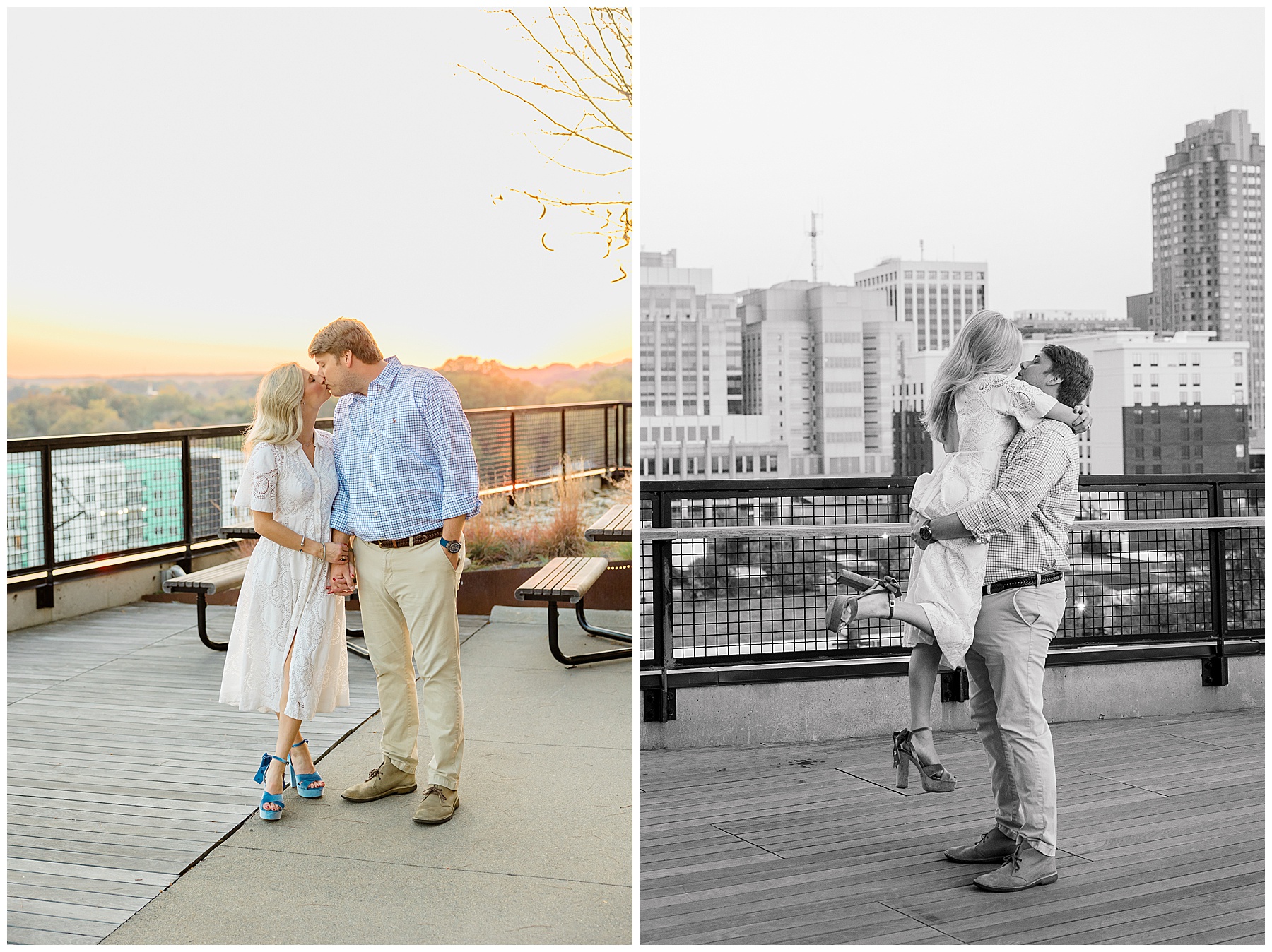 Baker & Robert showed up looking so stylish and I was pumped from the start! Baker’s blue & white dress was so unique, southern, and I loved the bow at the waist. Speaking of bows – check out her blue heels (that ROBERT bought her! Brownie points!!!) in her second outfit that she wore! They had the cutest bows on the back with little rhinestones! So pretty that these blue heels just might be my favorite engagement session shoes EVER!!!!! I also loved that Robert wore blue socks with soccer balls on them – a nod to his college soccer career! I love when couples choose such personal and intentional details to include for their sessions. :)