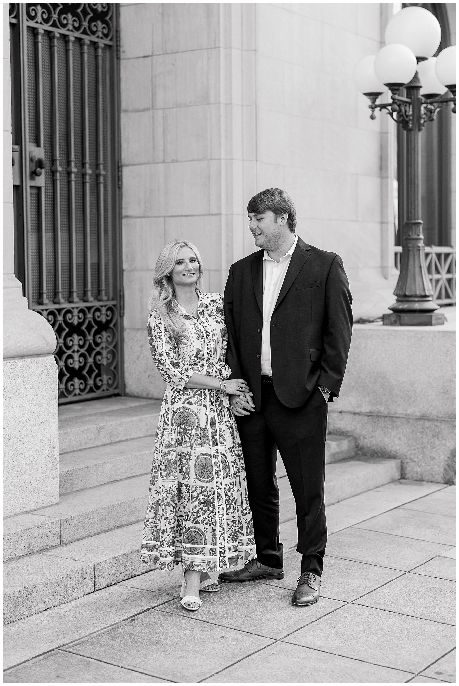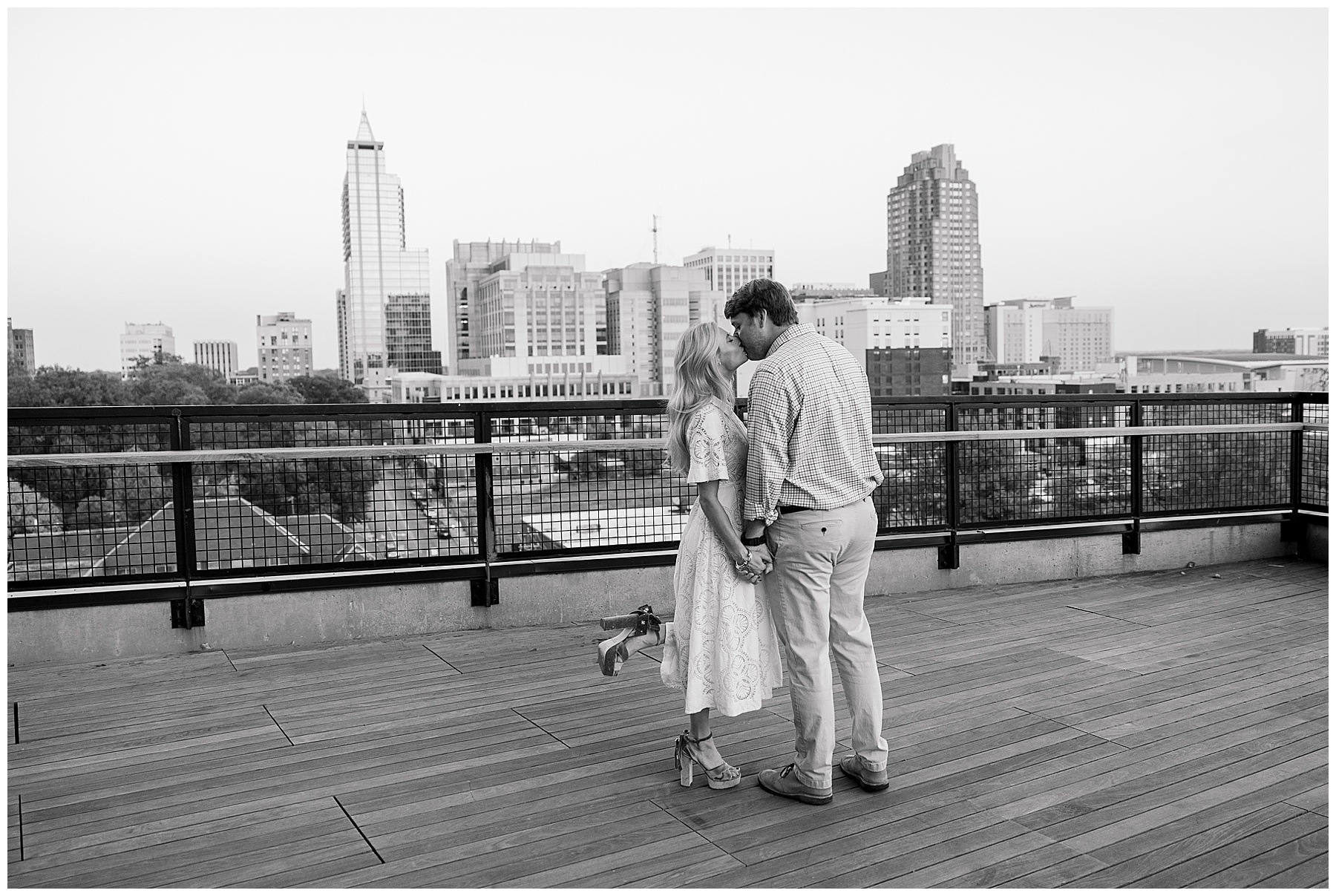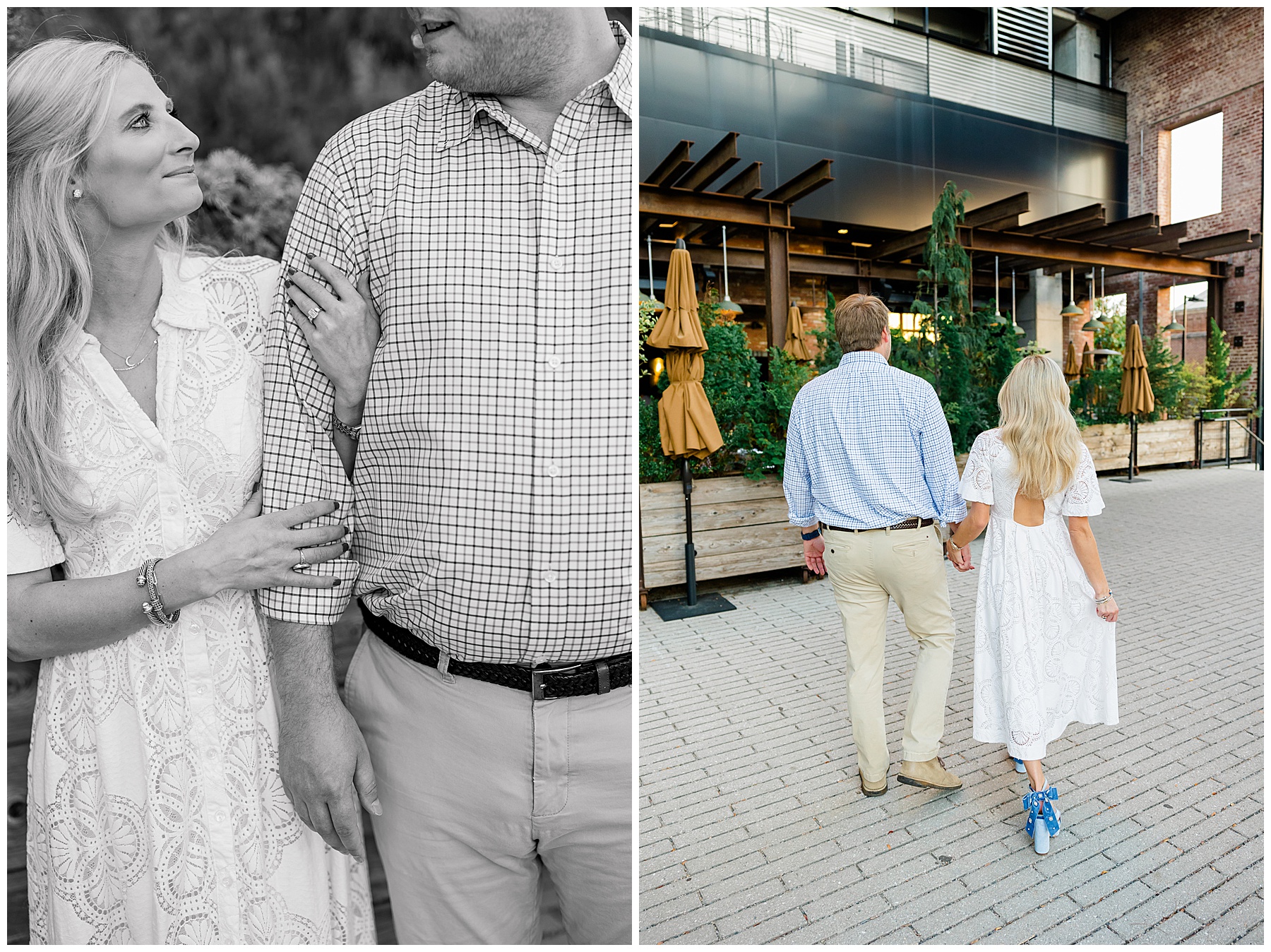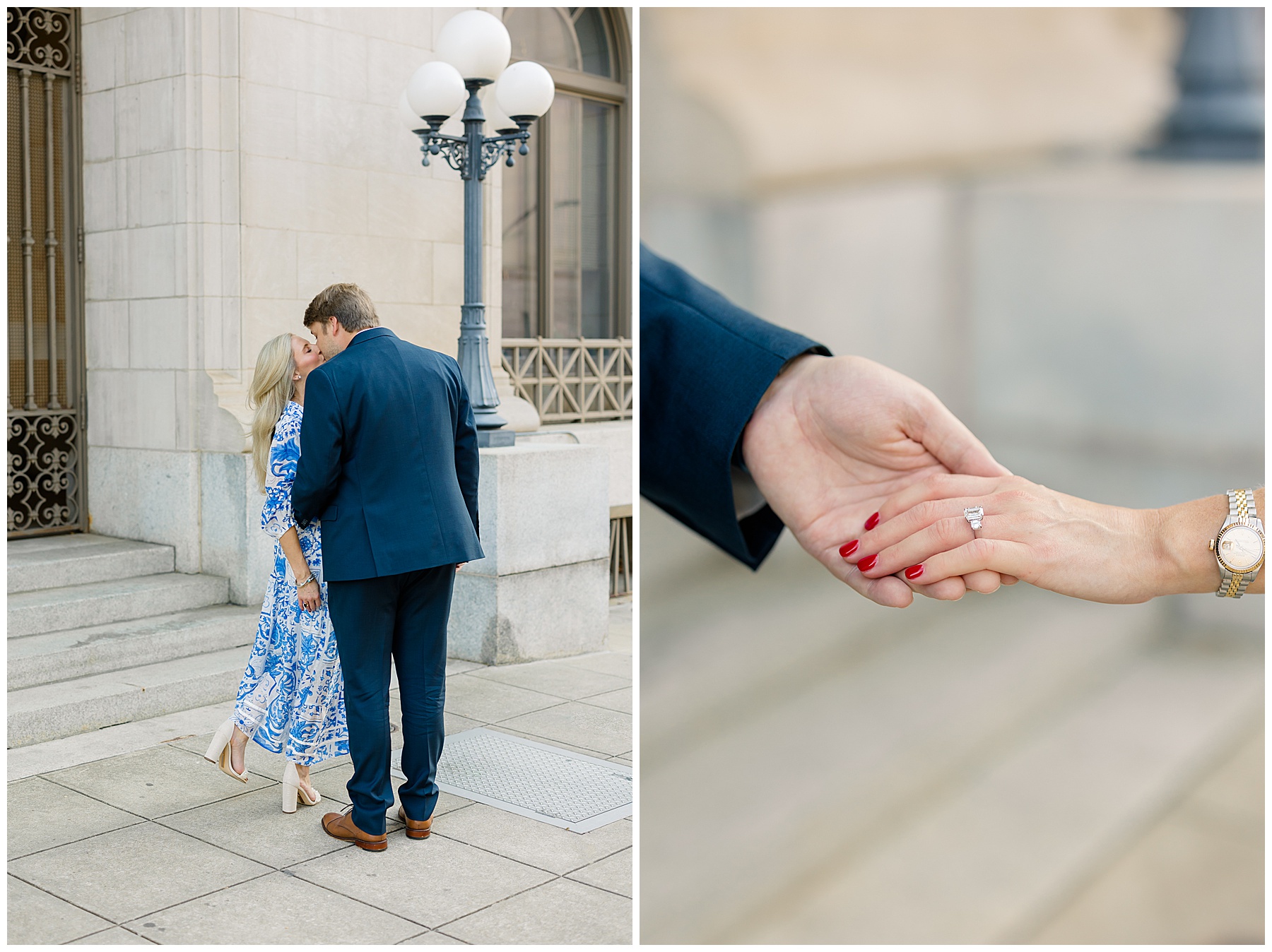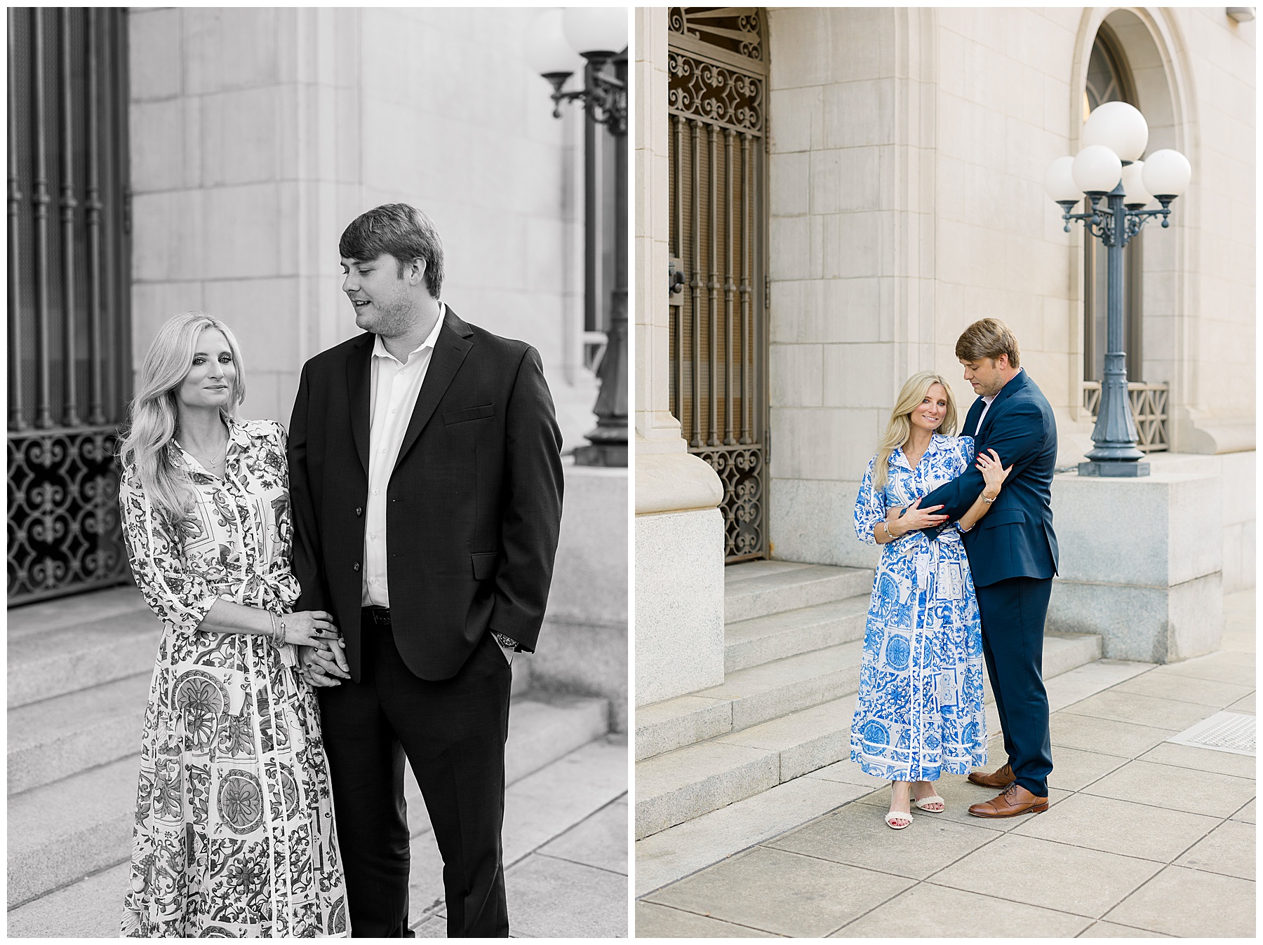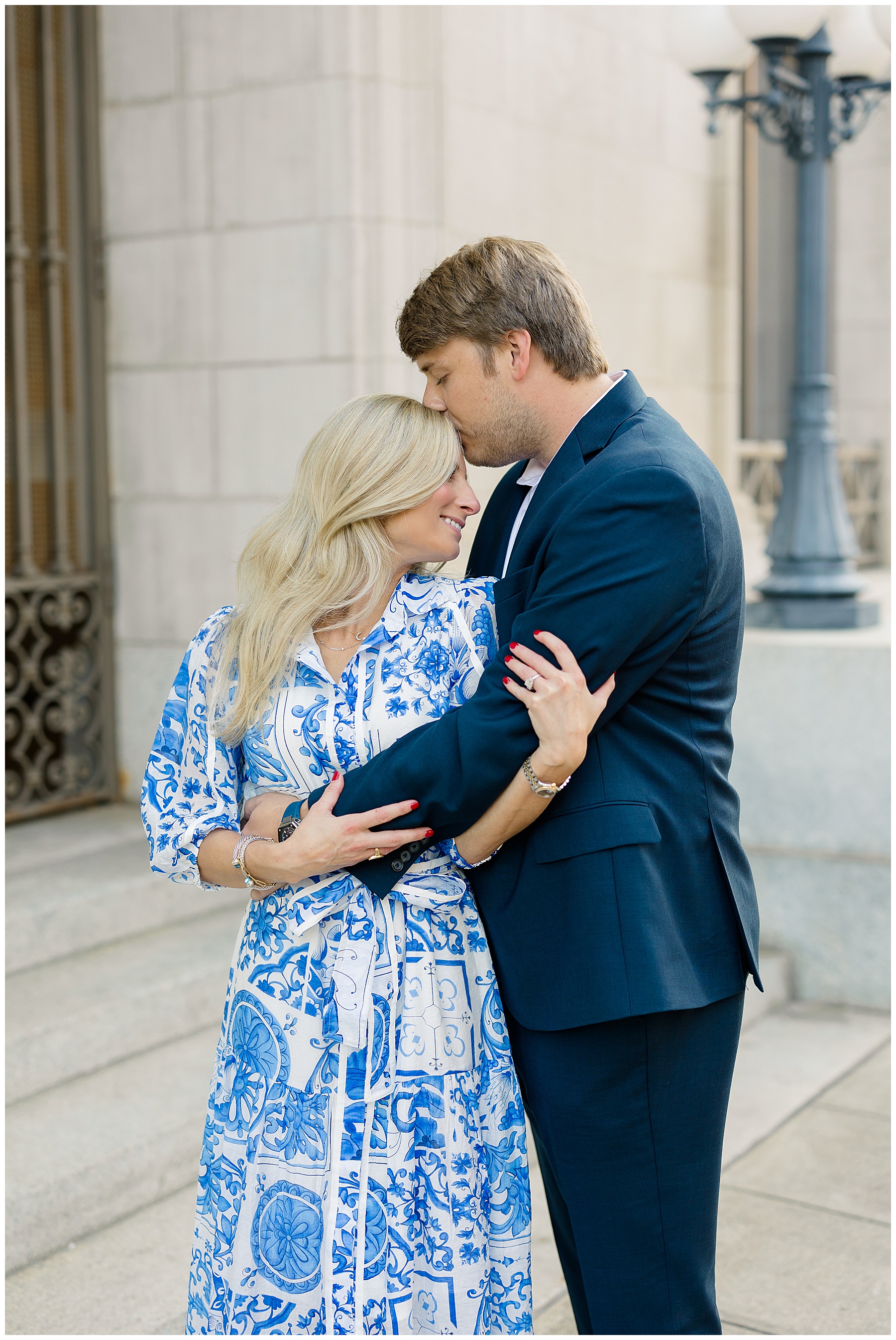 Baker & Robert showed up looking so stylish and I was pumped from the start! Baker’s blue & white dress was so unique, southern, and I loved the bow at the waist. Speaking of bows – check out her blue heels (that ROBERT bought her! Brownie points!!!) in her second outfit that she wore! They had the cutest bows on the back with little rhinestones! So pretty that these blue heels just might be my favorite engagement session shoes EVER!!!!! I also loved that Robert wore blue socks with soccer balls on them – a nod to his college soccer career! I love when couples choose such personal and intentional details to include for their sessions. :)