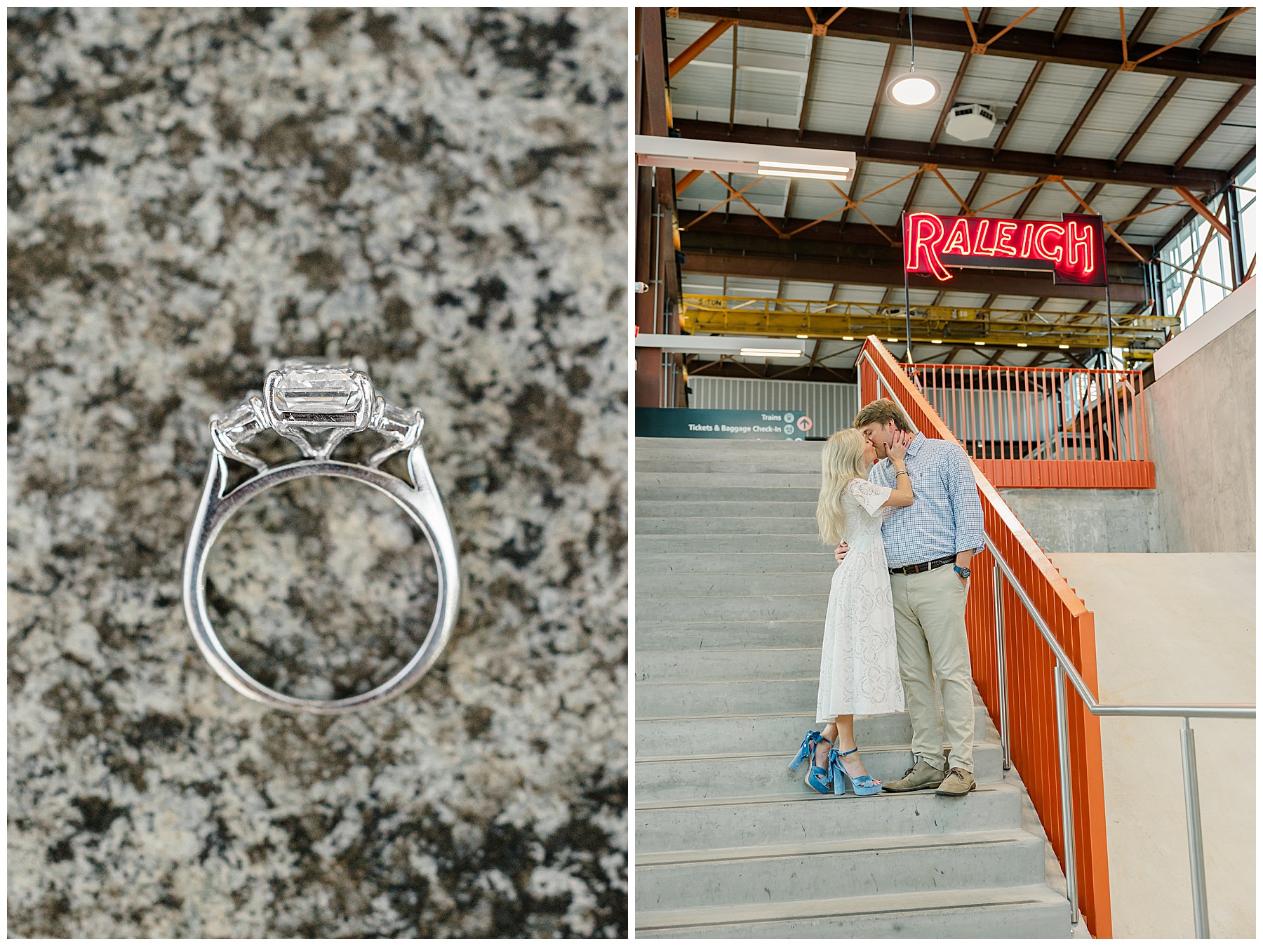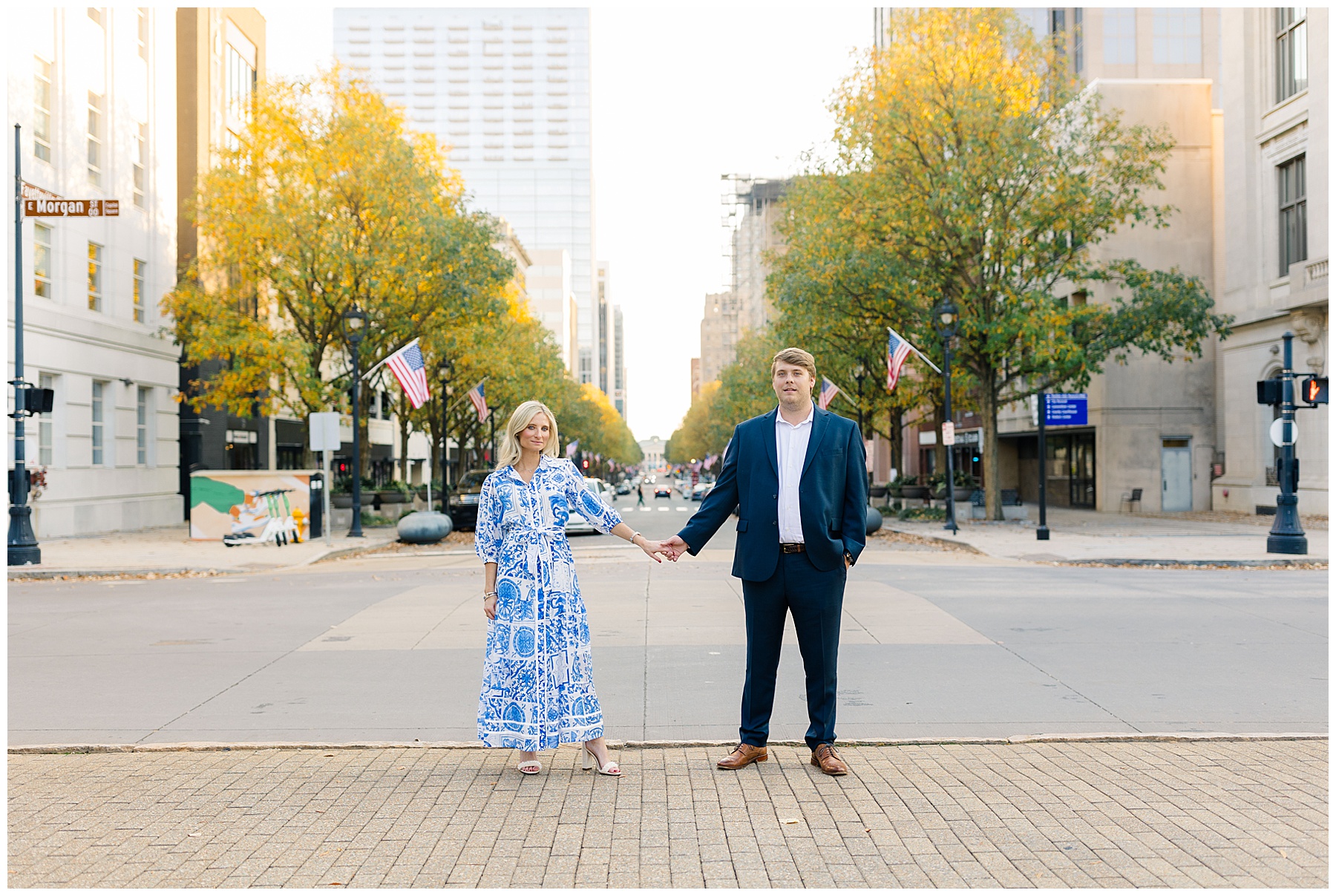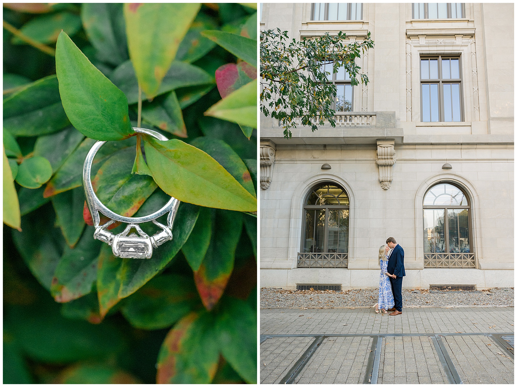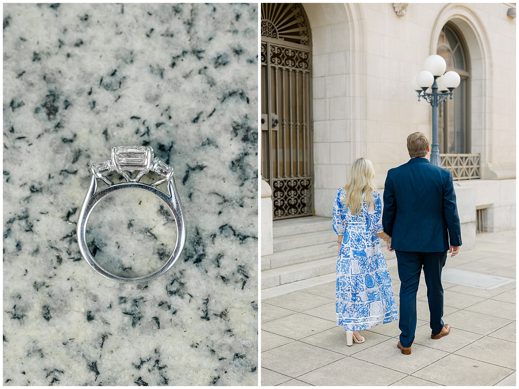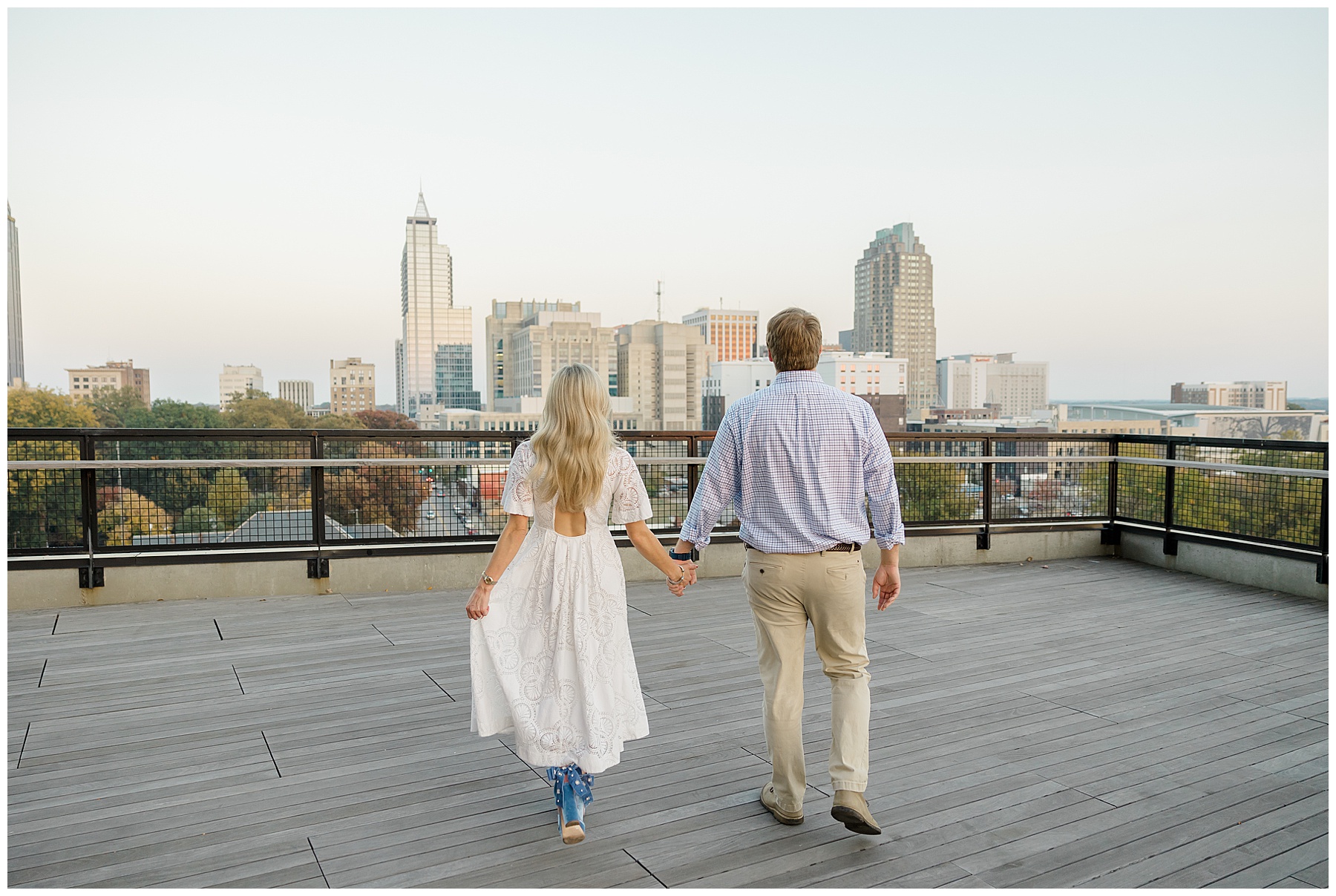 Baker & Robert showed up looking so stylish and I was pumped from the start! Baker’s blue & white dress was so unique, southern, and I loved the bow at the waist. Speaking of bows – check out her blue heels (that ROBERT bought her! Brownie points!!!) in her second outfit that she wore! They had the cutest bows on the back with little rhinestones! So pretty that these blue heels just might be my favorite engagement session shoes EVER!!!!! I also loved that Robert wore blue socks with soccer balls on them – a nod to his college soccer career! I love when couples choose such personal and intentional details to include for their sessions. :)